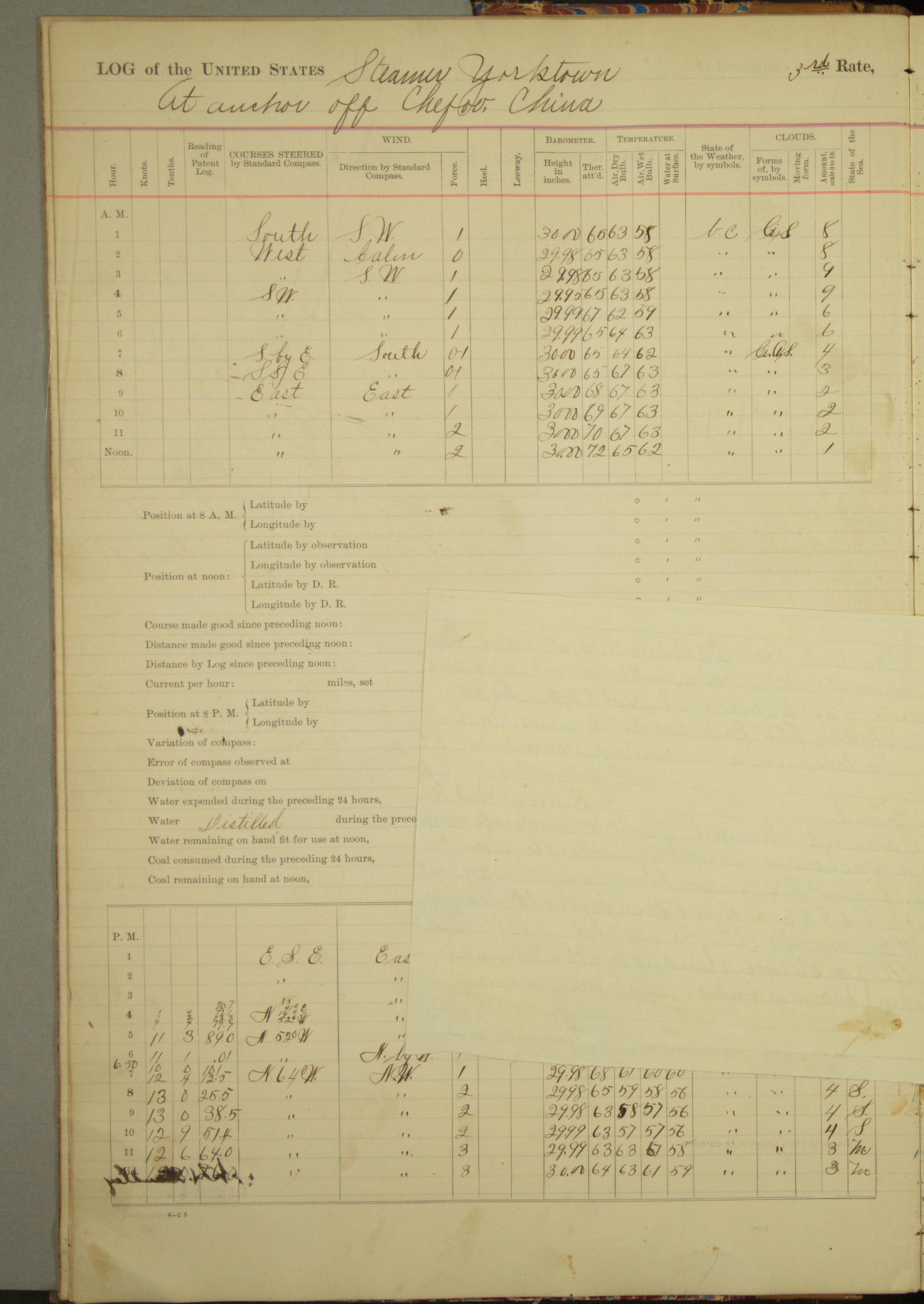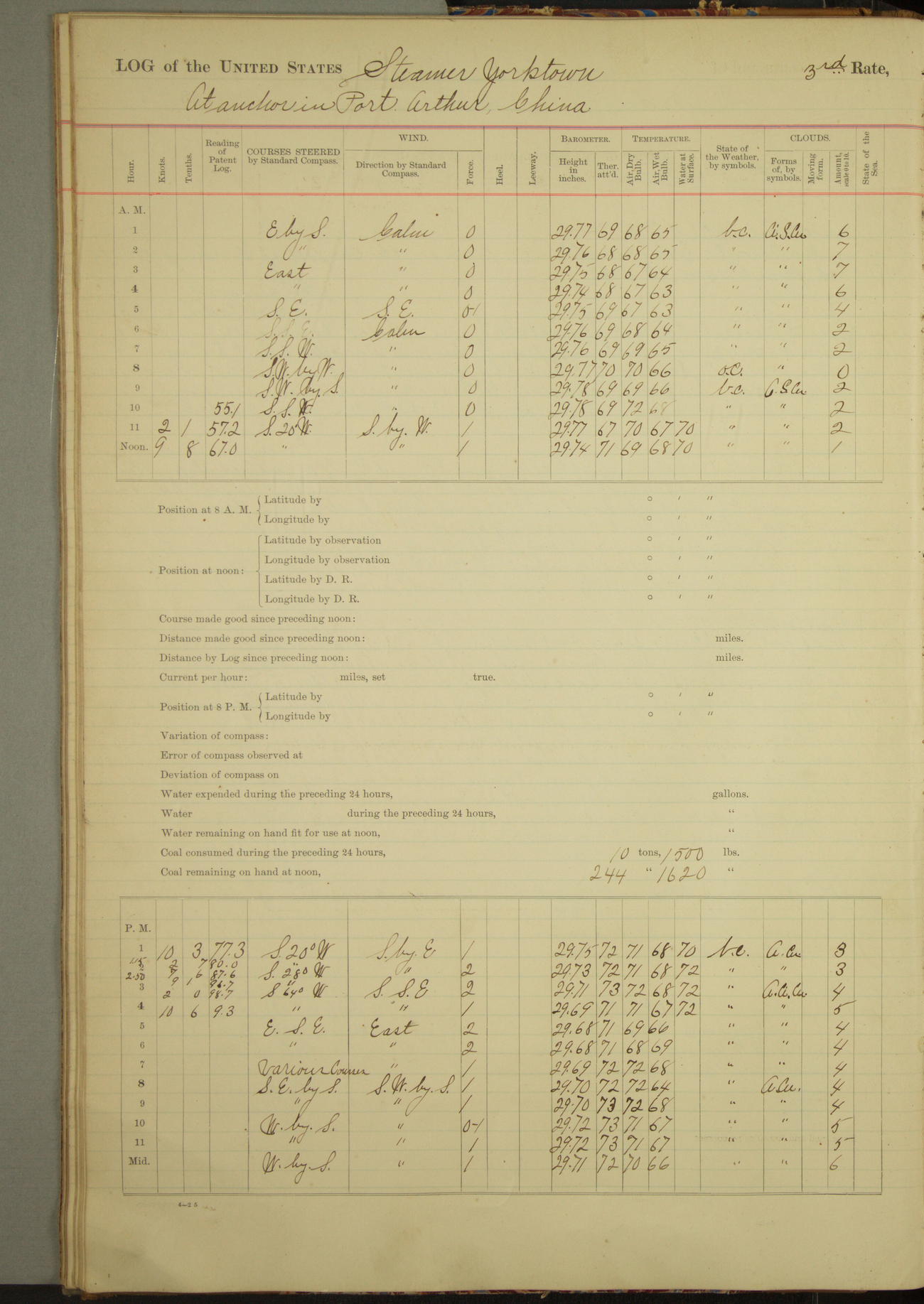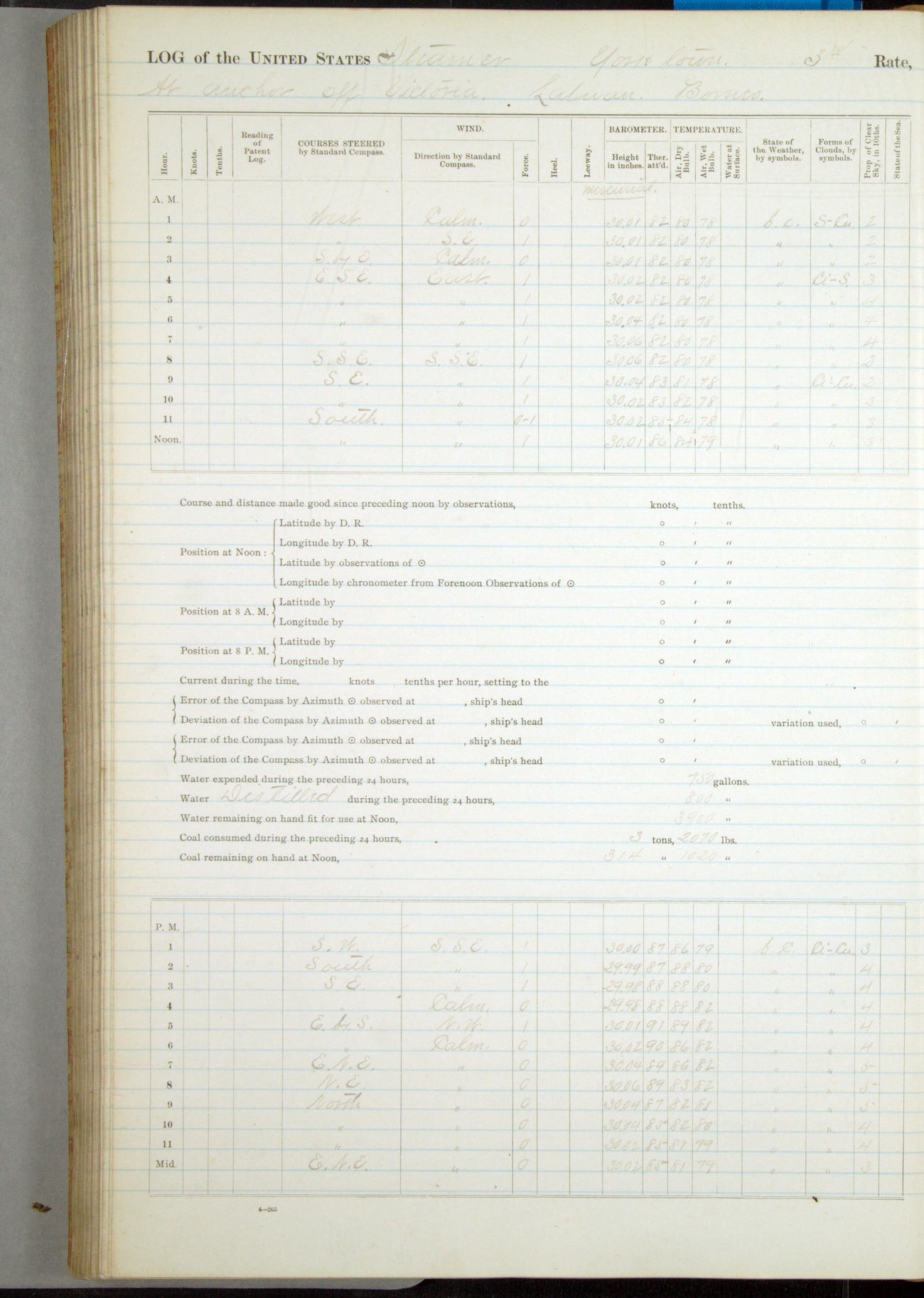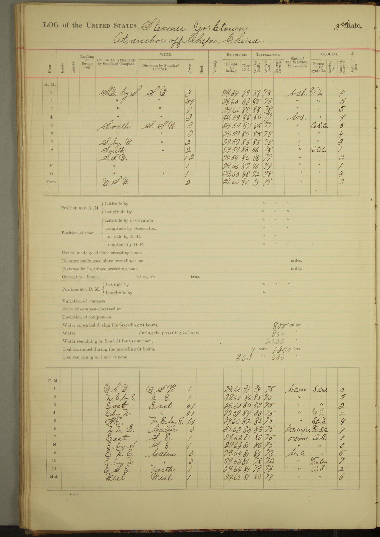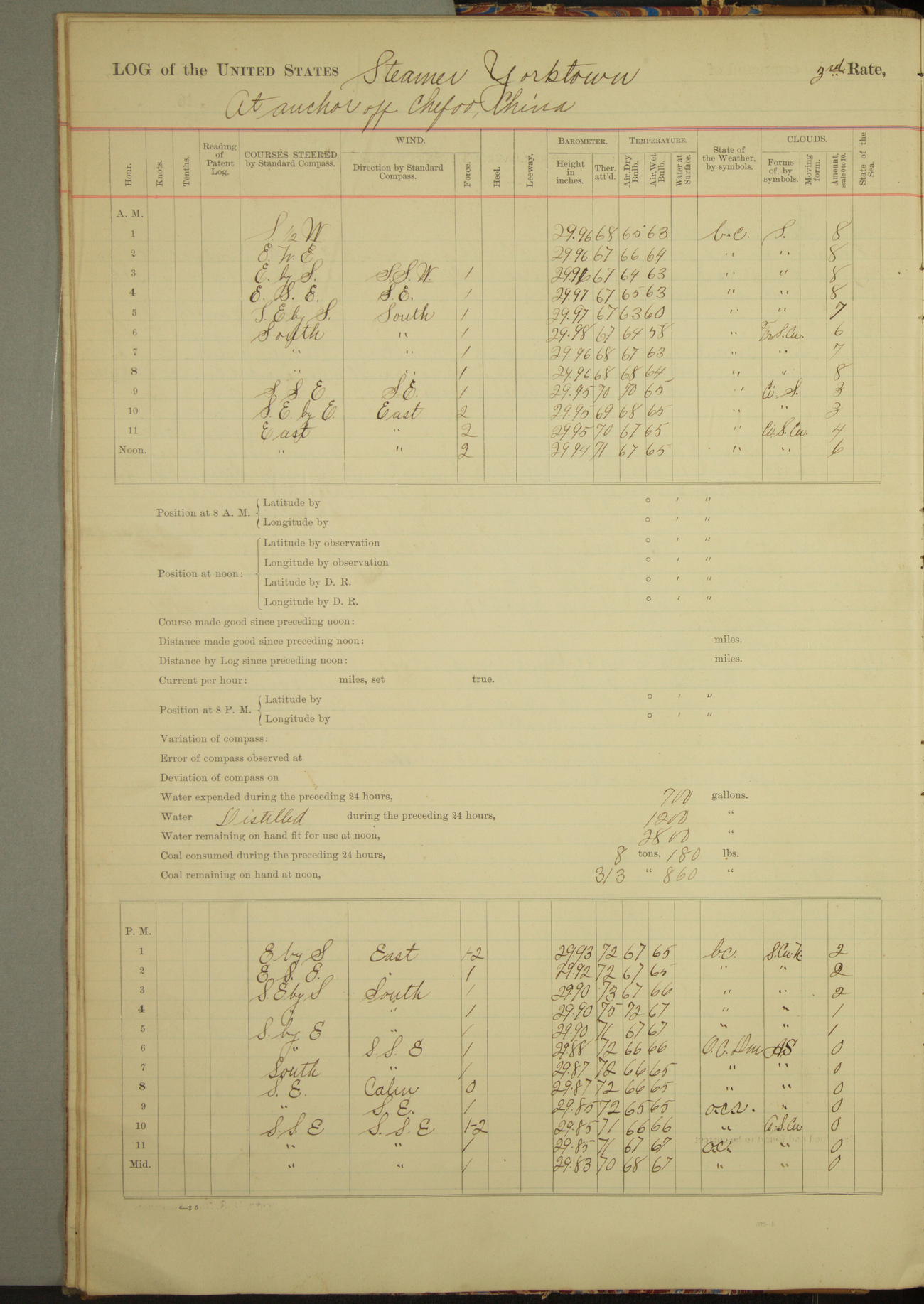 At 2.40pm came to in 5¾ fathoms [water], veering to 20 fathoms port chain.