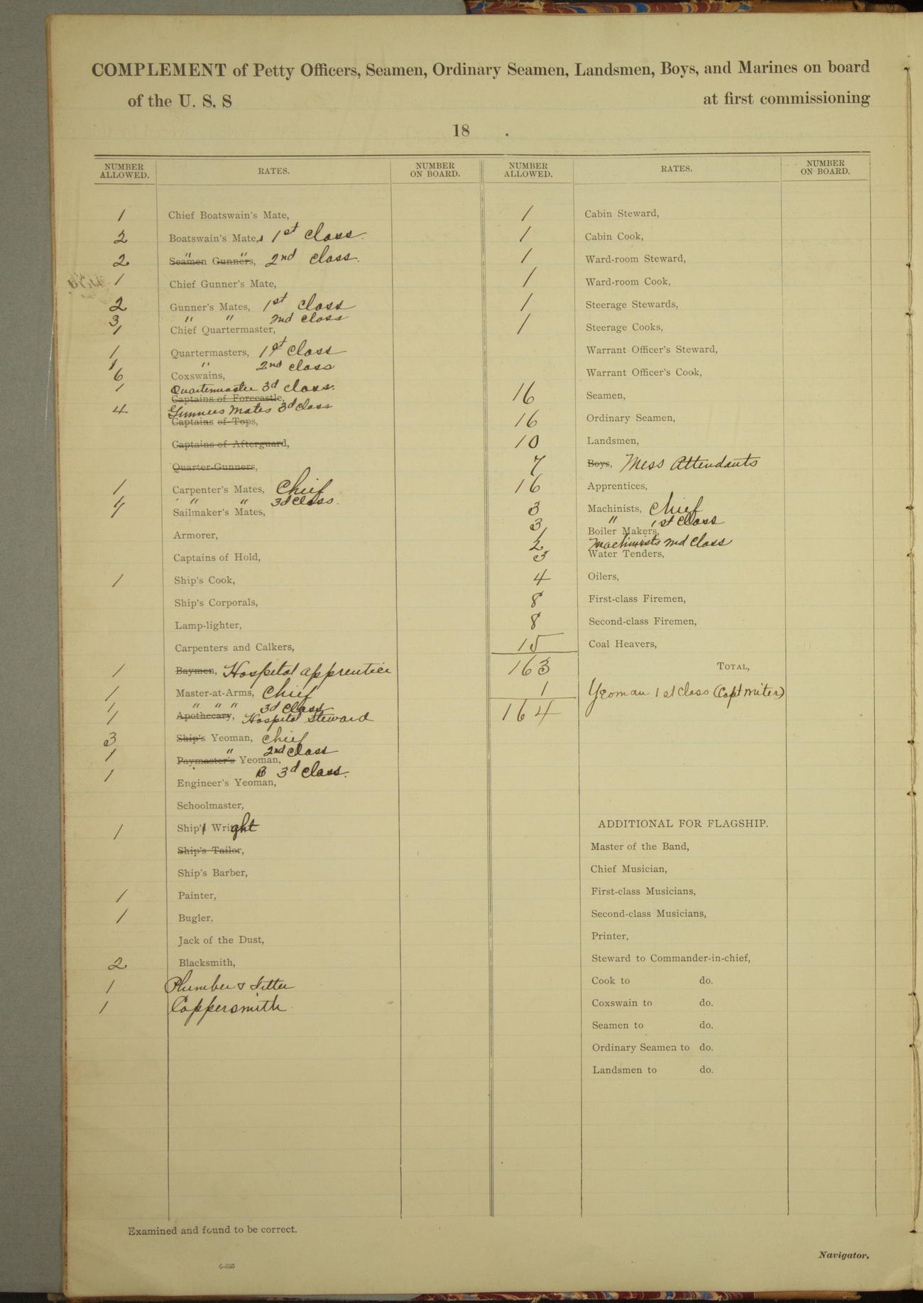 Draft of ship forward 13 feet 8 inches, aft 16 feet 5 inches.