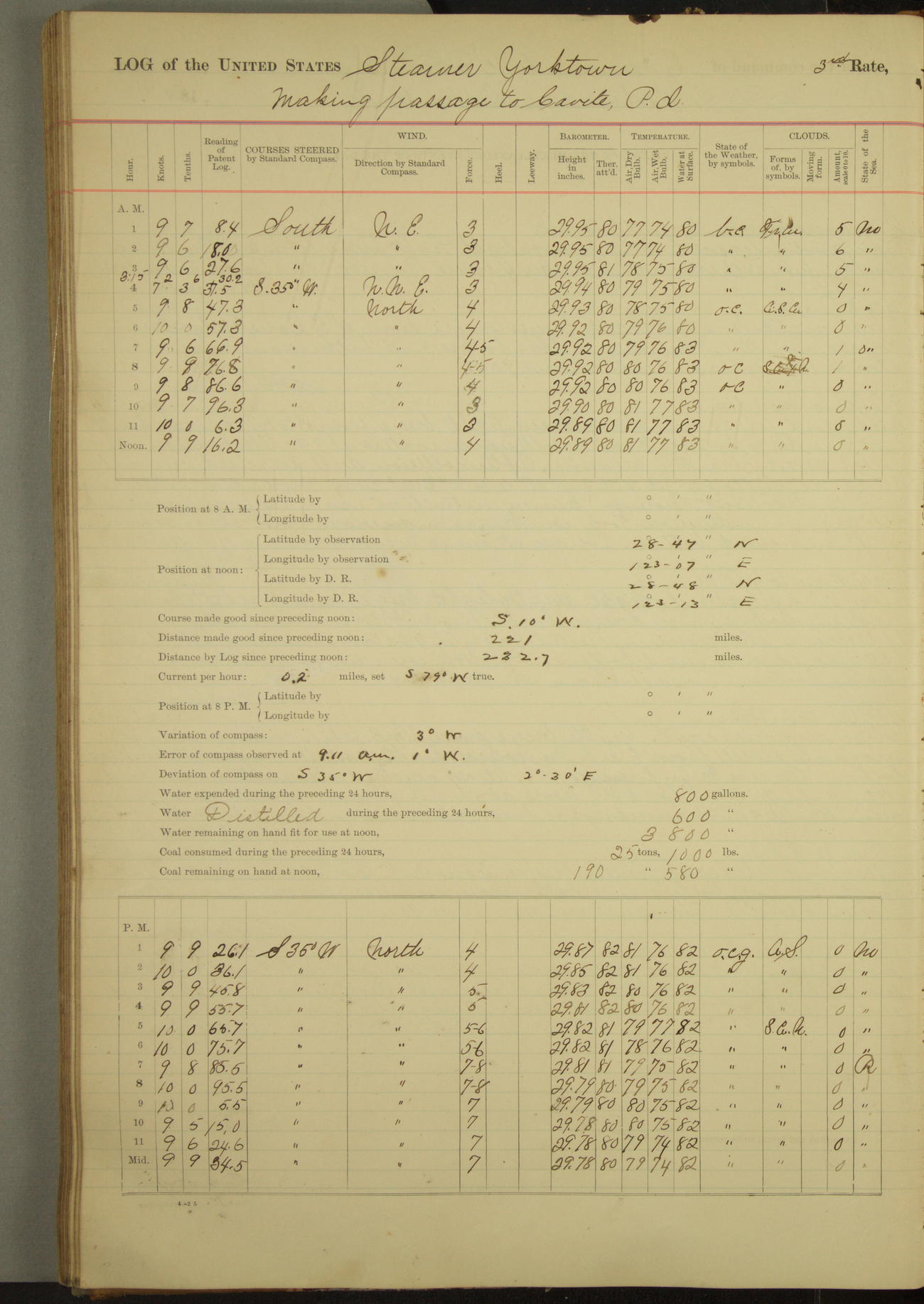 Finished at 11.40am, when went ahead on course North (per standard compass), patent log [reading] 27.8.
