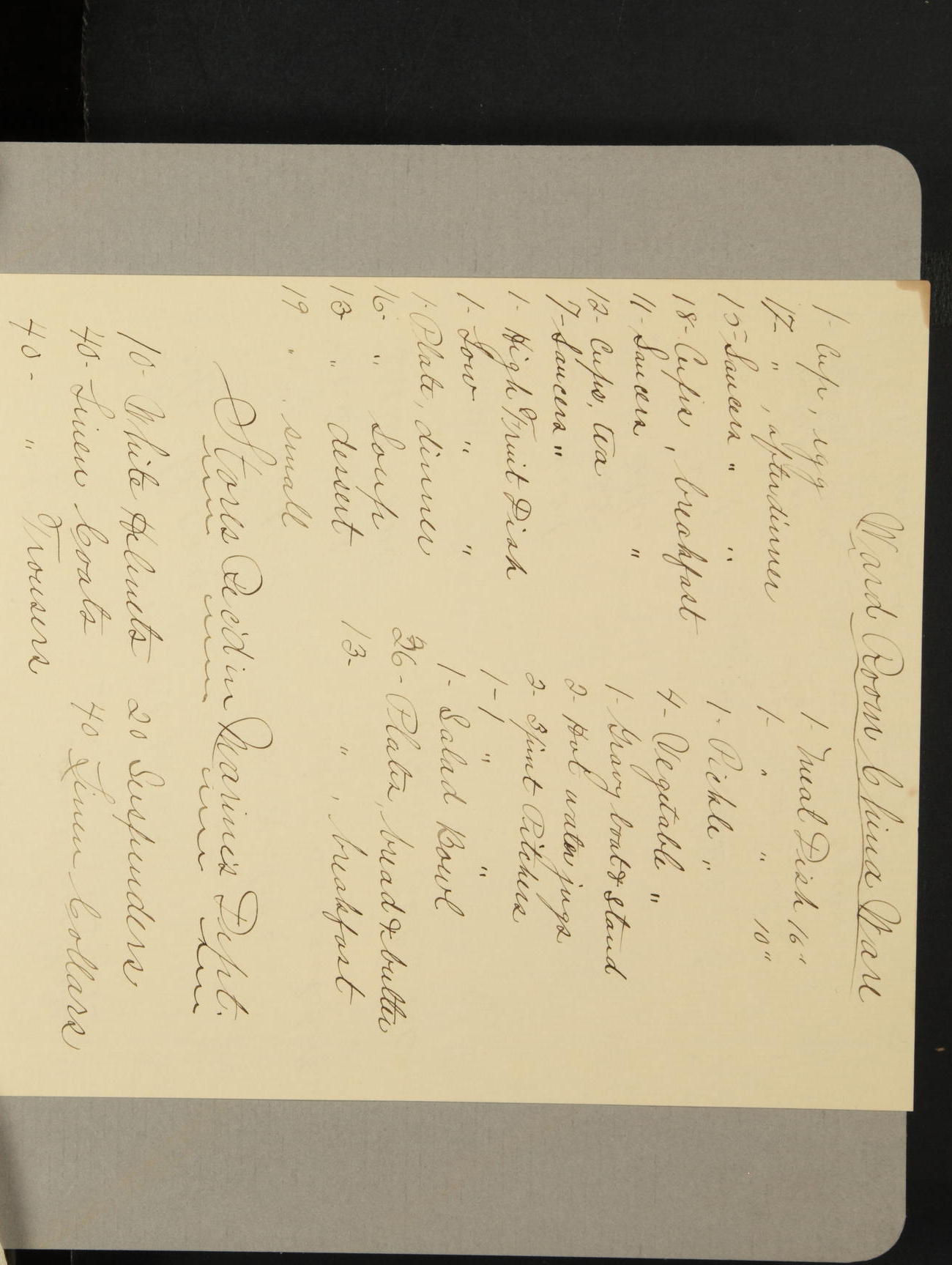 Received in Paymaster's Department: 136¼ pounds each of beef and vegetables; and 109 pounds bread.