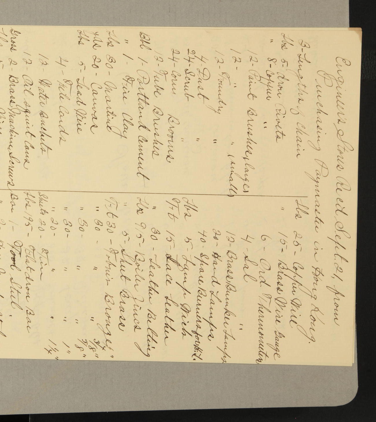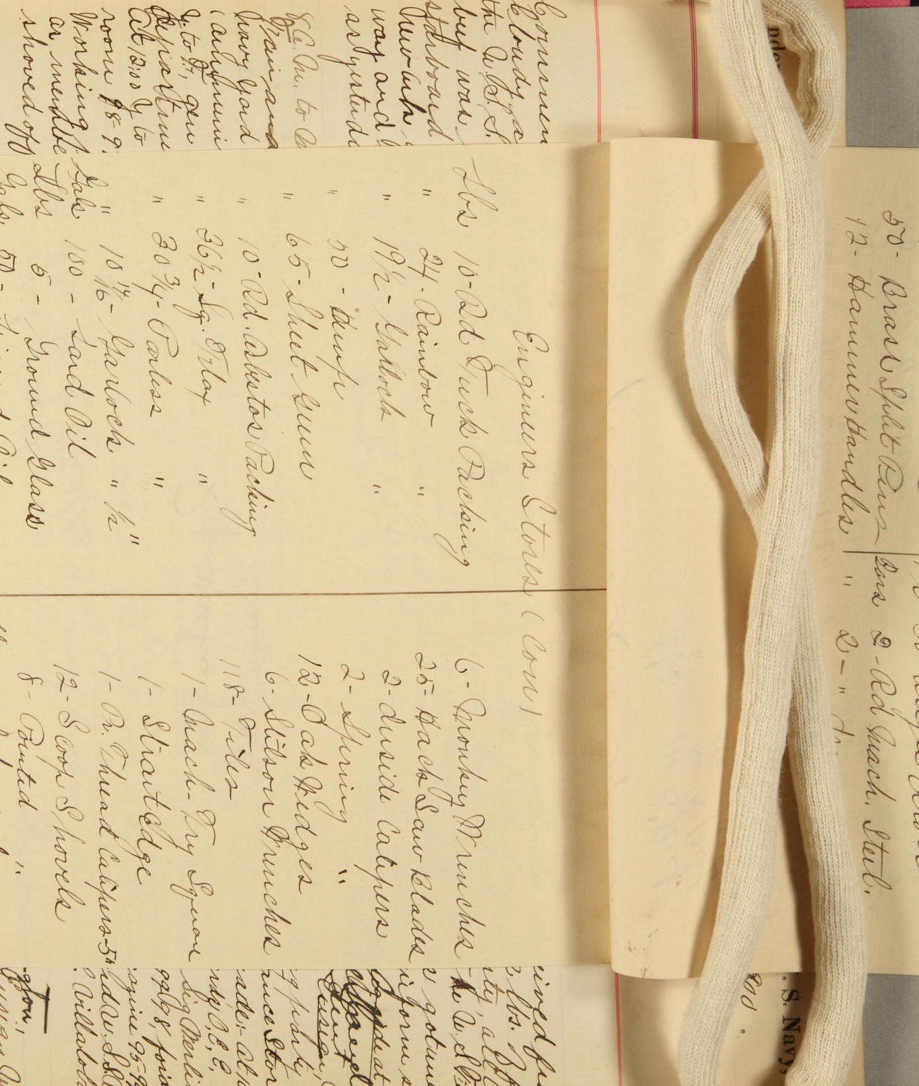 In Ordnance Department: 10 gallons alcohol; 5 gallons linseed oil, boiled; 5 gallons turpentine; 1 gallon Japan Drier; 224 gallons white lead; 112 gallons white zinc.