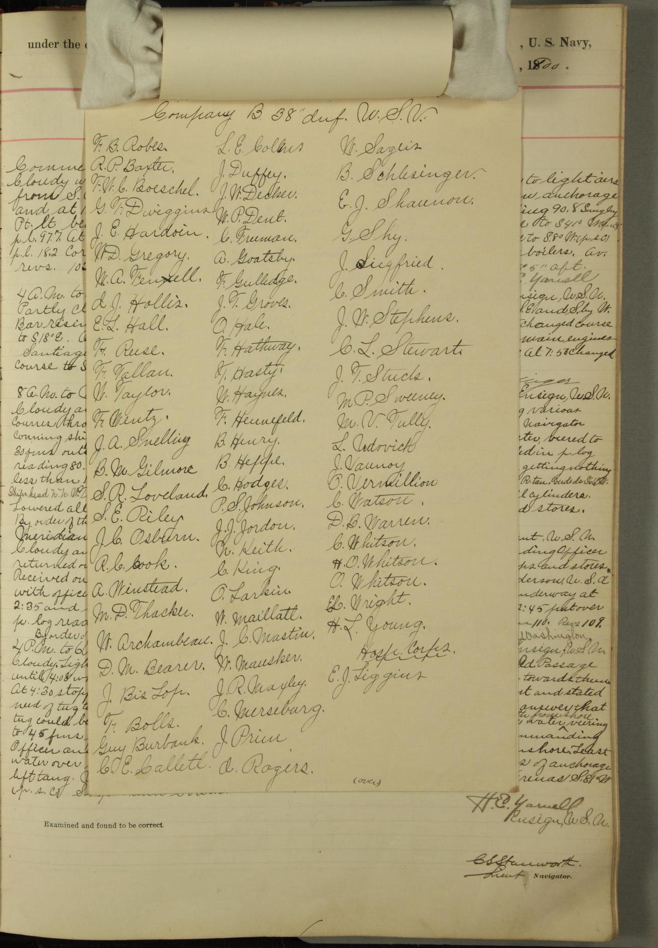 The flood cocks were tested by Lieutenant C.S. Stanworth, U.S. Navy, and found in good condition.