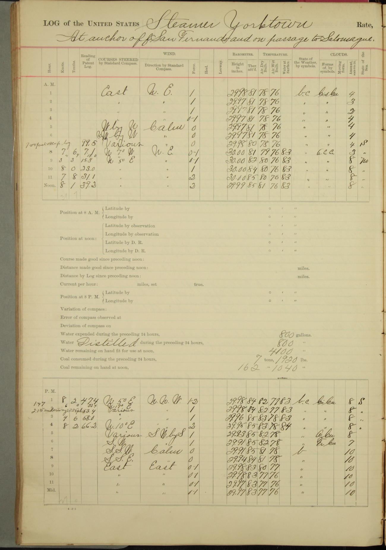 At 11.50am sighted smoke of steamer off San Fernando.