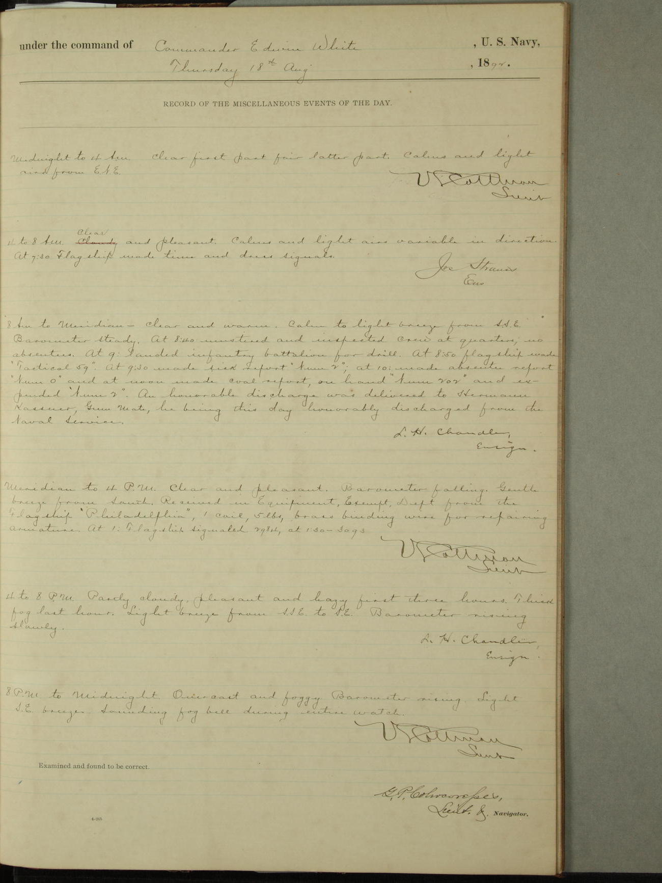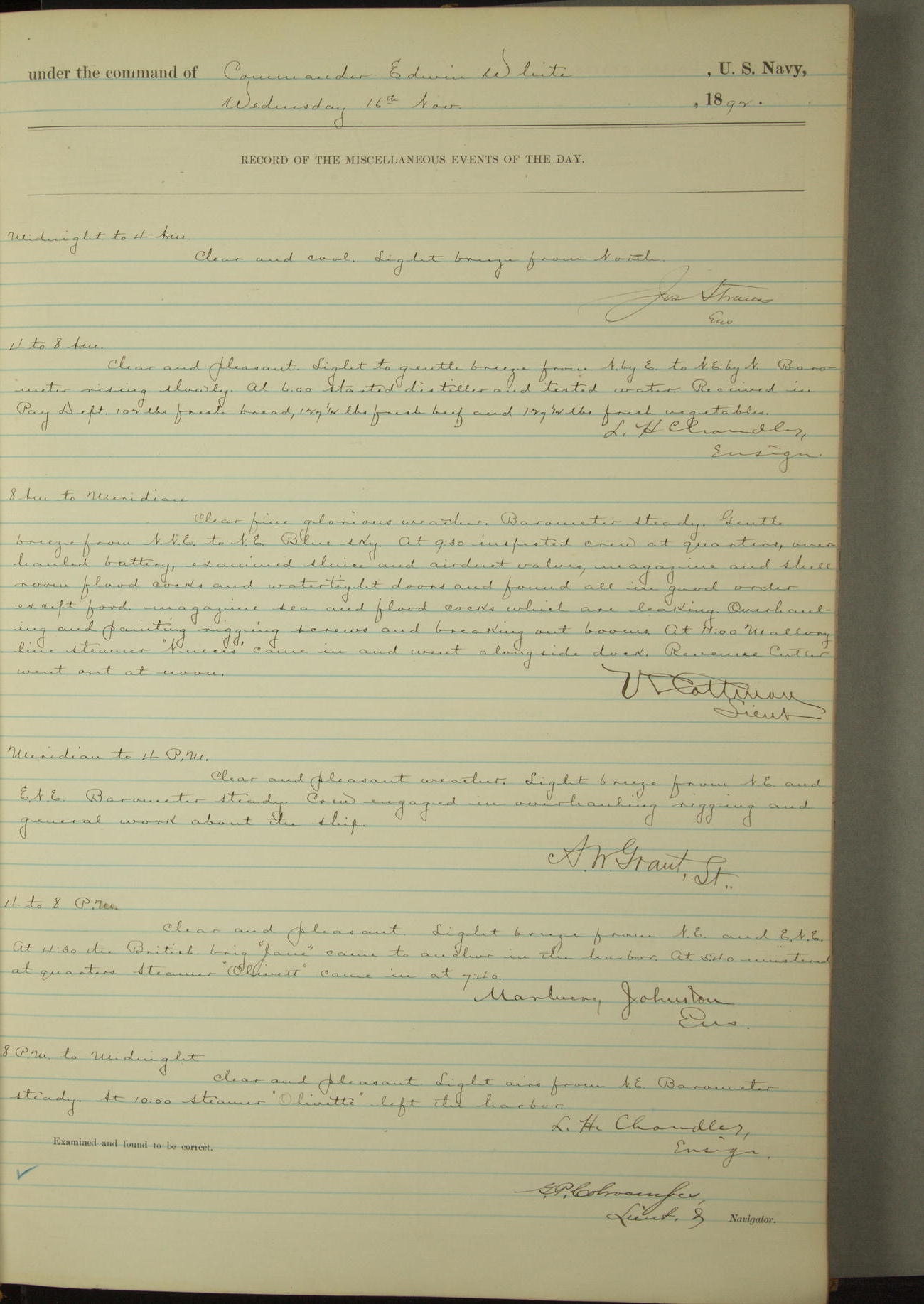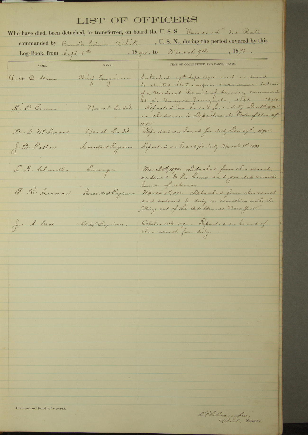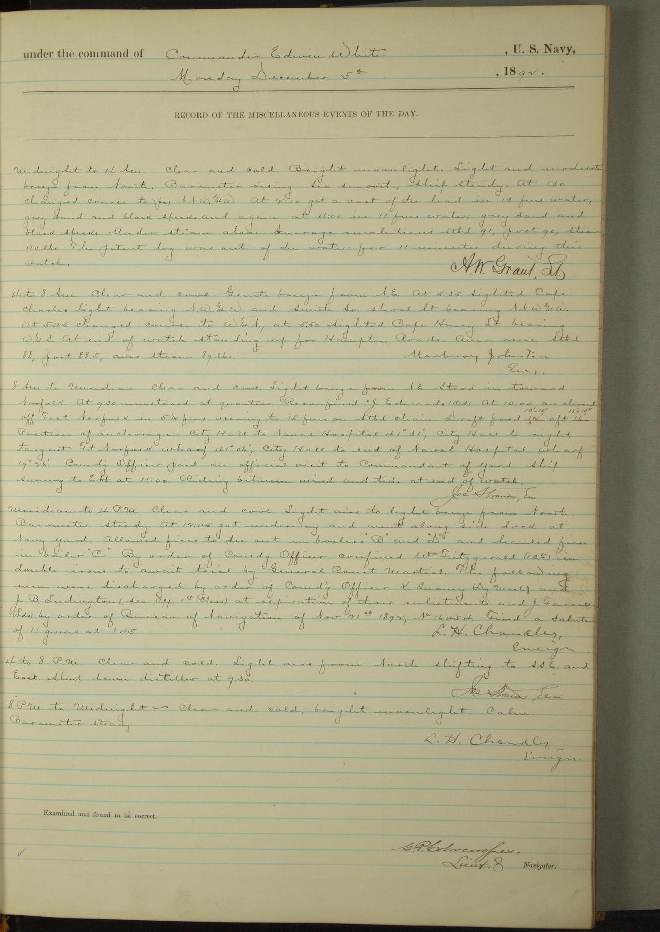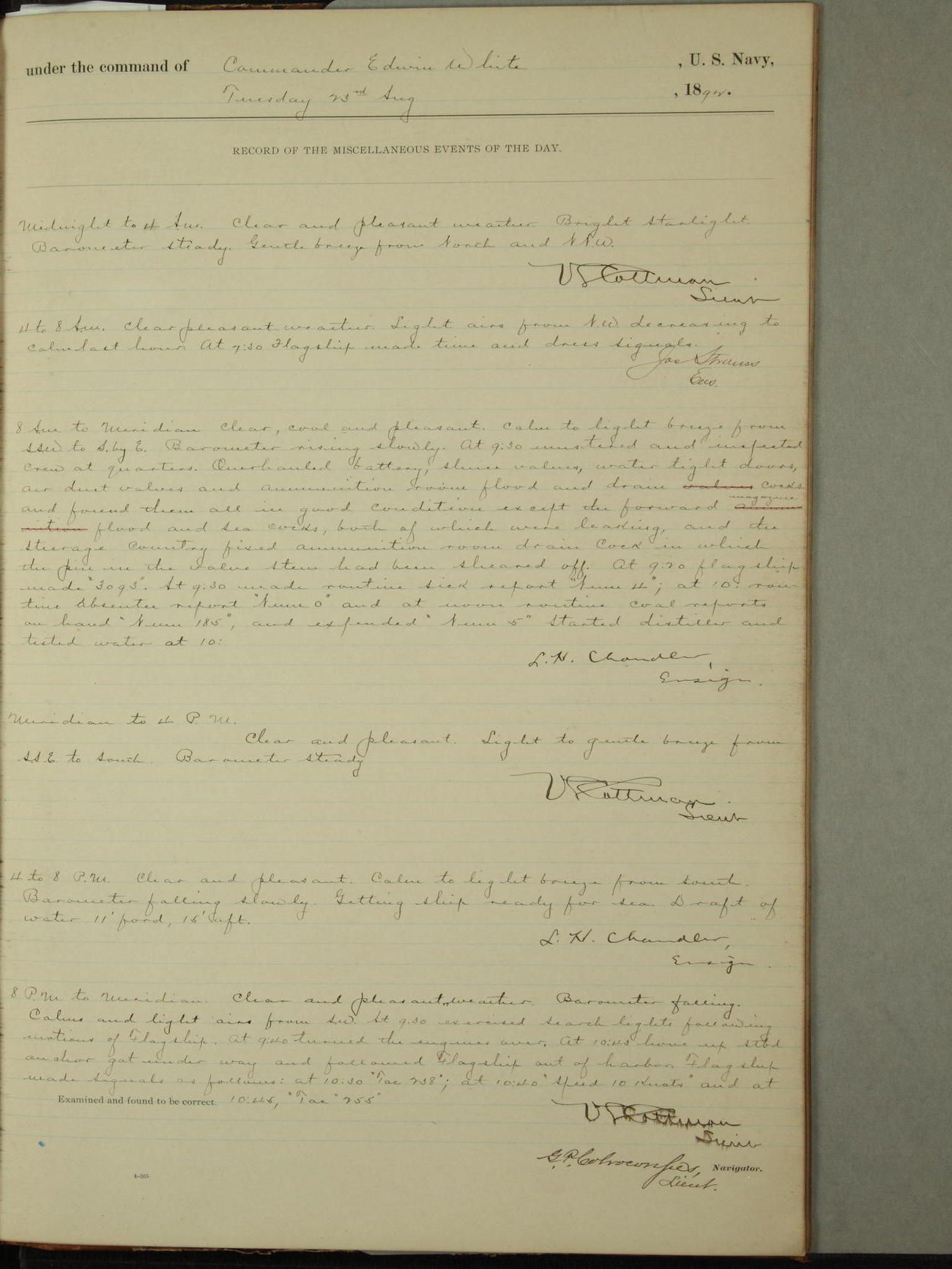 Examined and found to be correct. G. P. Ch????npes, Louit. G. Navigator