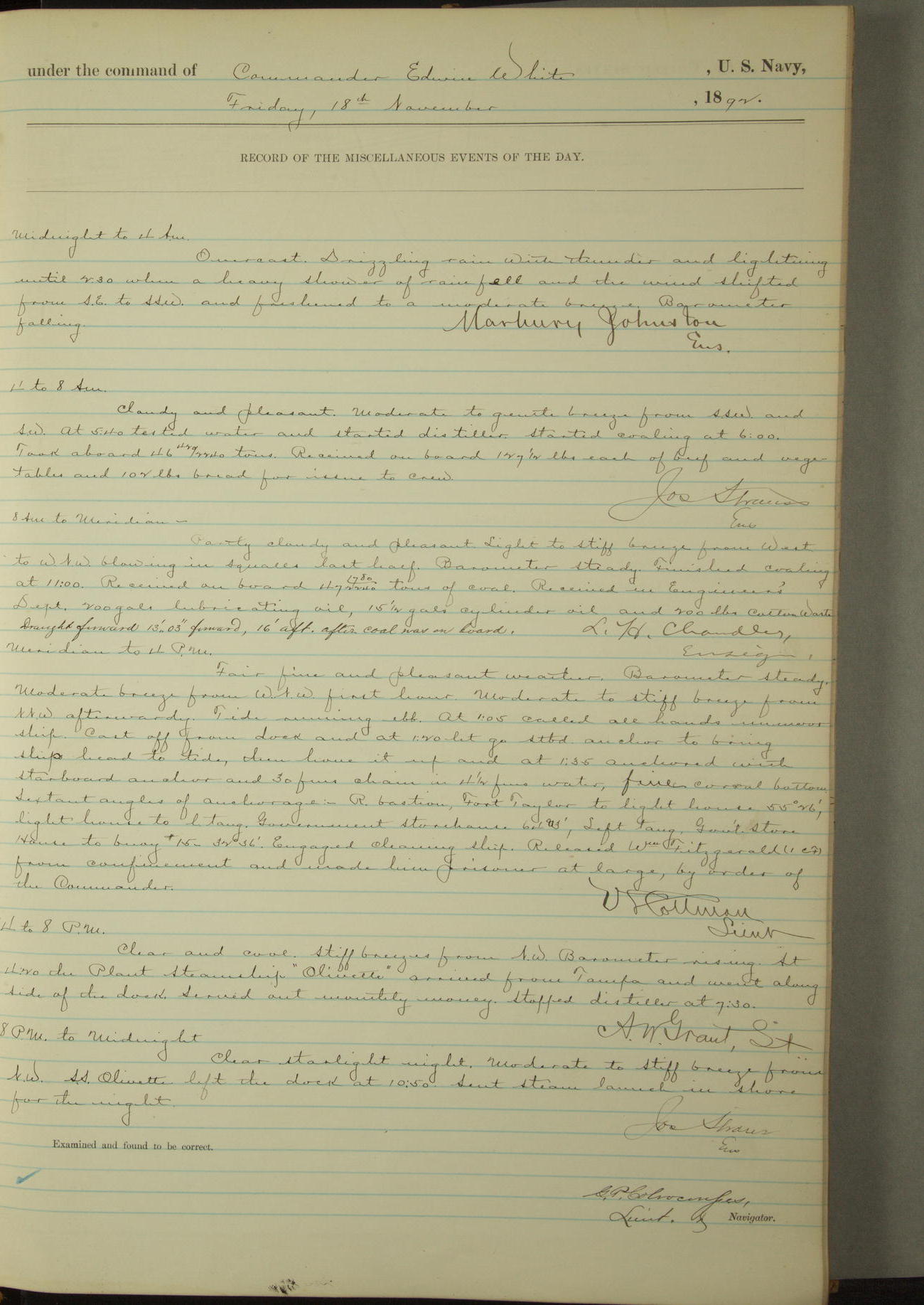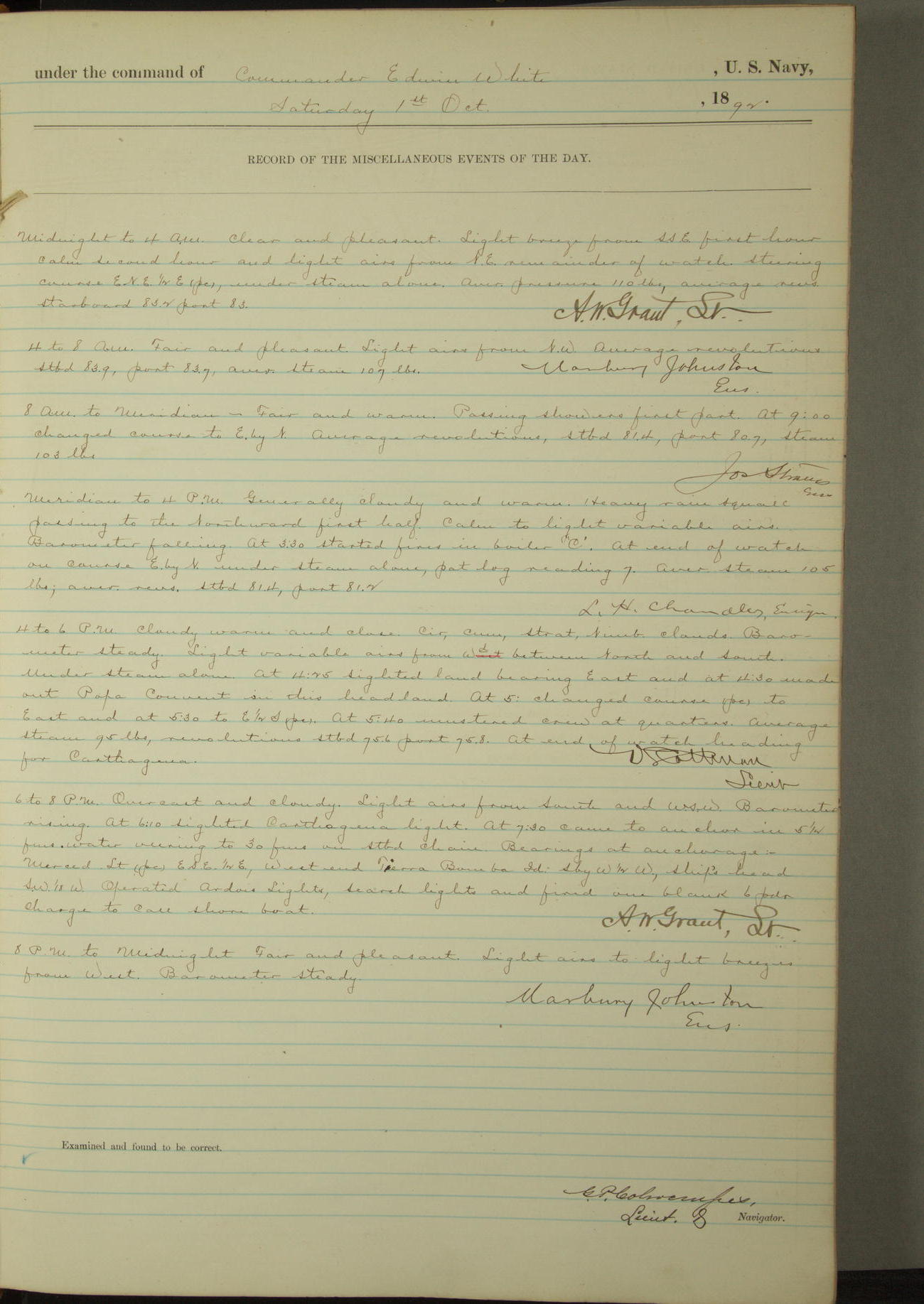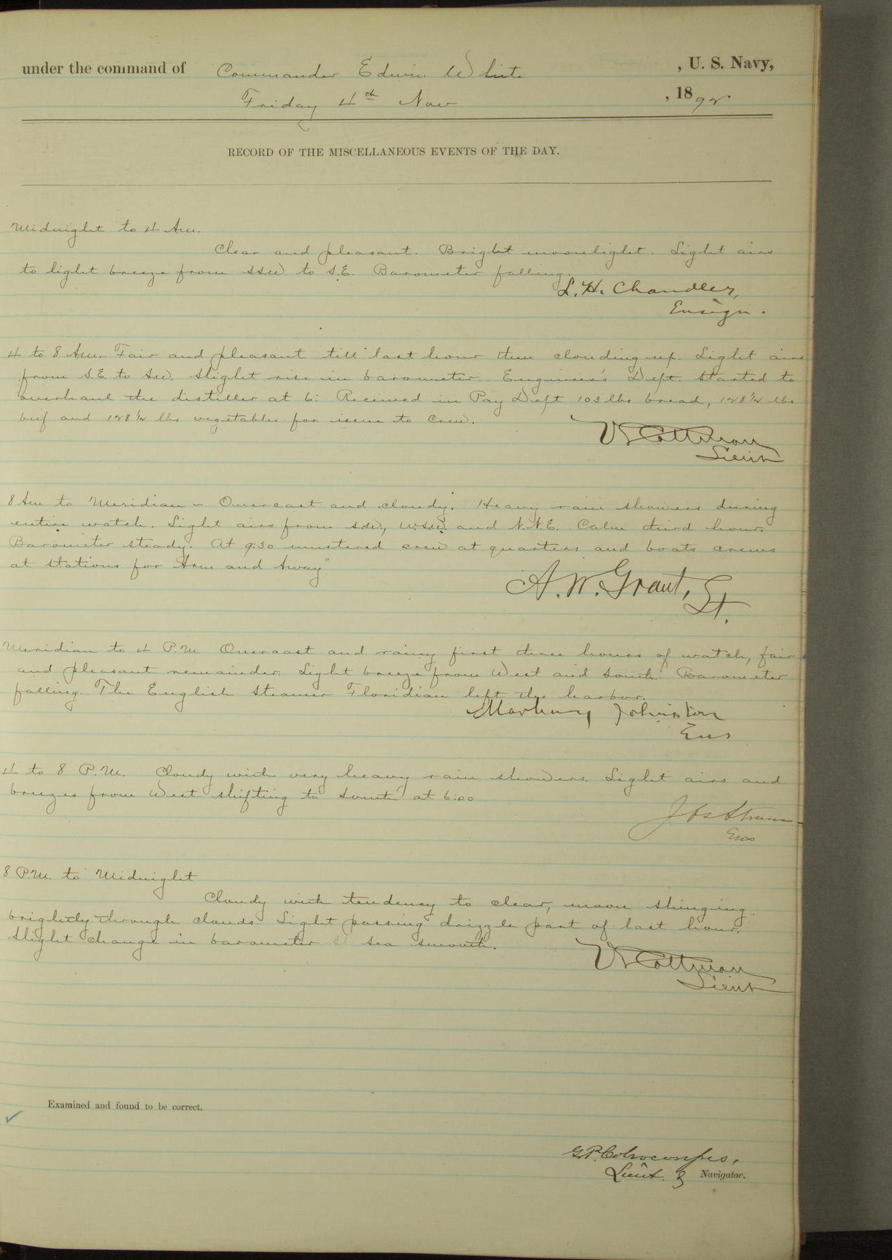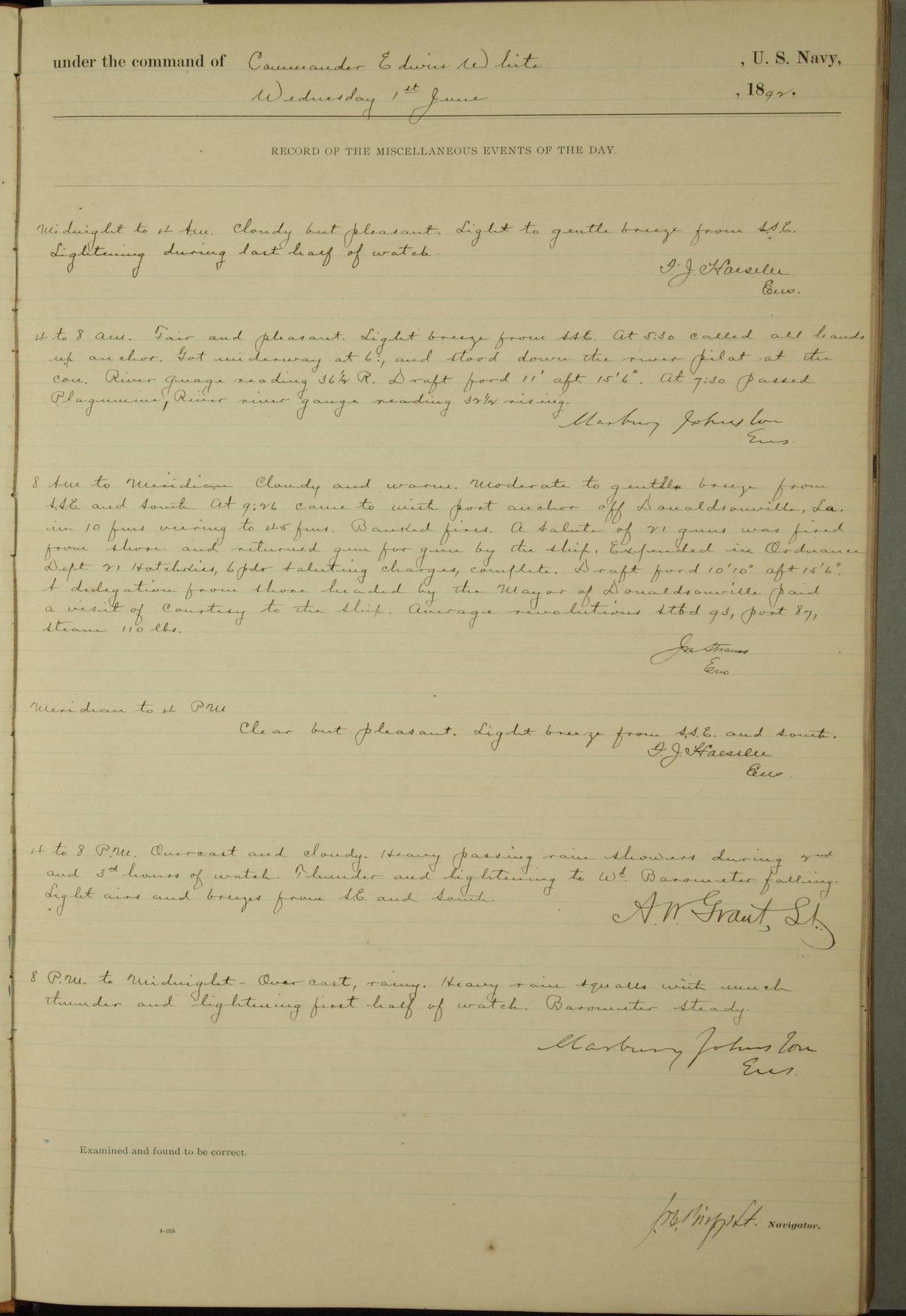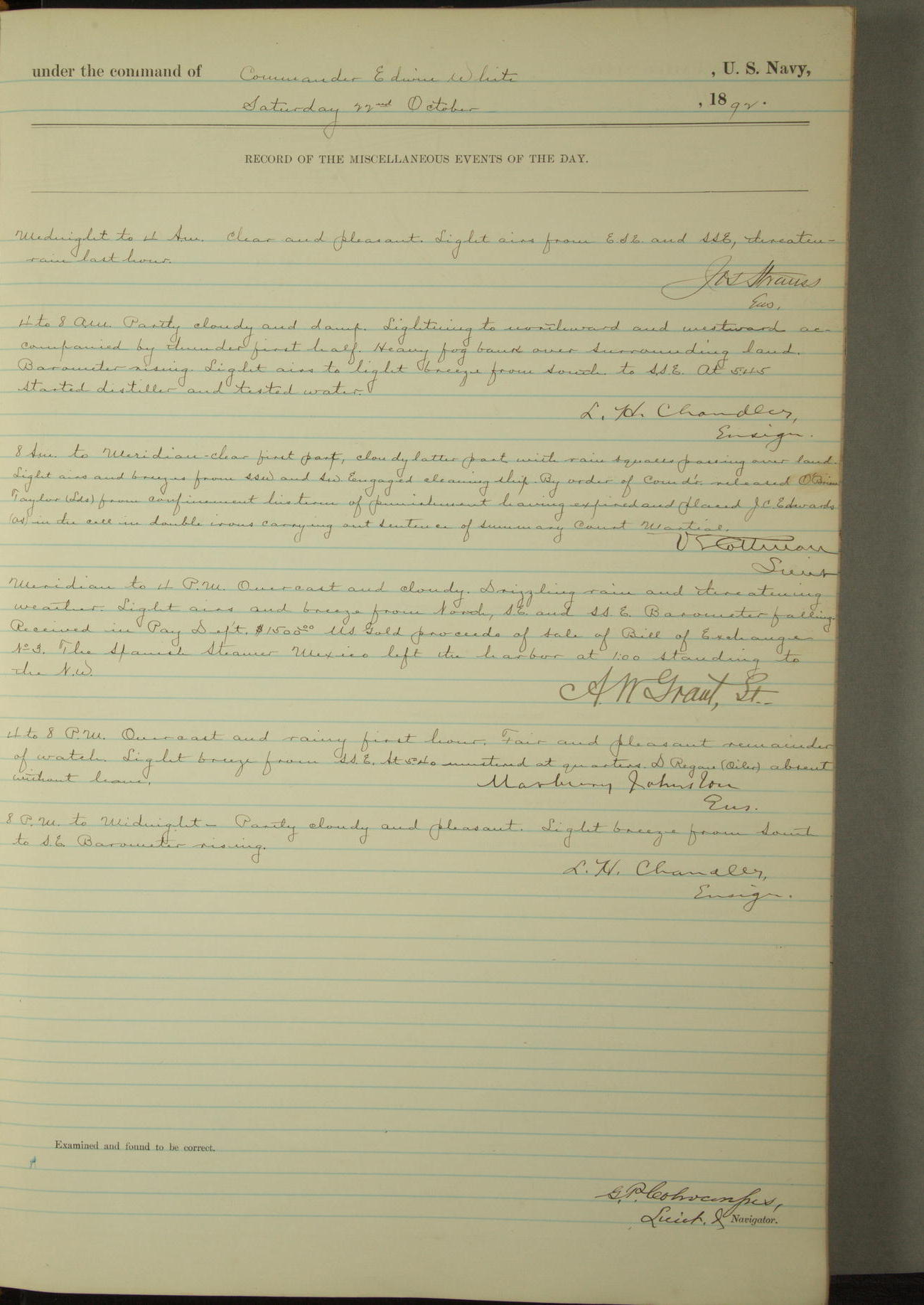 Examined and found to be correct. G. P. Ch????npes, Louit. G. Navigator