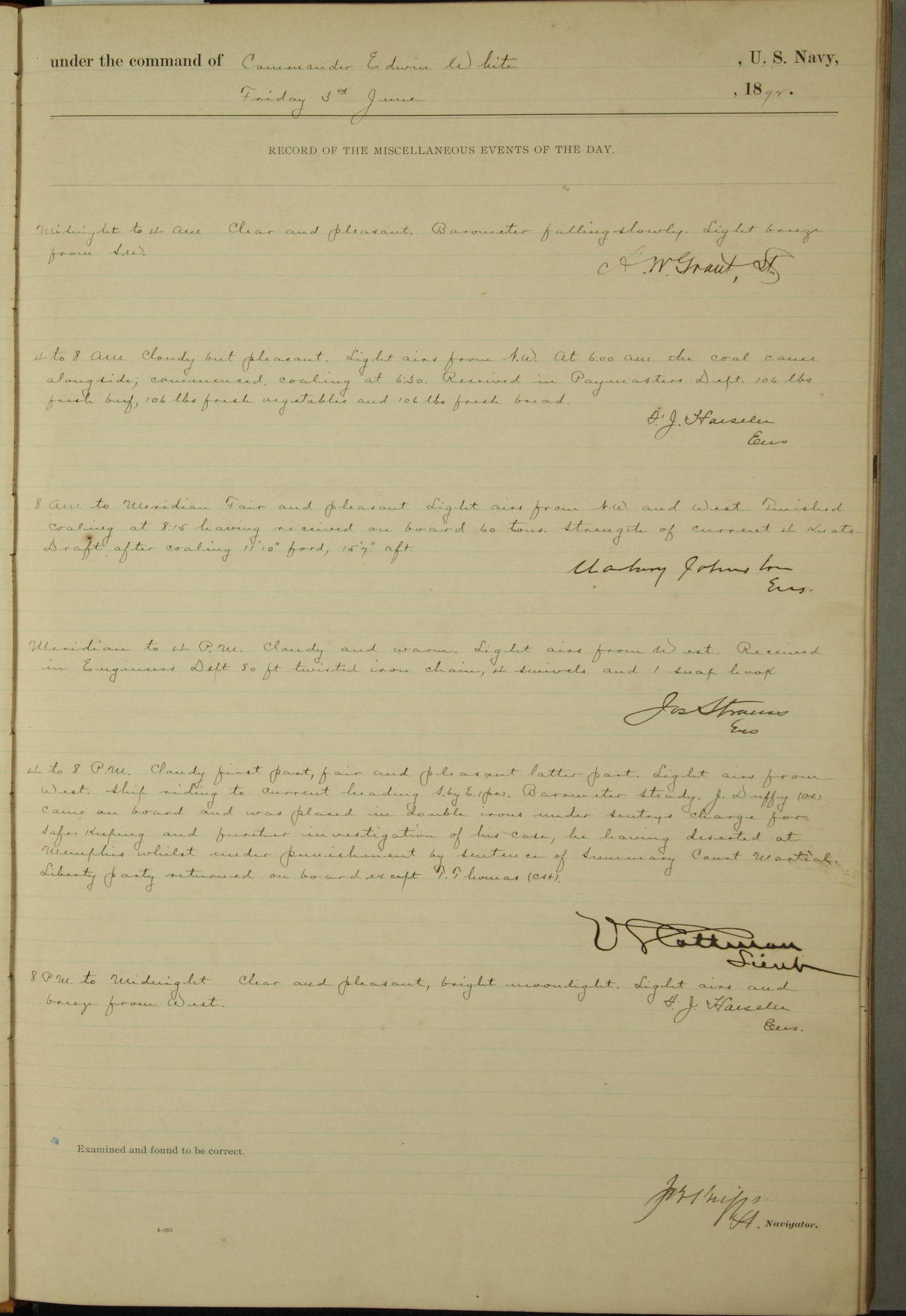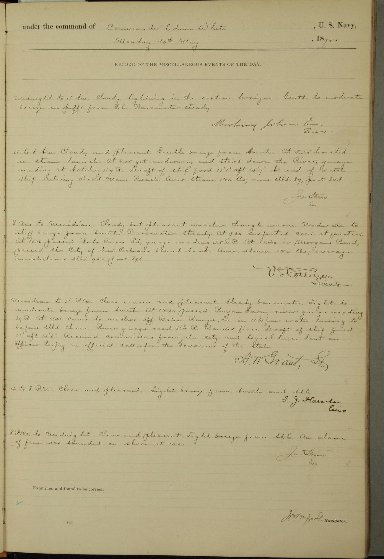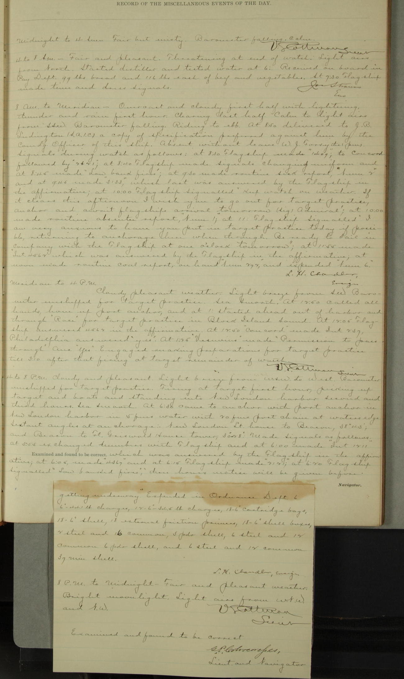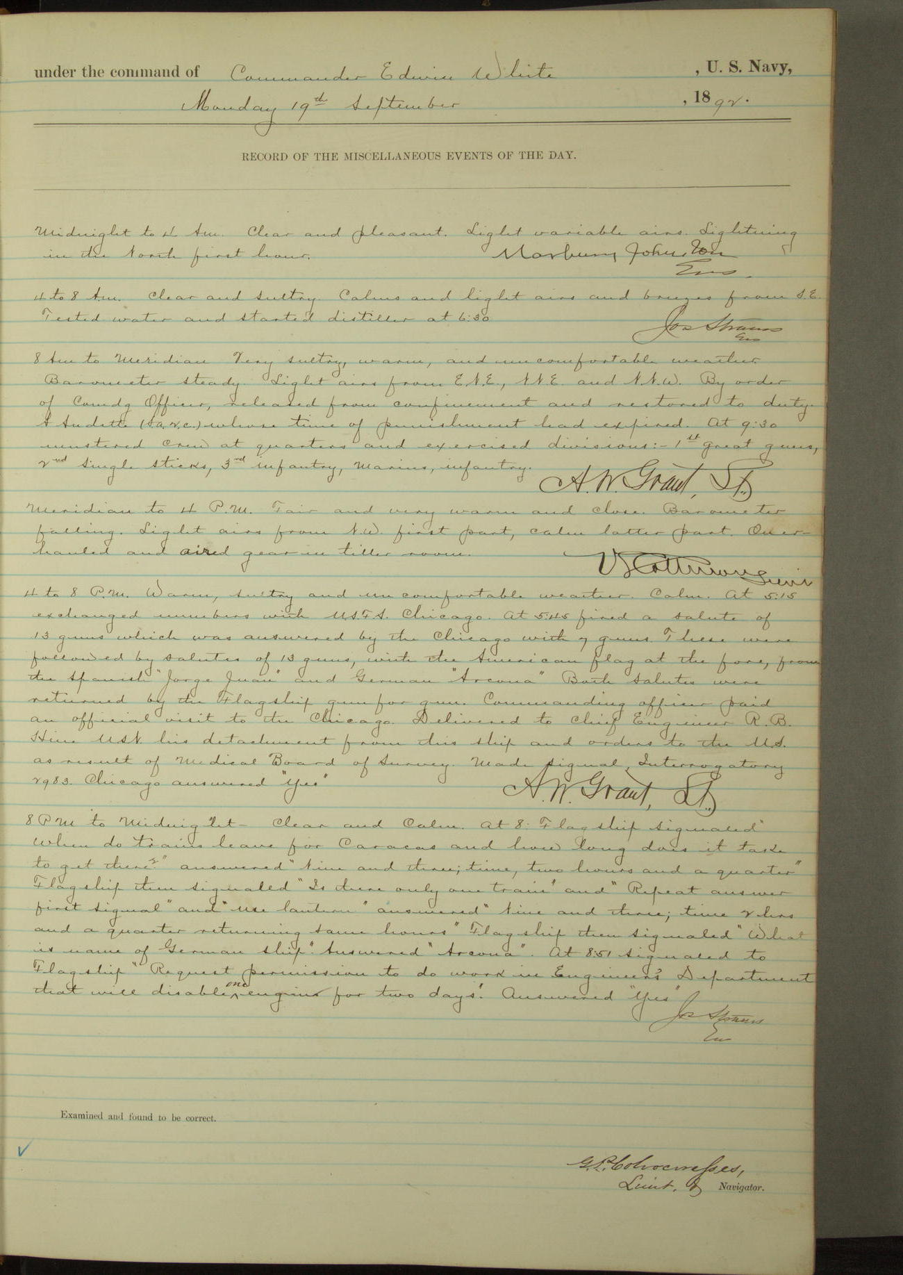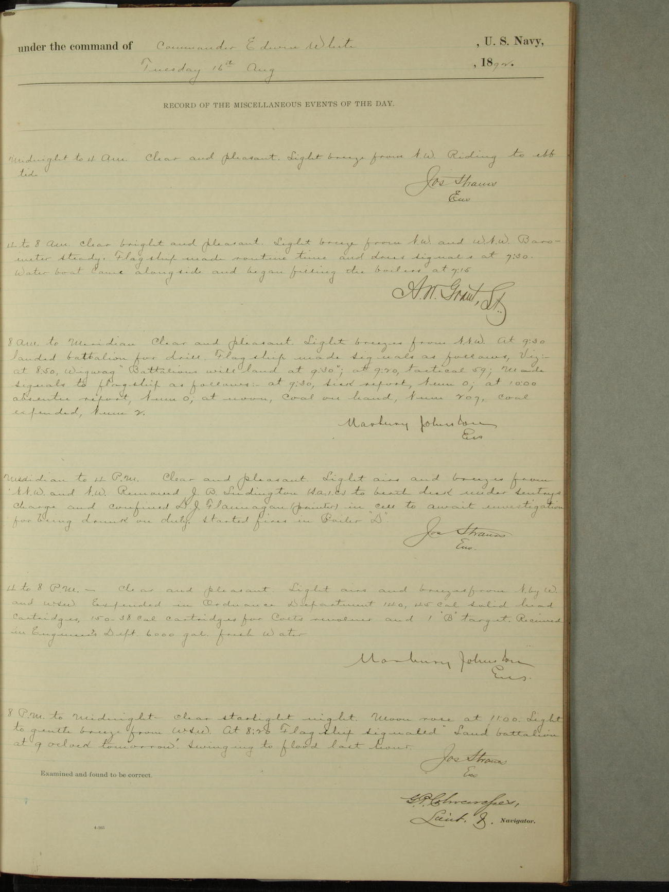 Examined and found to be correct. G. P. Ch????npes, Louit. G. Navigator