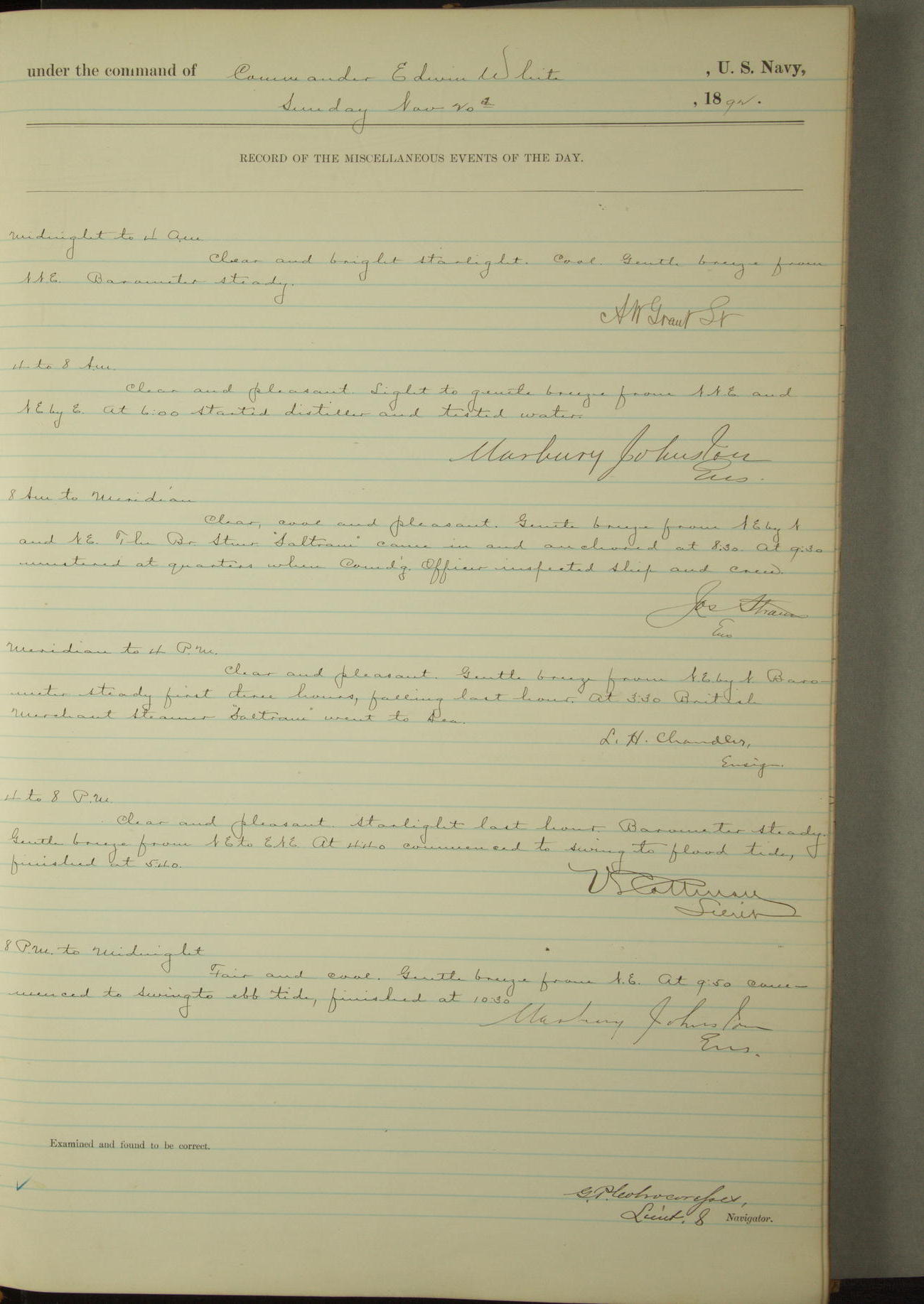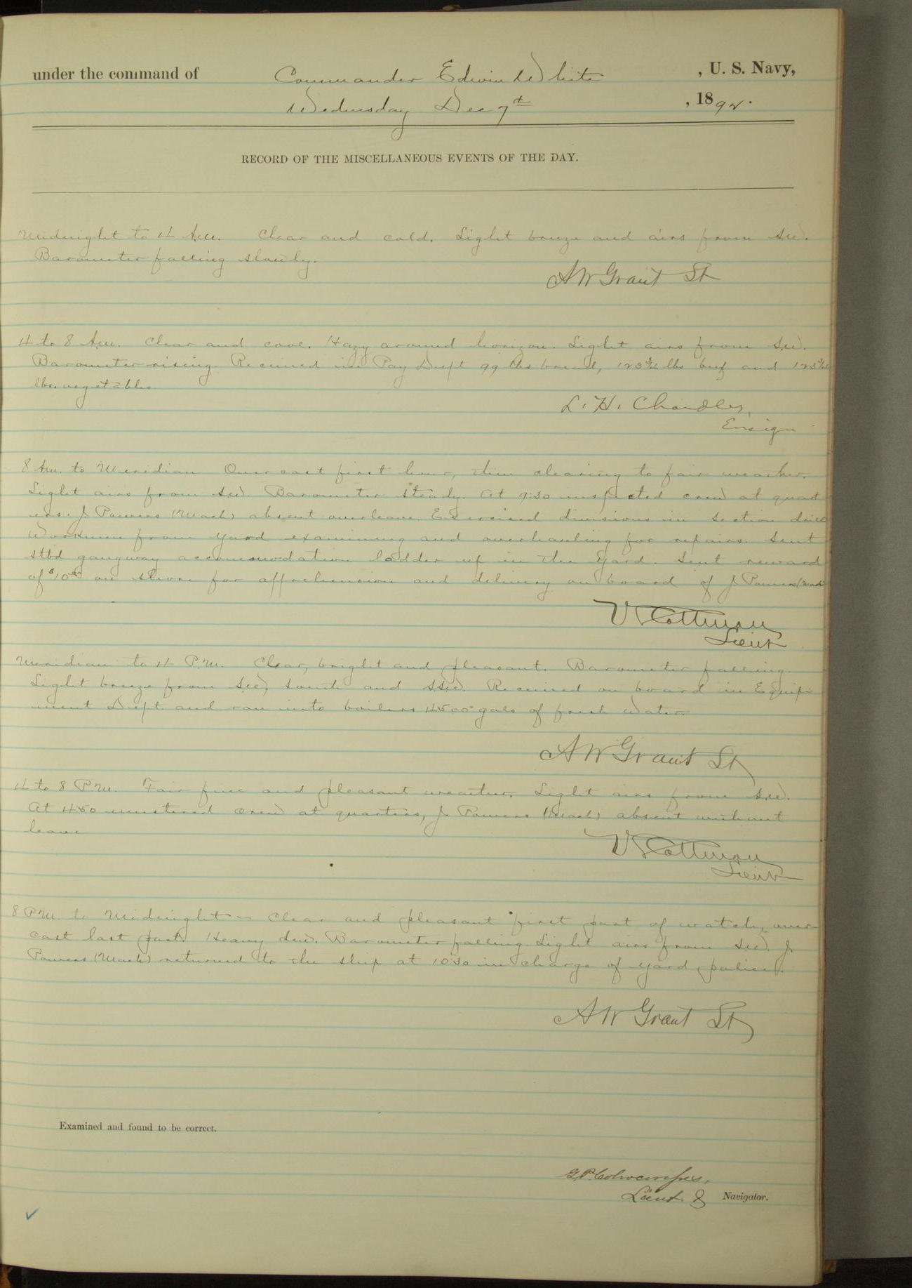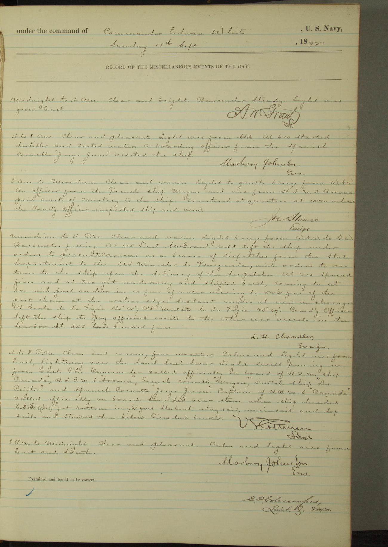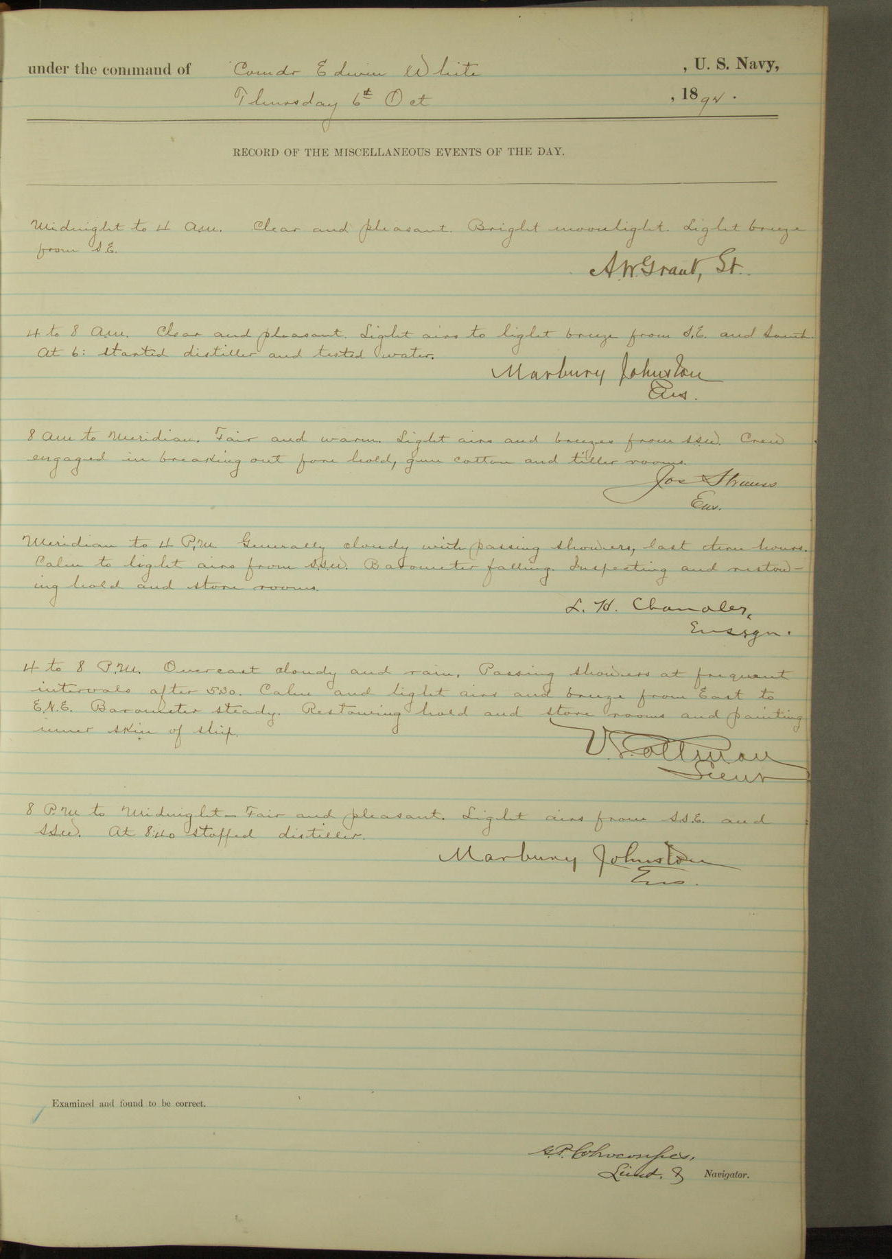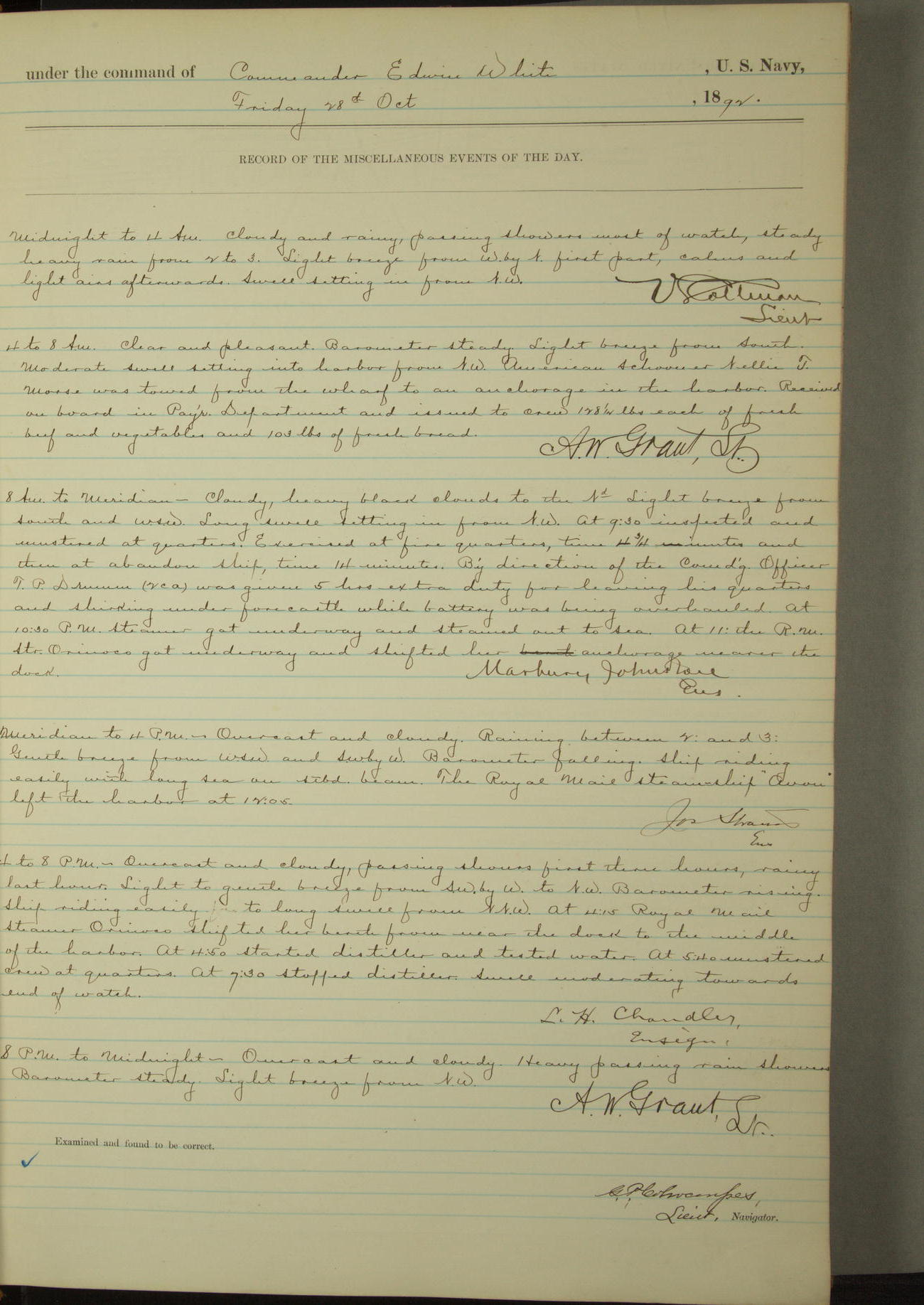 Examined and found to be correct. G. P. Ch????npes, Louit. G. Navigator