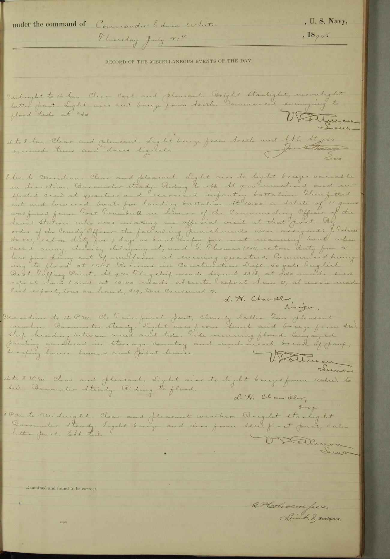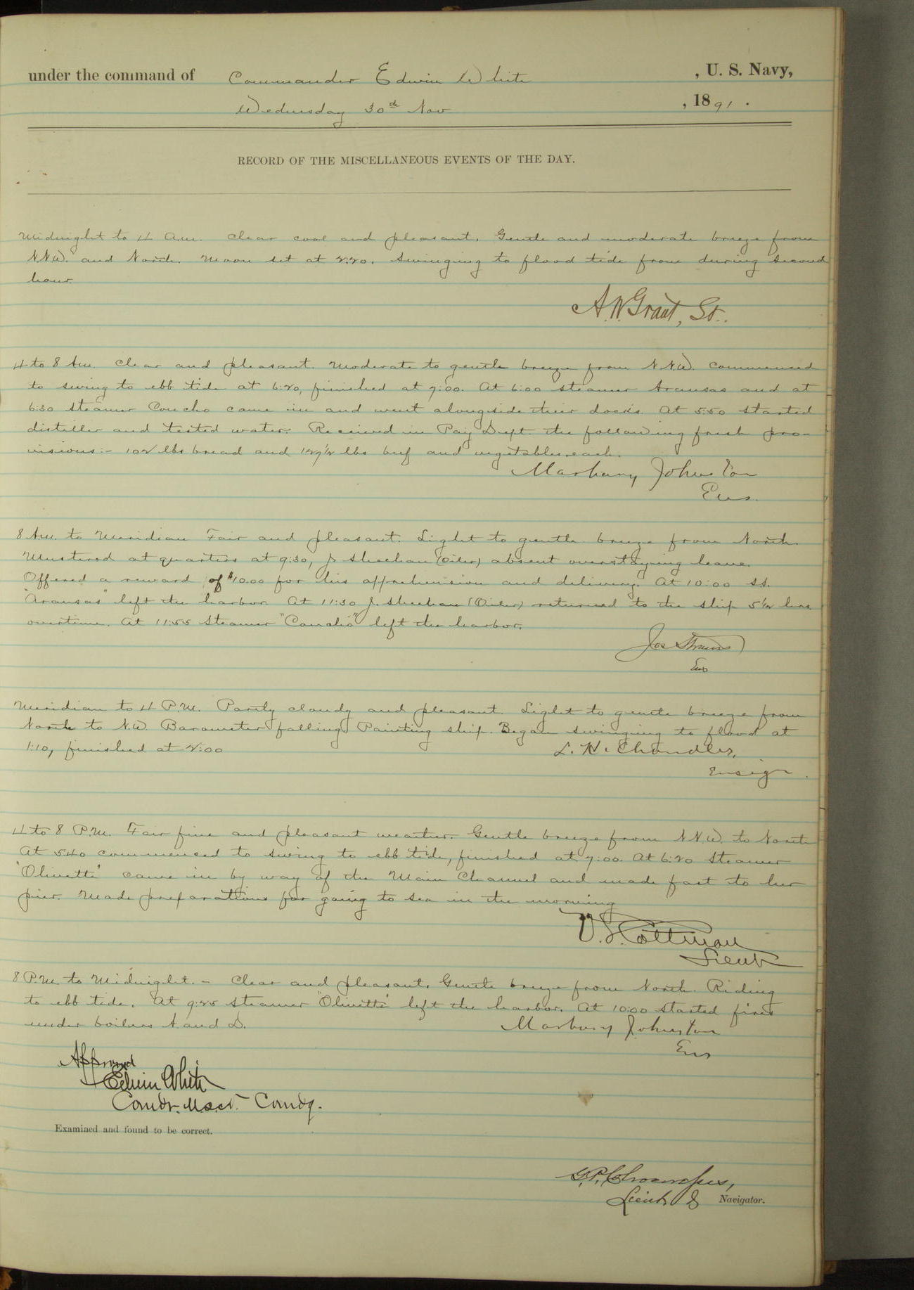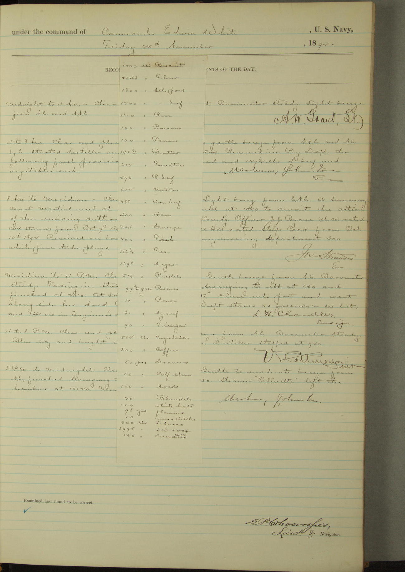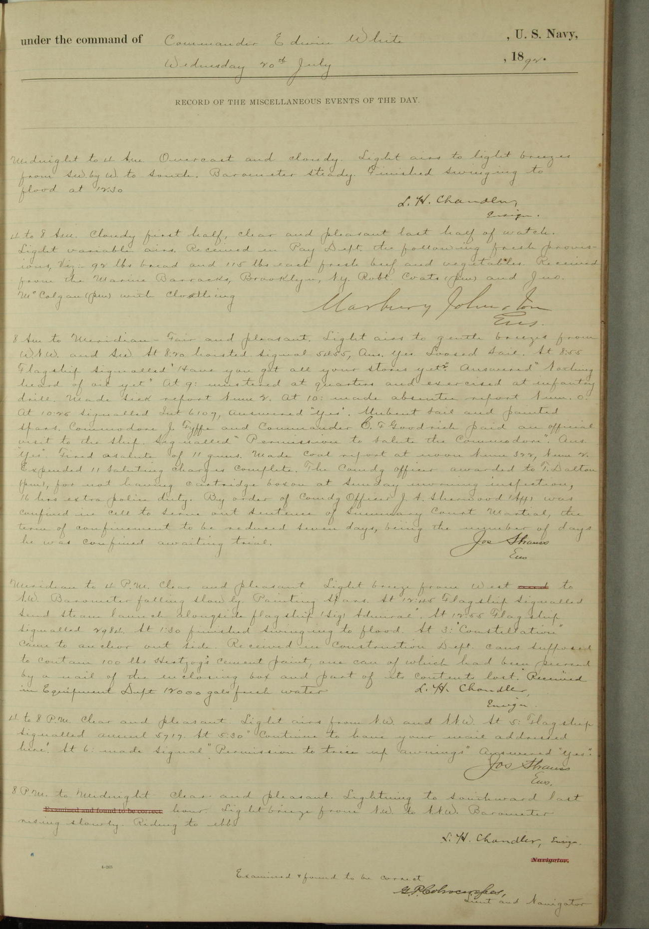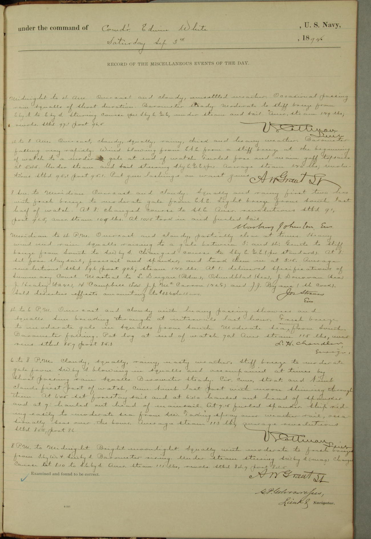 Examined and found to be correct. G. P. Ch????npes, Louit. G. Navigator