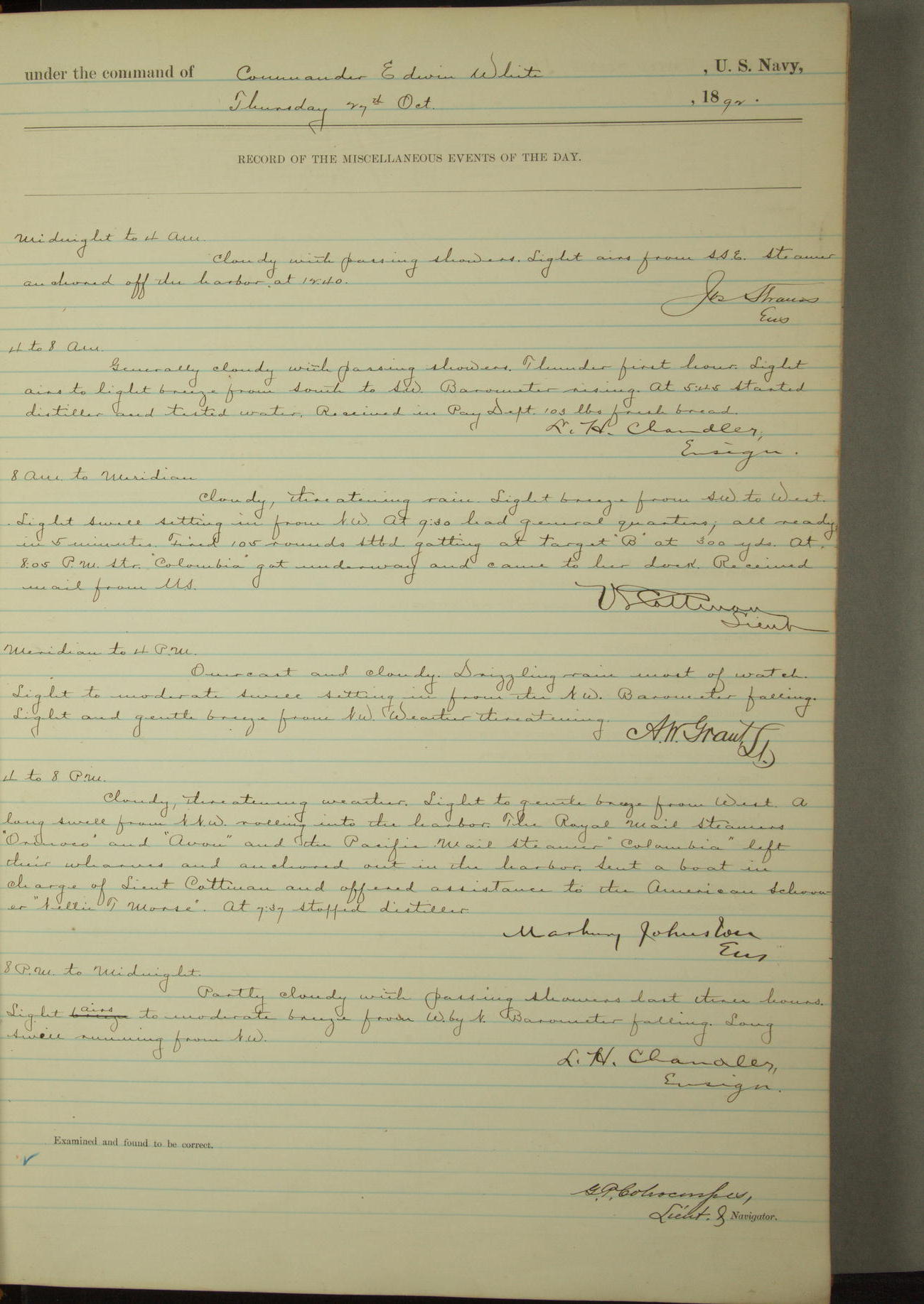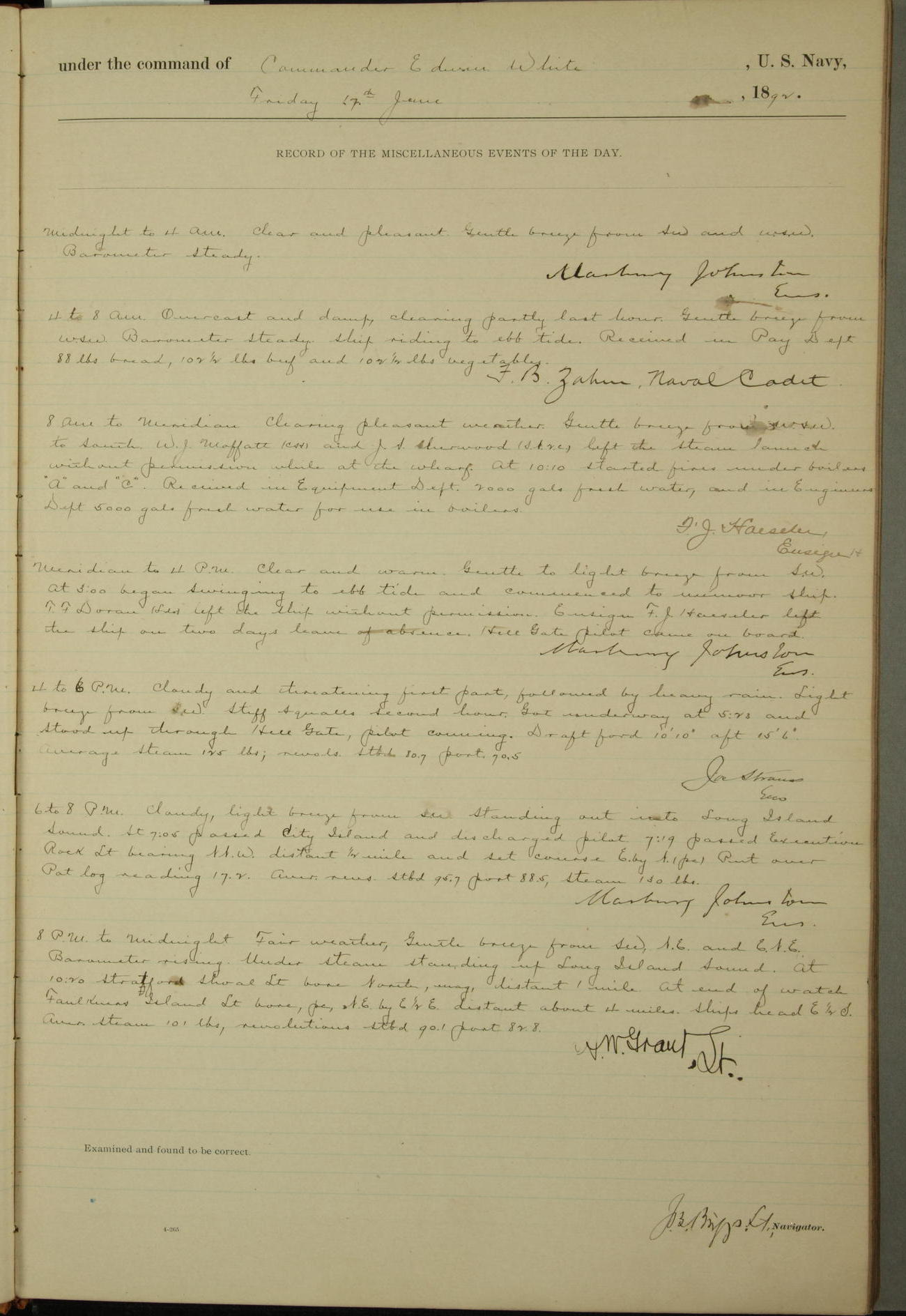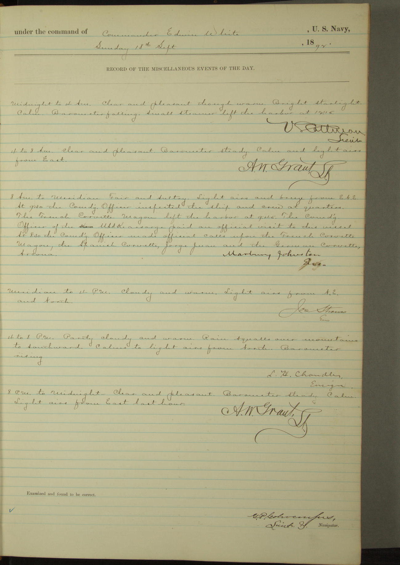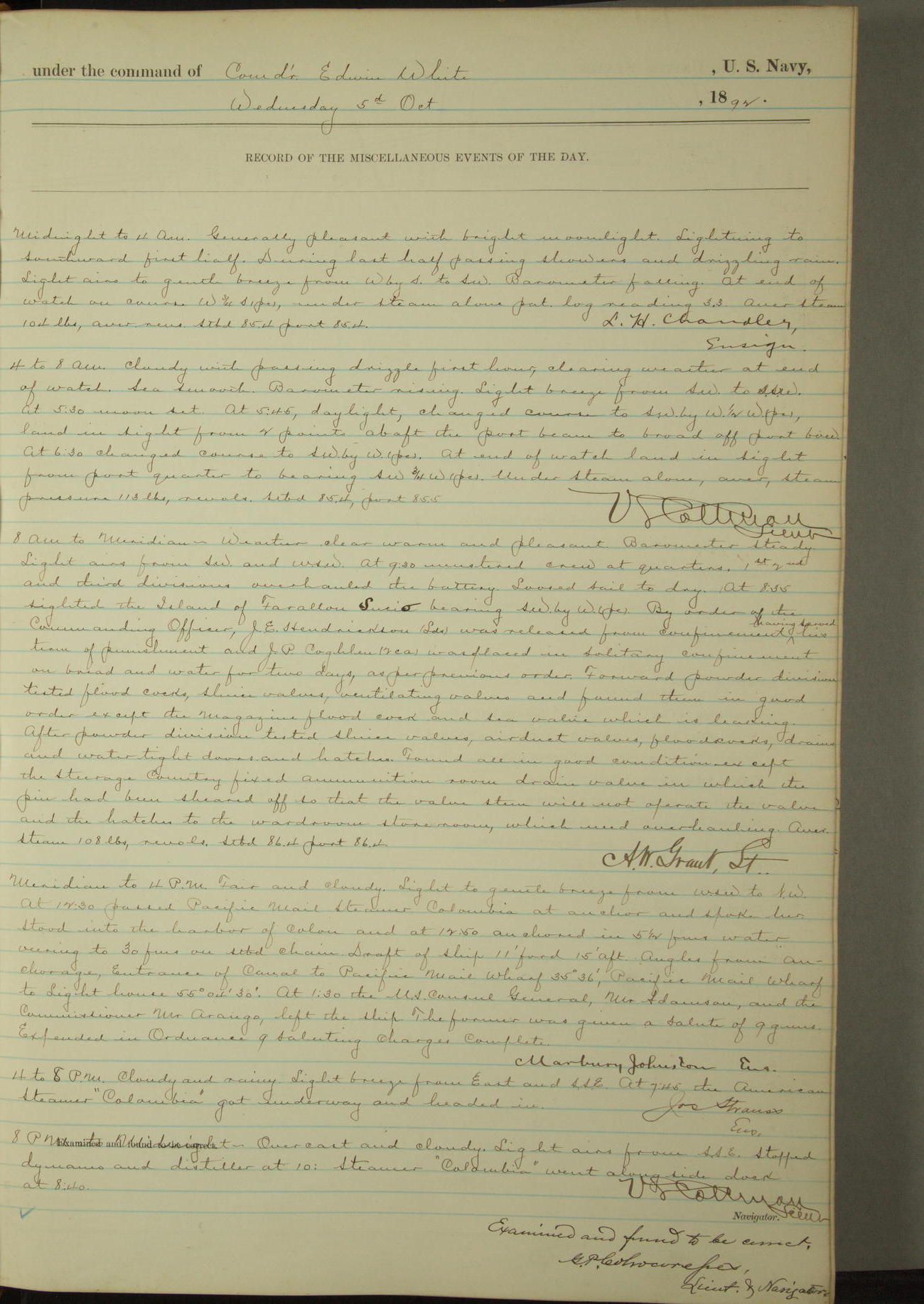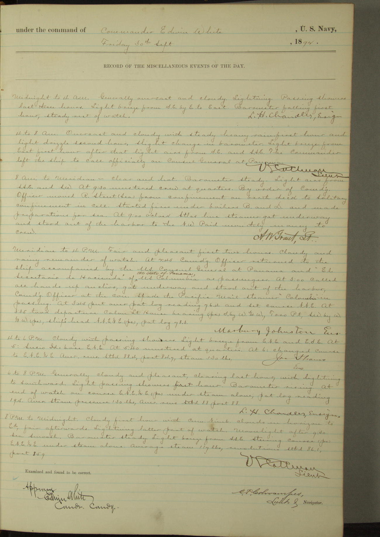 Examined and found to be correct. G. P. Ch????npes, Louit. G. Navigator
