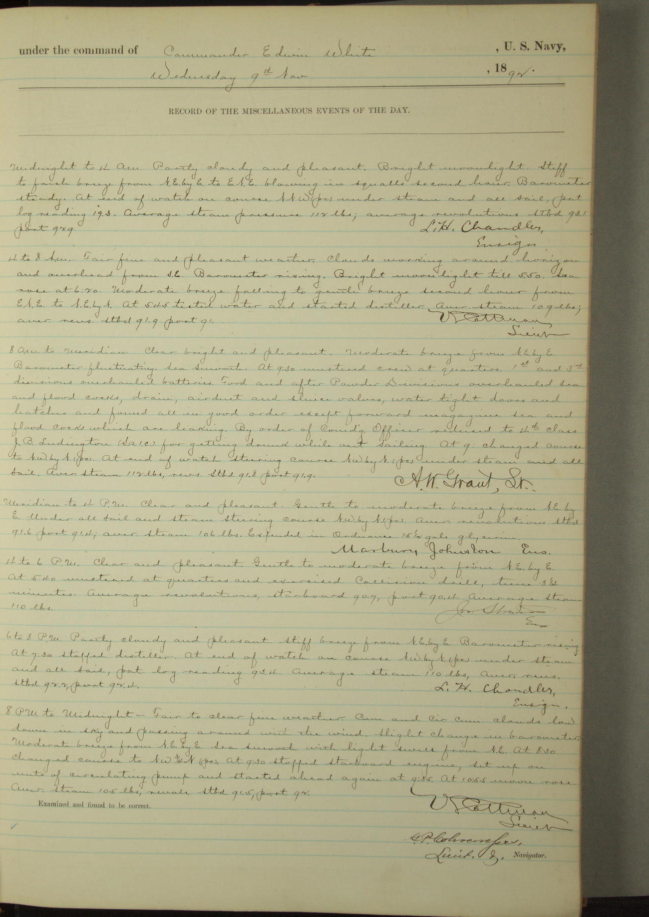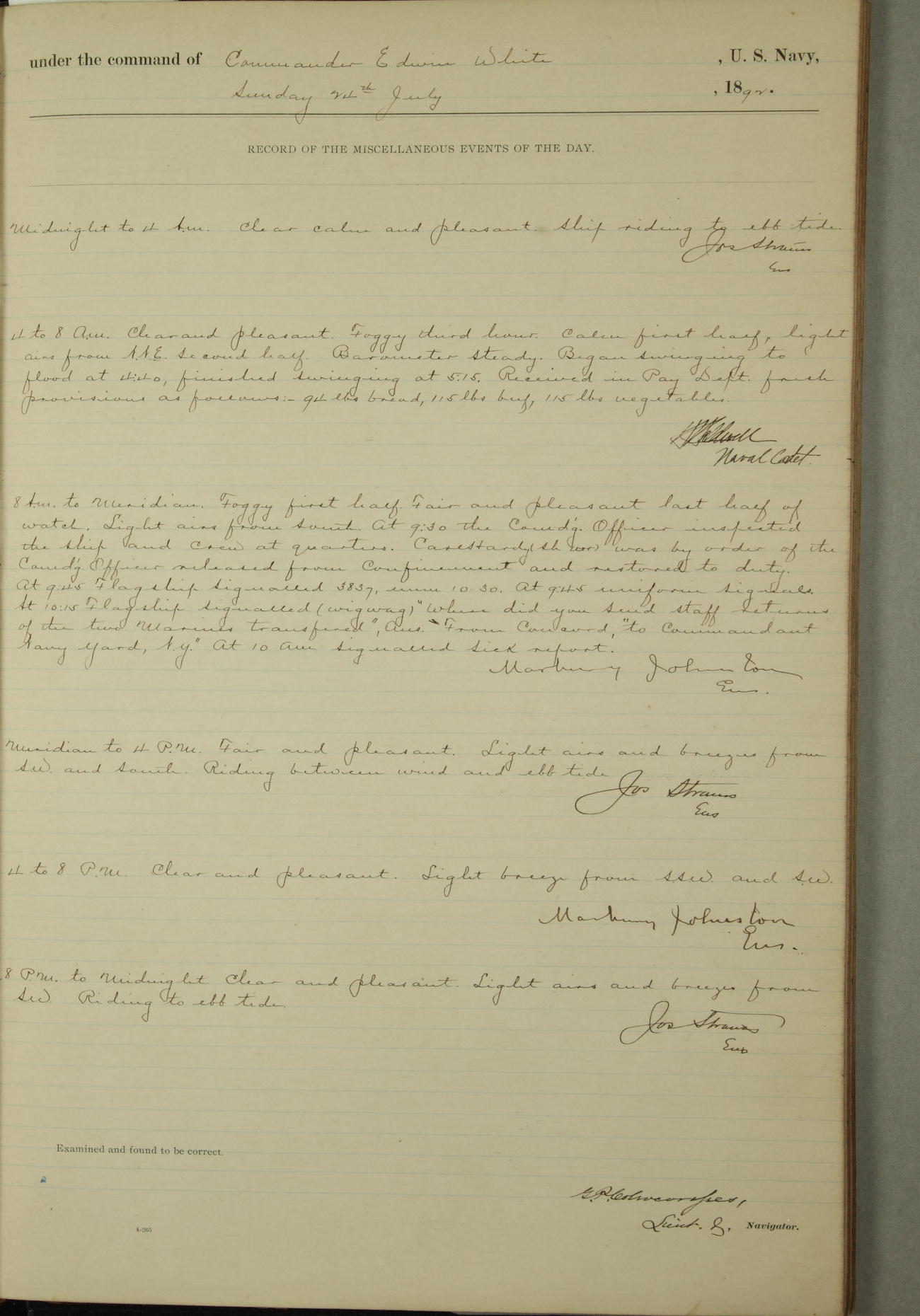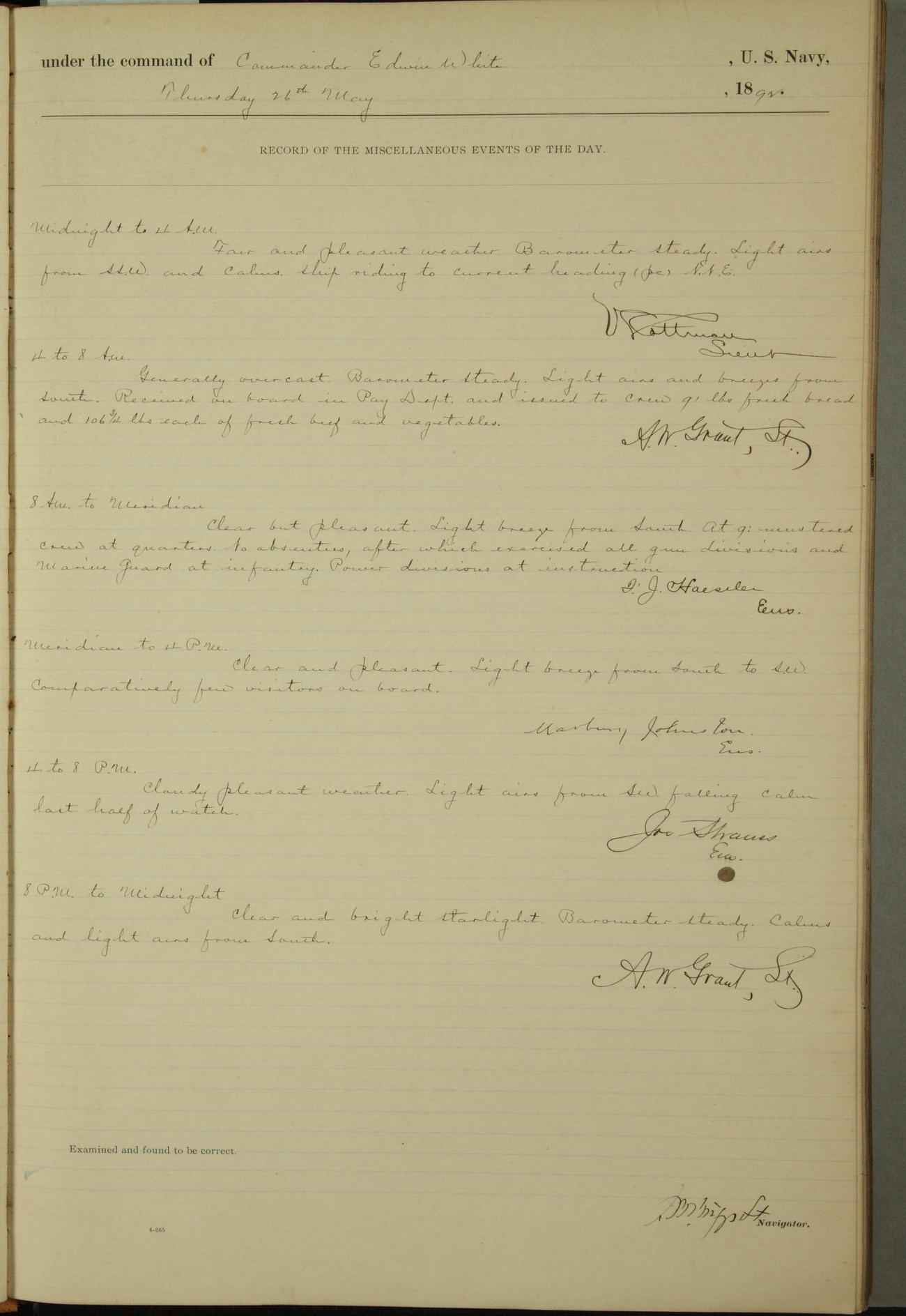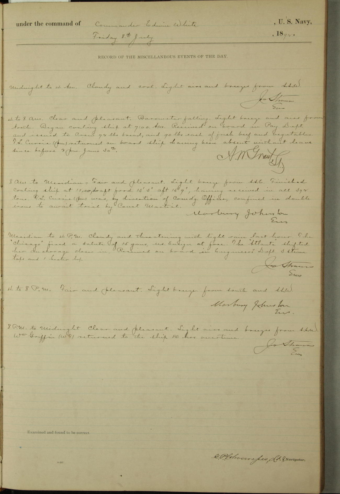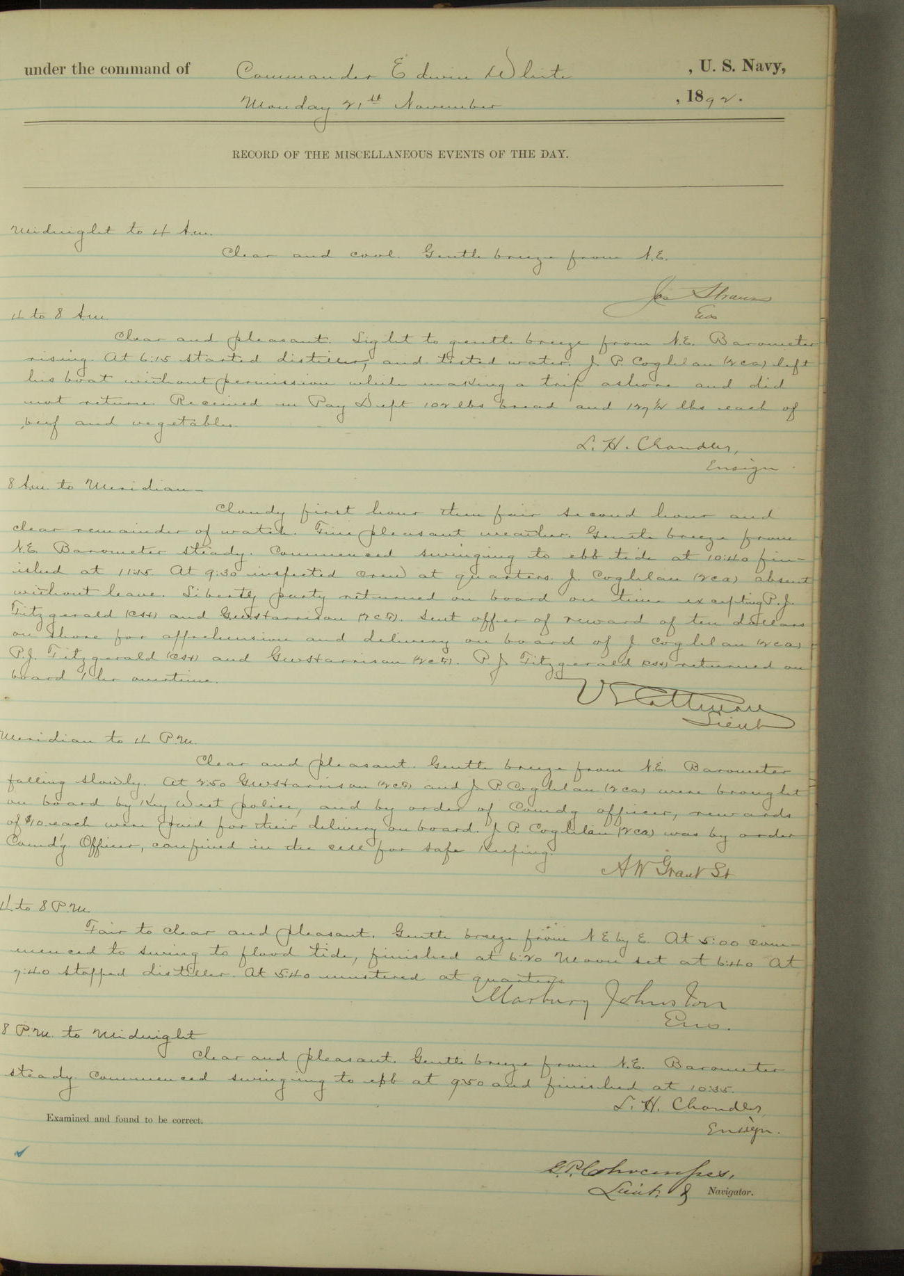Examined and found to be correct. G. P. Ch????npes, Louit. G. Navigator