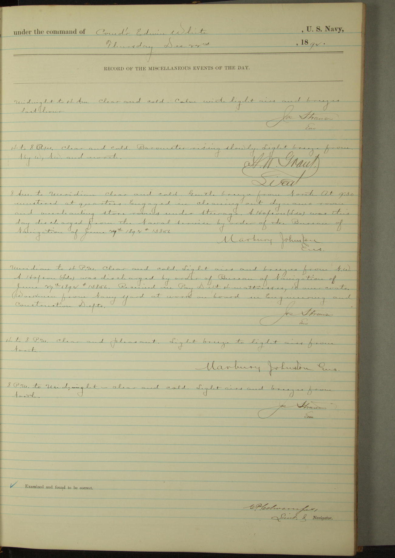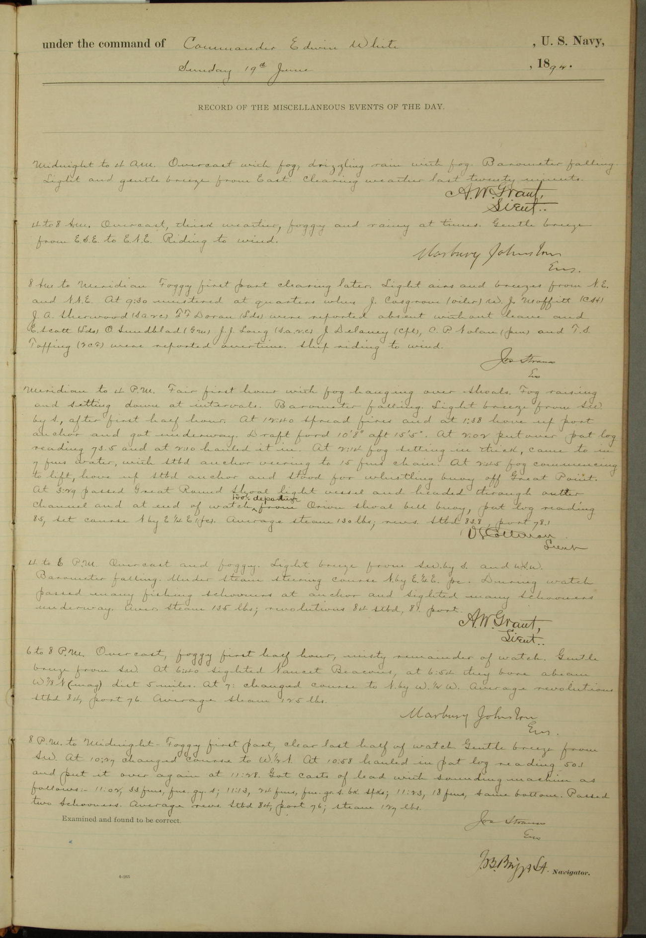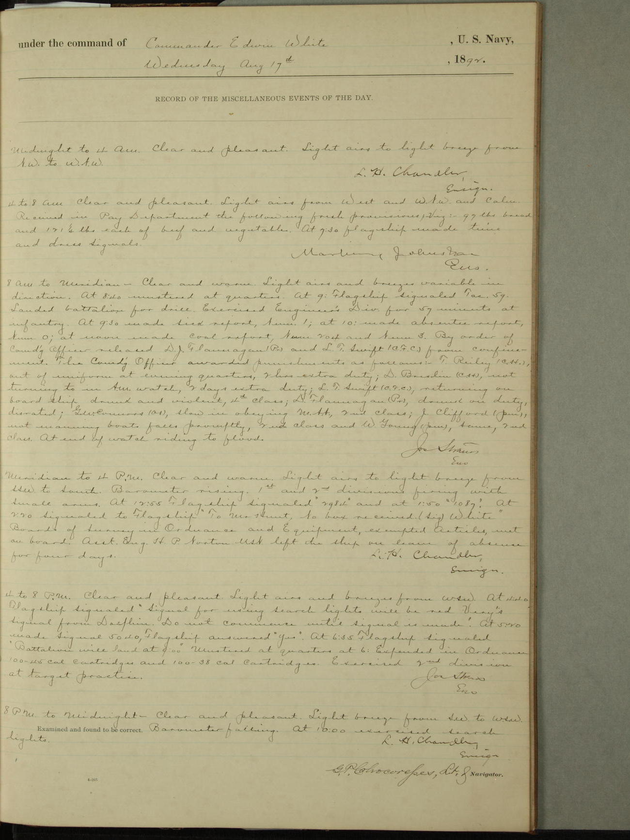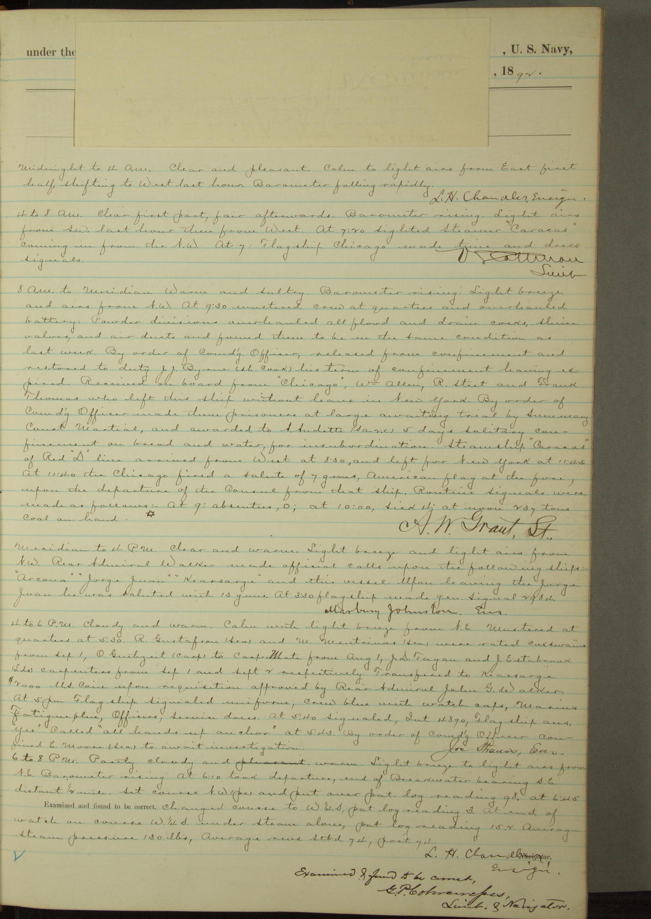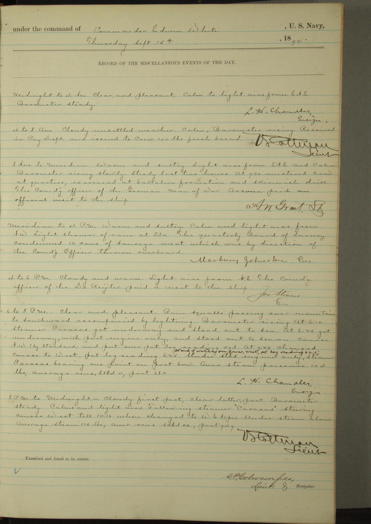 Examined and found to be correct. G. P. Ch????npes, Louit. G. Navigator