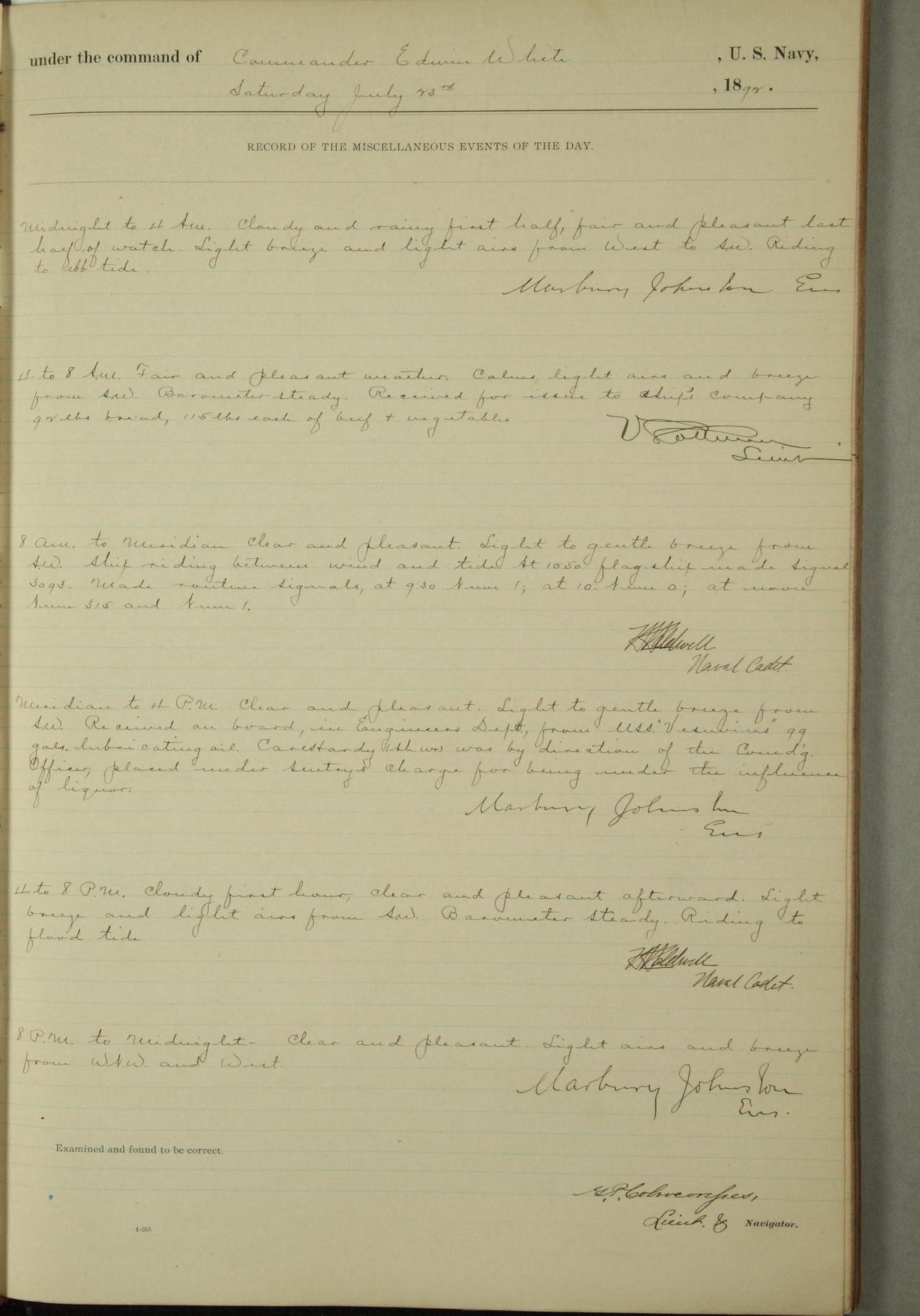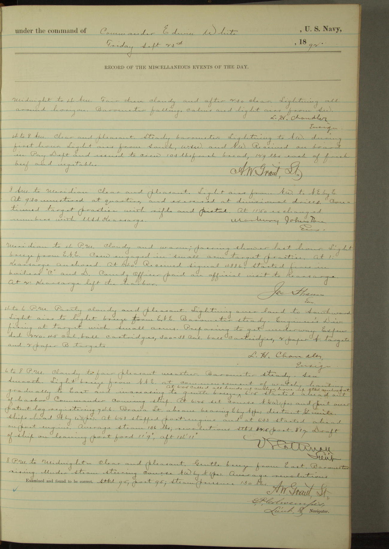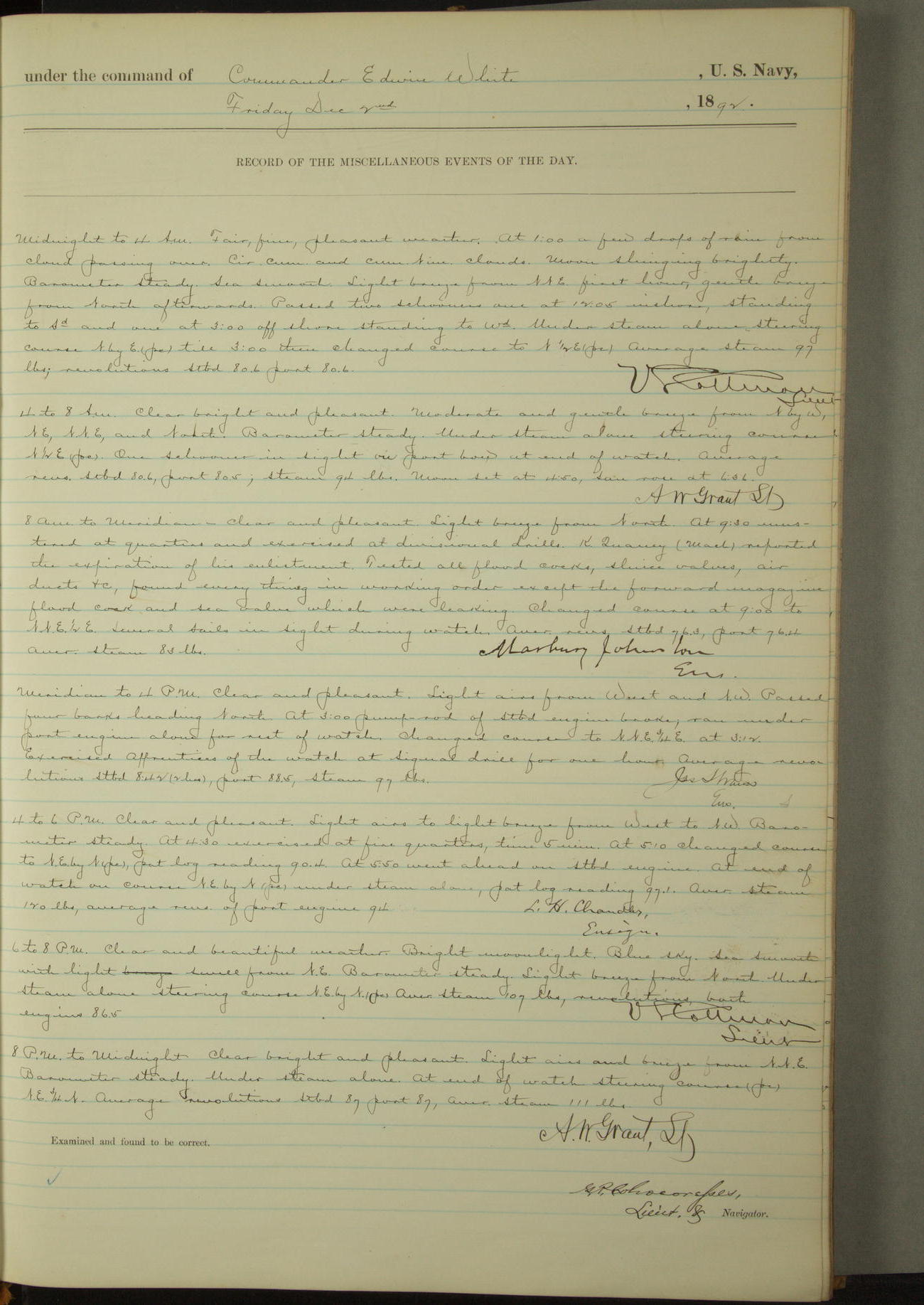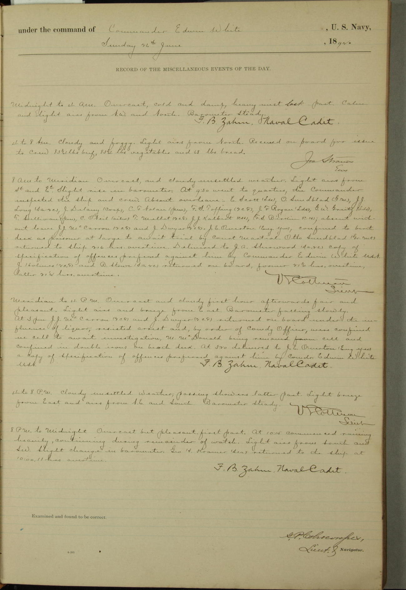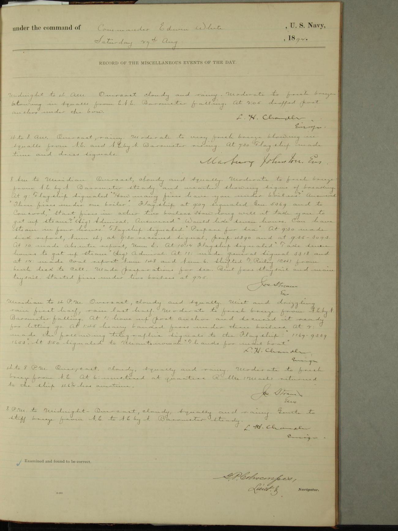 Examined and found to be correct. G. P. Ch????npes, Louit. G. Navigator