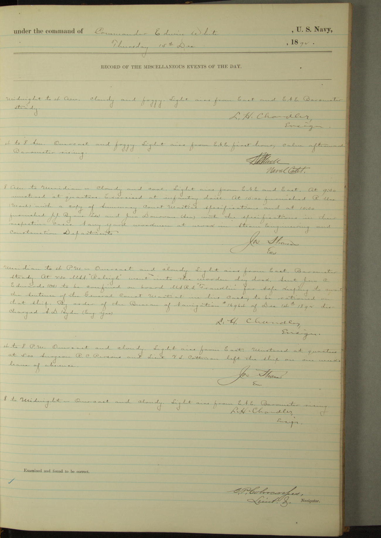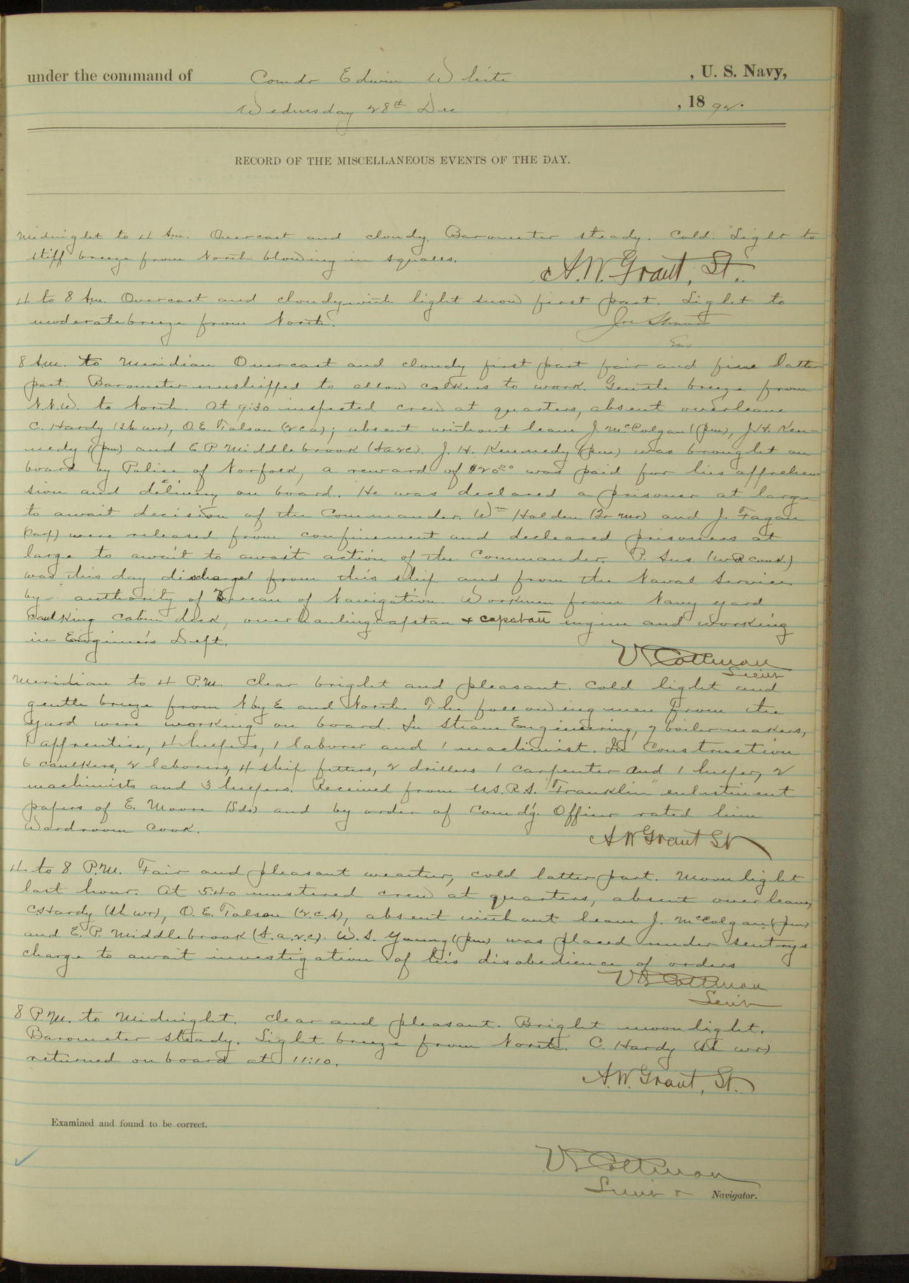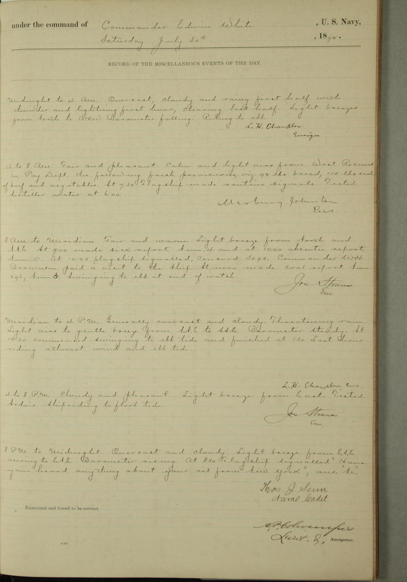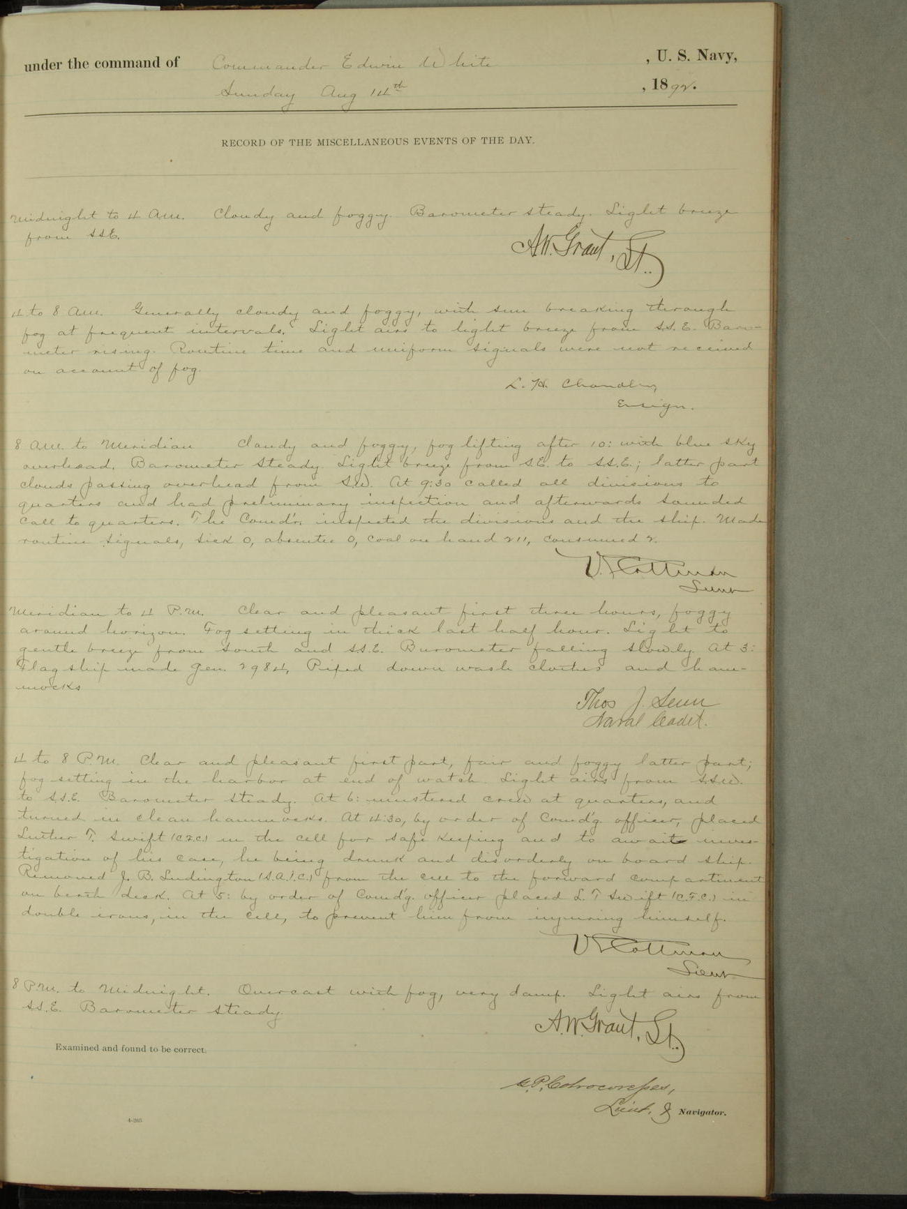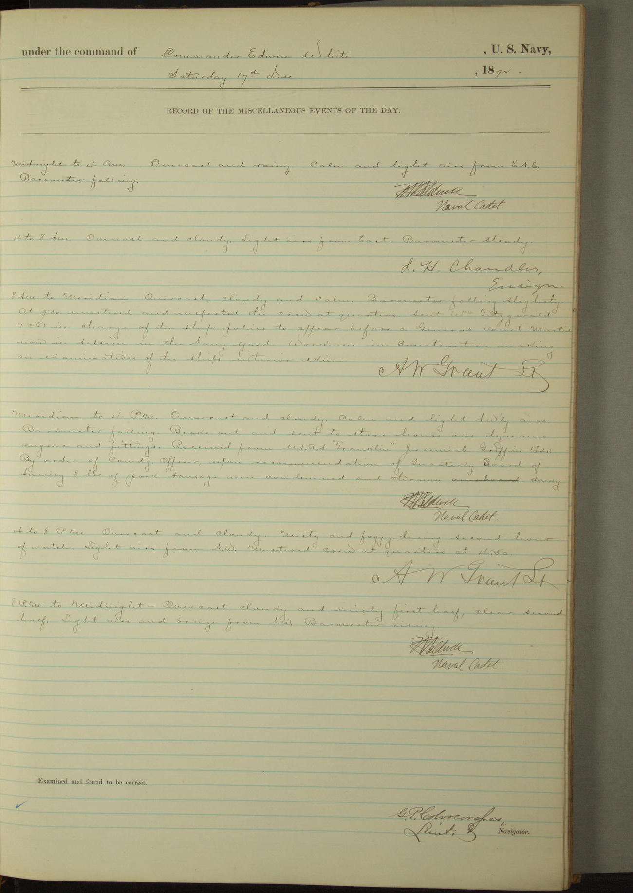 Examined and found to be correct. G. P. Ch????npes, Louit. G. Navigator