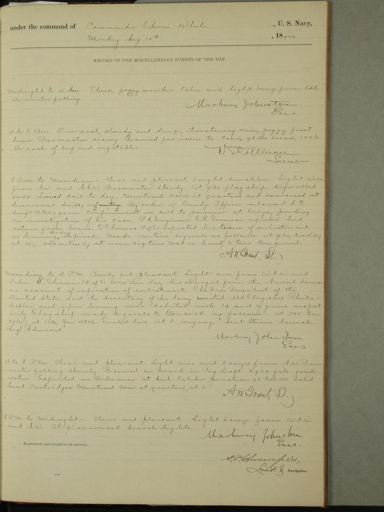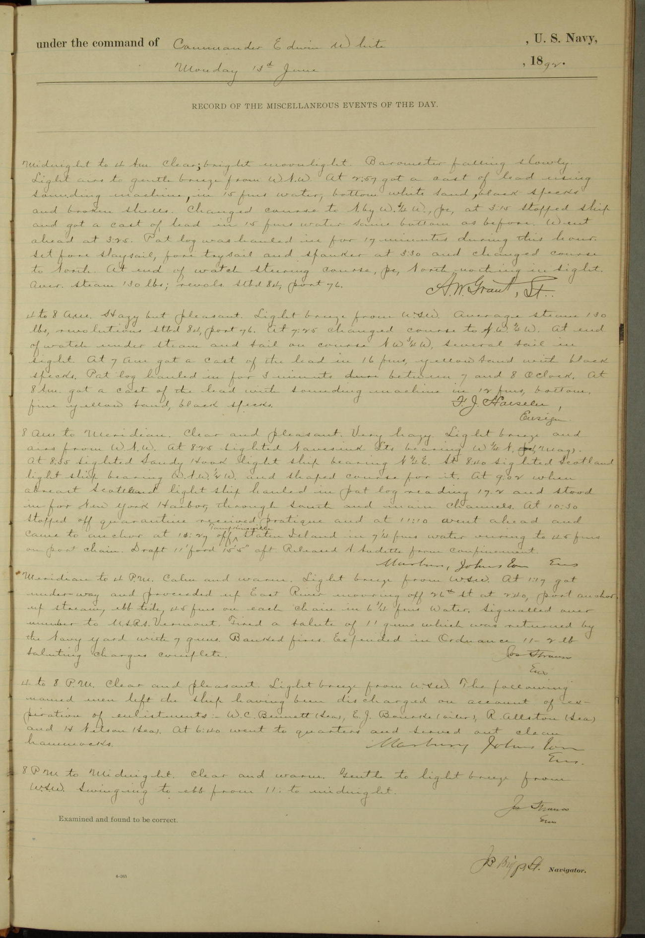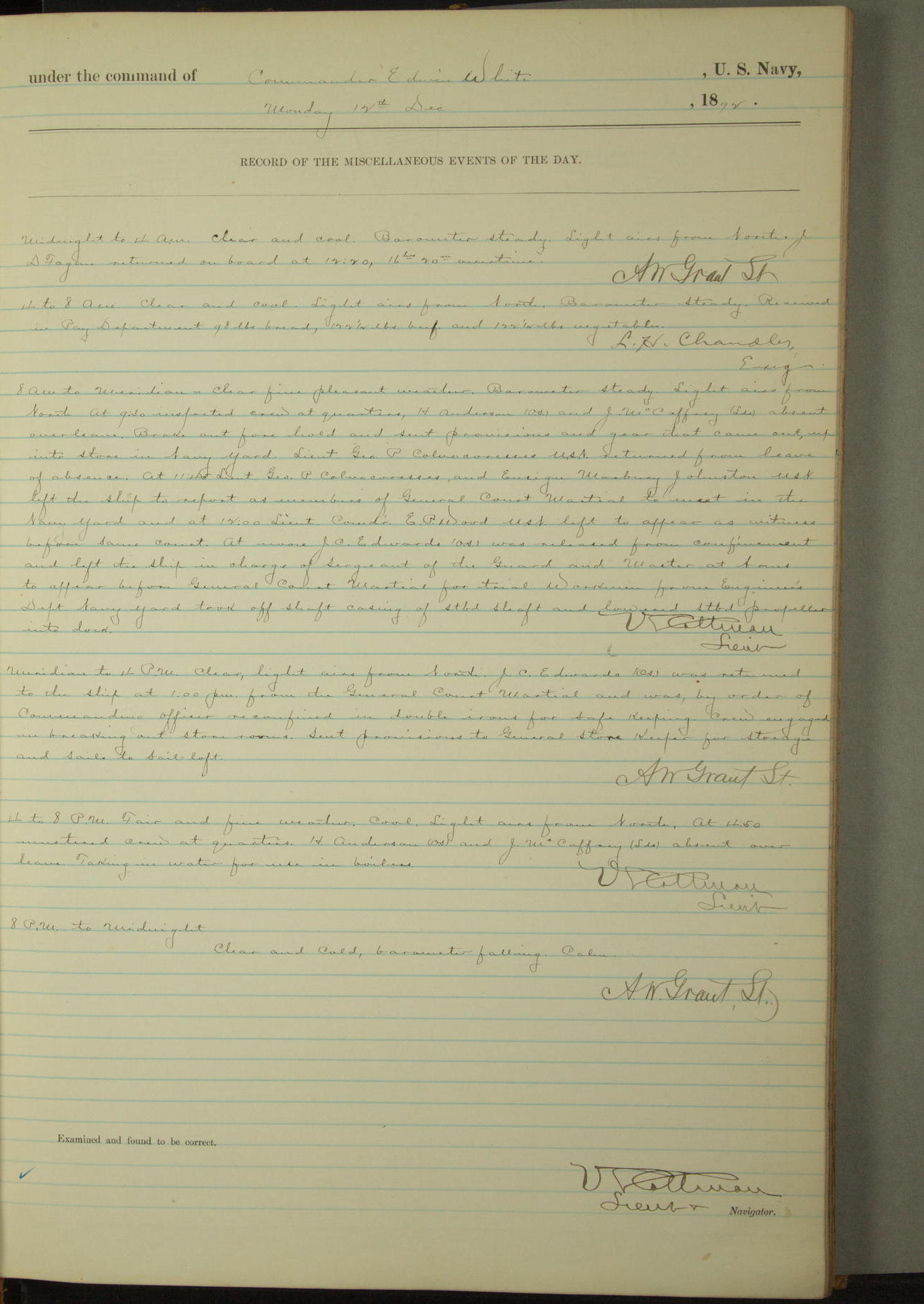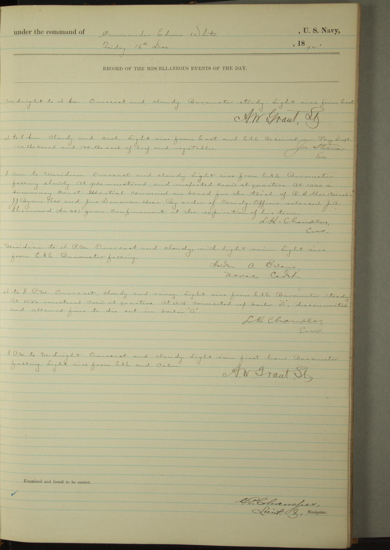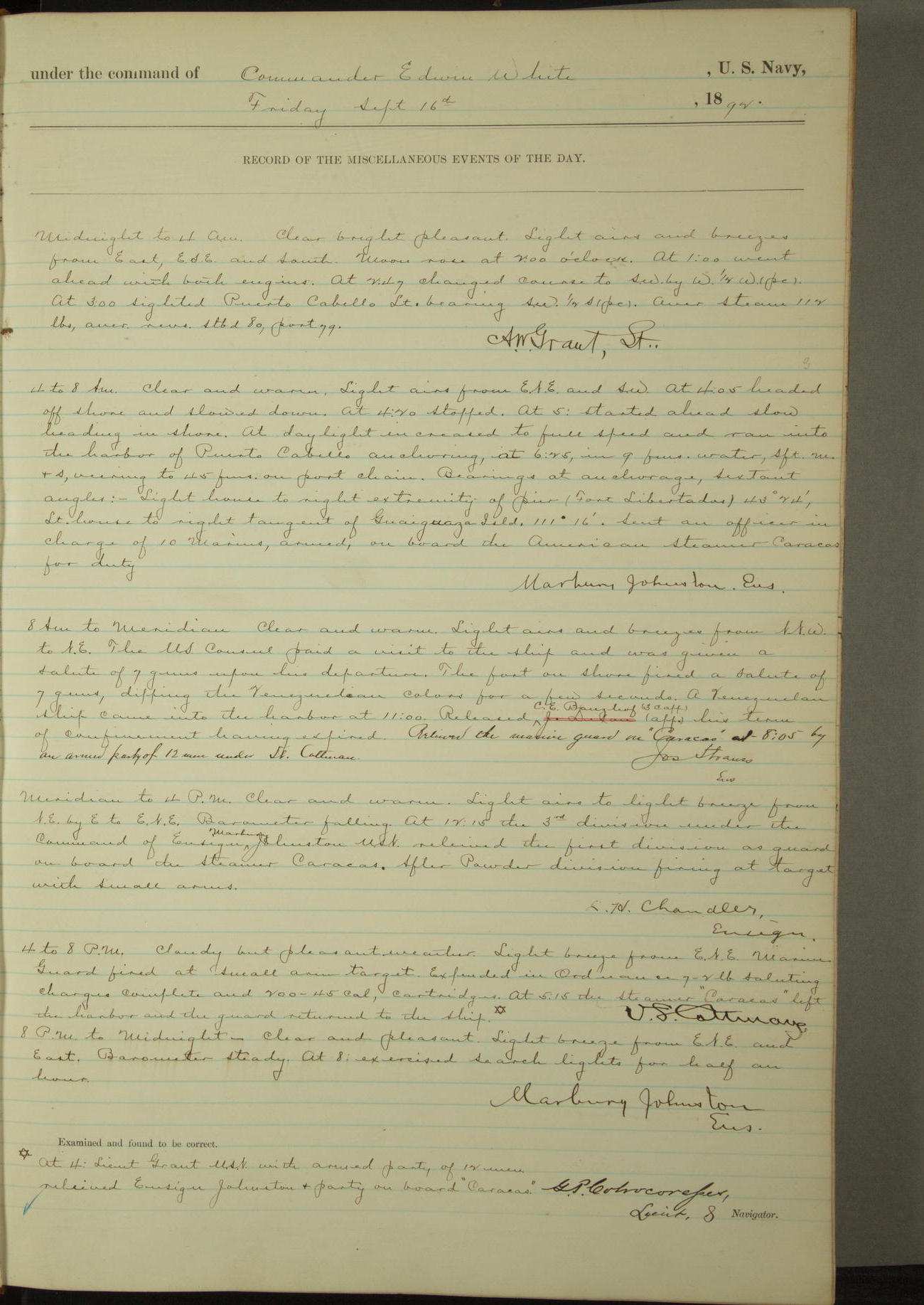 Examined and found to be correct. G. P. Ch????npes, Louit. G. Navigator