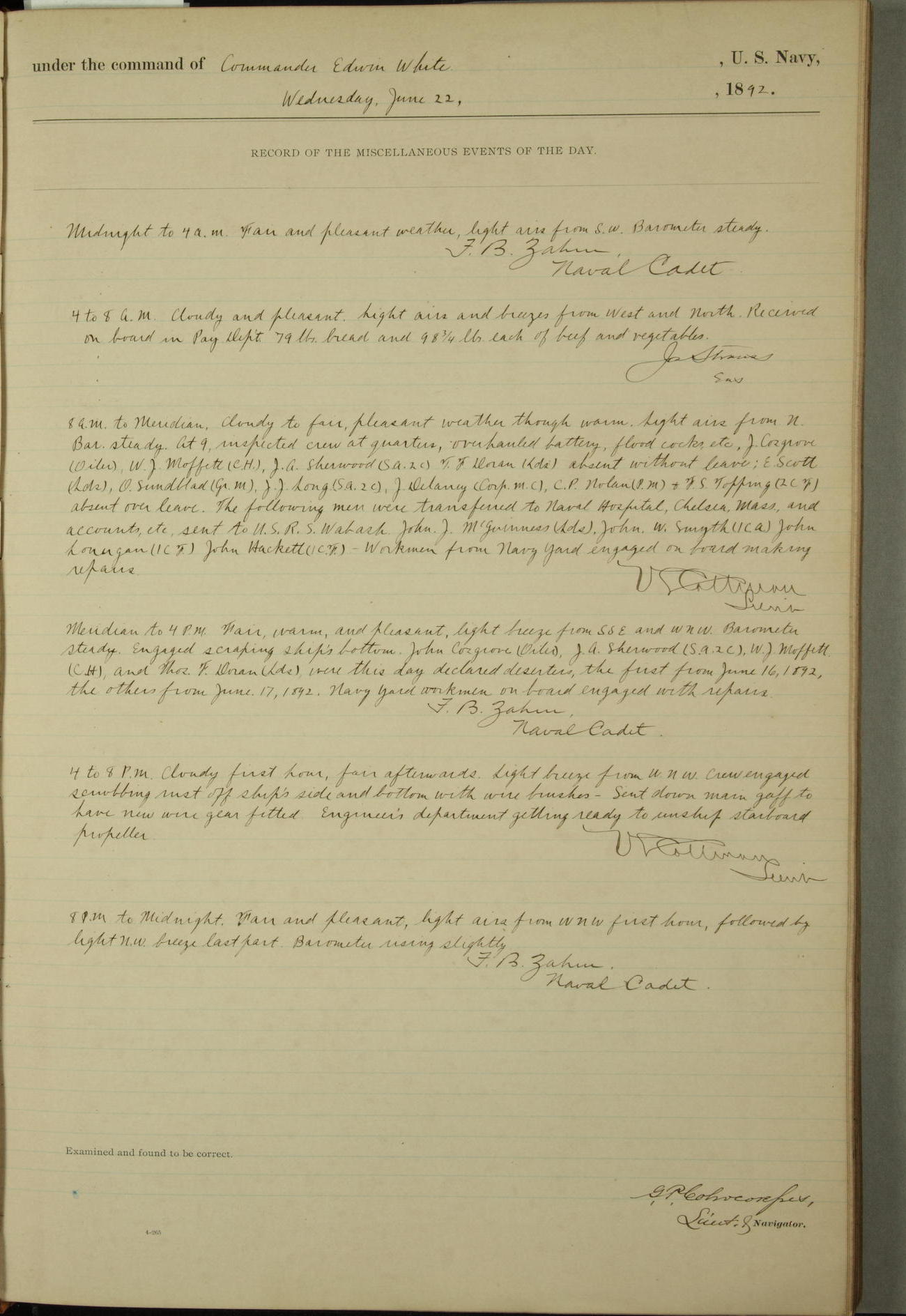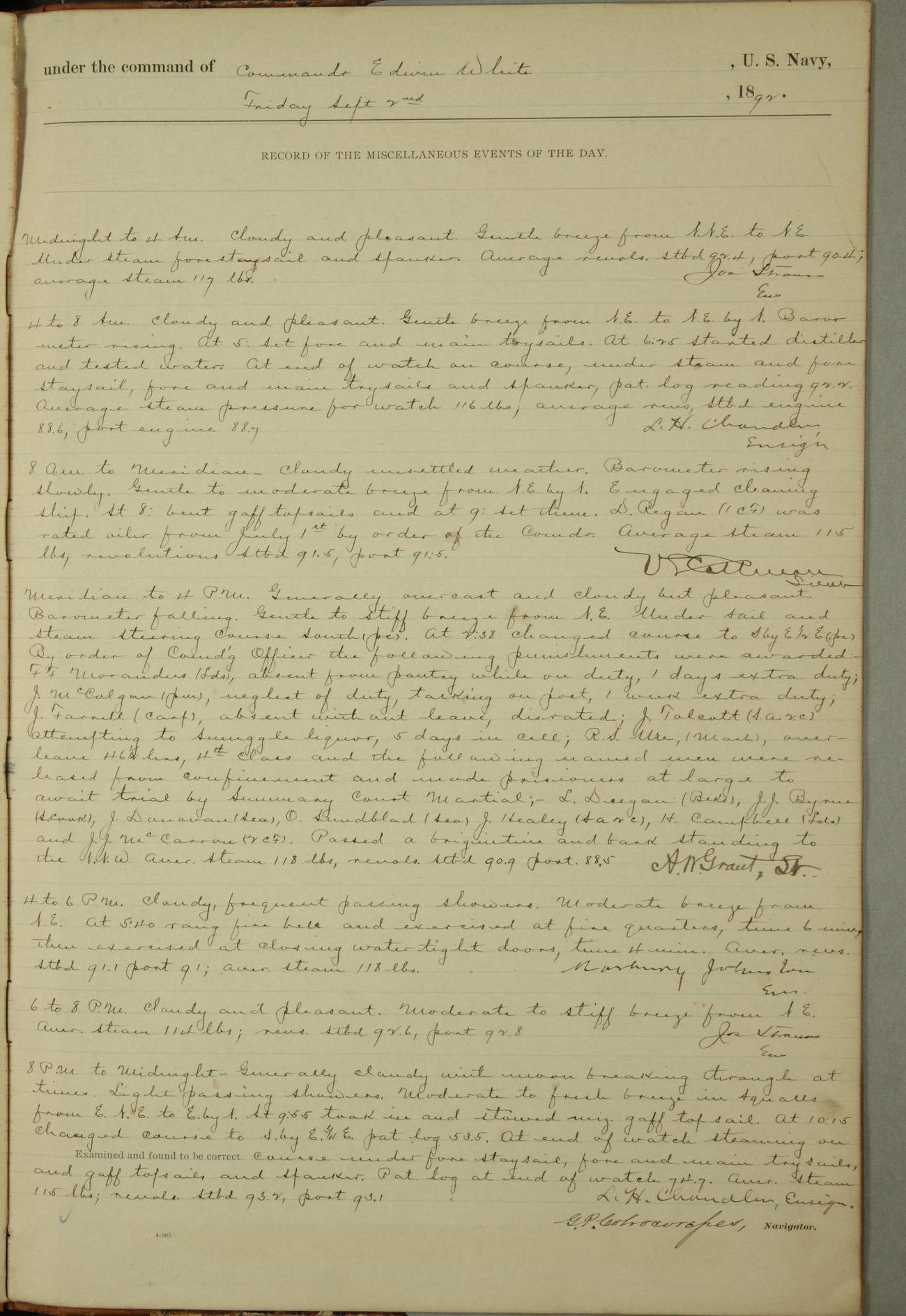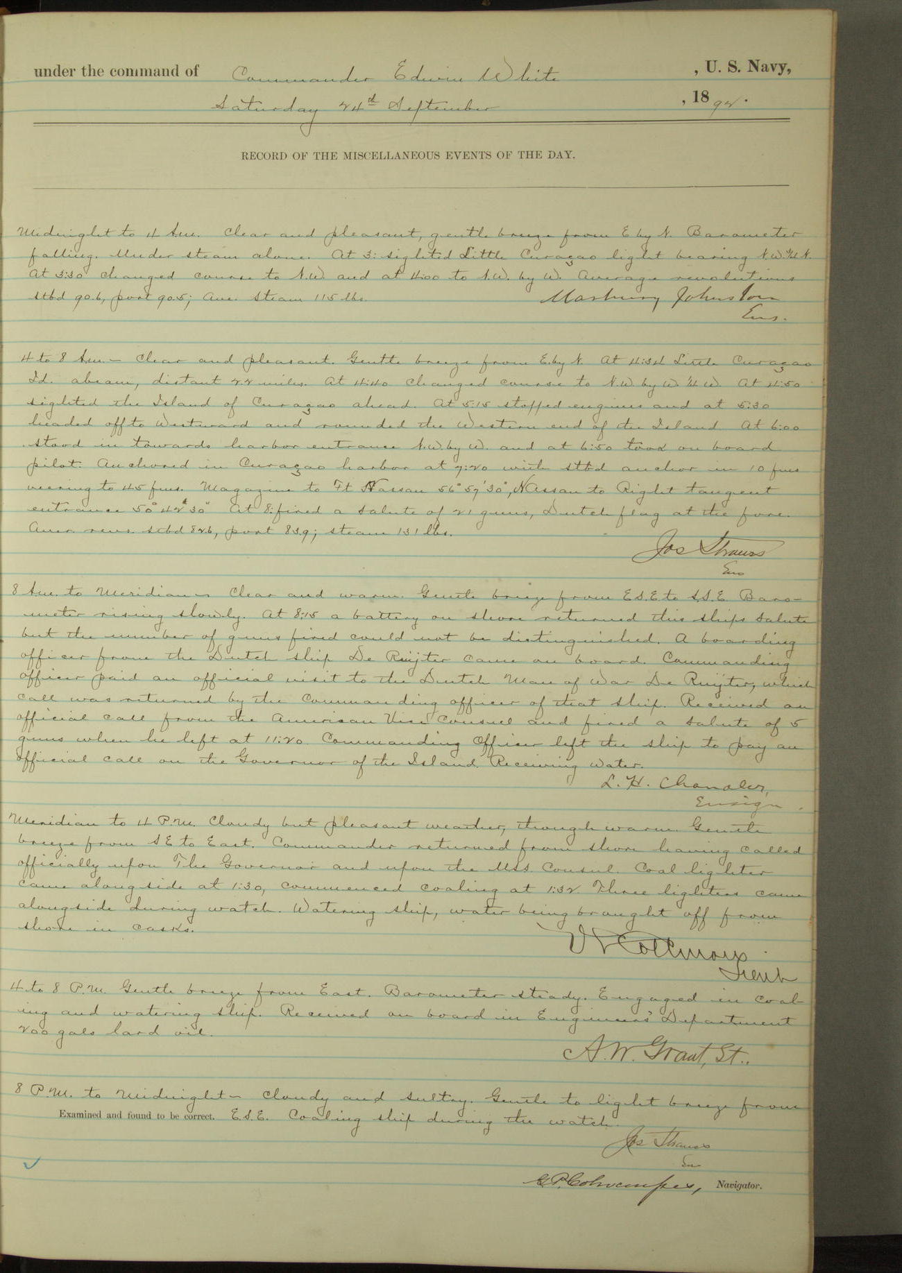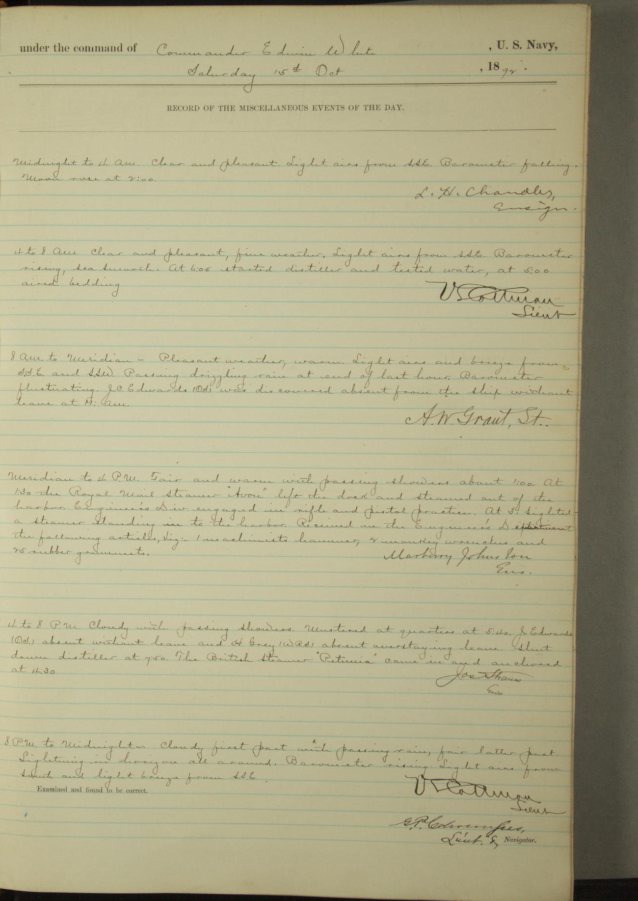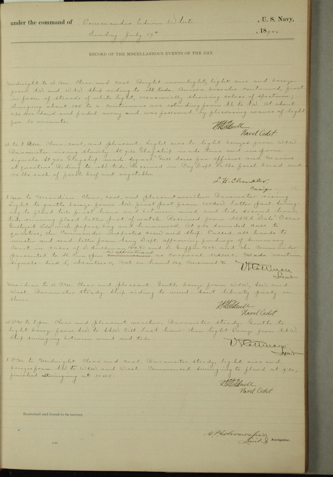 Examined and found to be correct. G. P. Ch????npes, Louit. G. Navigator