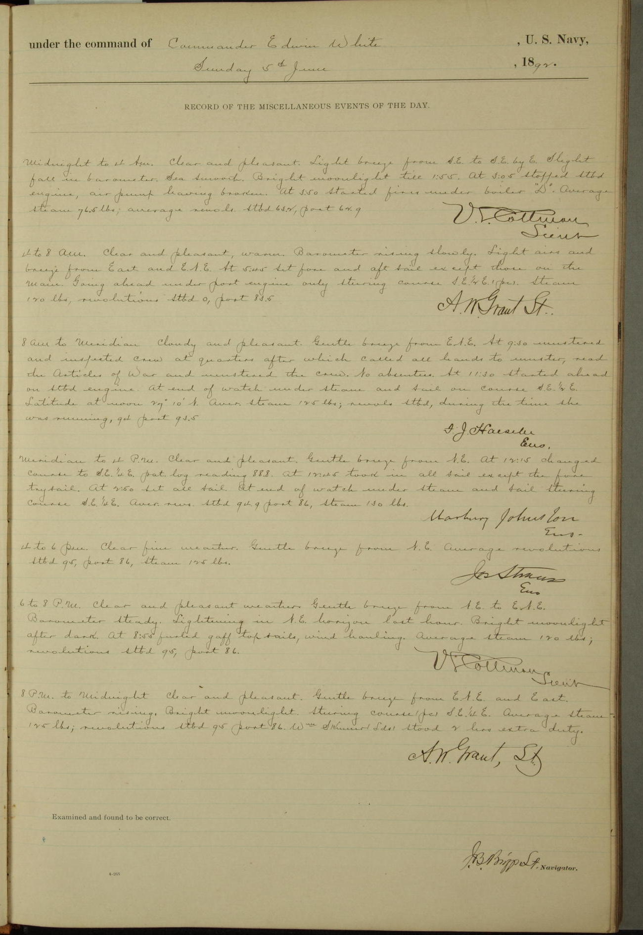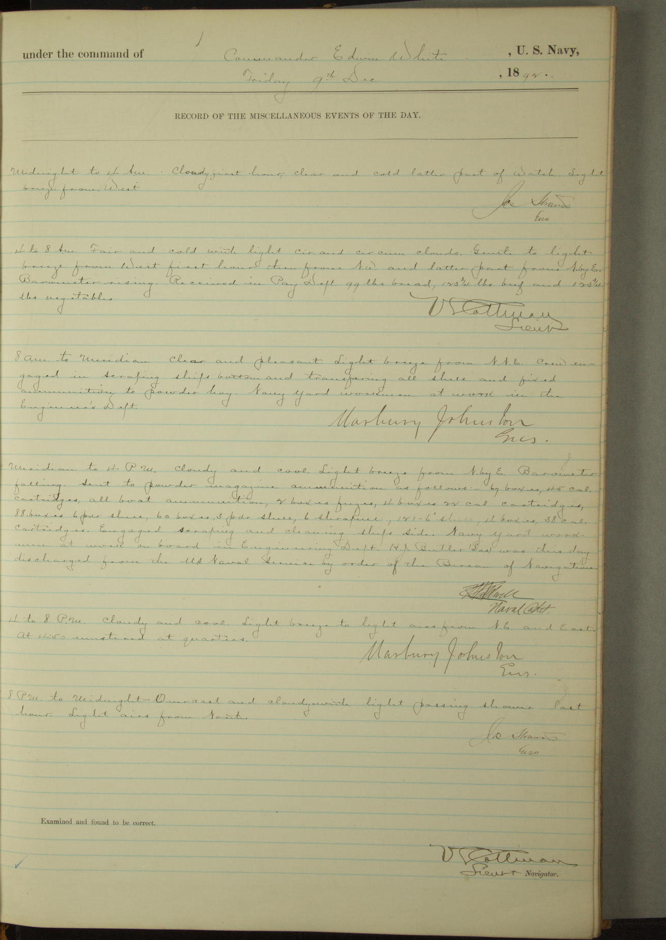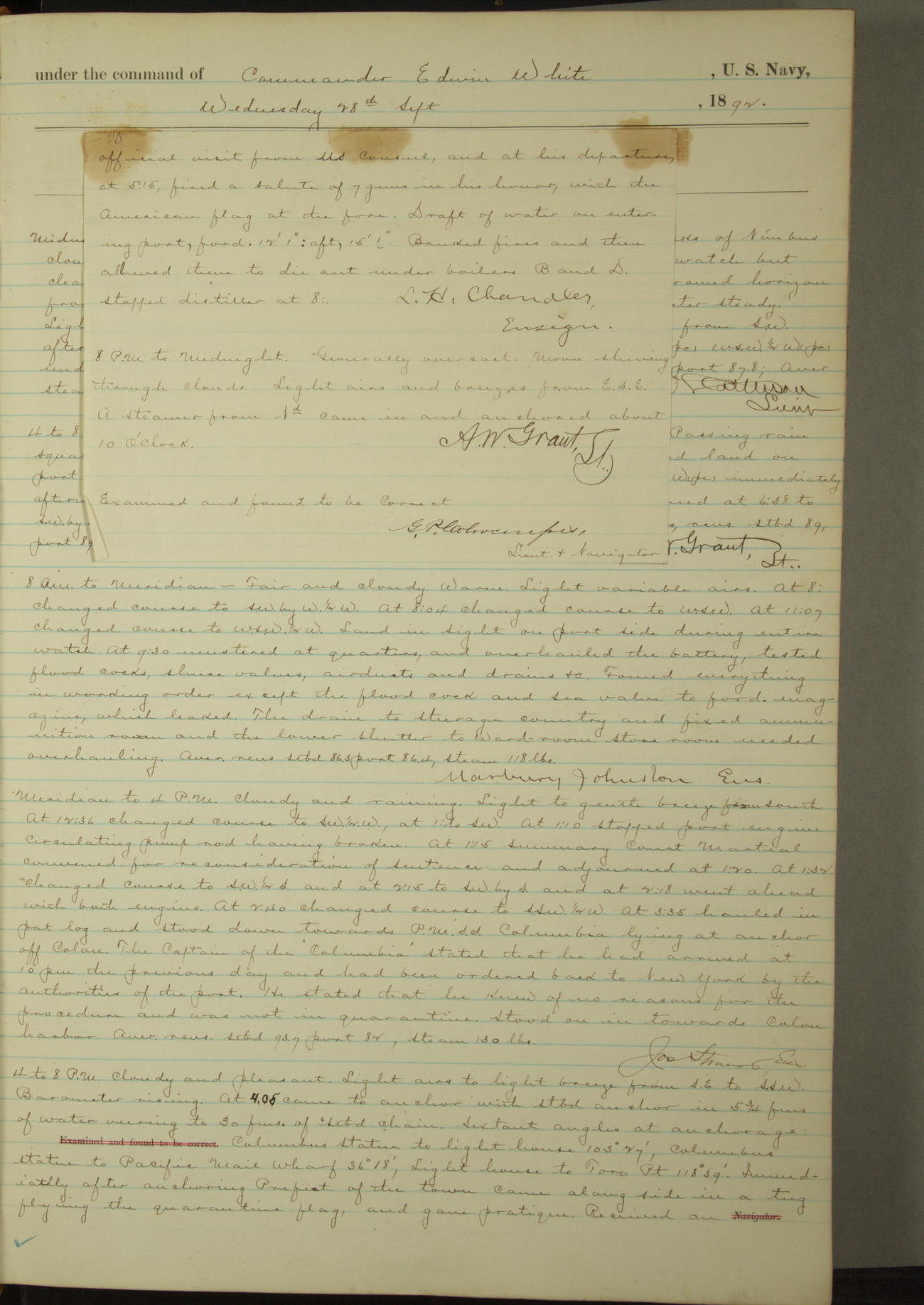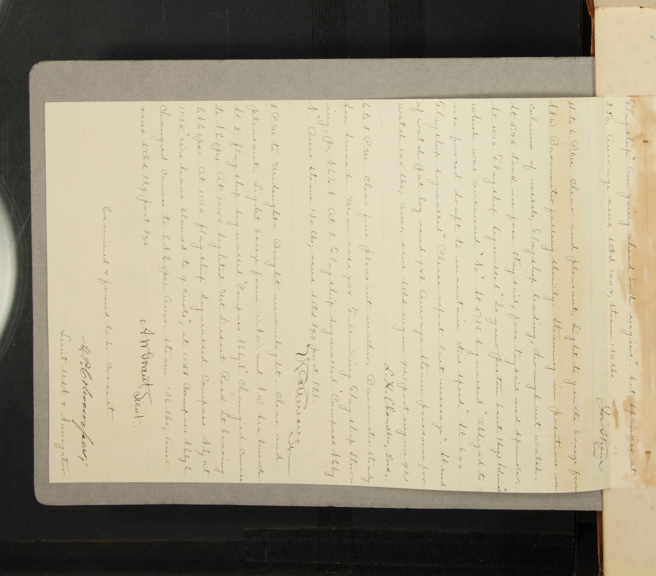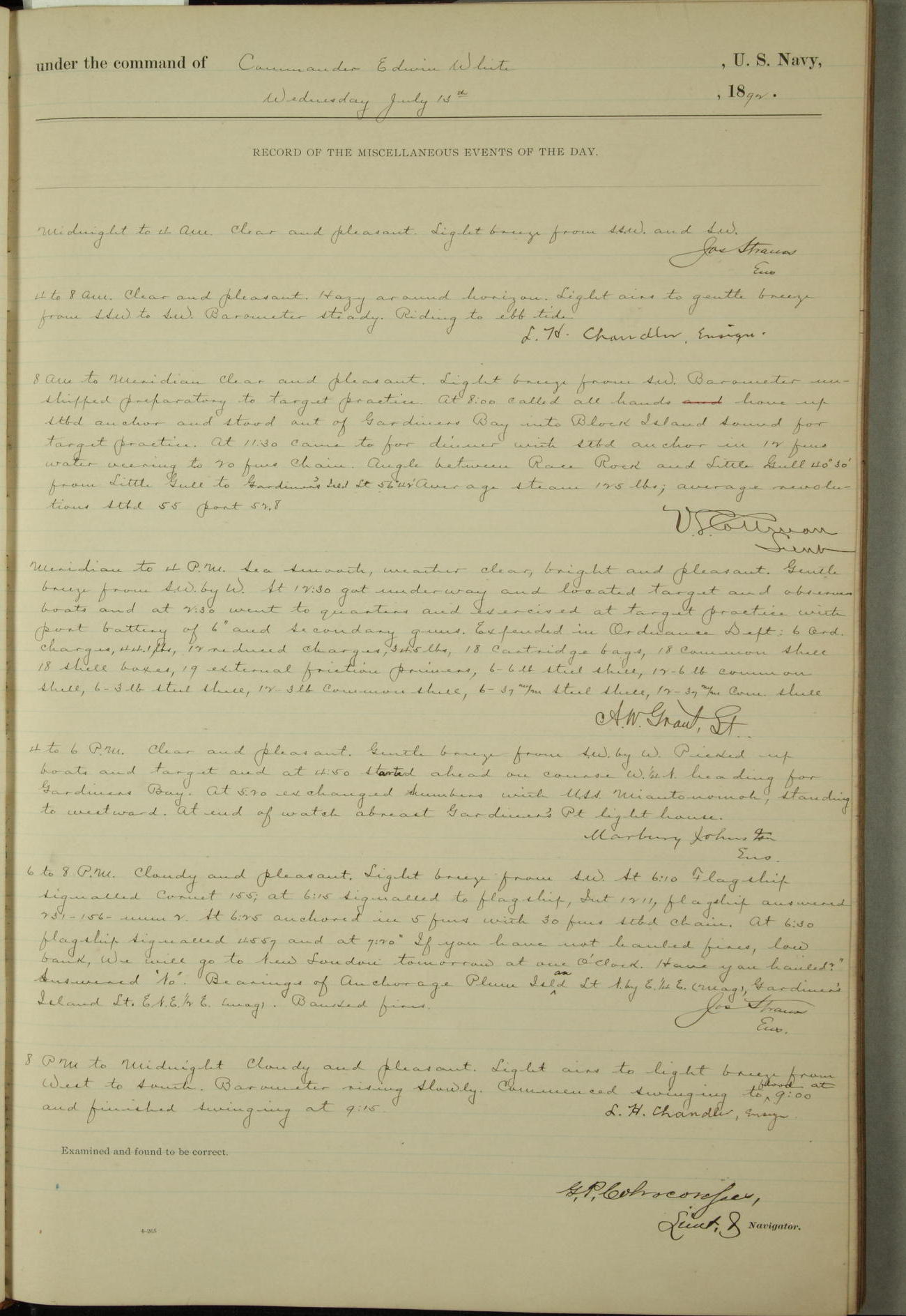 Examined and found to be correct. G. P. Ch????npes, Louit. G. Navigator