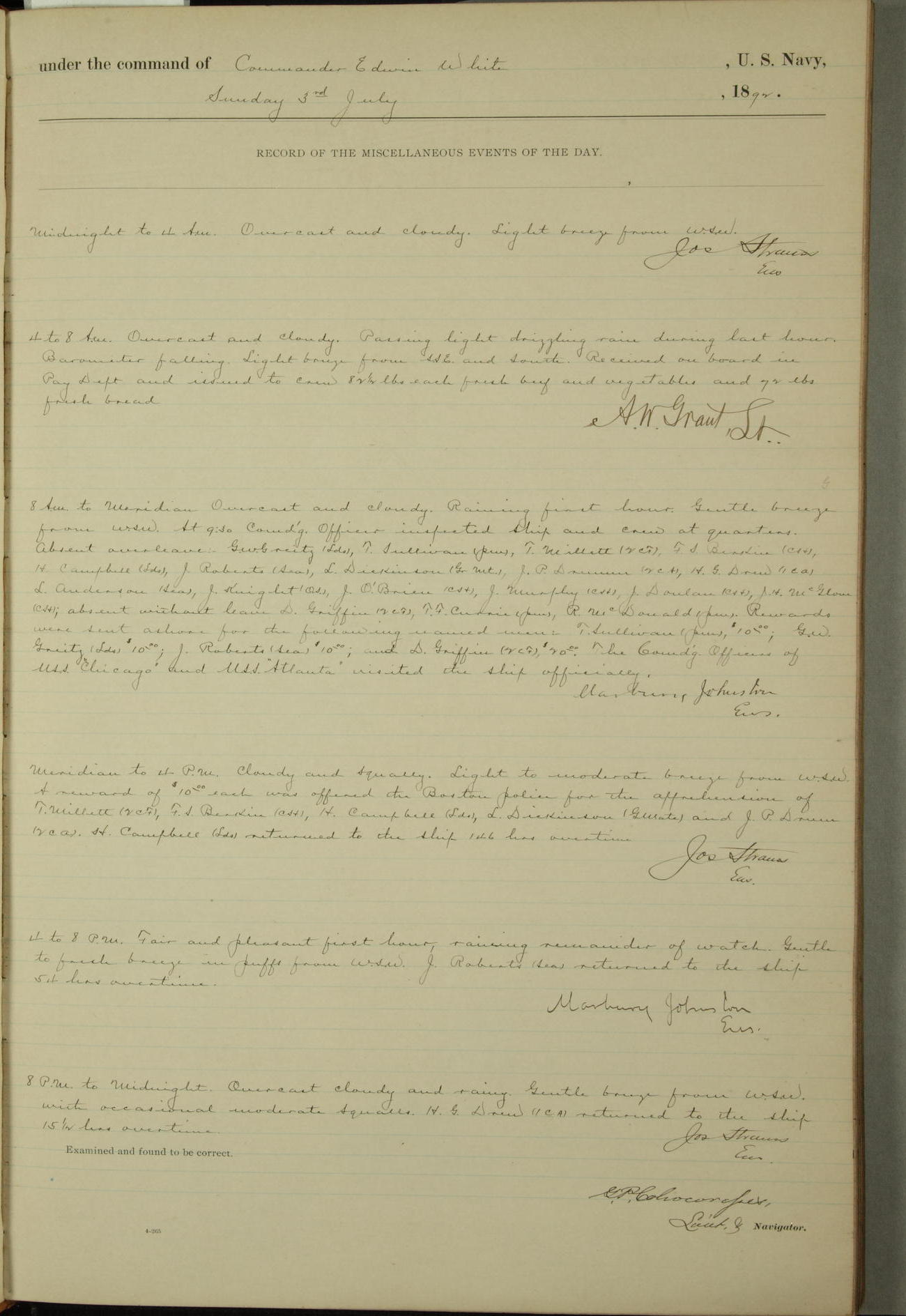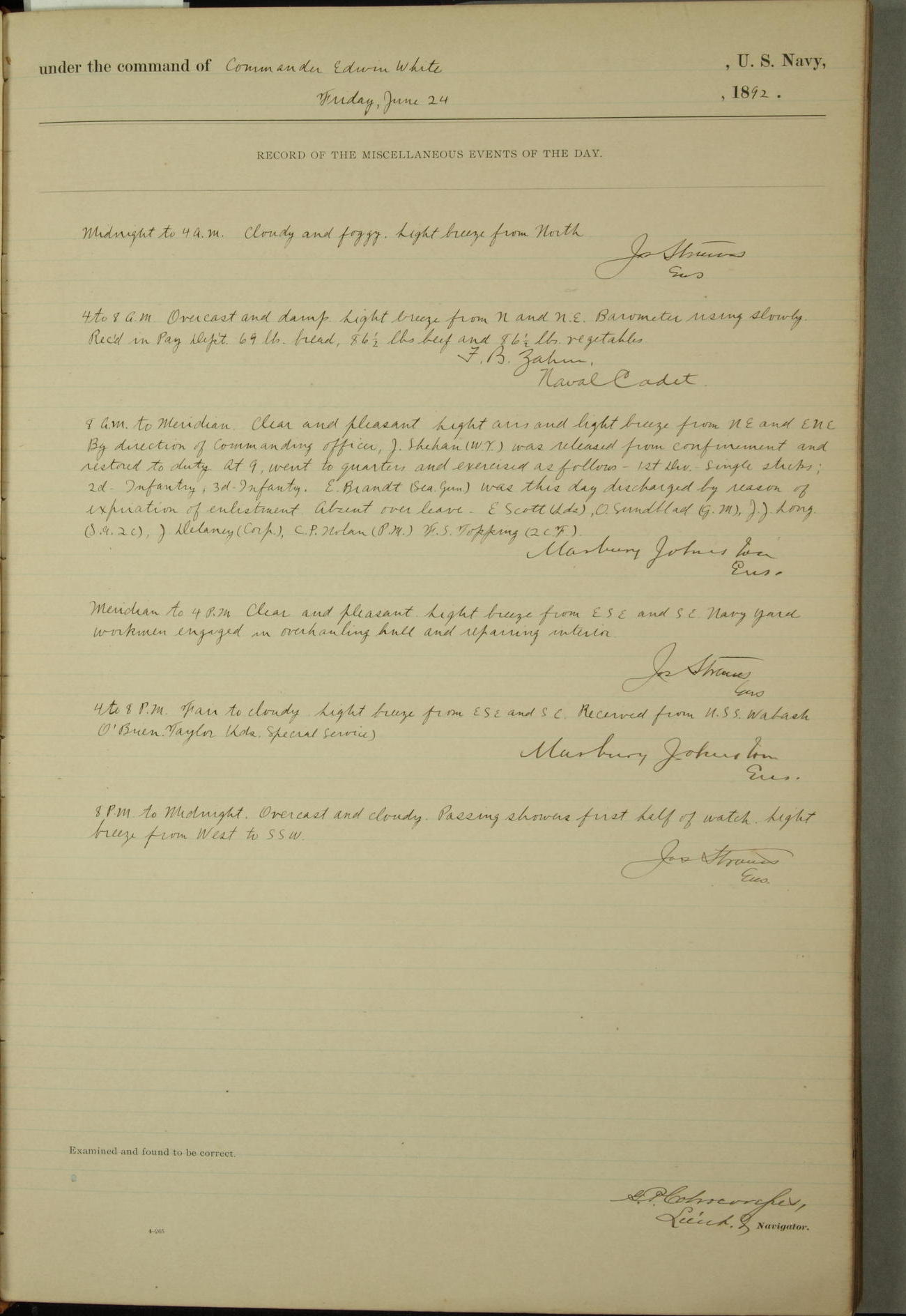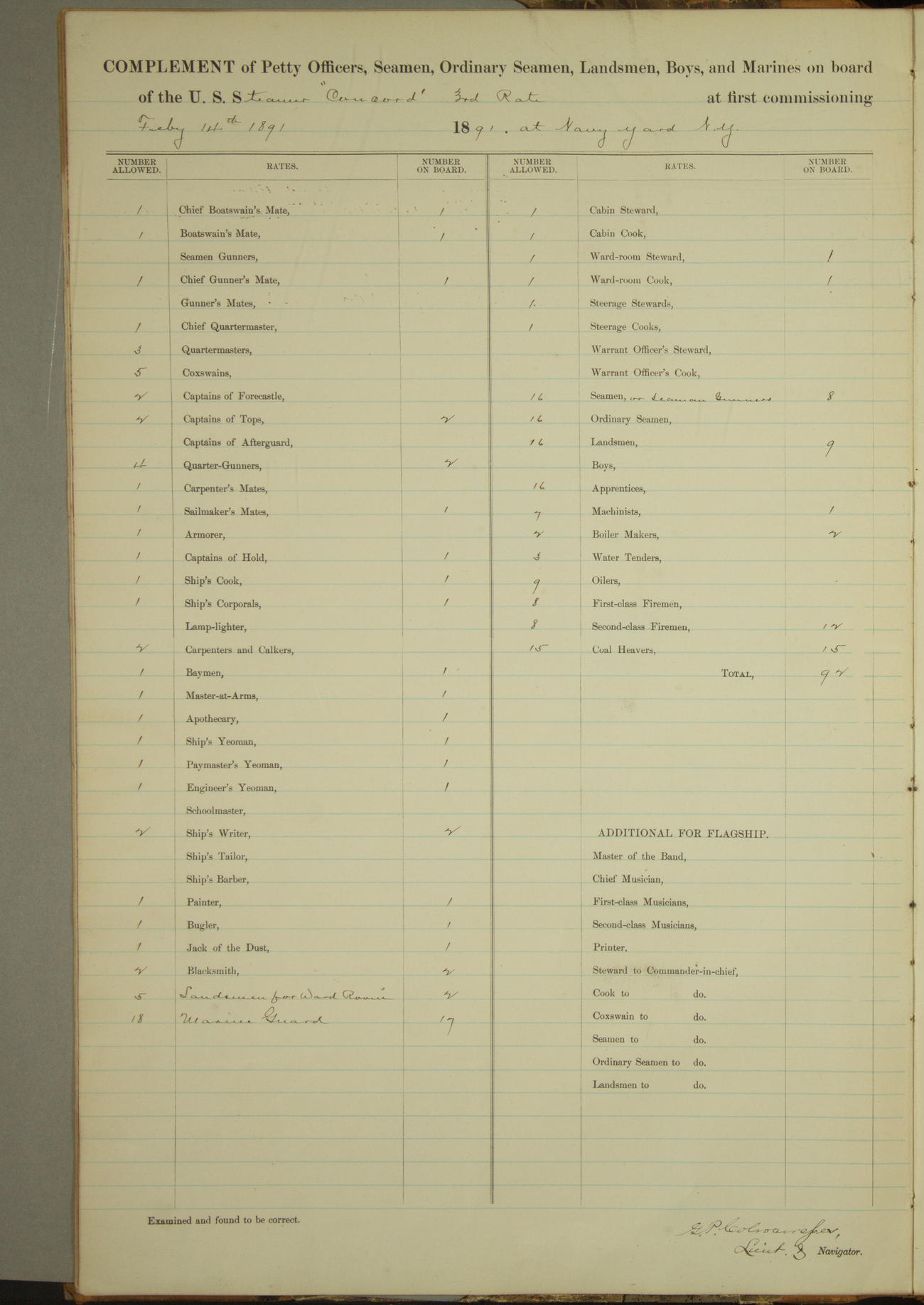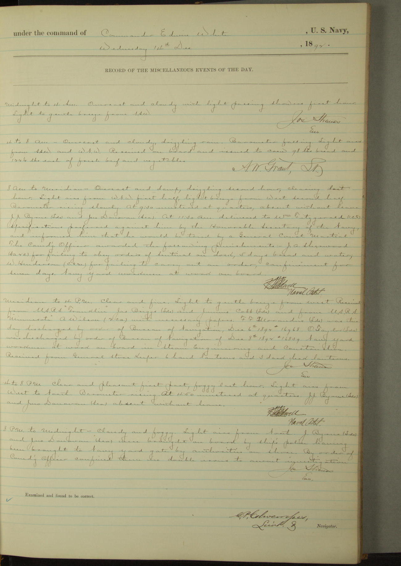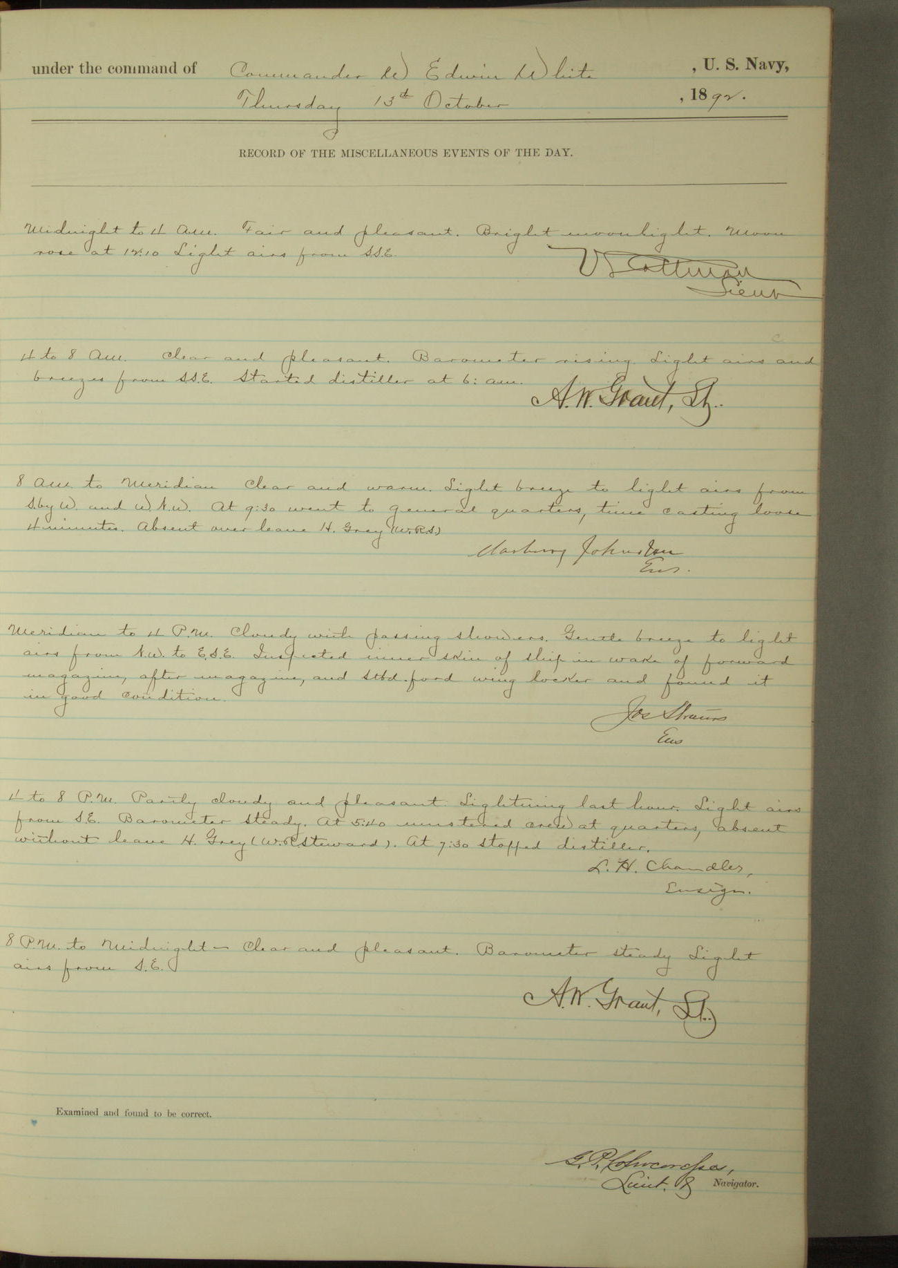 Examined and found to be correct. G. P. Ch????npes, Louit. G. Navigator
