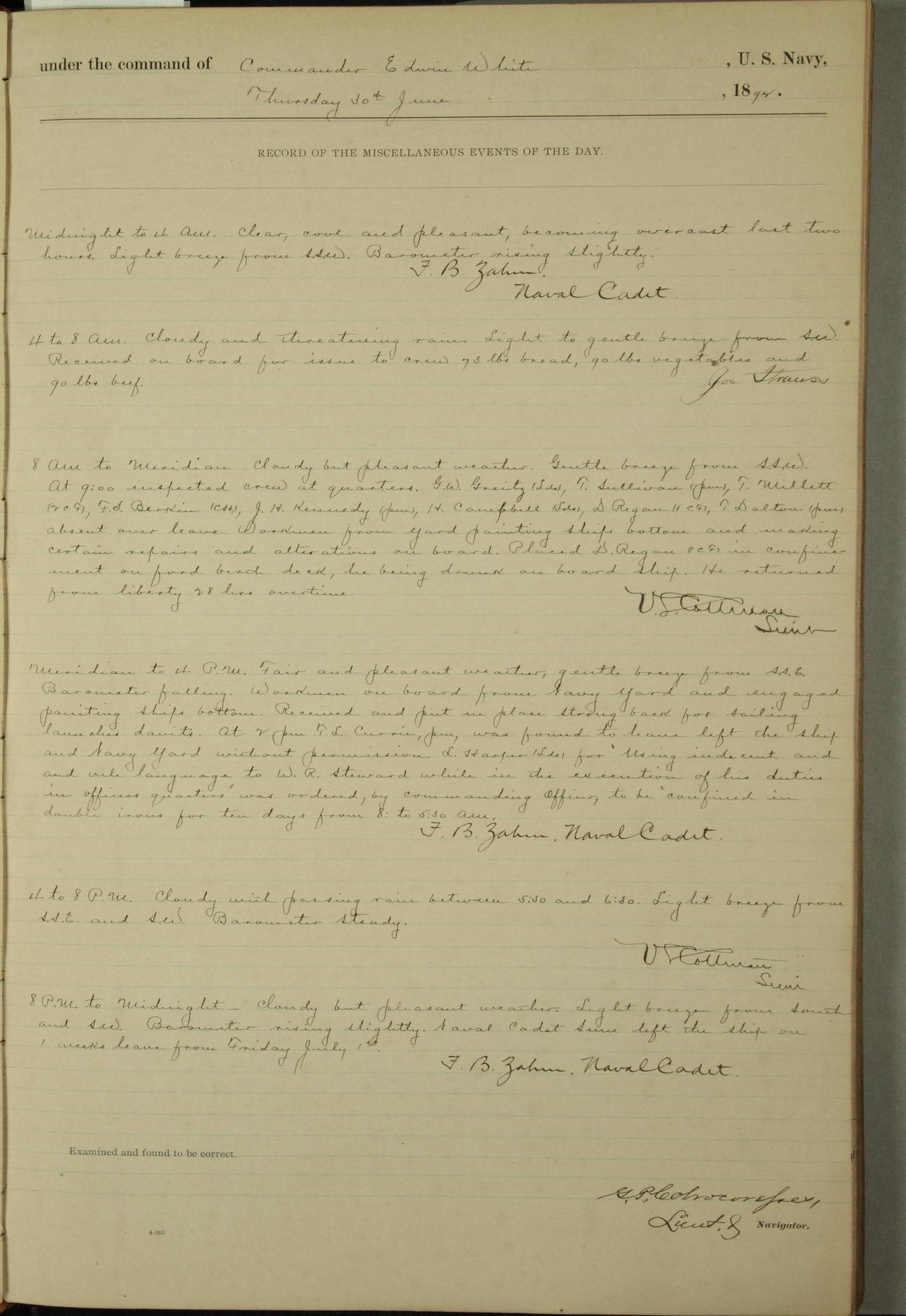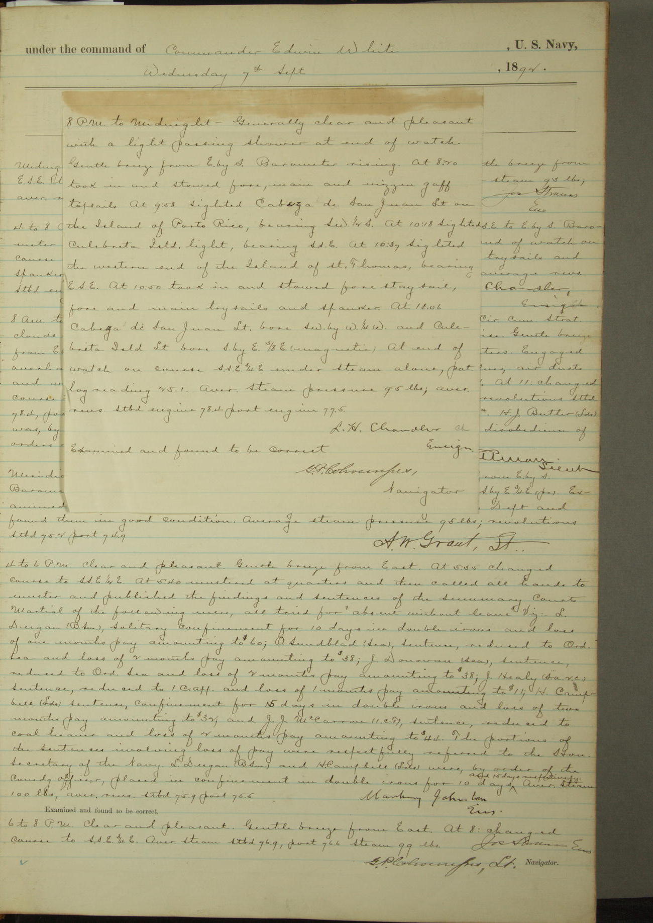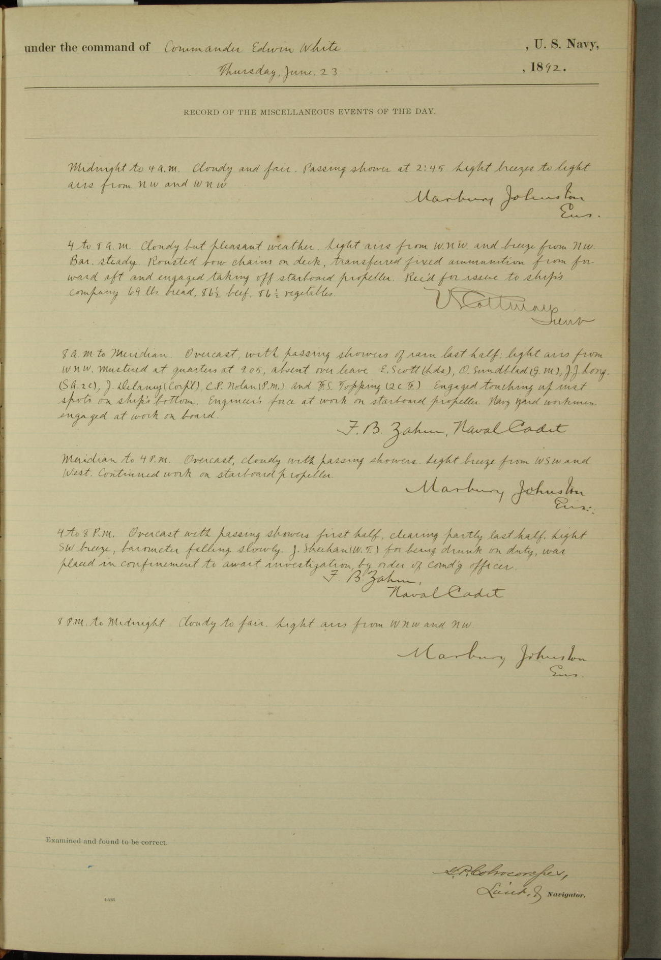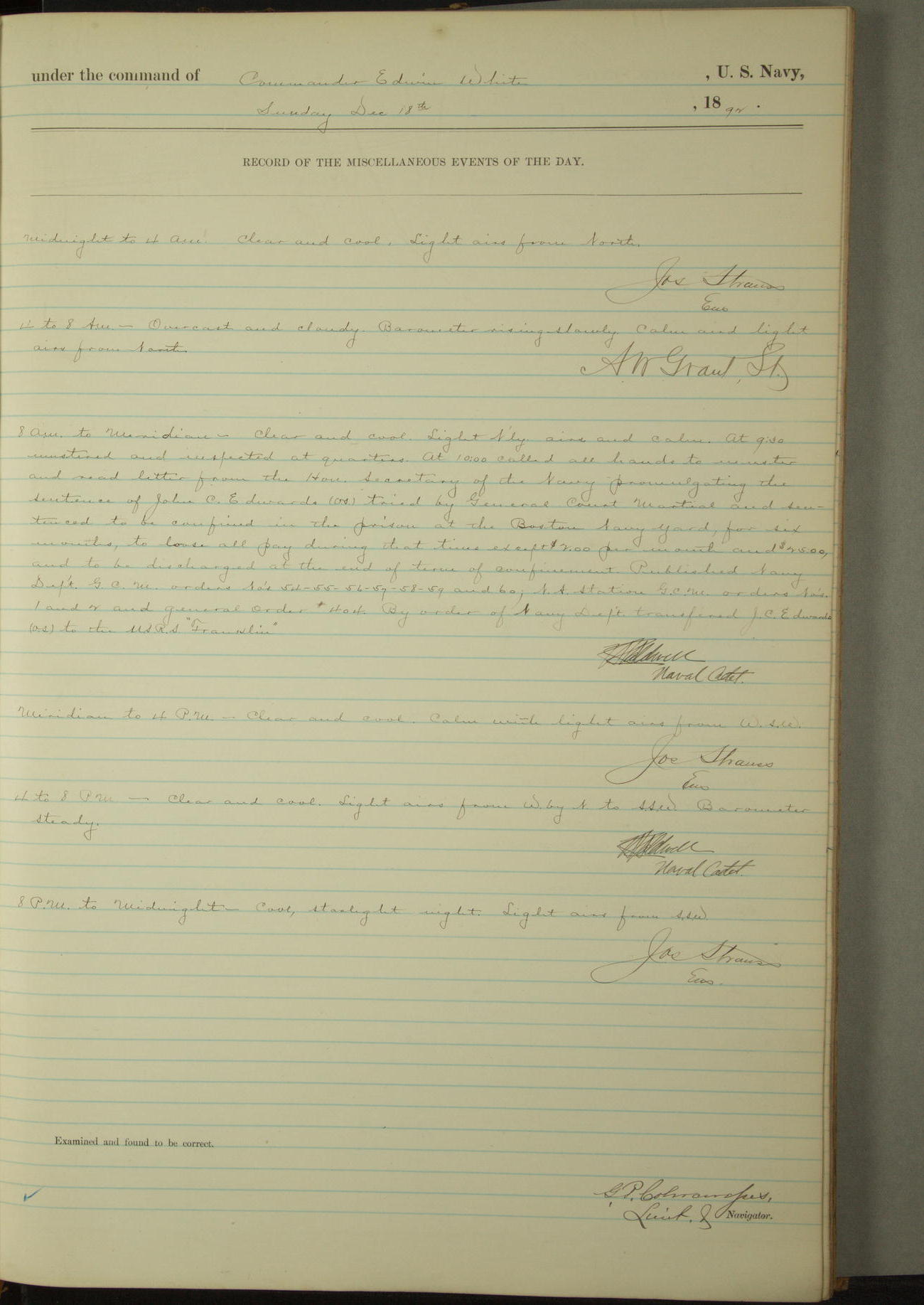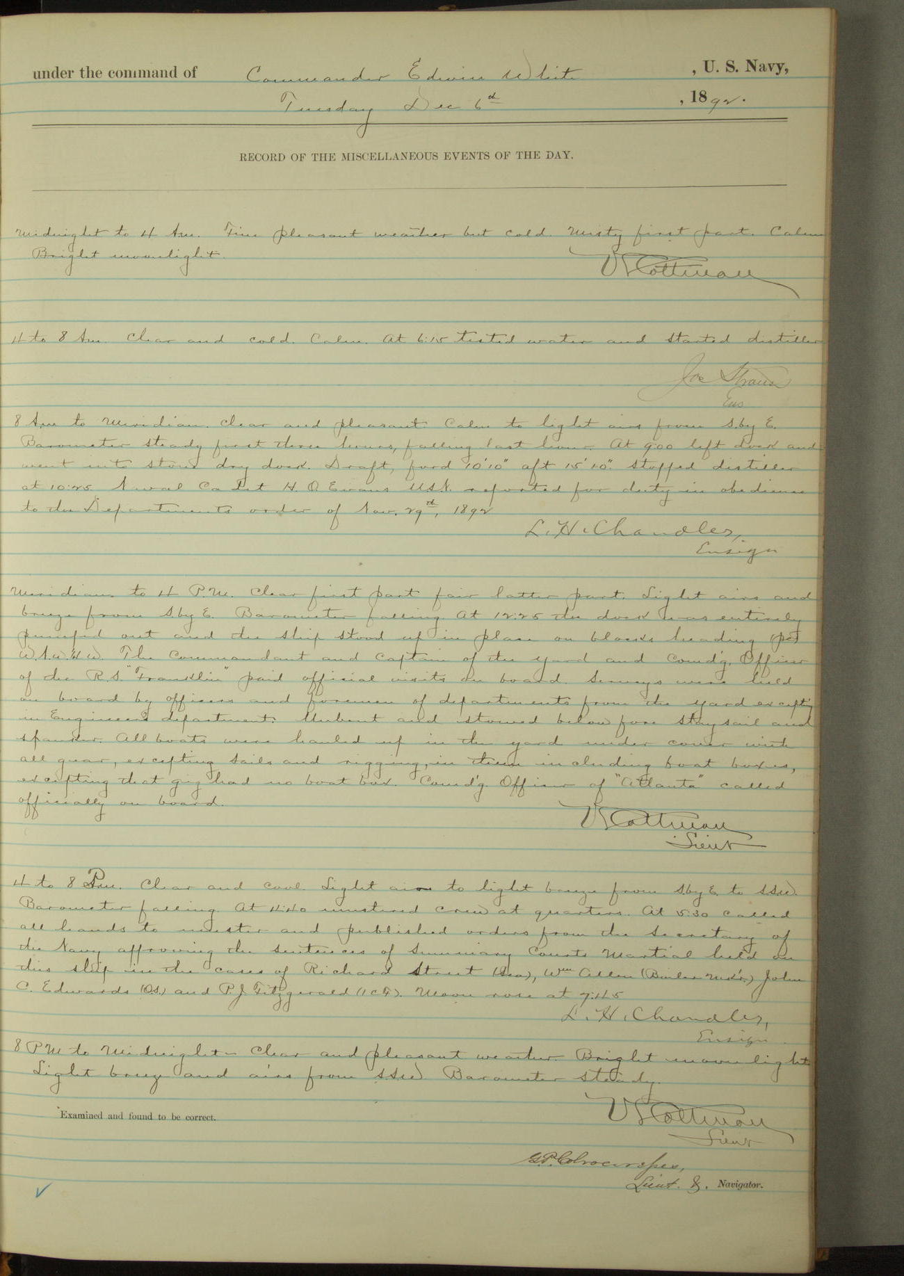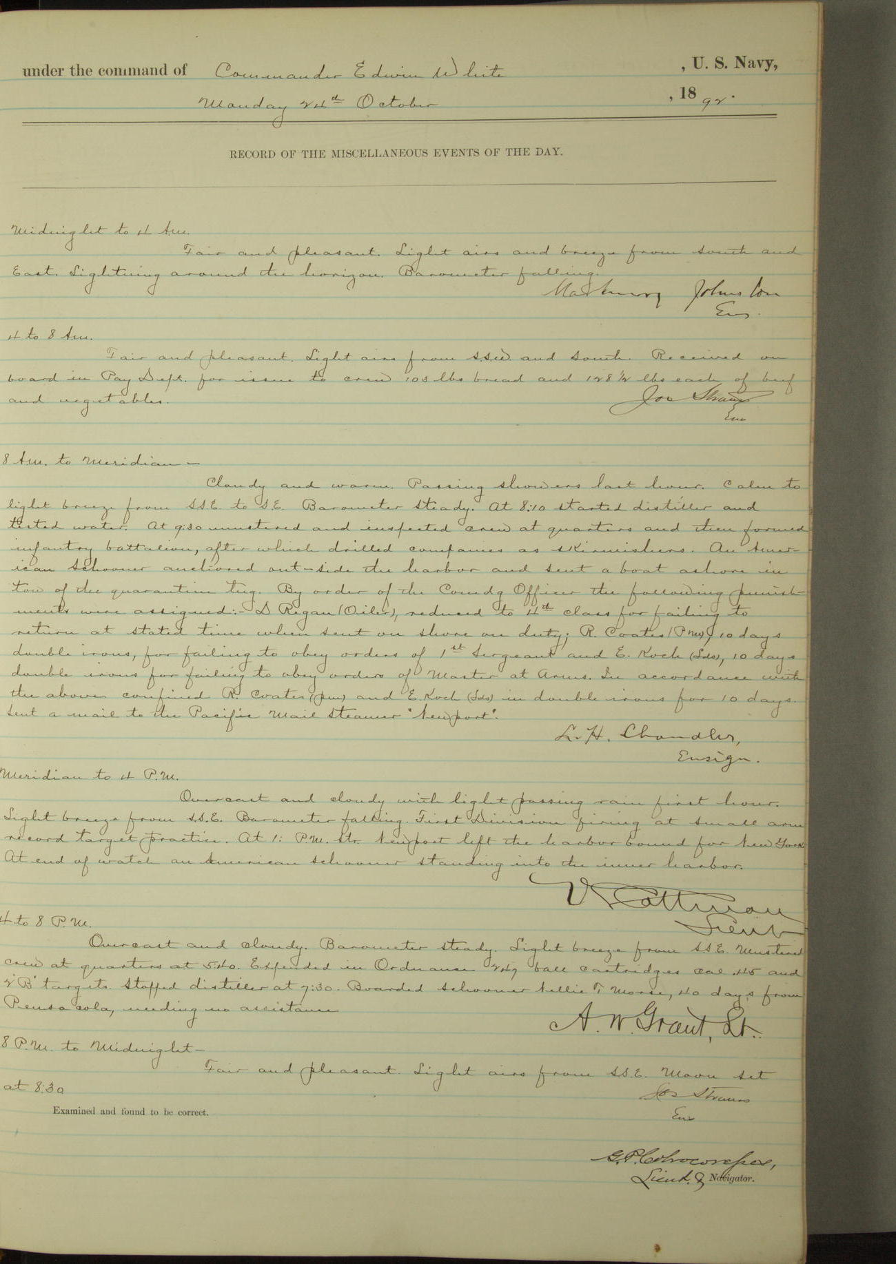 Examined and found to be correct. G. P. Ch????npes, Louit. G. Navigator