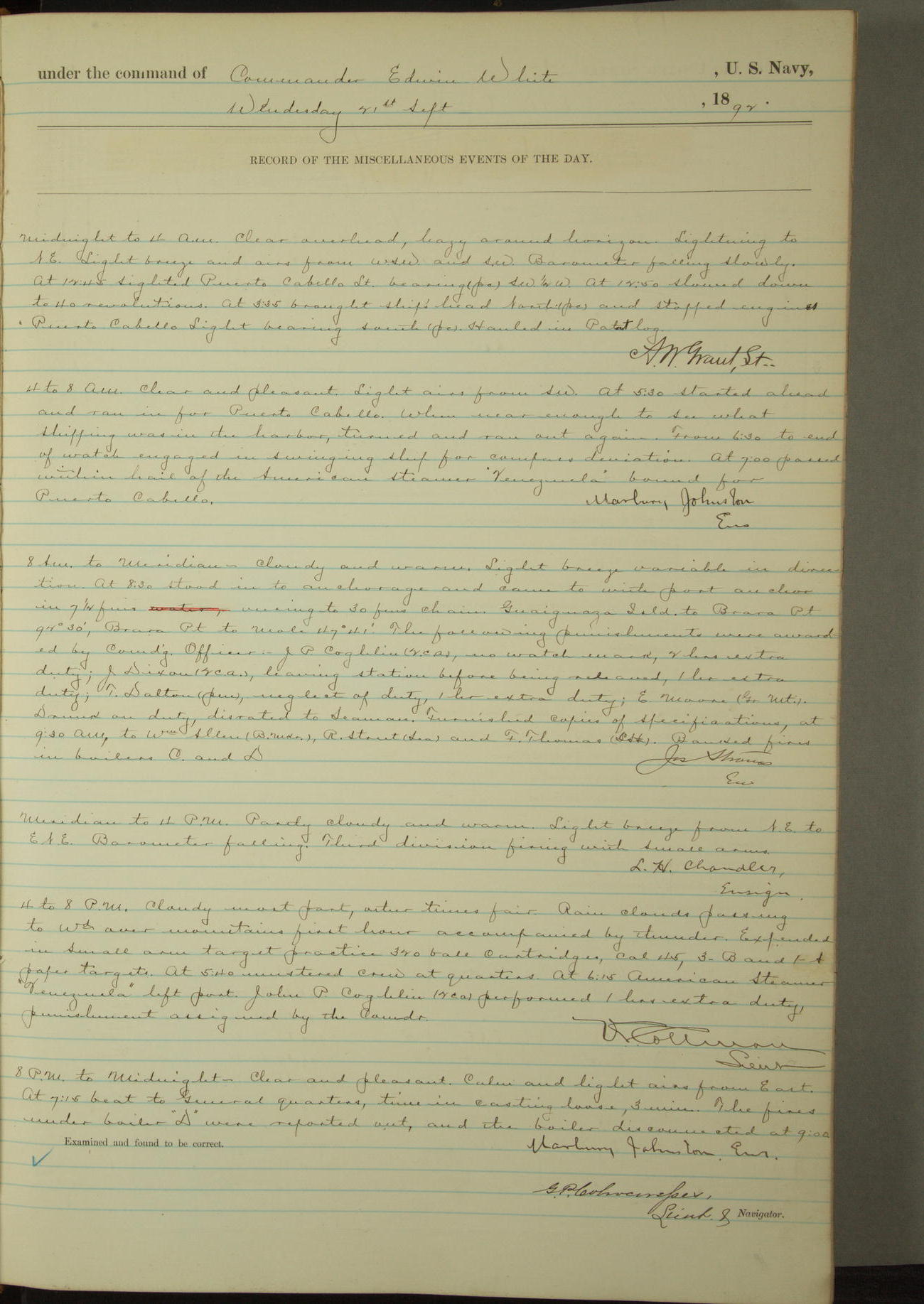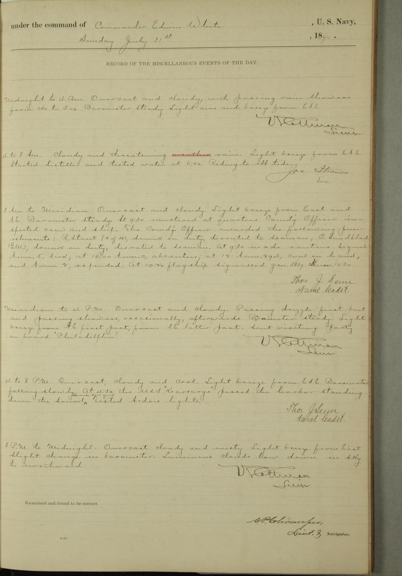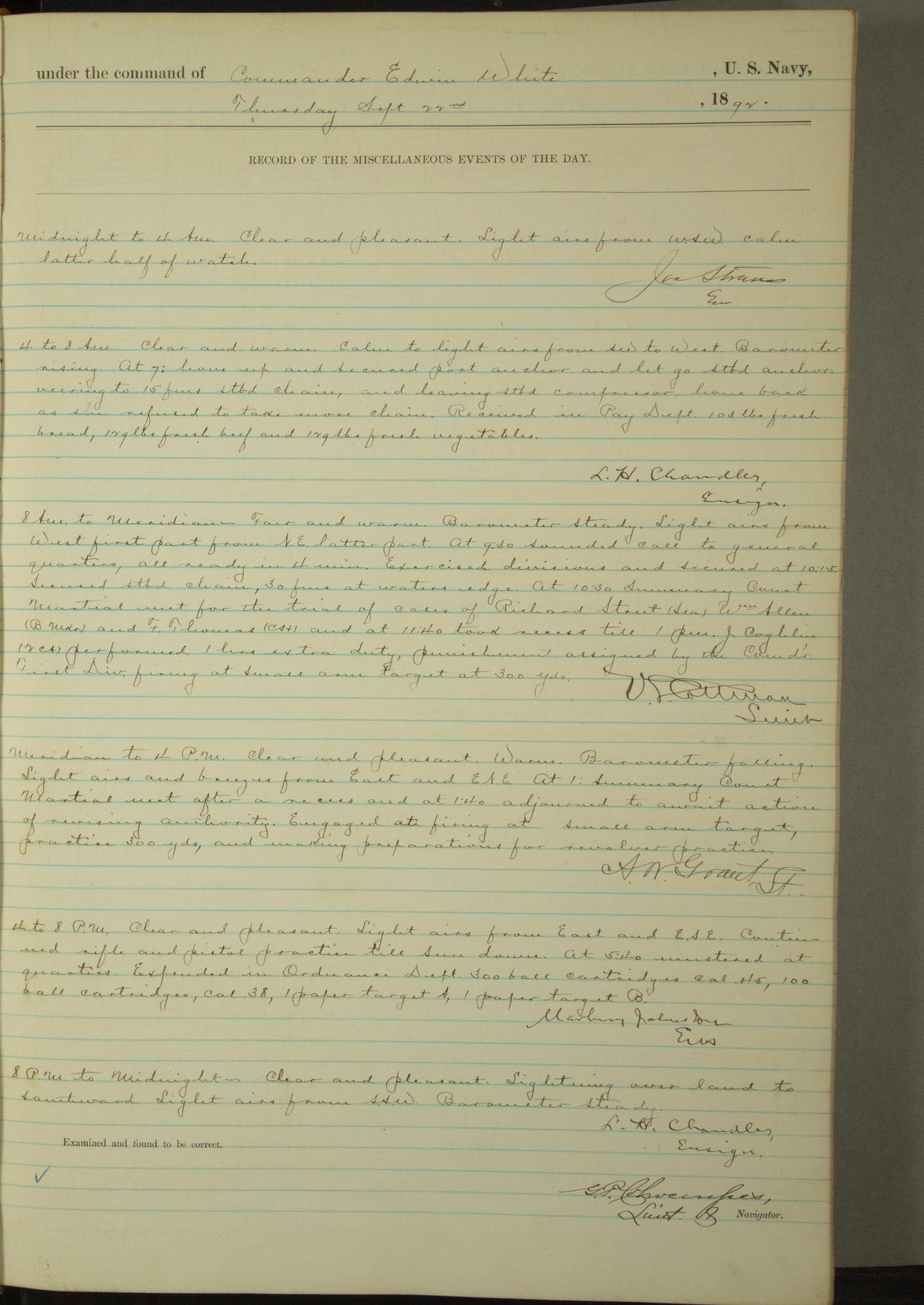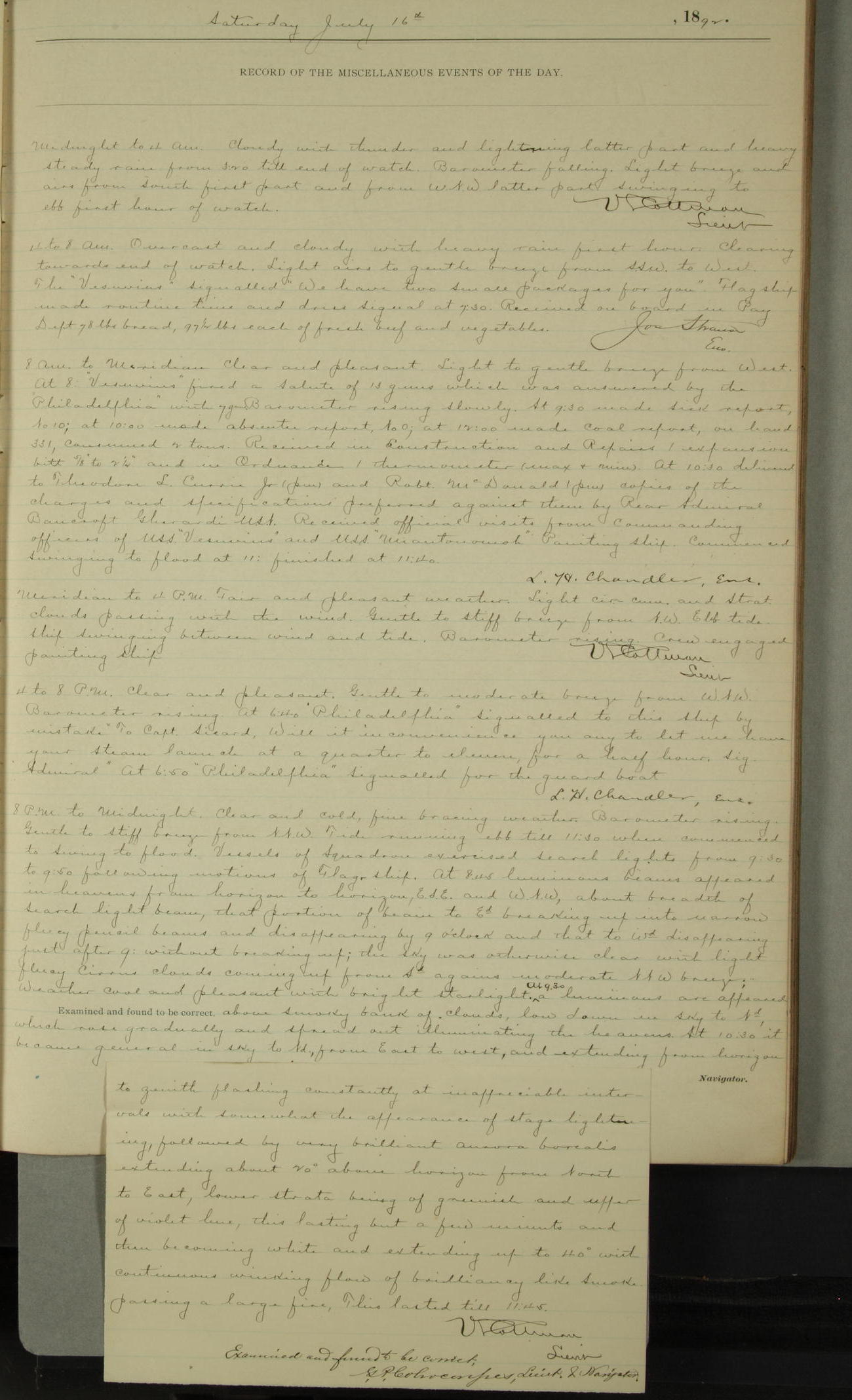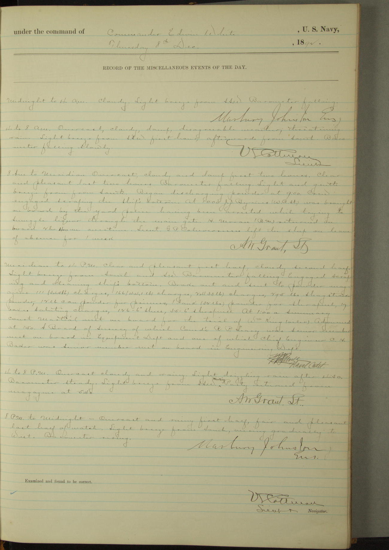 Examined and found to be correct. G. P. Ch????npes, Louit. G. Navigator