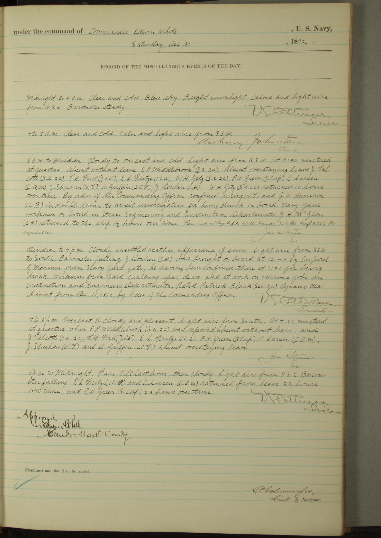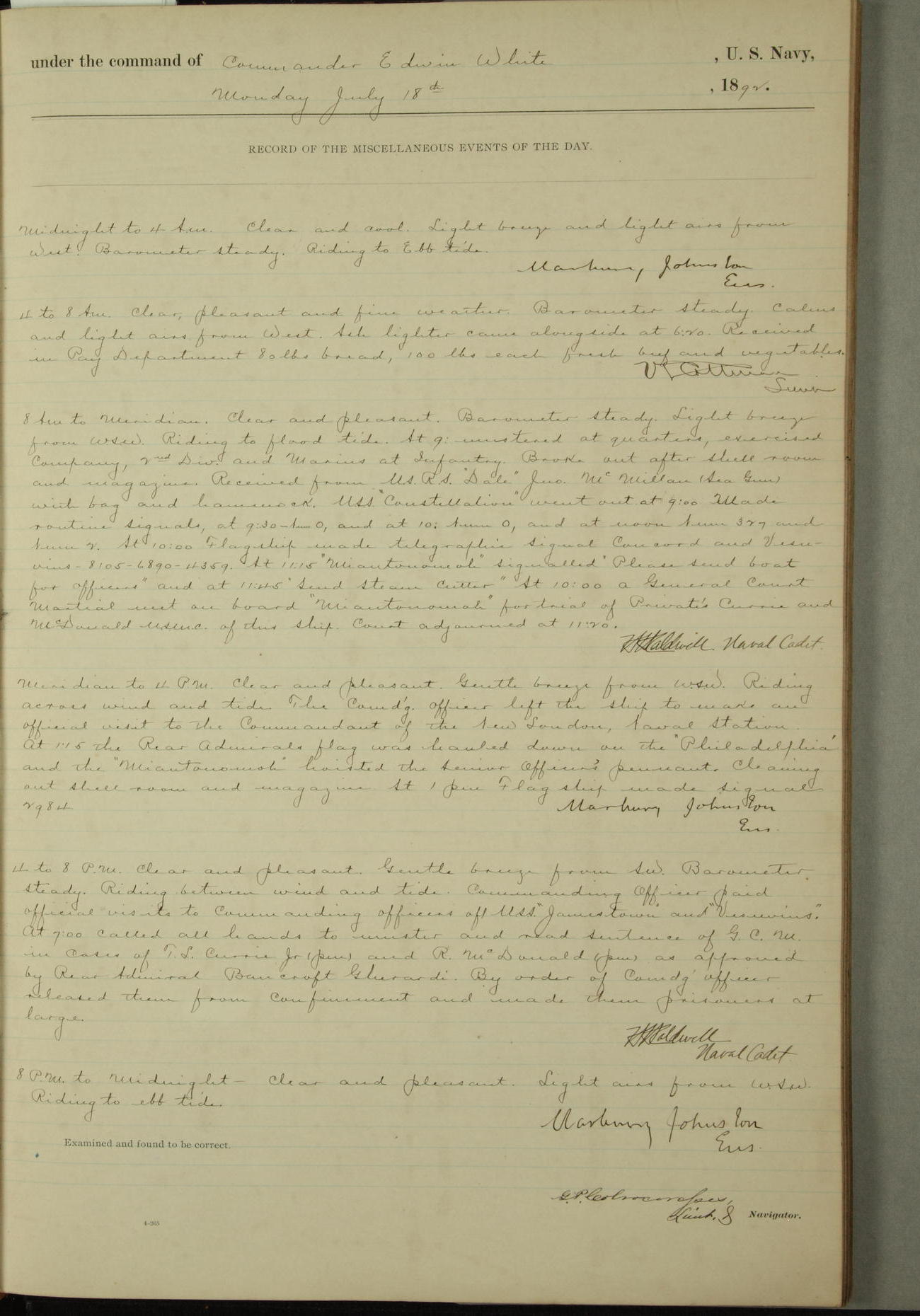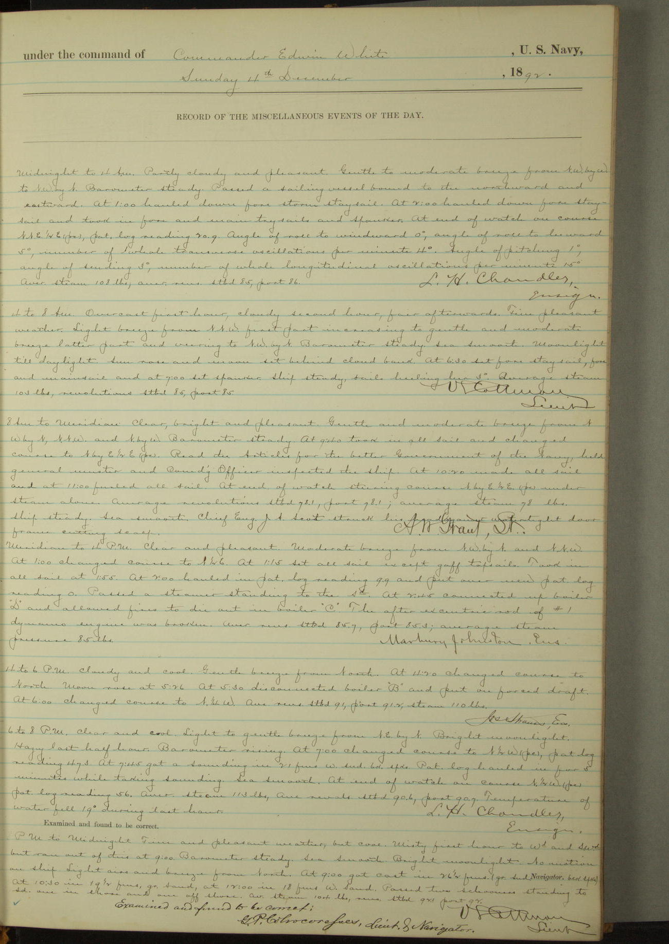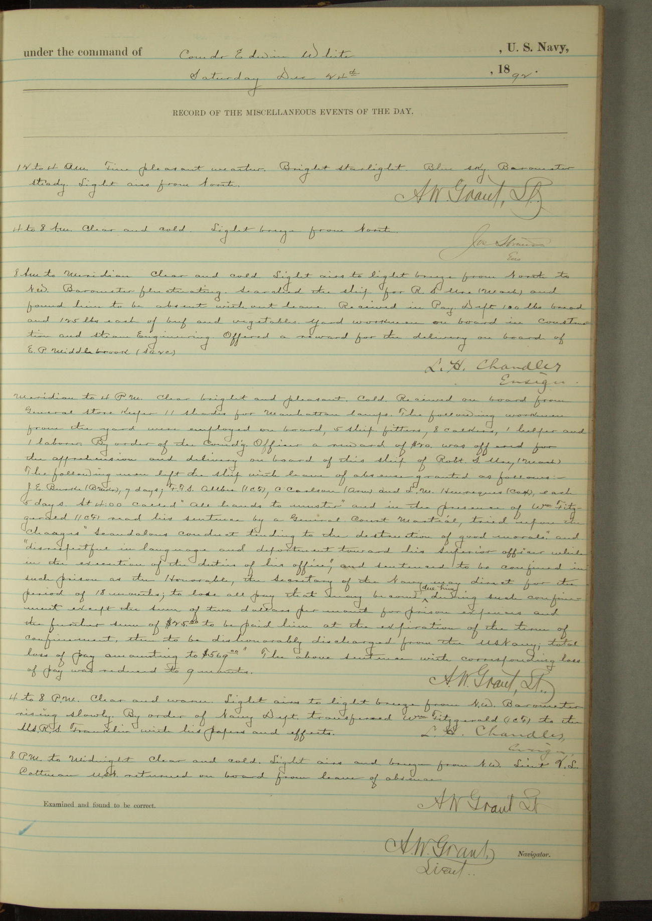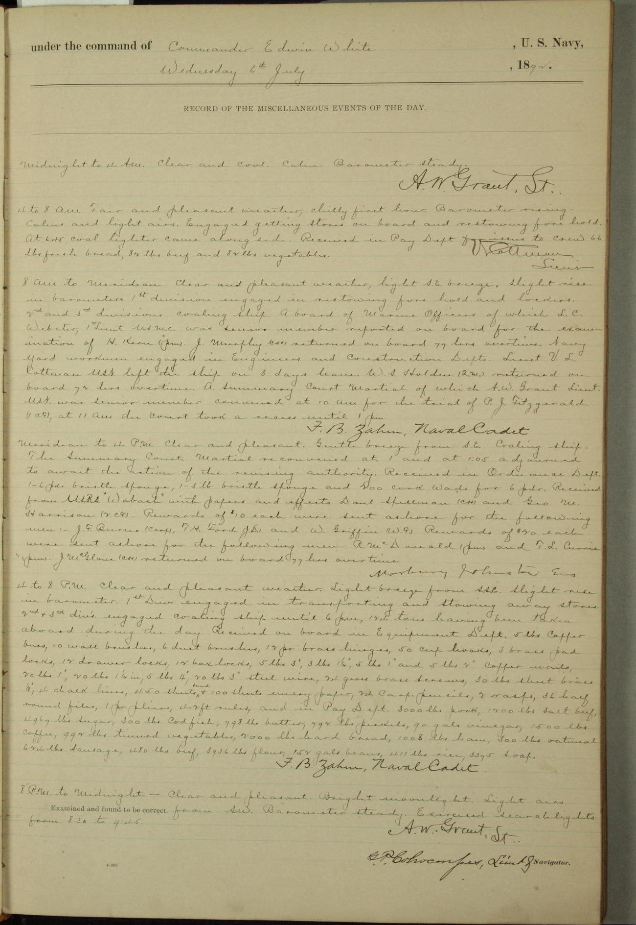 Examined and found to be correct. G. P. Ch????npes, Louit. G. Navigator