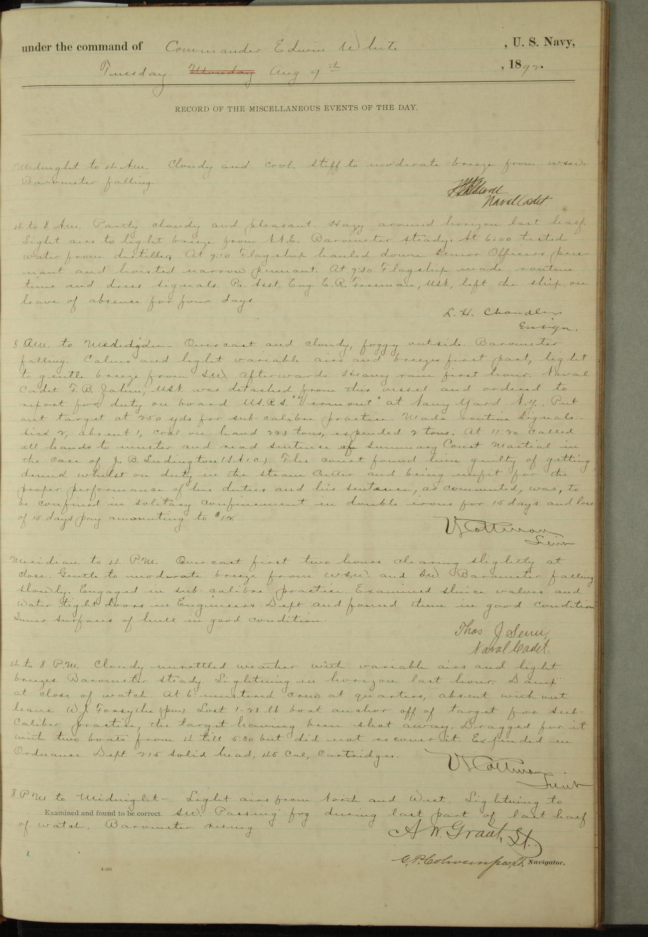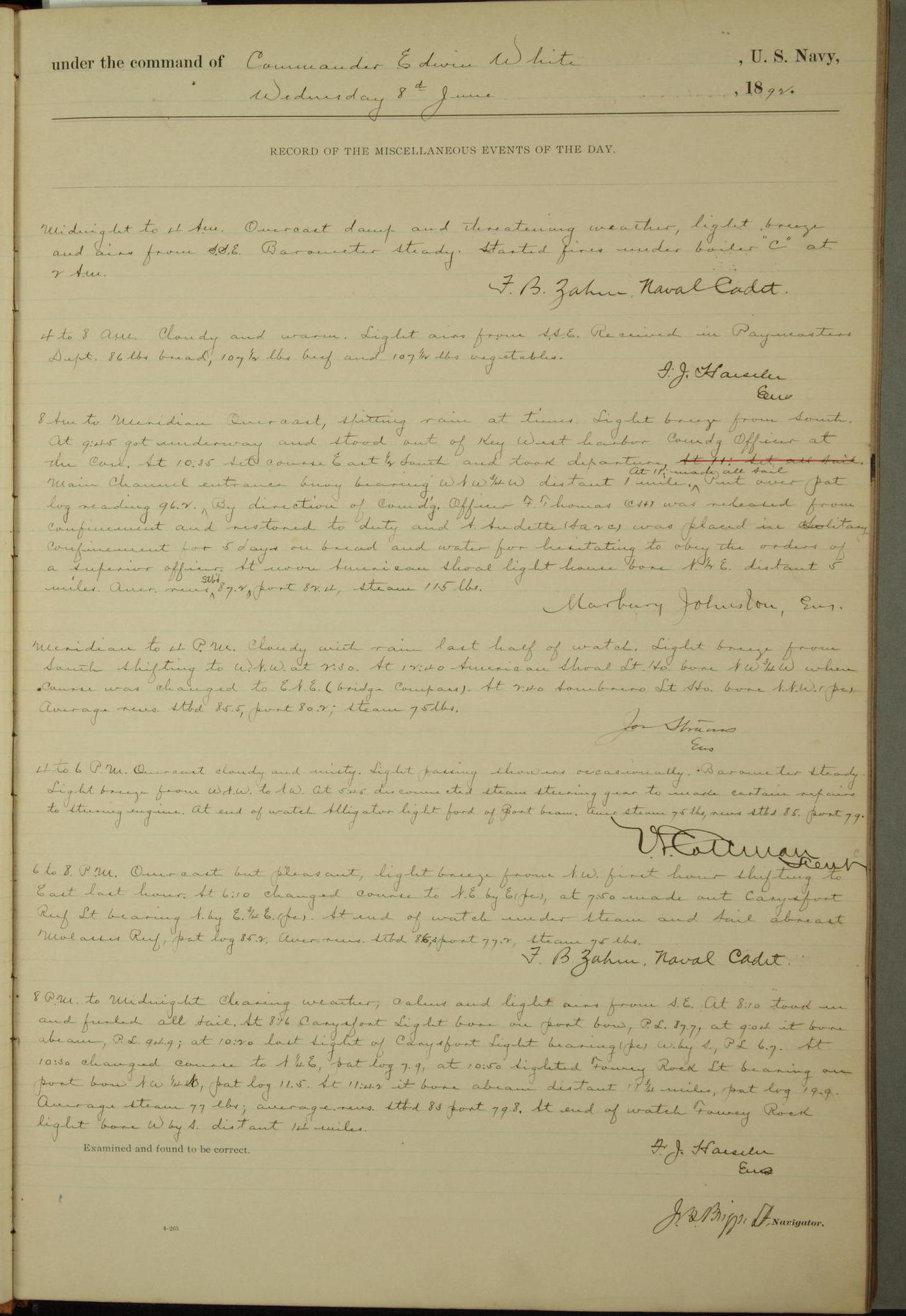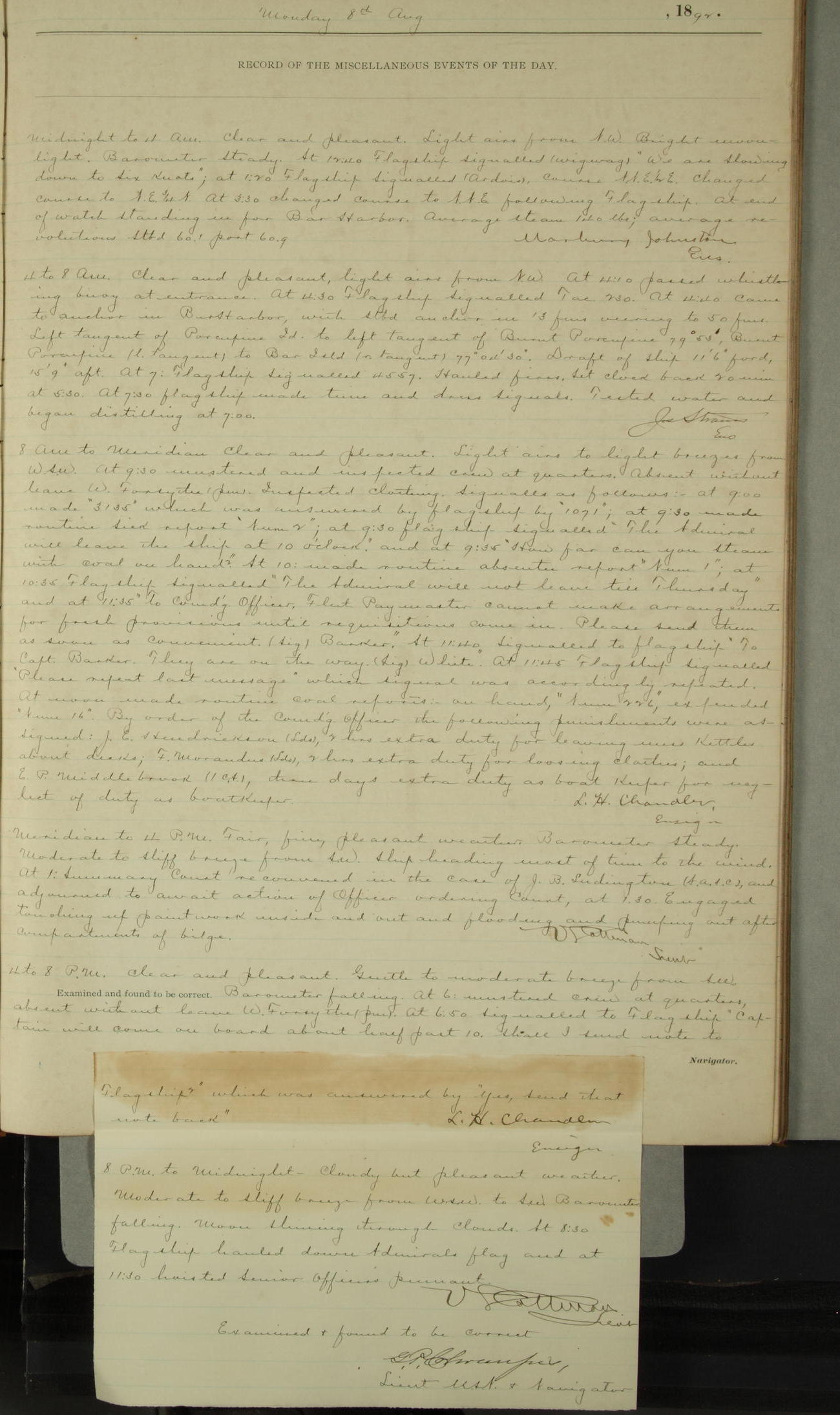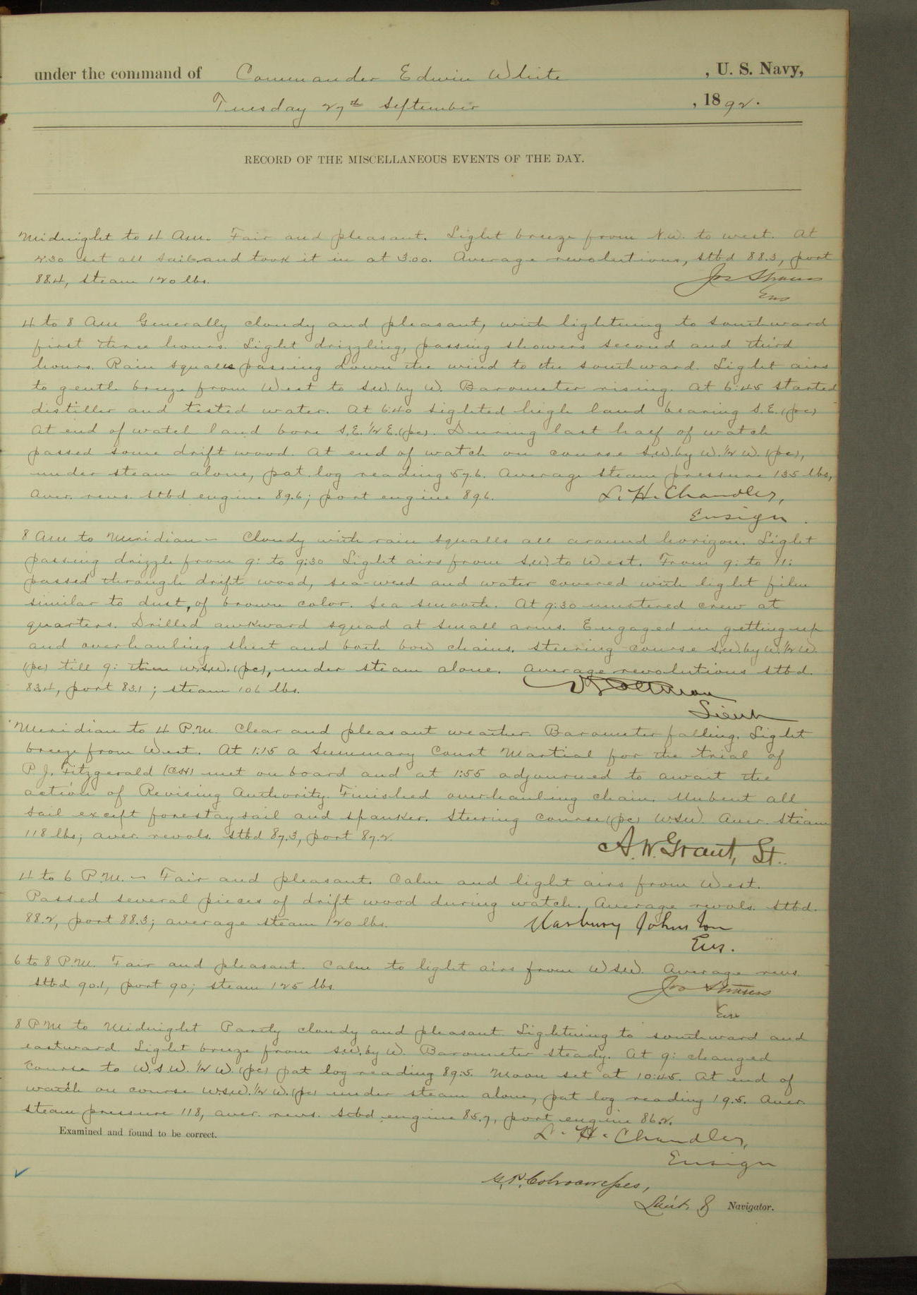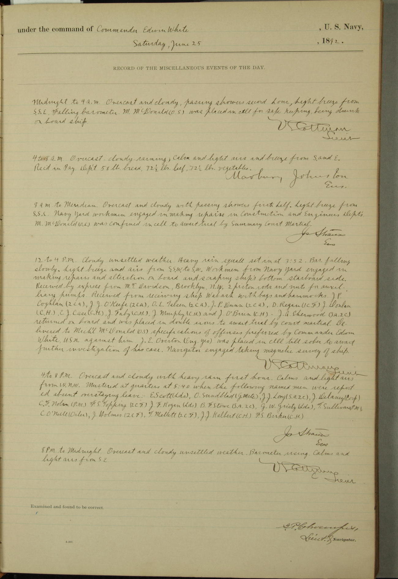 Examined and found to be correct. G. P. Ch????npes, Louit. G. Navigator