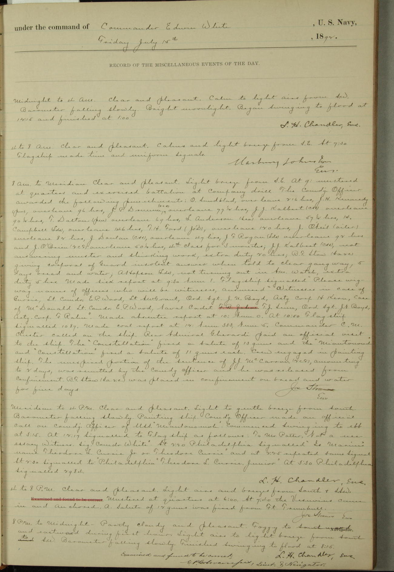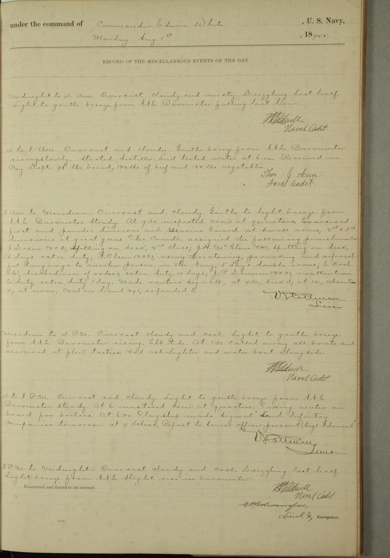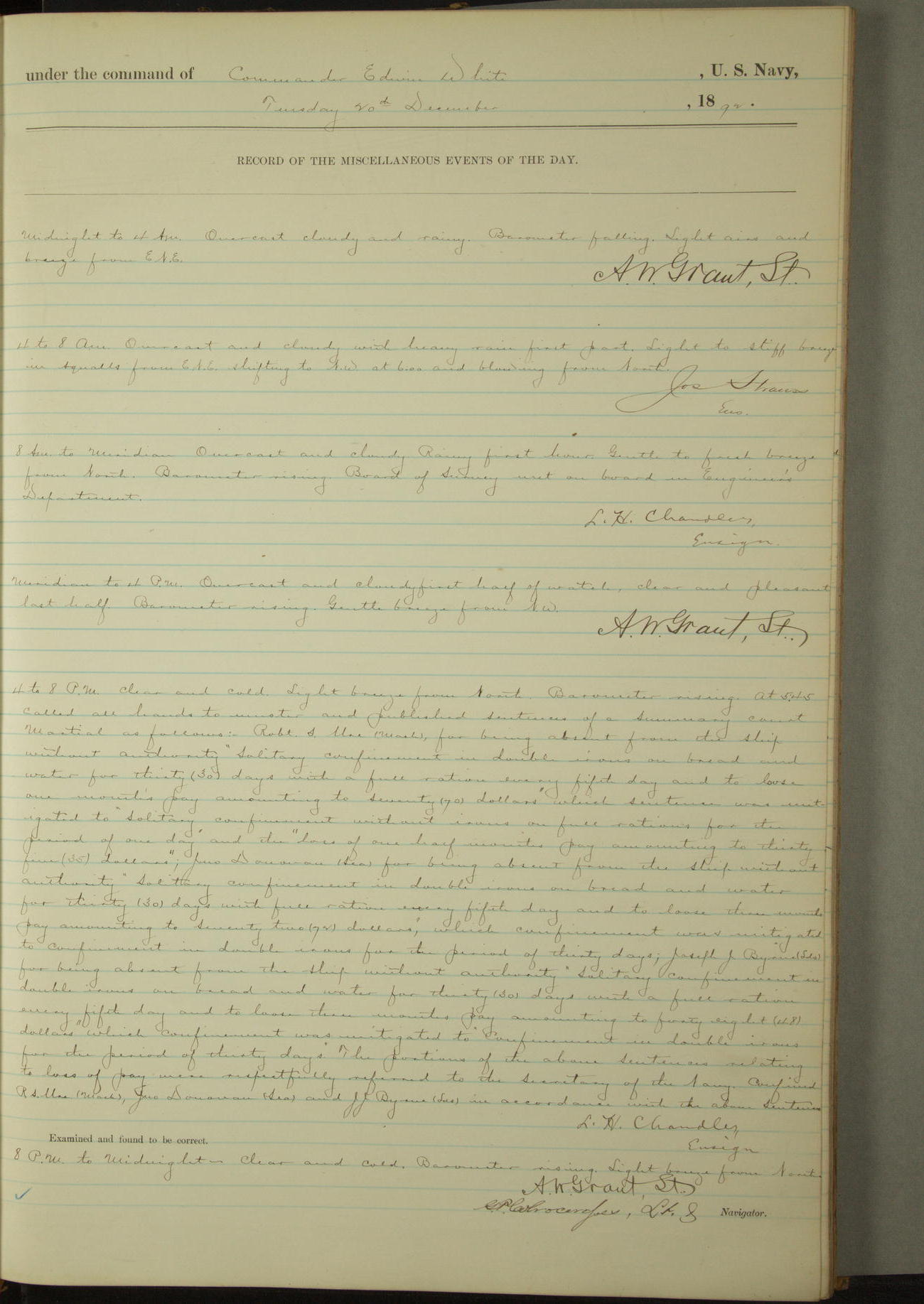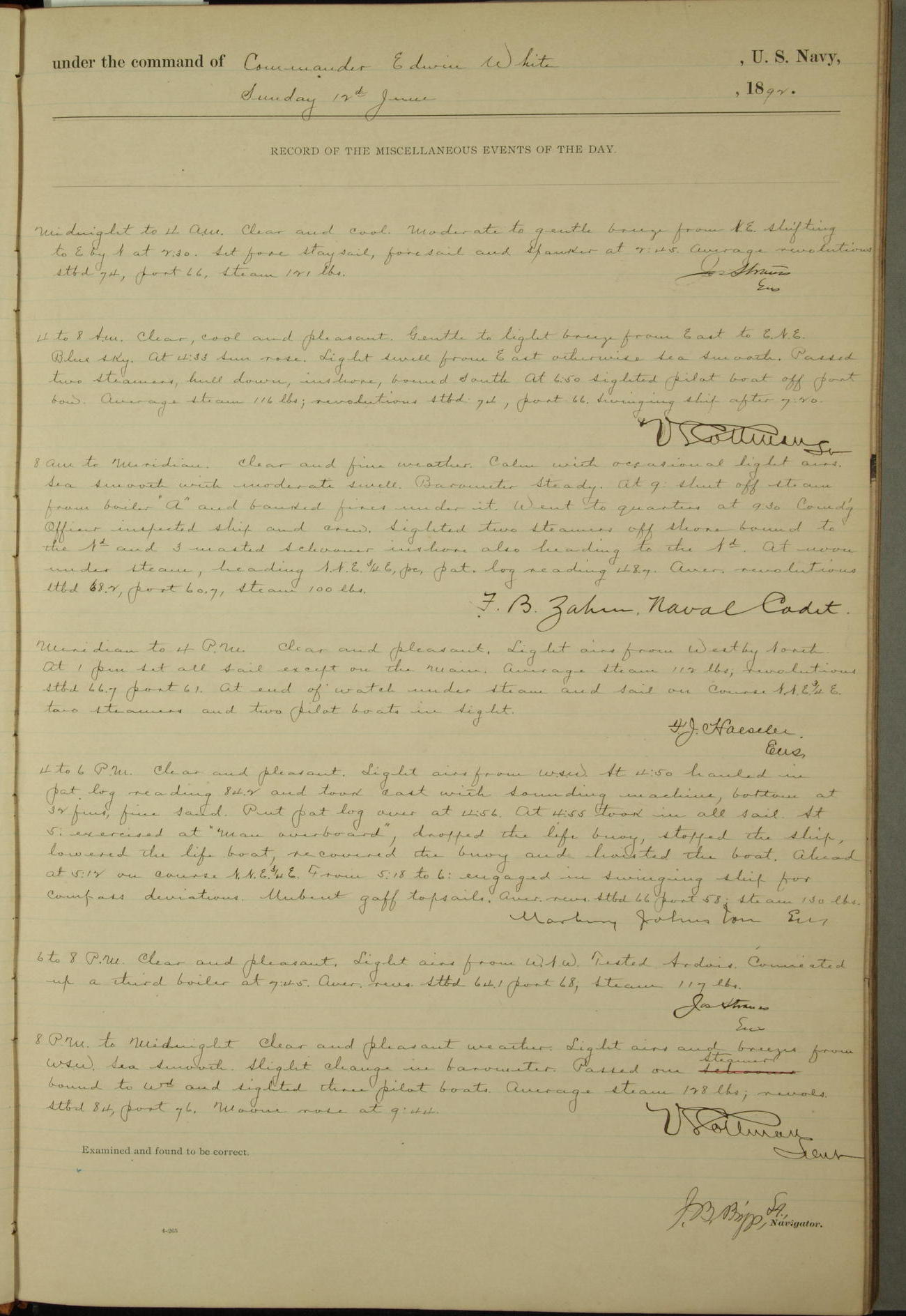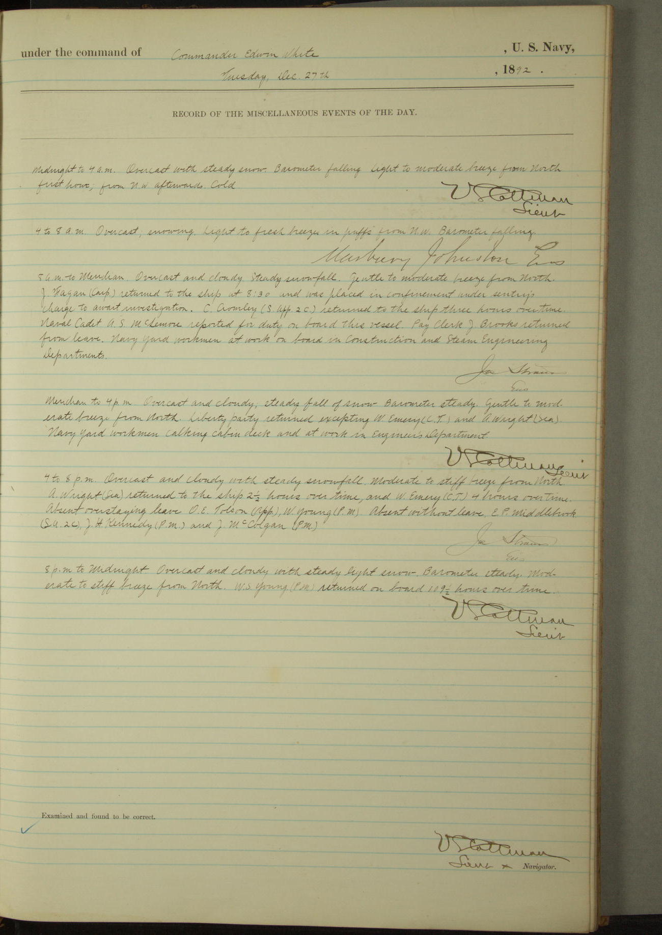 Examined and found to be correct. G. P. Ch????npes, Louit. G. Navigator