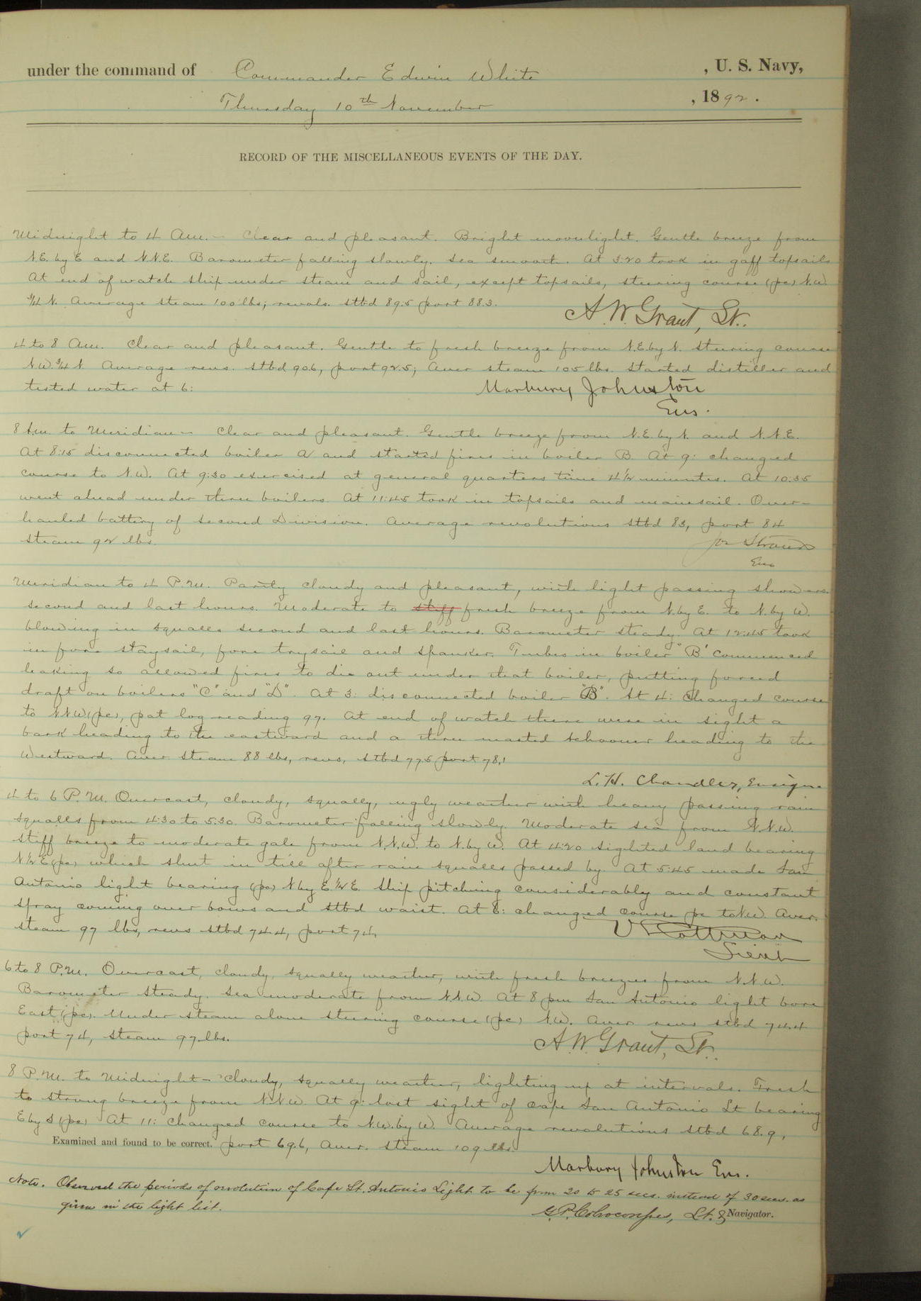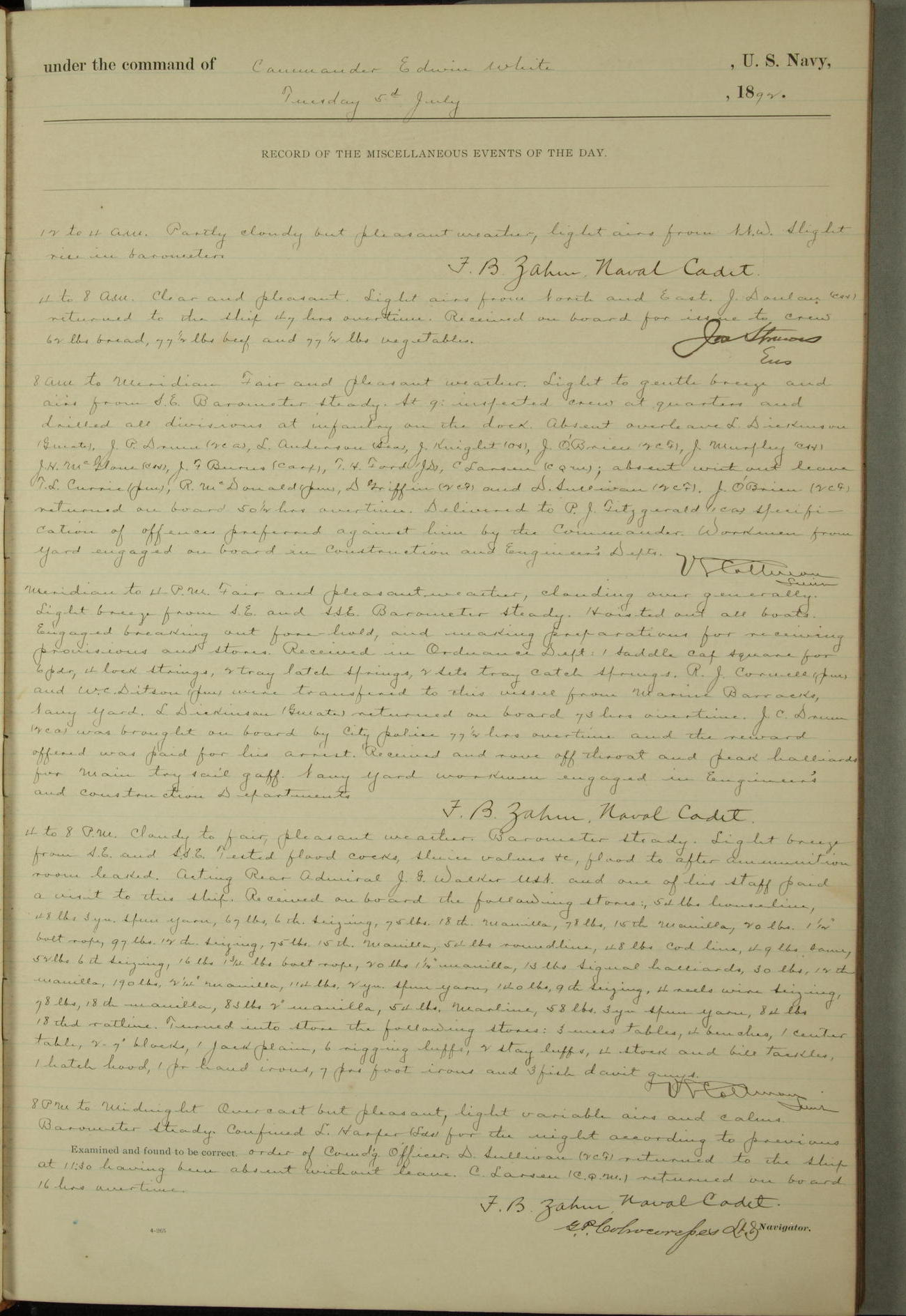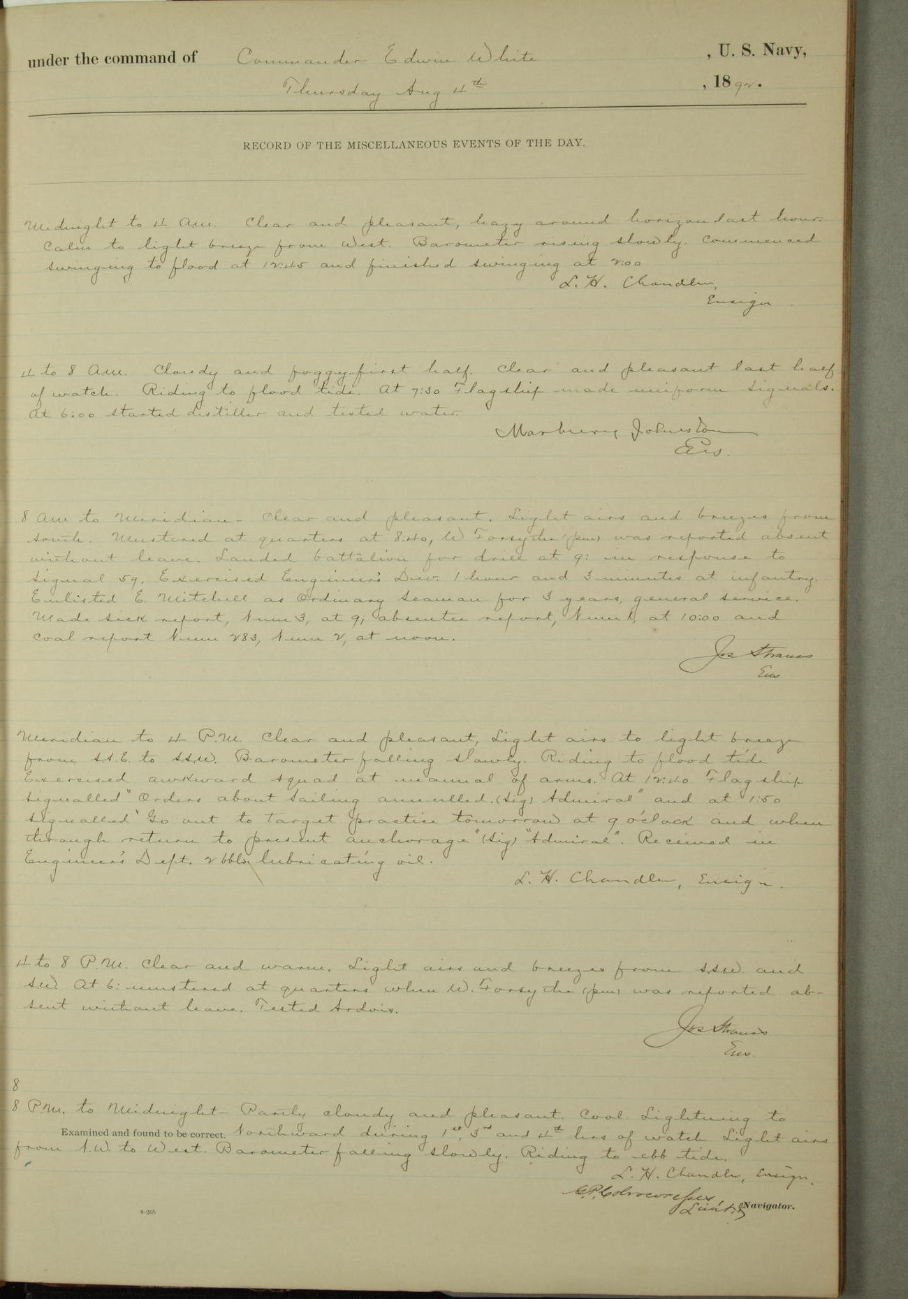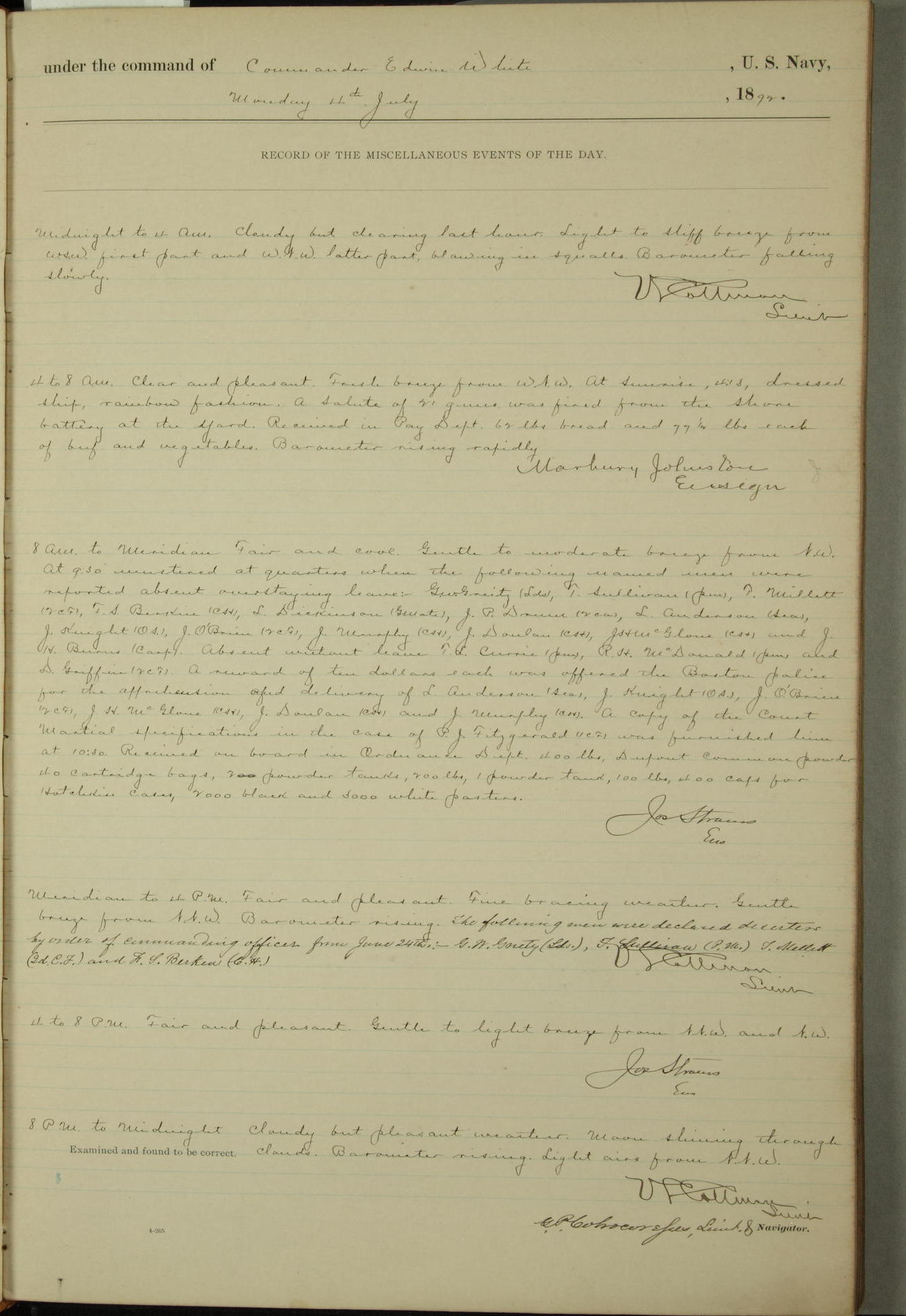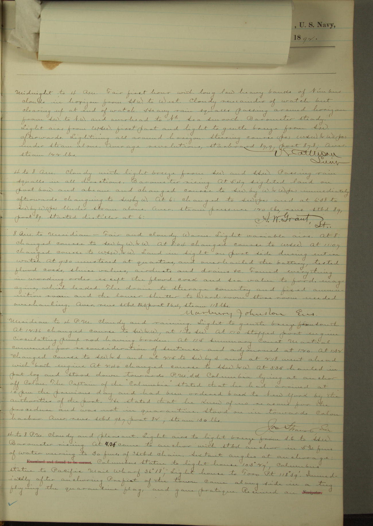 Examined and found to be correct. G. P. Ch????npes, Louit. G. Navigator