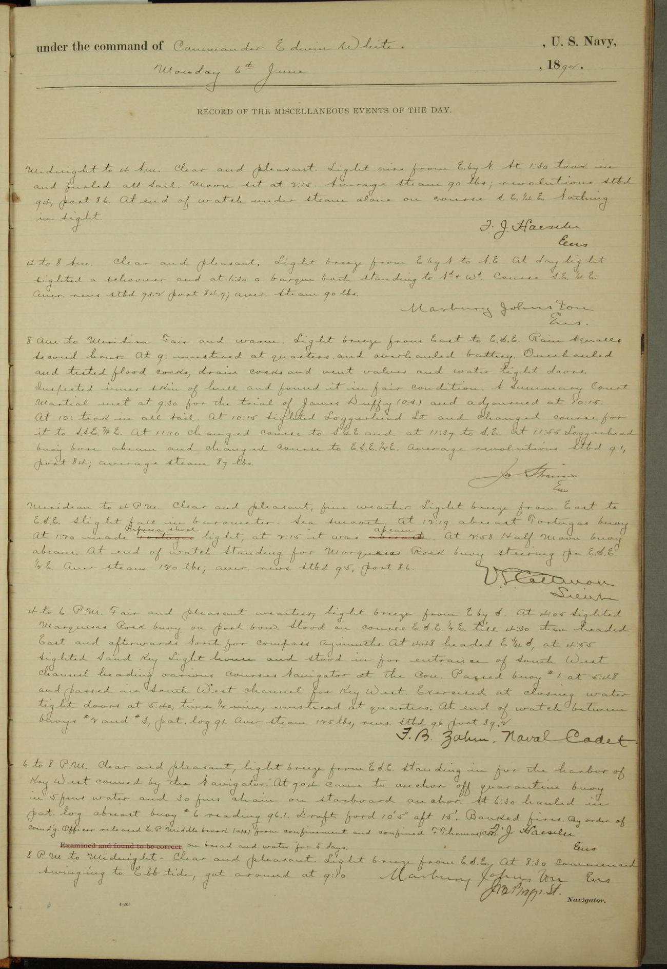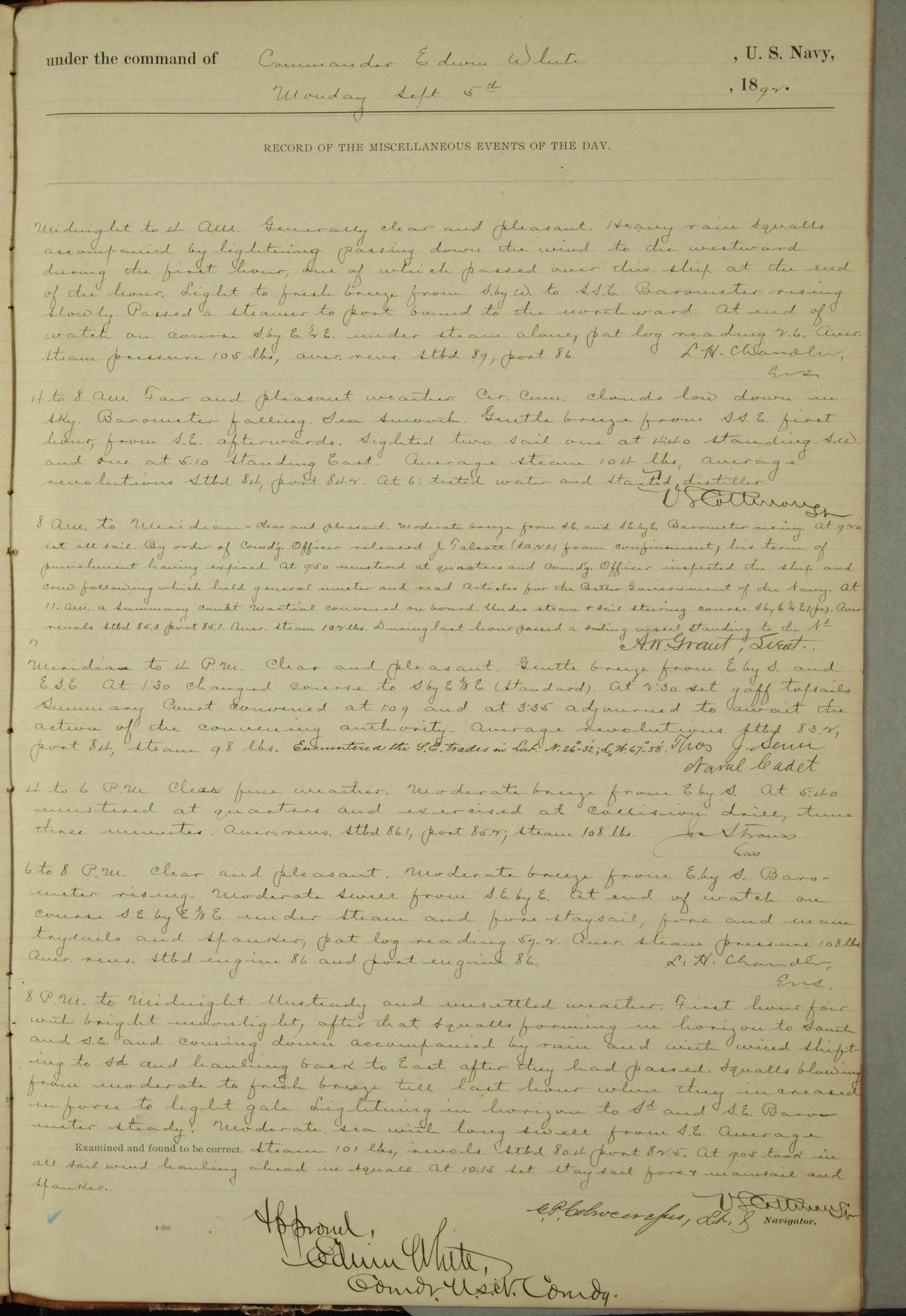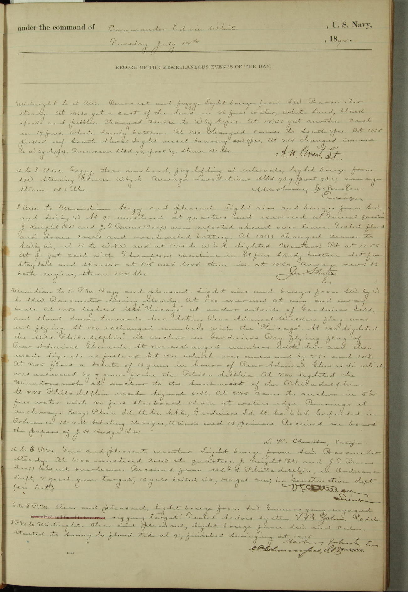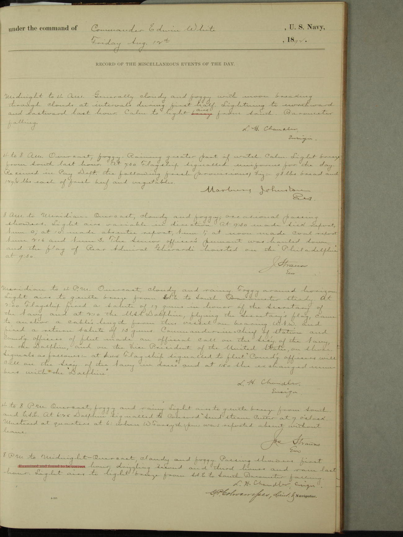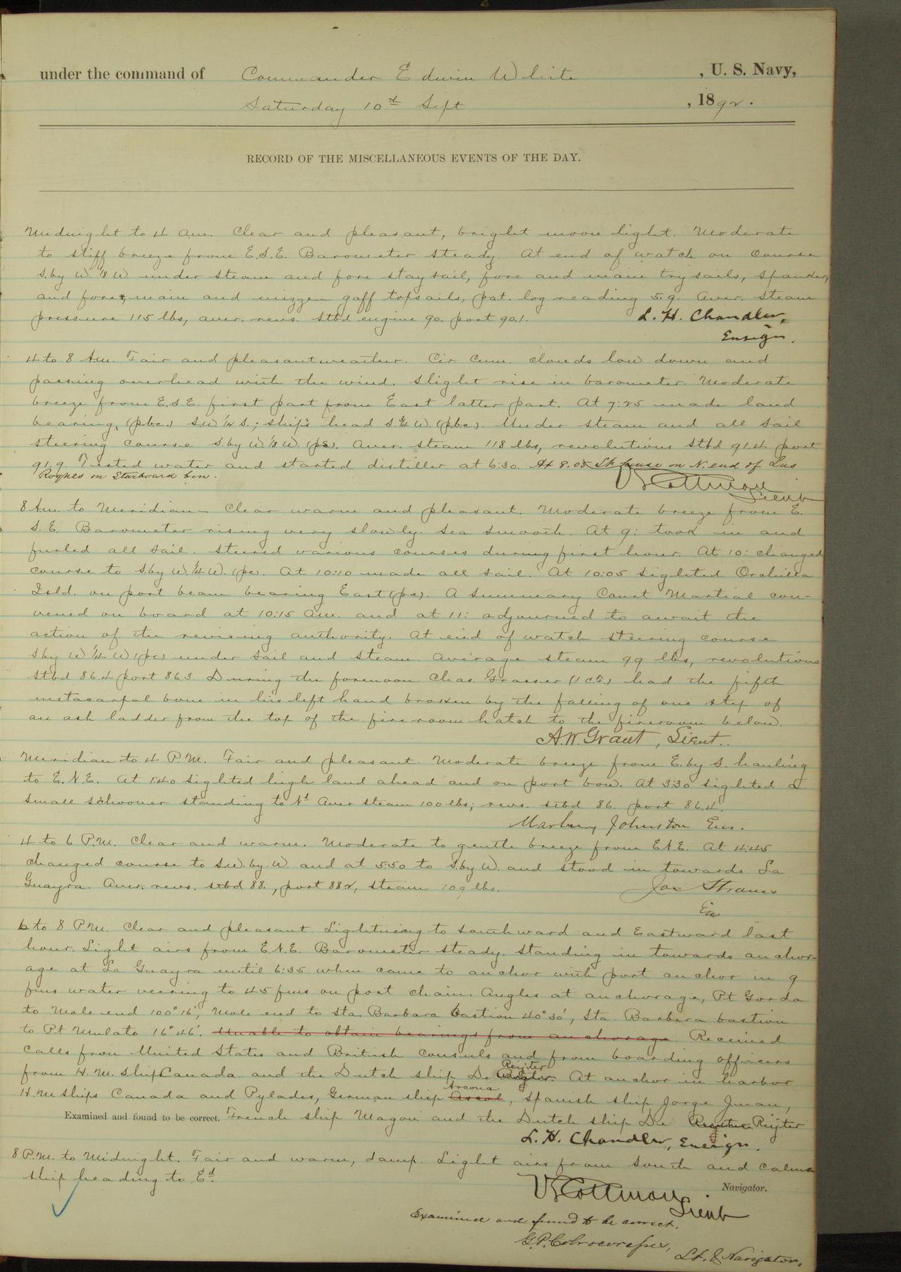 Examined and found to be correct. G. P. Ch????npes, Louit. G. Navigator