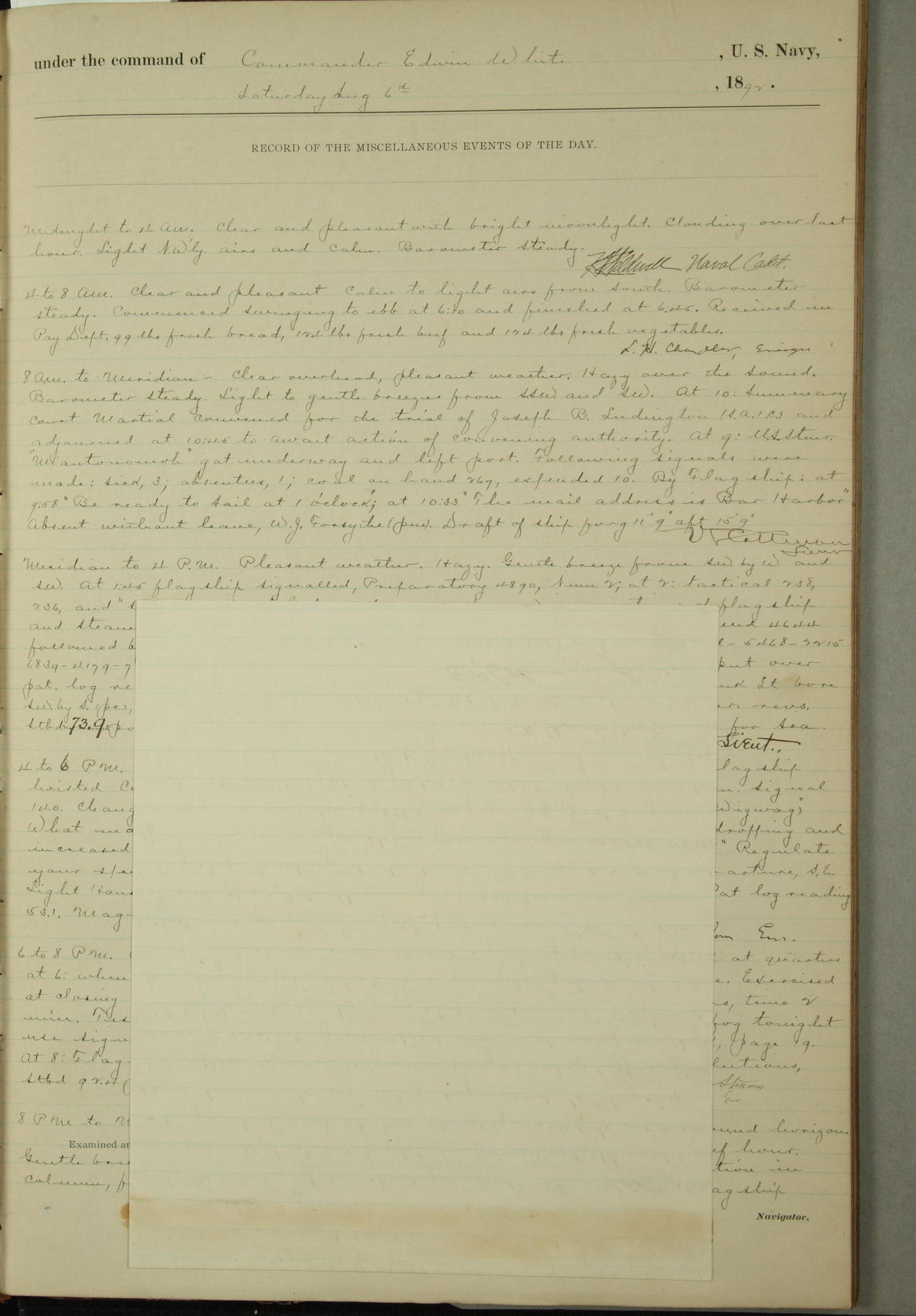 Commander Edwin White - Ship Log Signature, Ship Commander