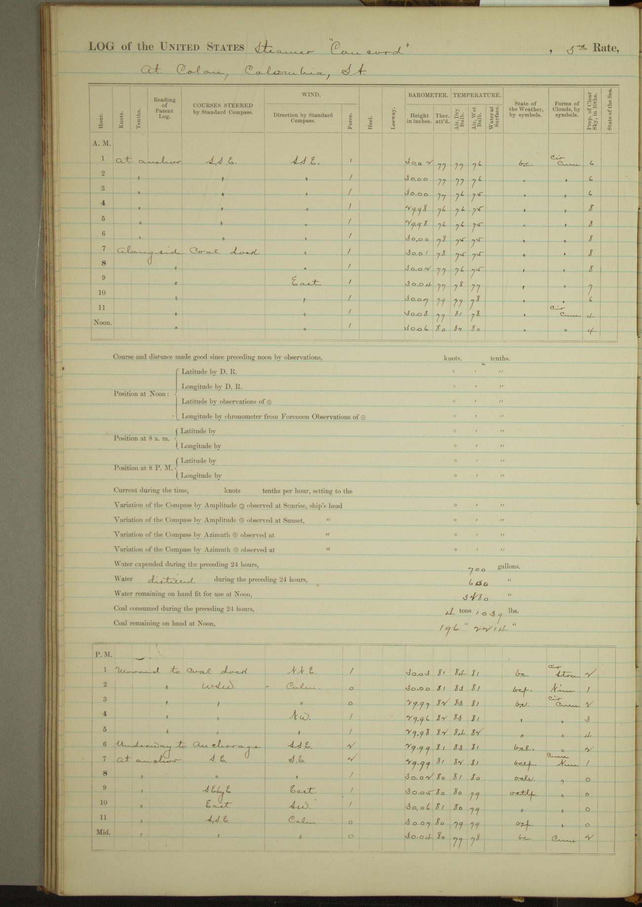 2 tons 1420 lbs coal consumed in previous 24 hrs