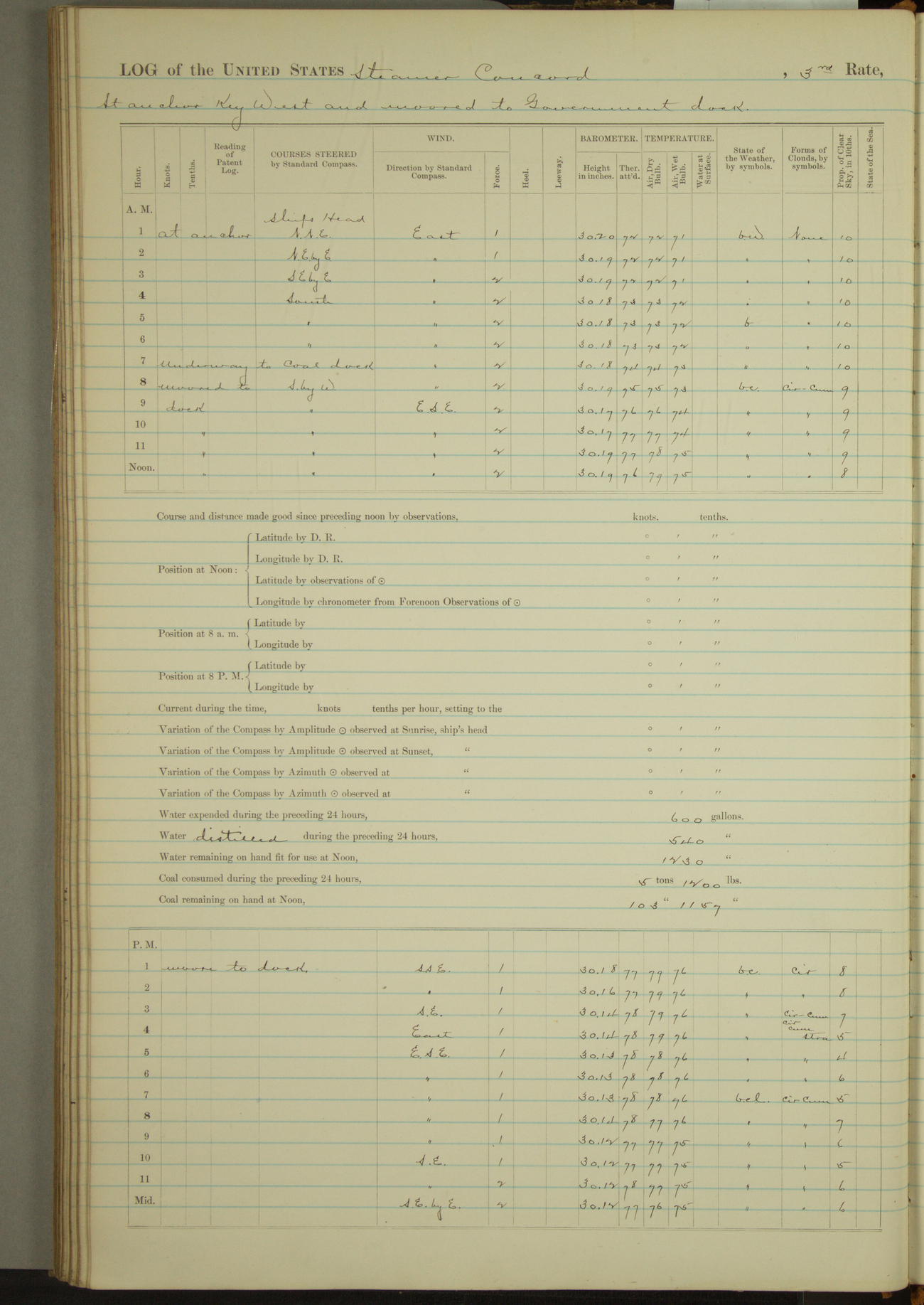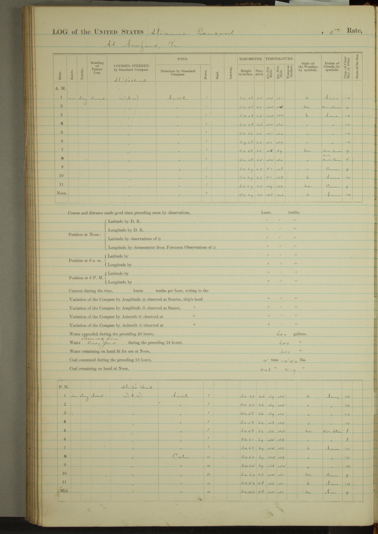 Moored to Dock navy Yard. No instruments on board for recording meteorological observations