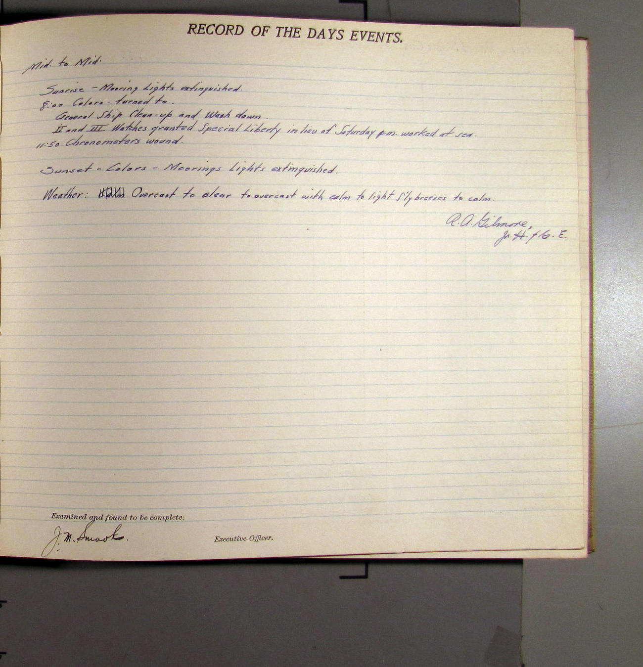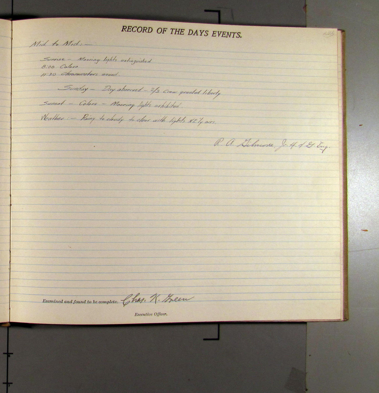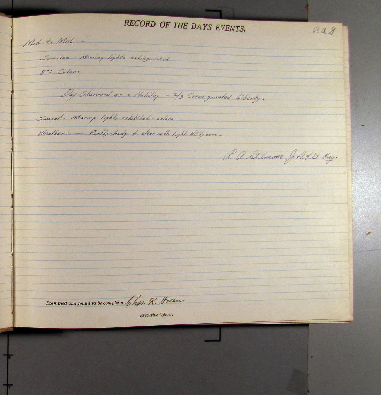 Day observed - crew off watch granted liberty