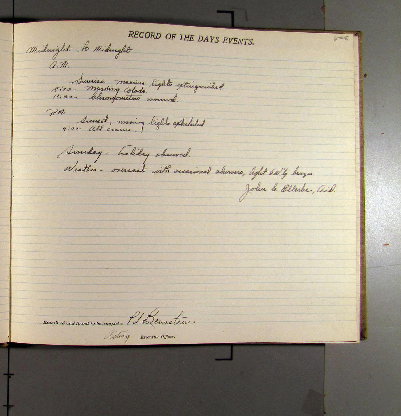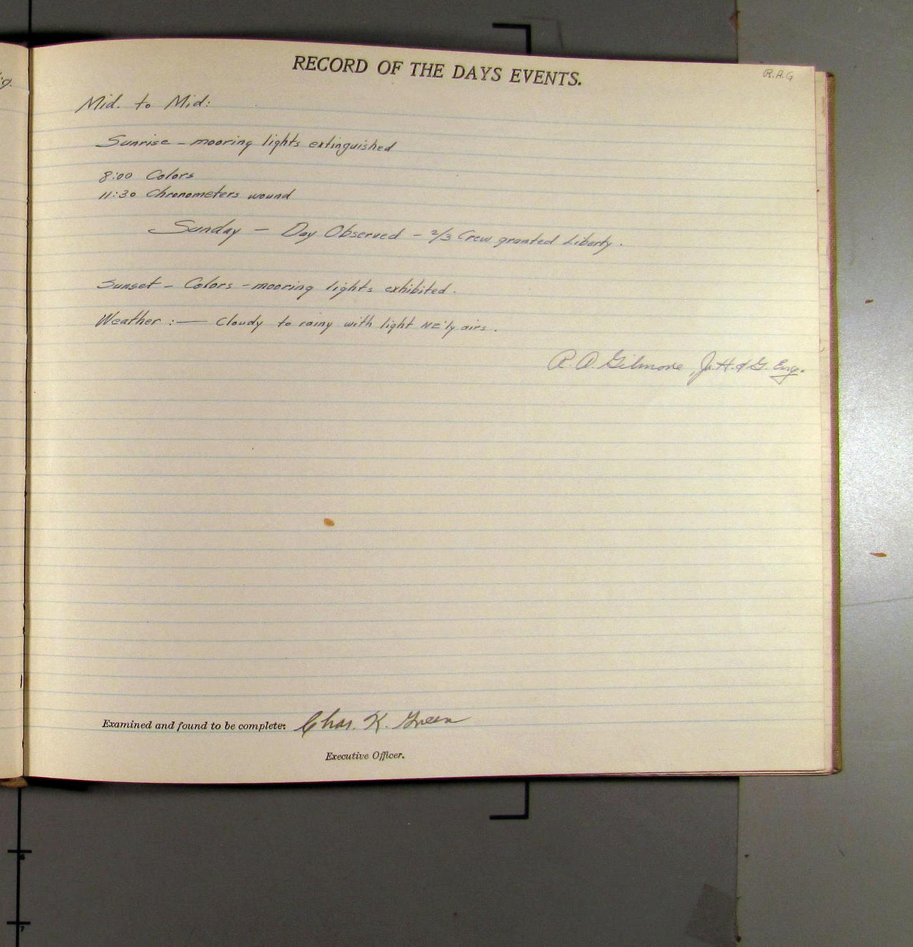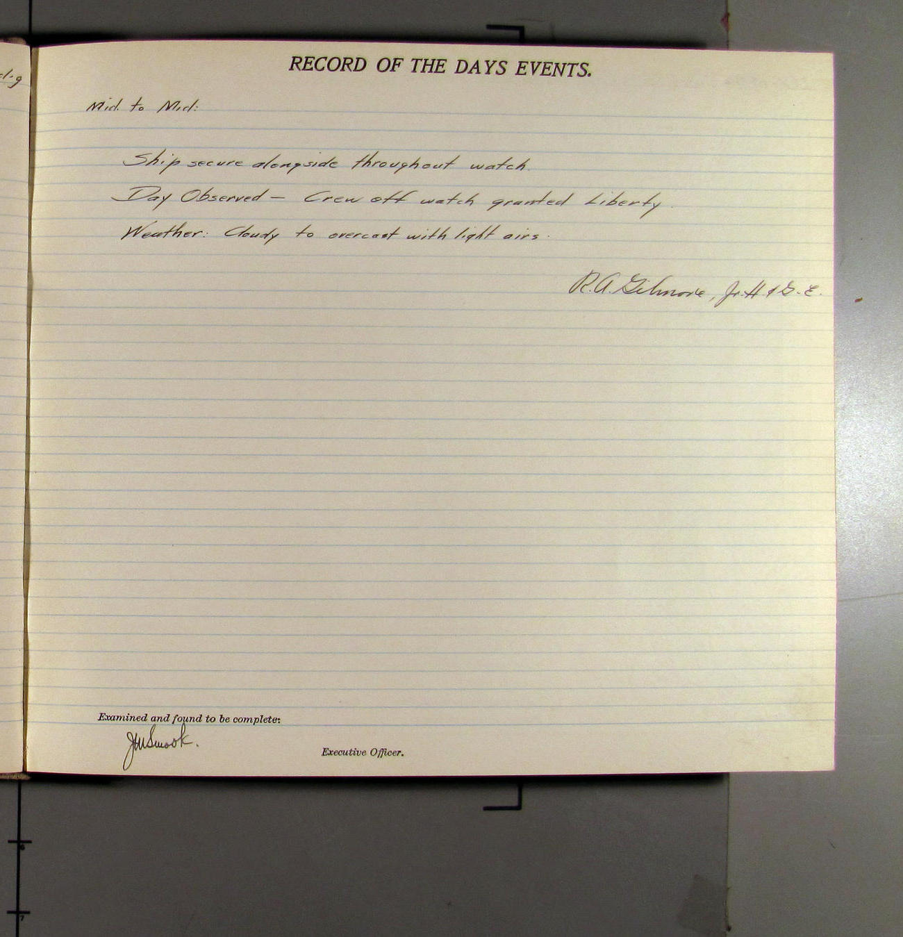 Day observed - crew off watch granted liberty