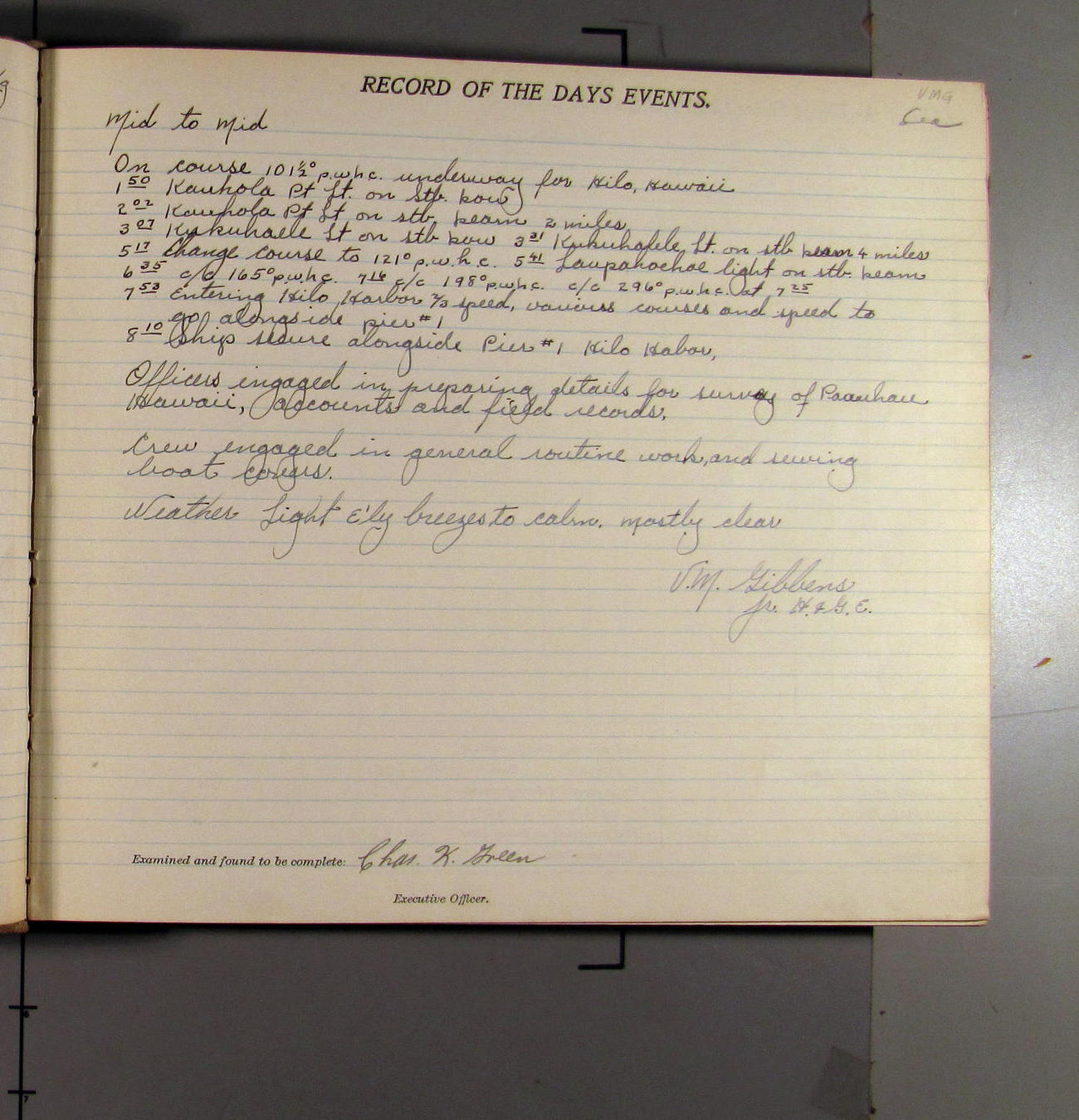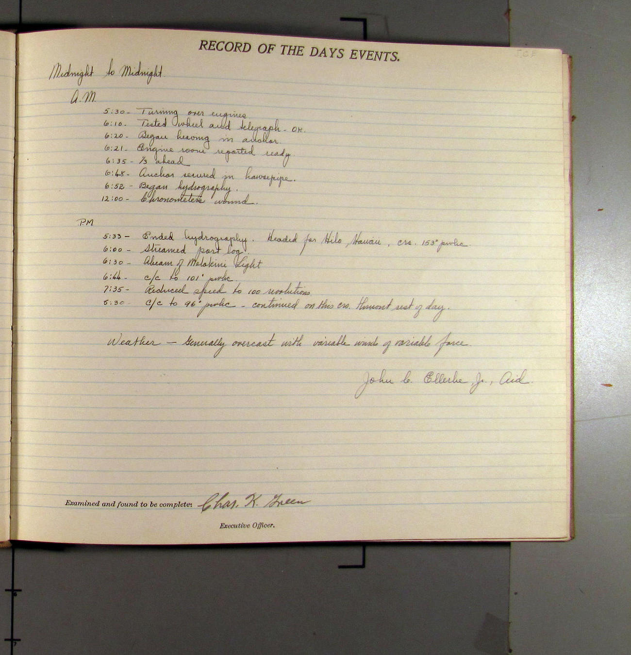 underway from hilo th to working grounds