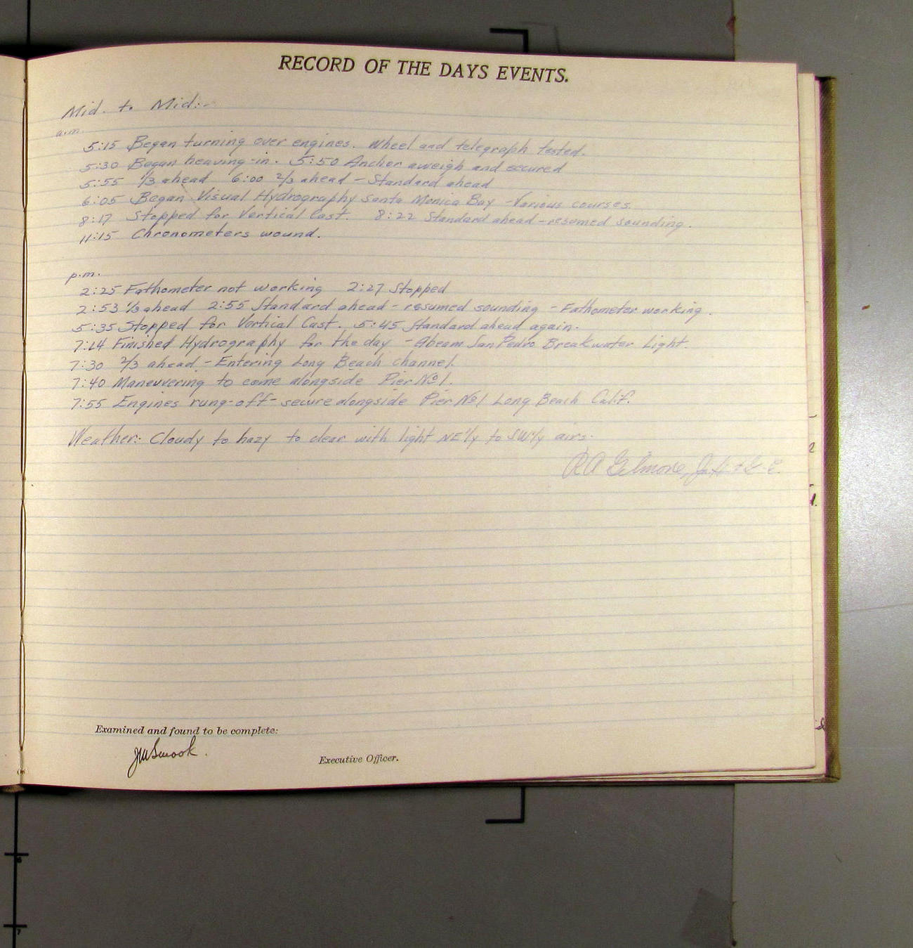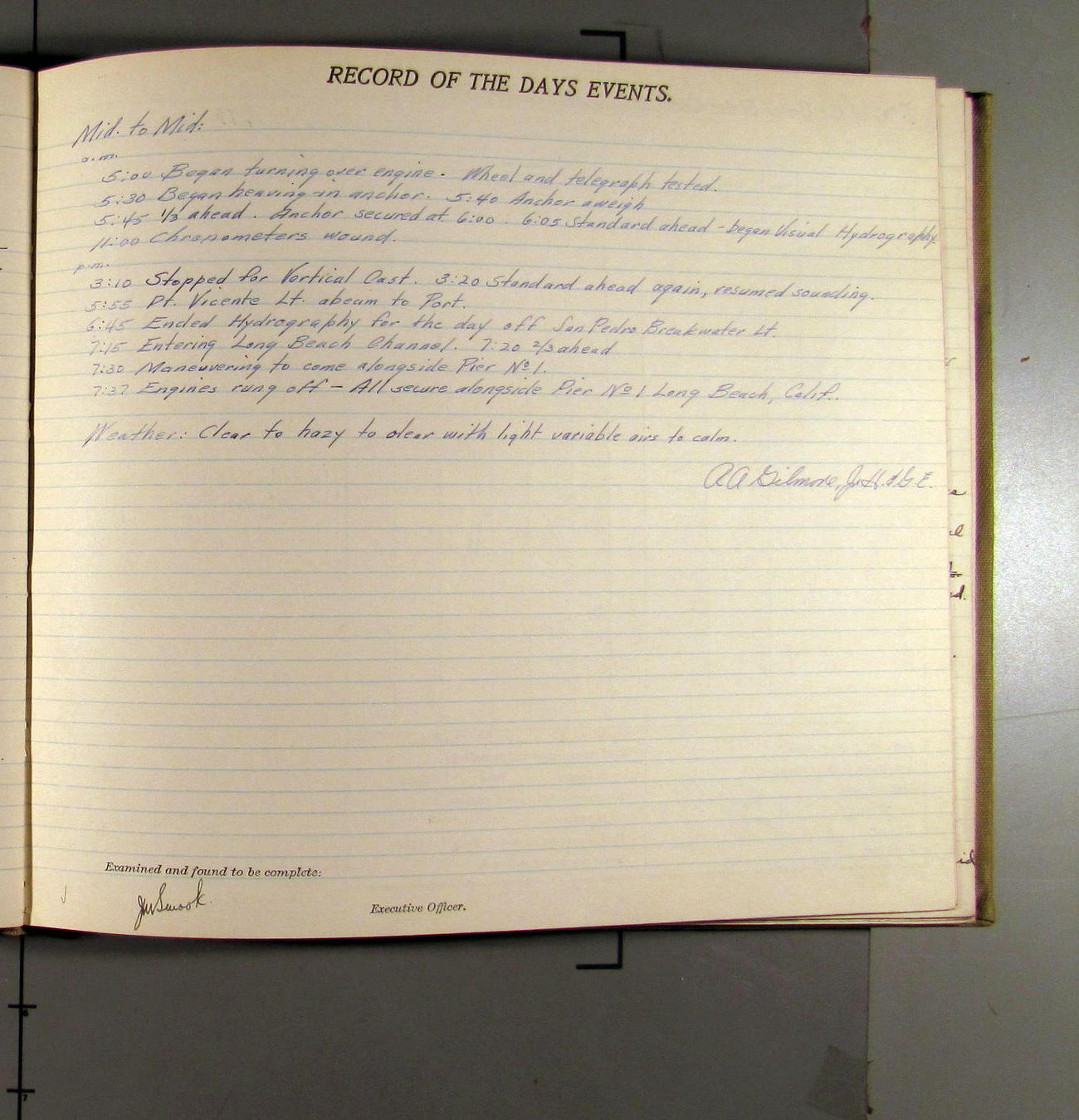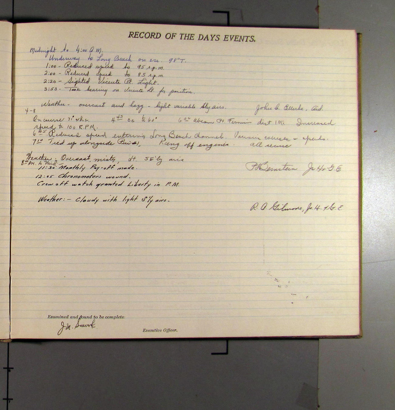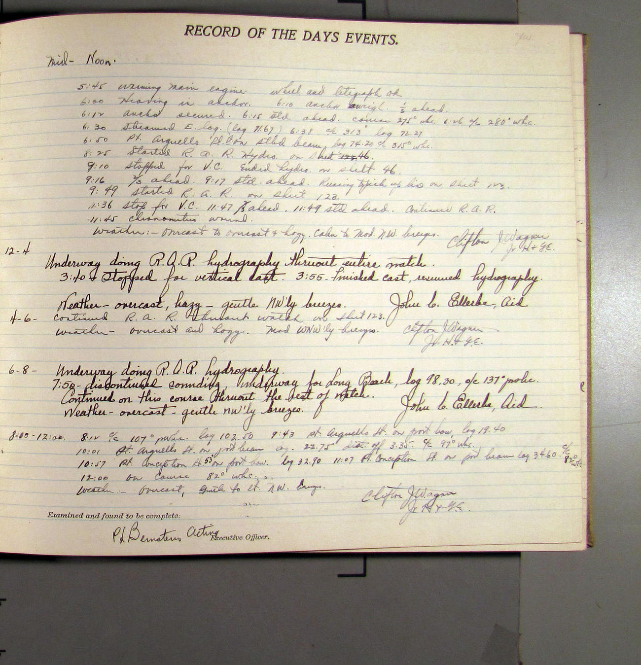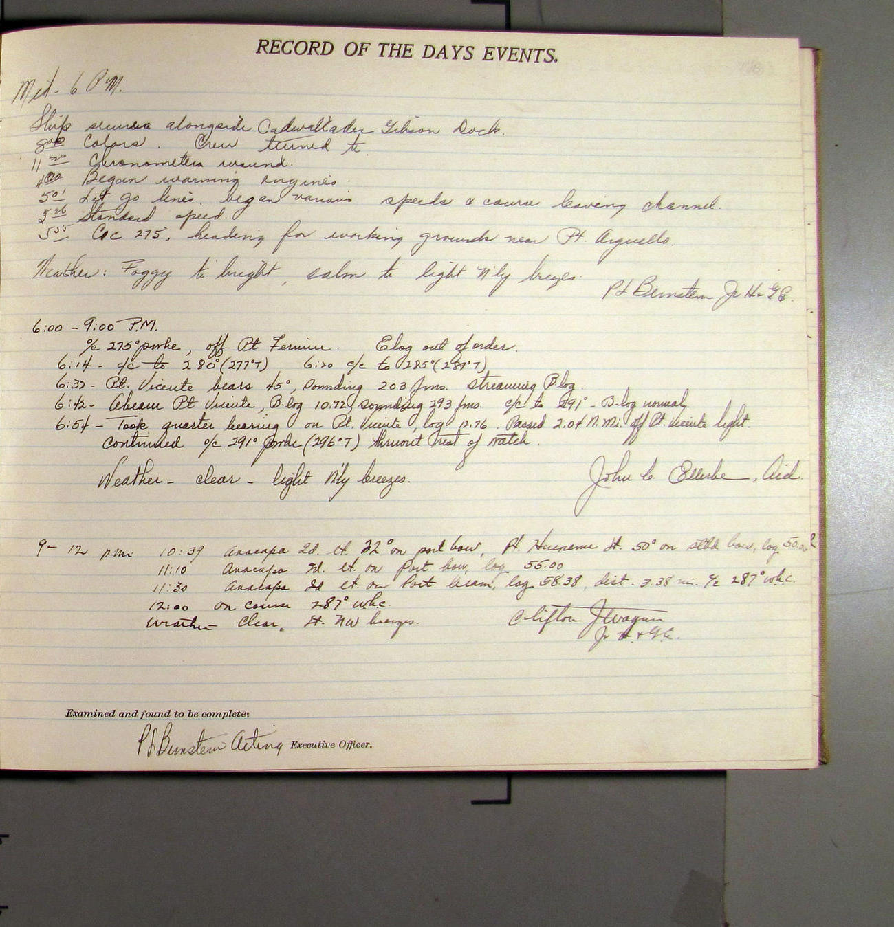 4:15 [AM] Picked up Pt. Vicente Lt.