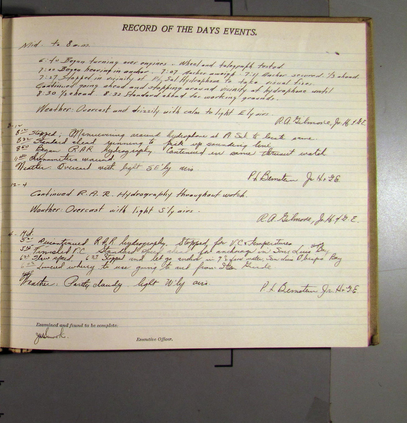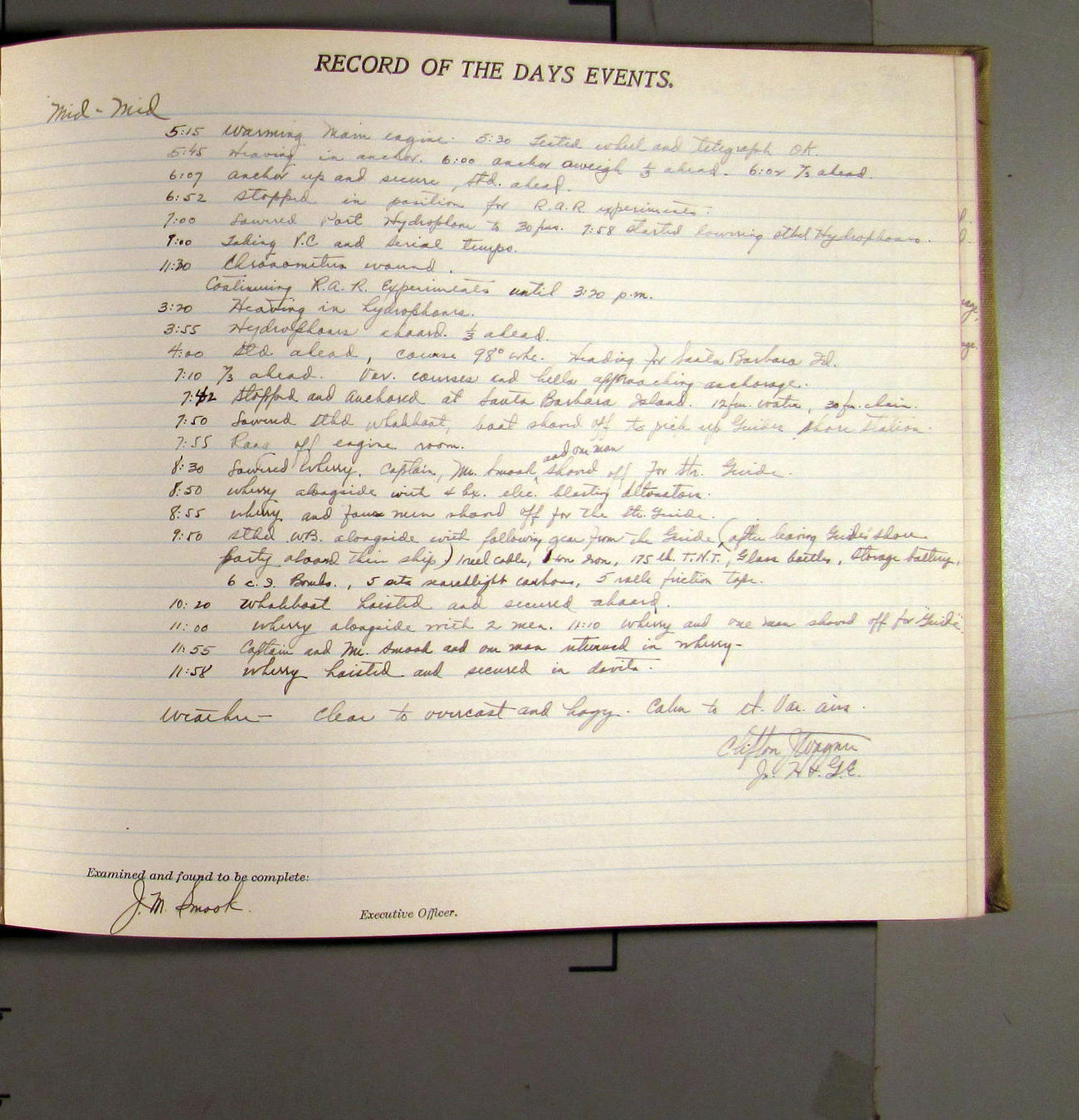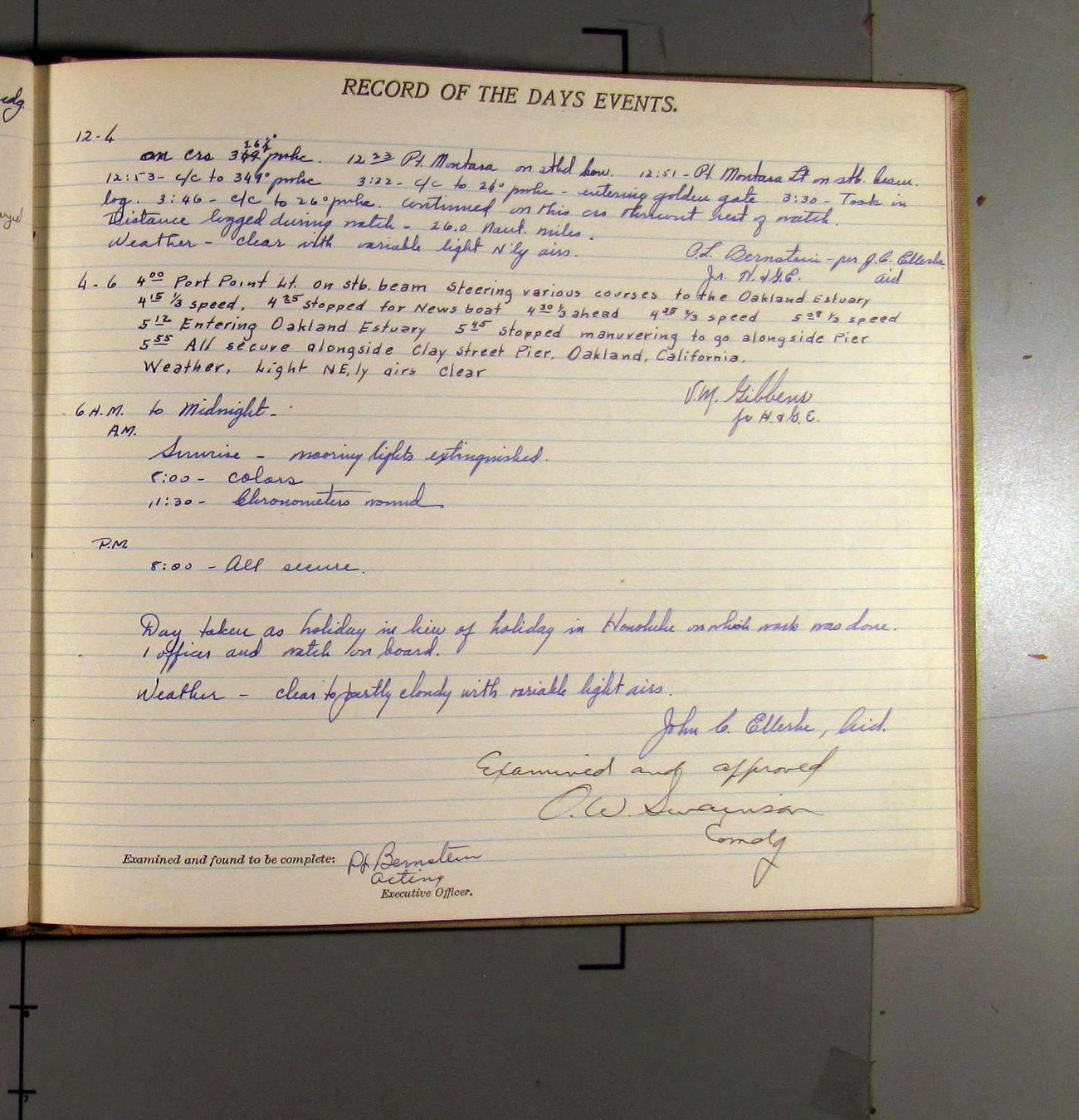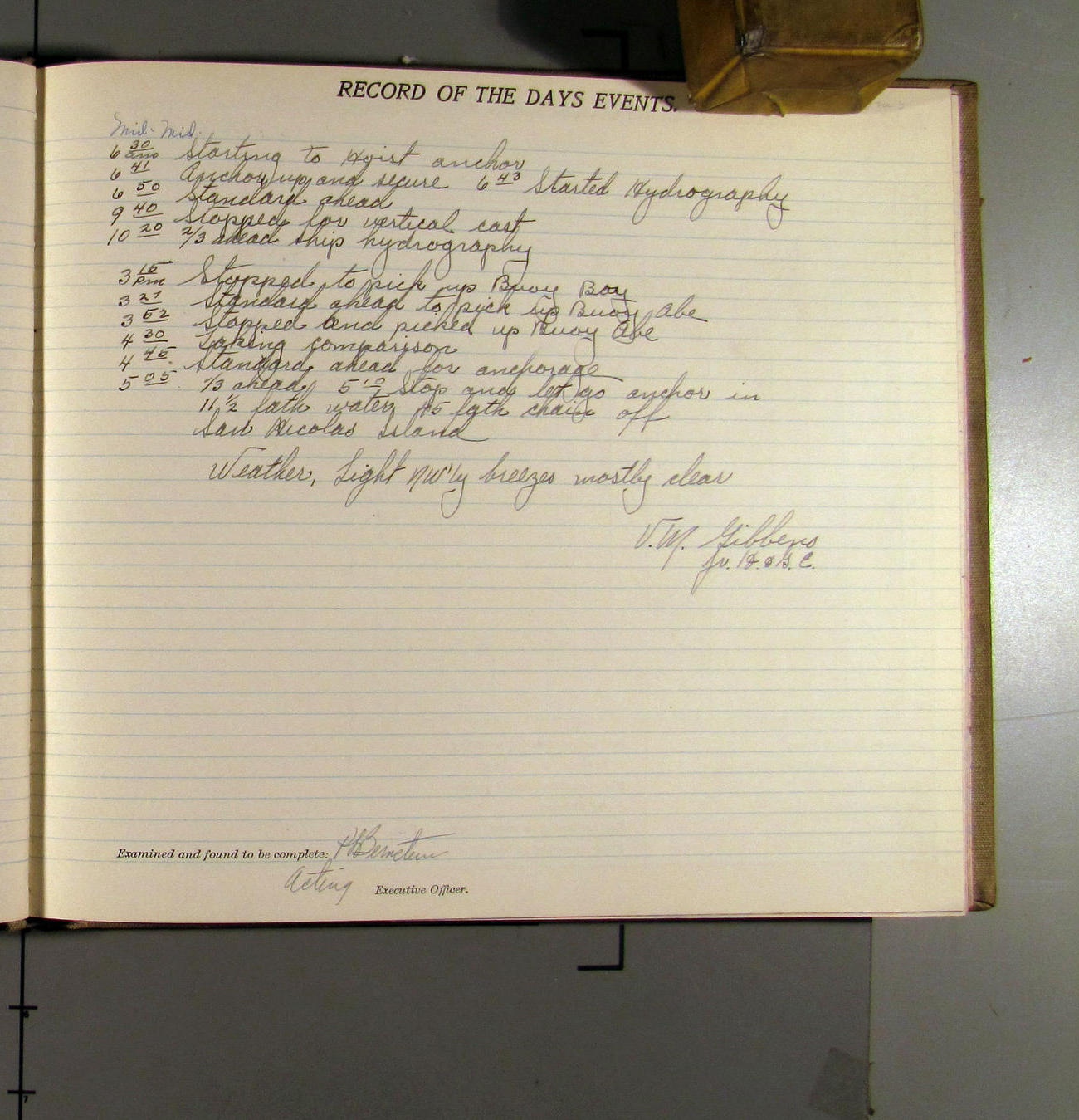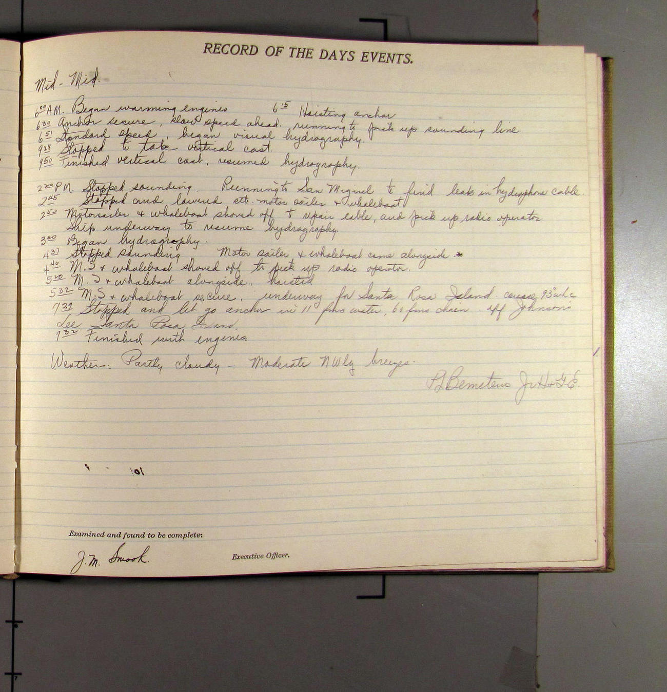 4:15 [AM] Picked up Pt. Vicente Lt.