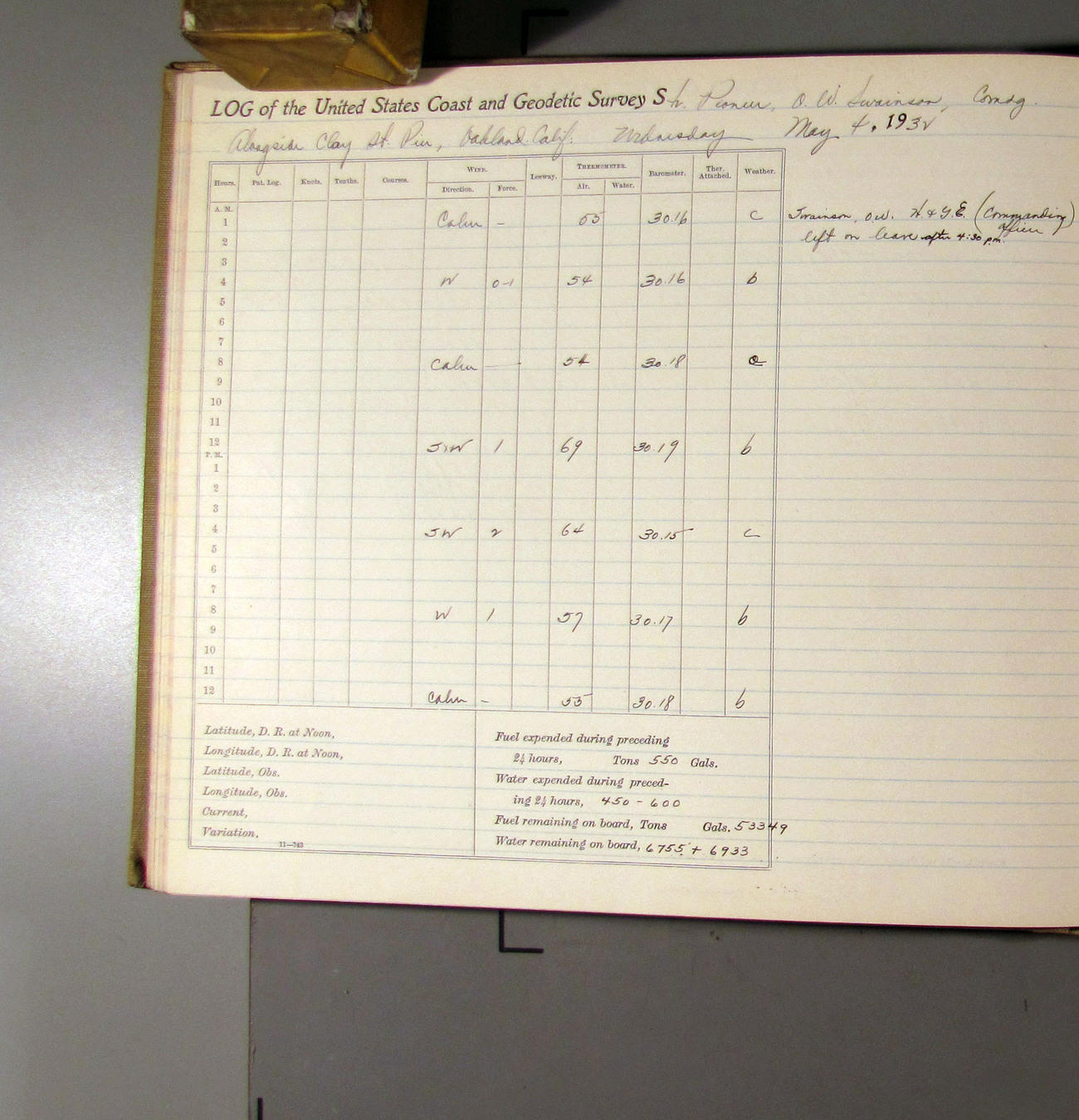 50874e6009d40907550148d1: (http://oldweather.s3.amazonaws.com/ow3/final/USCS Pioneer/Book 47 - October-December, 1933/IMG_0443_1.jpg)