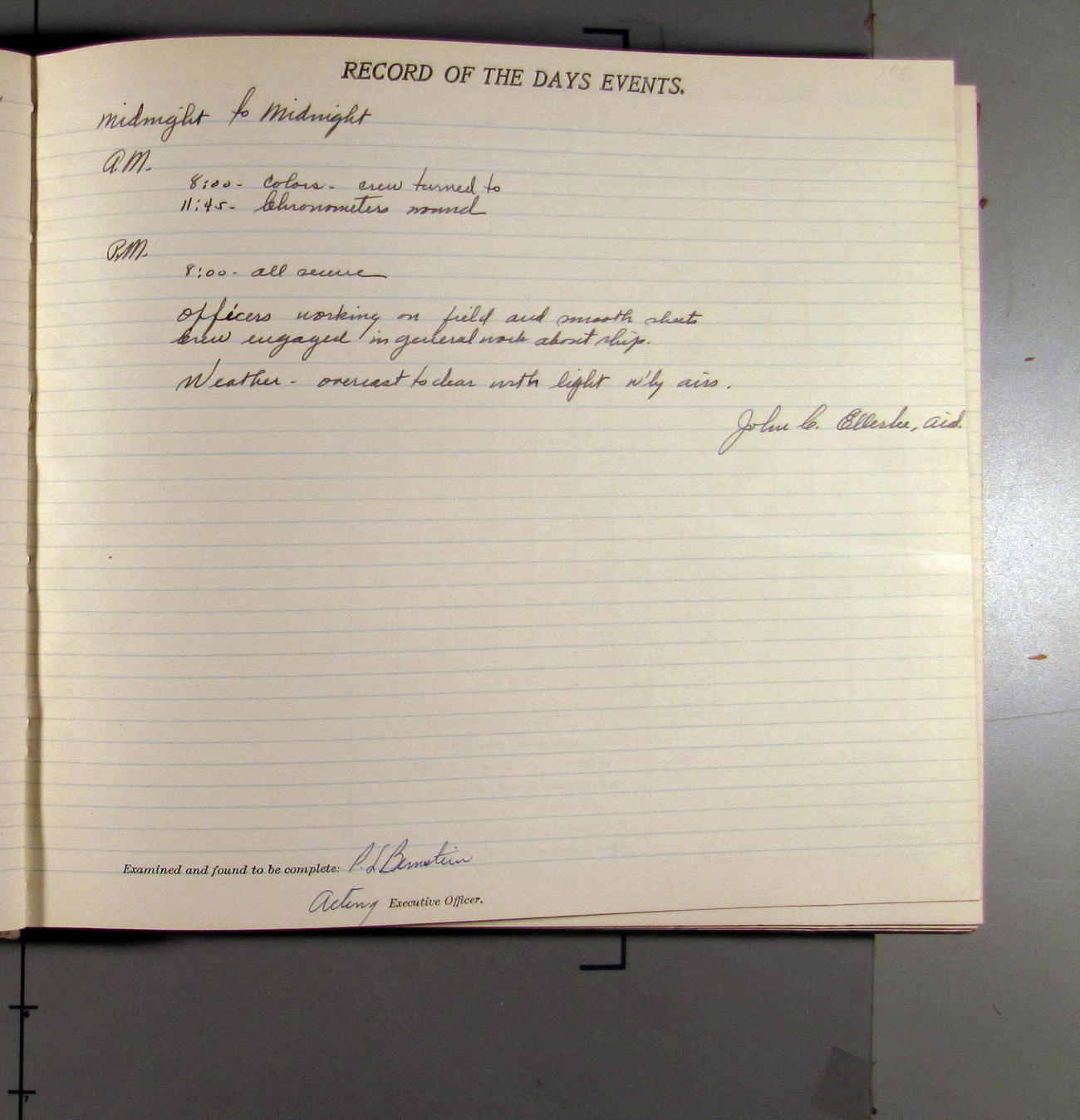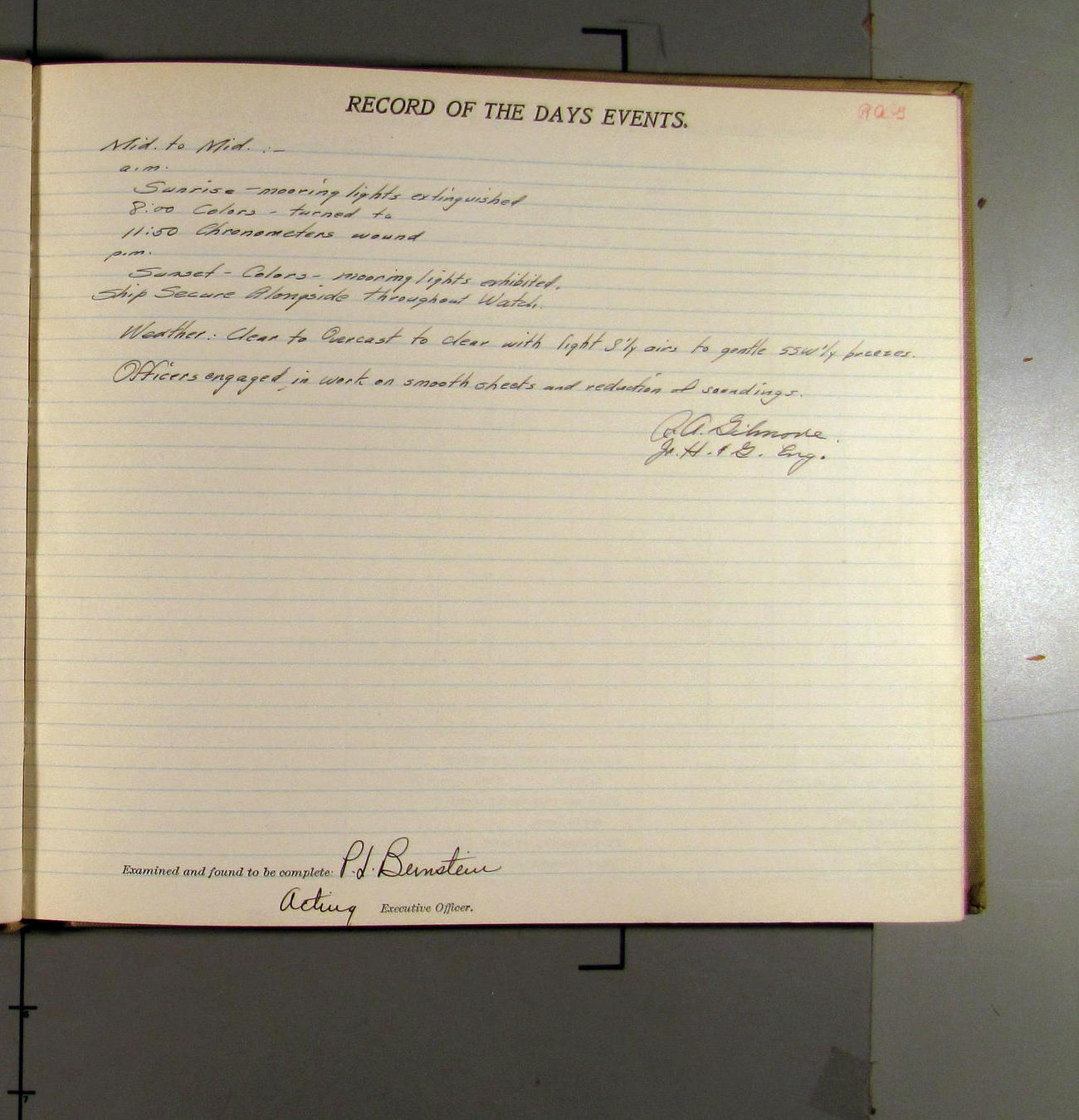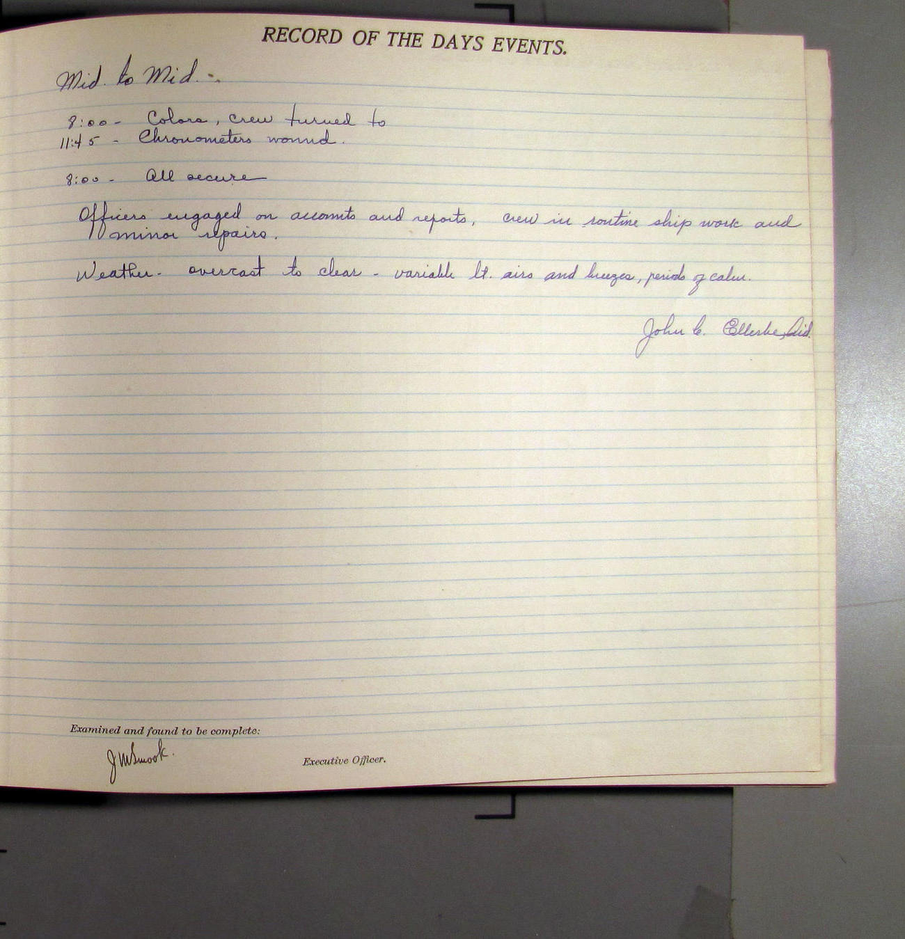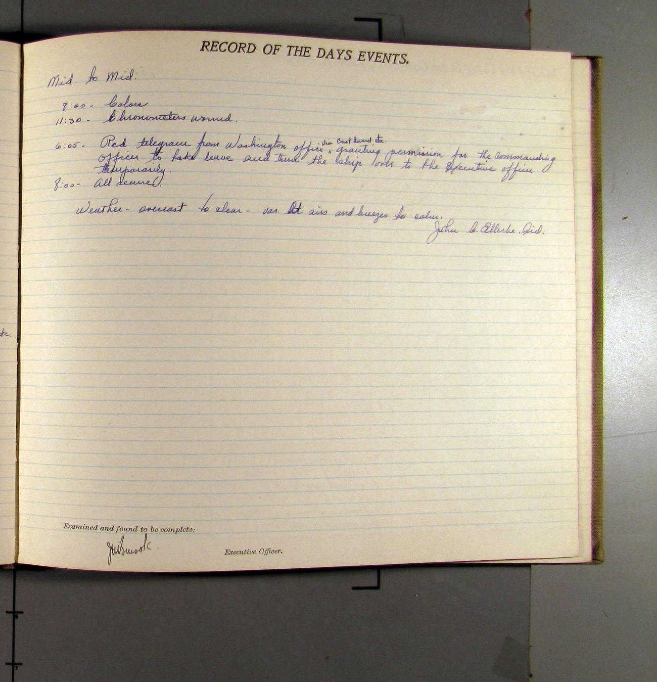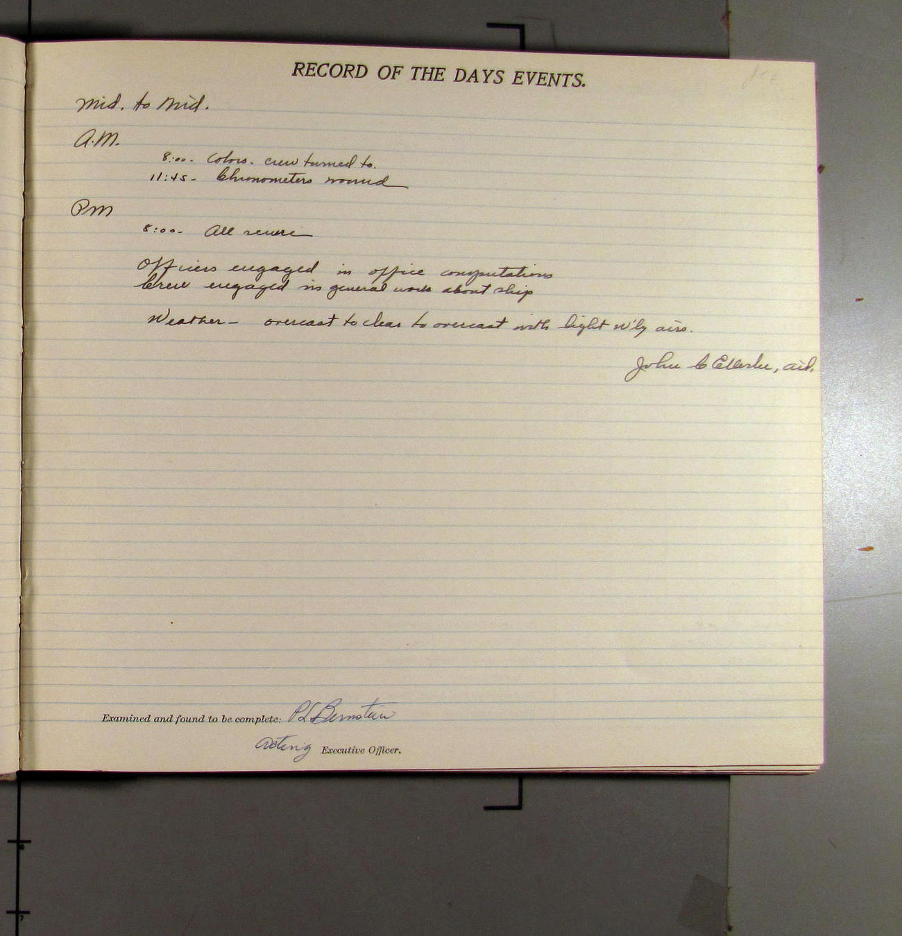 Mt J.E. Ellerbe - went on leave starting this A.M.
