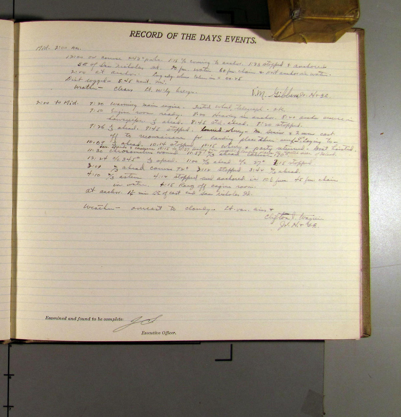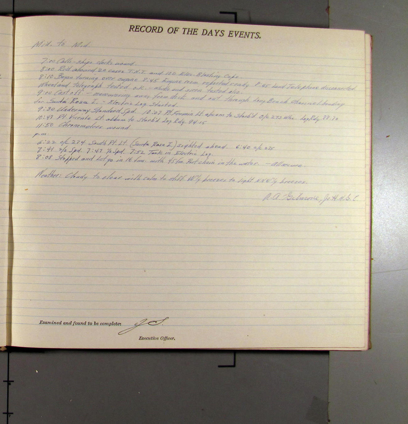 7:13 [PM] Abeam Pt. Vicente Lt. distanced 1.55 mi.