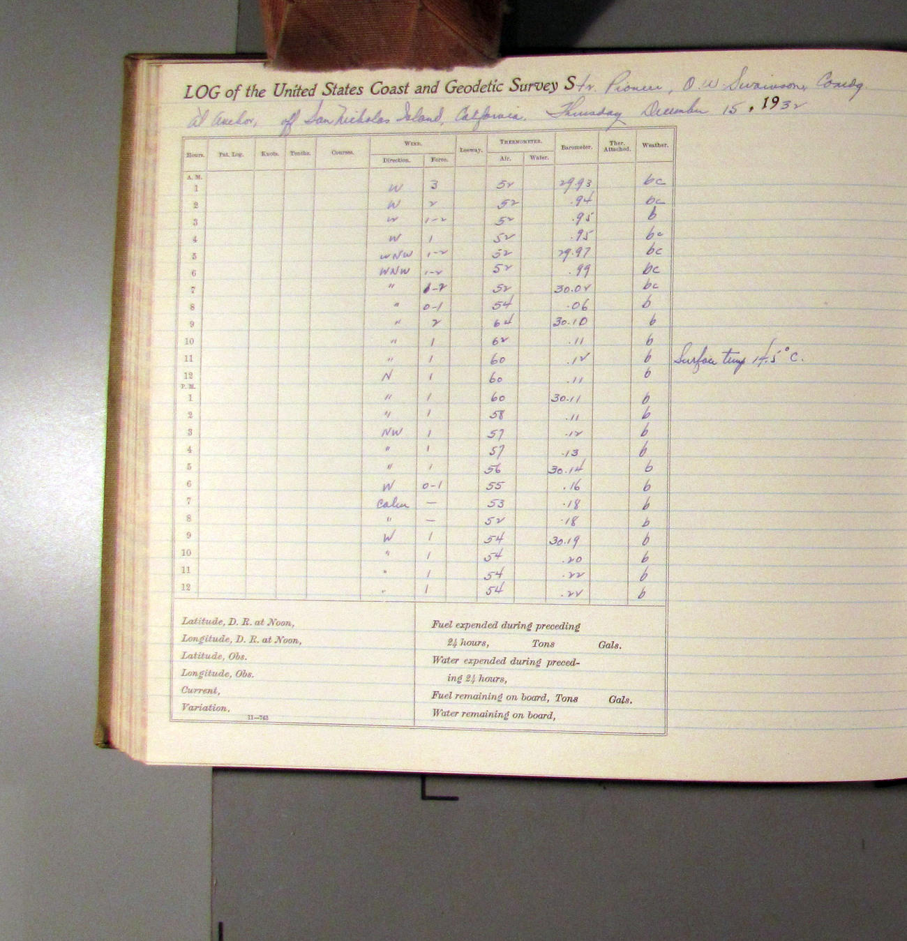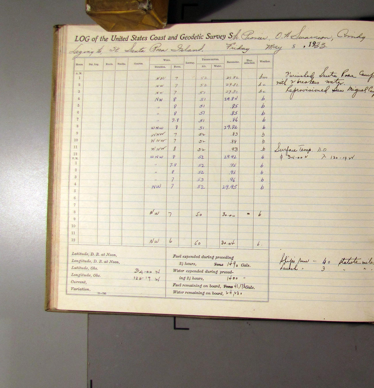 50874e6009d40907550148a3: (http://oldweather.s3.amazonaws.com/ow3/final/USCS Pioneer/Book 47 - October-December, 1933/IMG_0432_0.jpg)