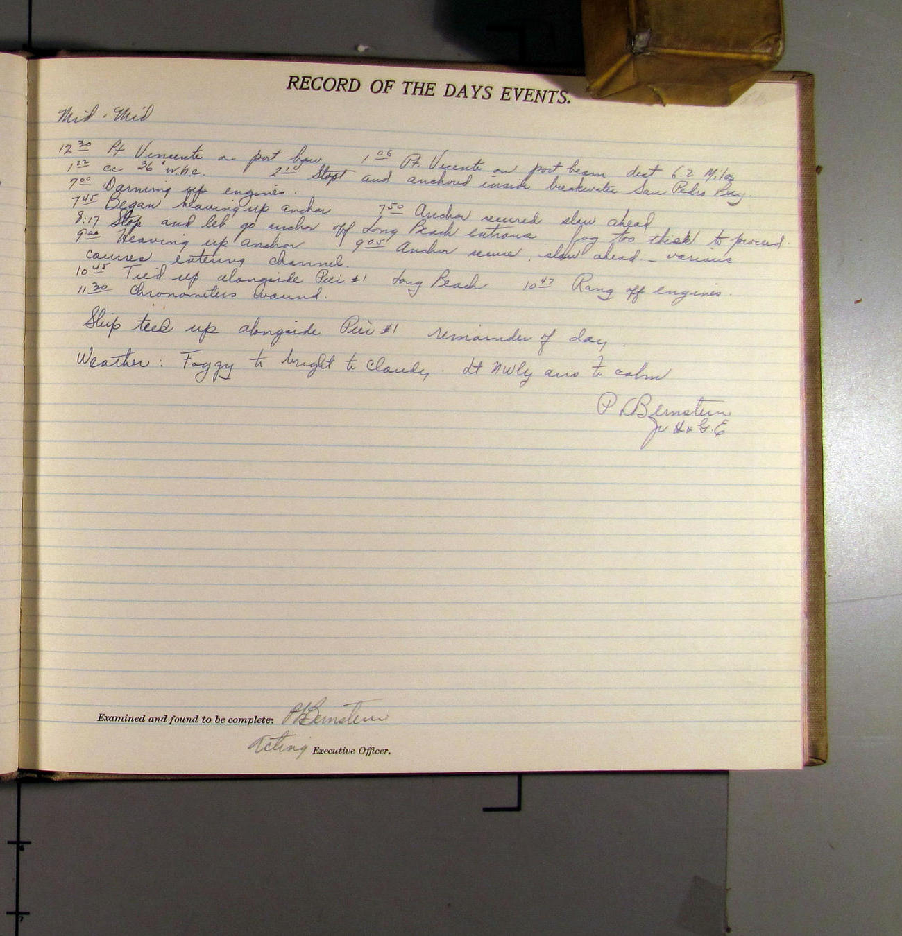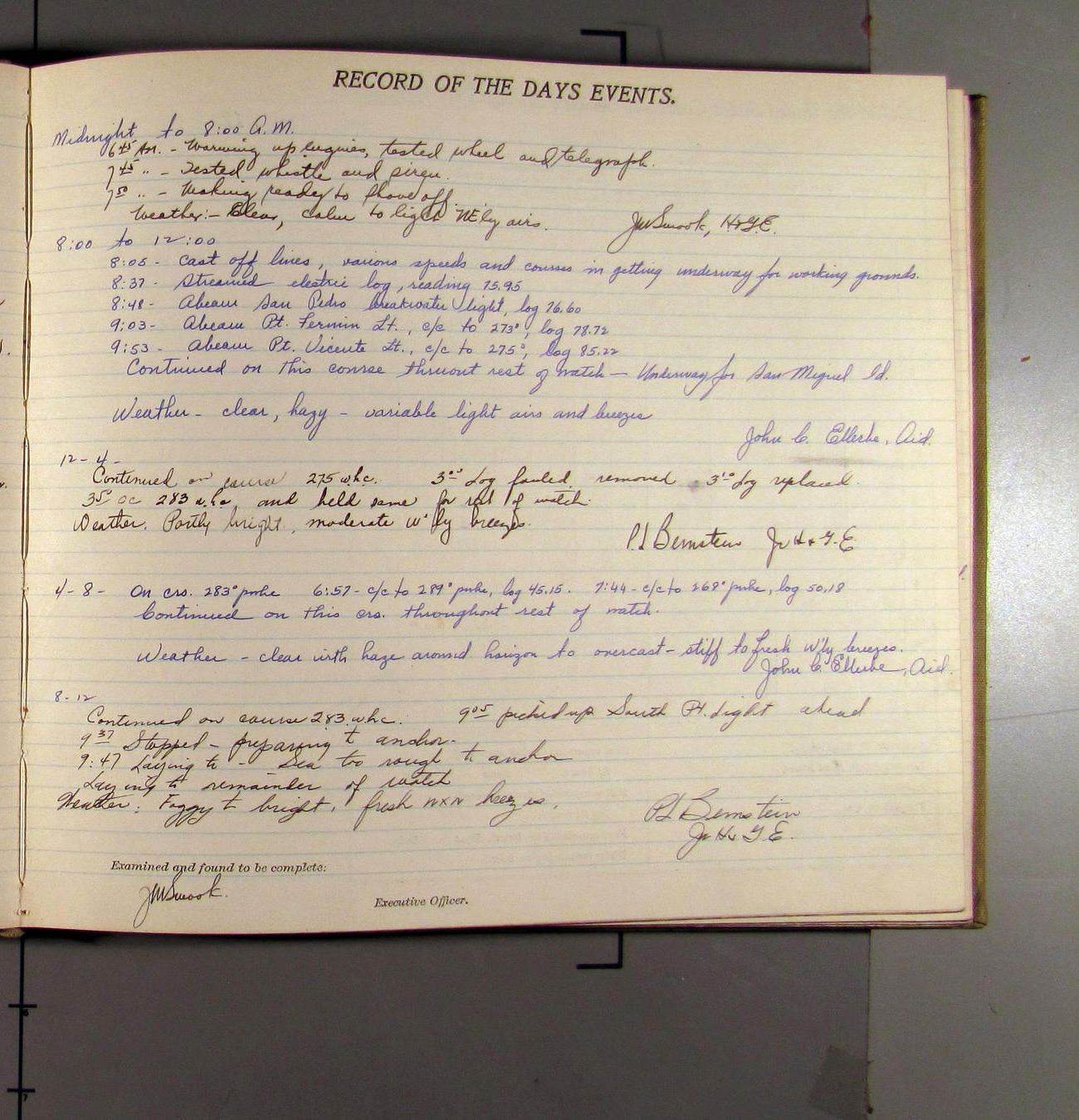 6:50 [AM] Pt. Fermin Lt. abeam to Port