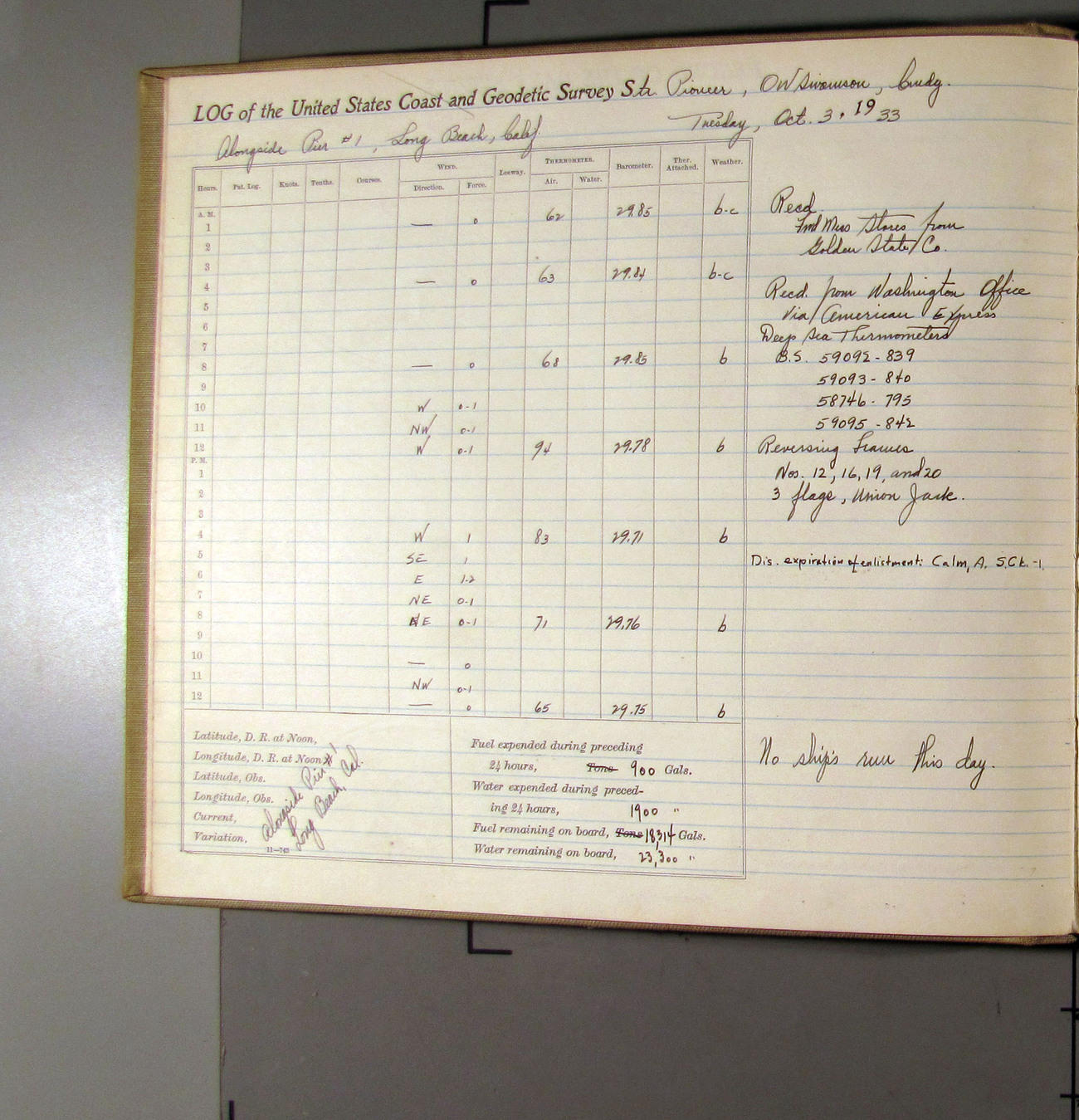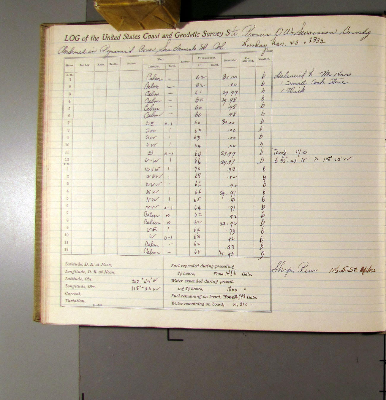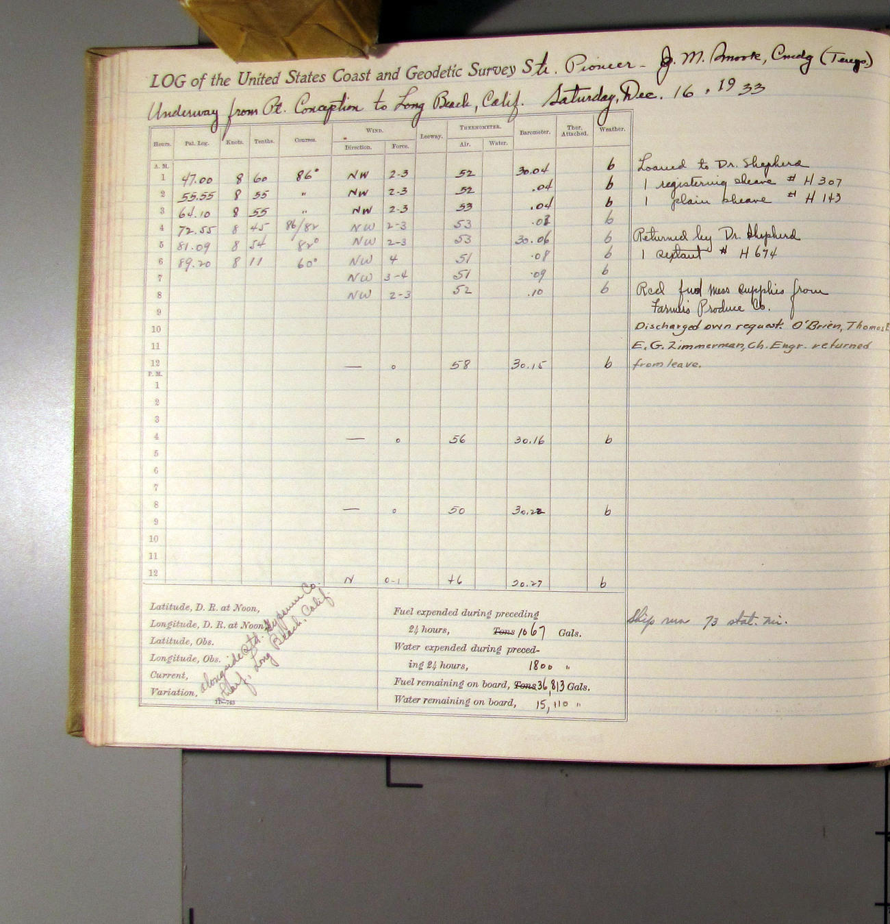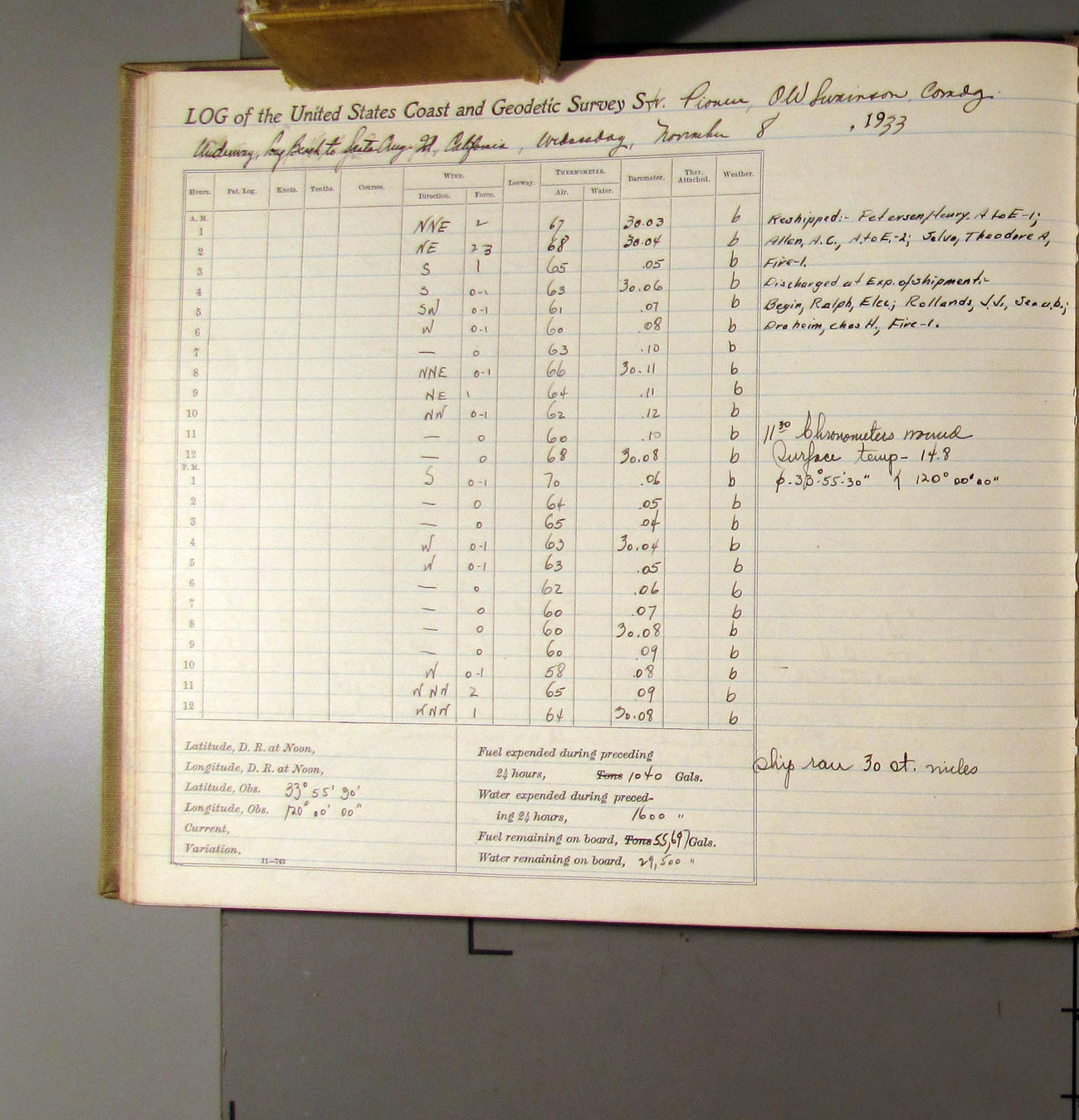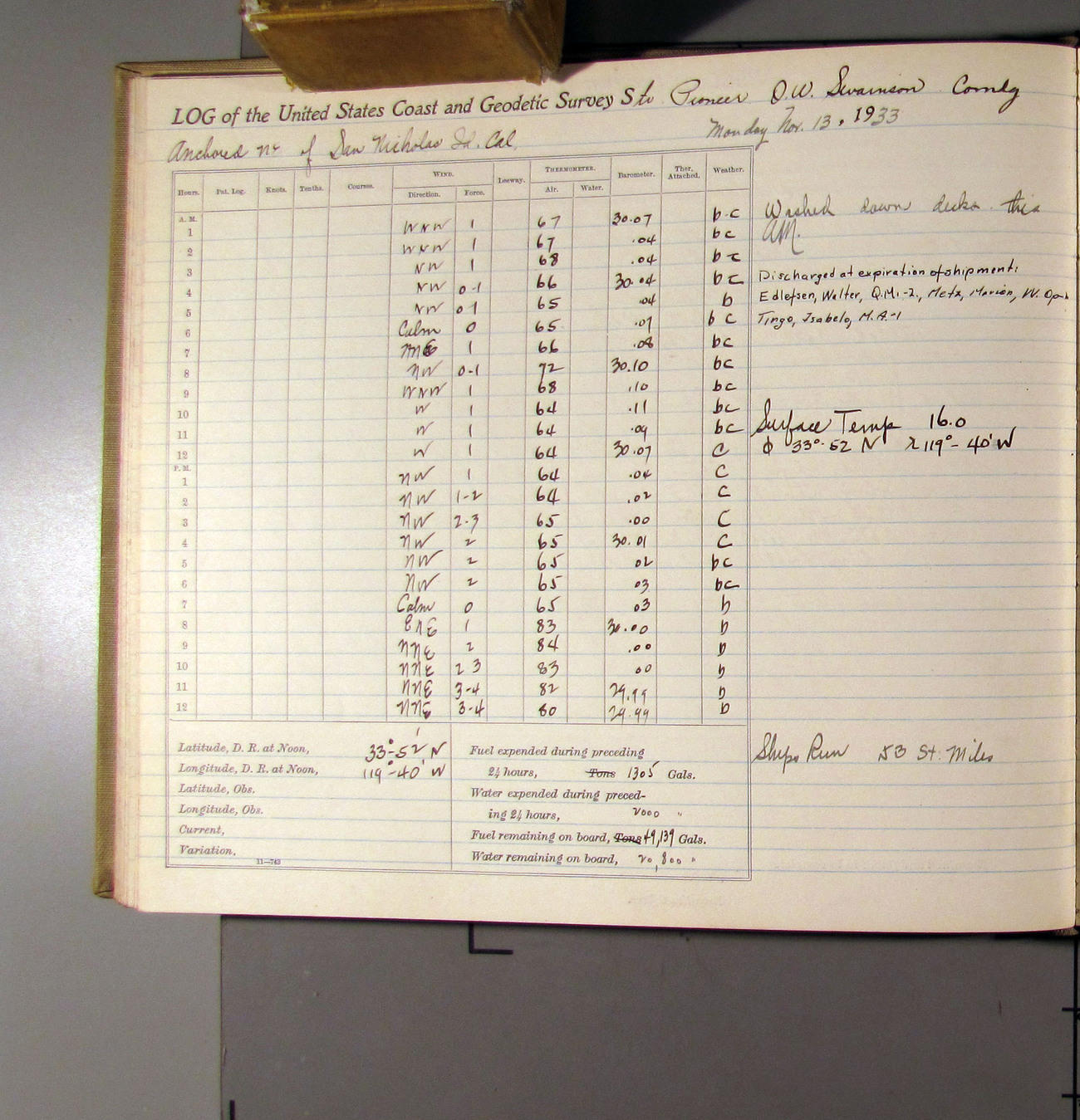 50874e6009d40907550148d9: (http://oldweather.s3.amazonaws.com/ow3/final/USCS Pioneer/Book 47 - October-December, 1933/IMG_0445_1.jpg)
