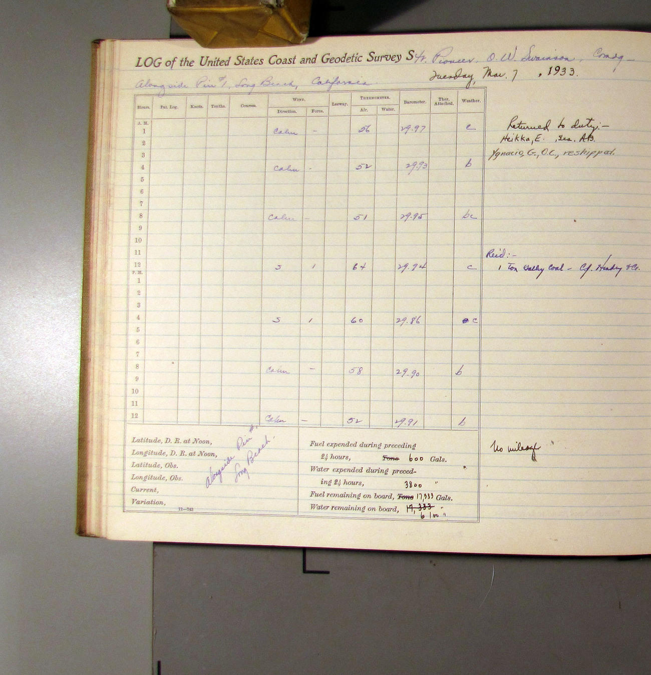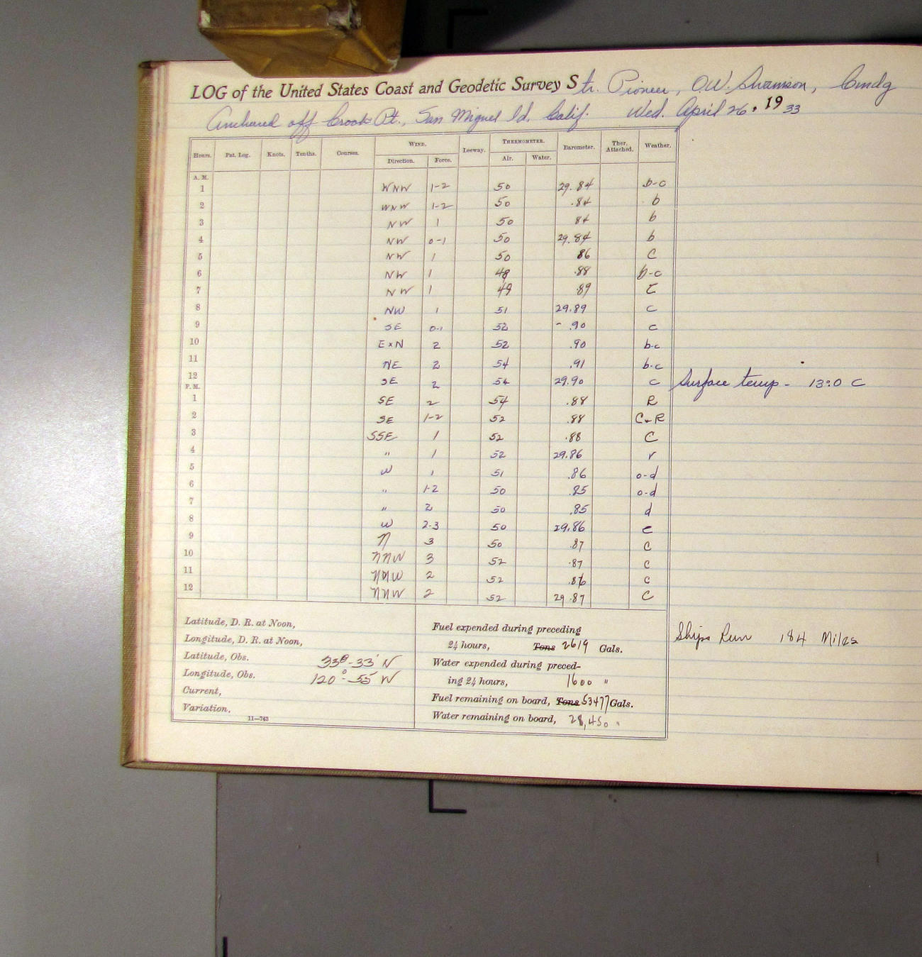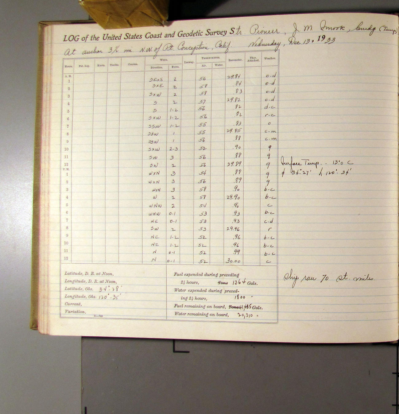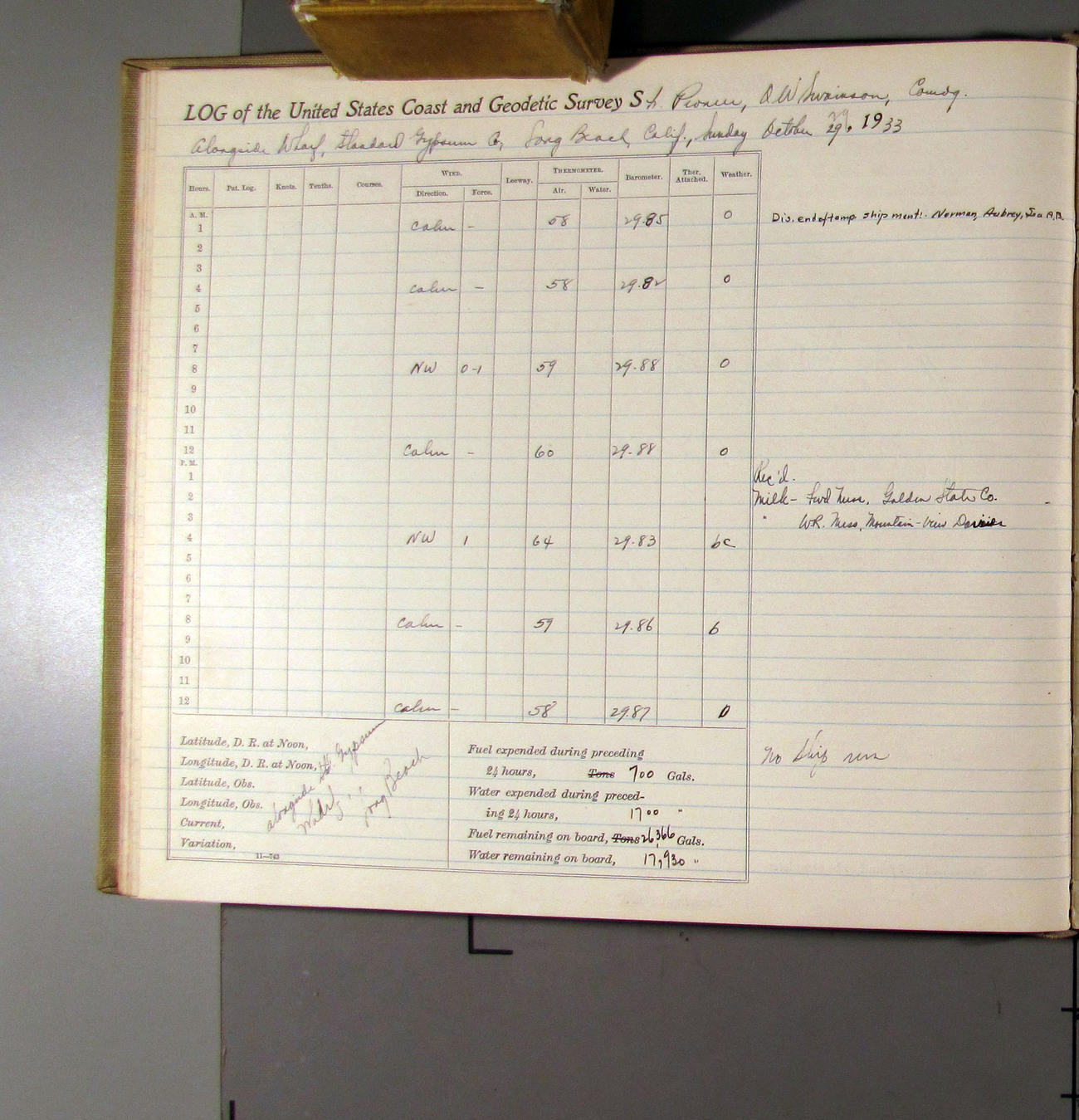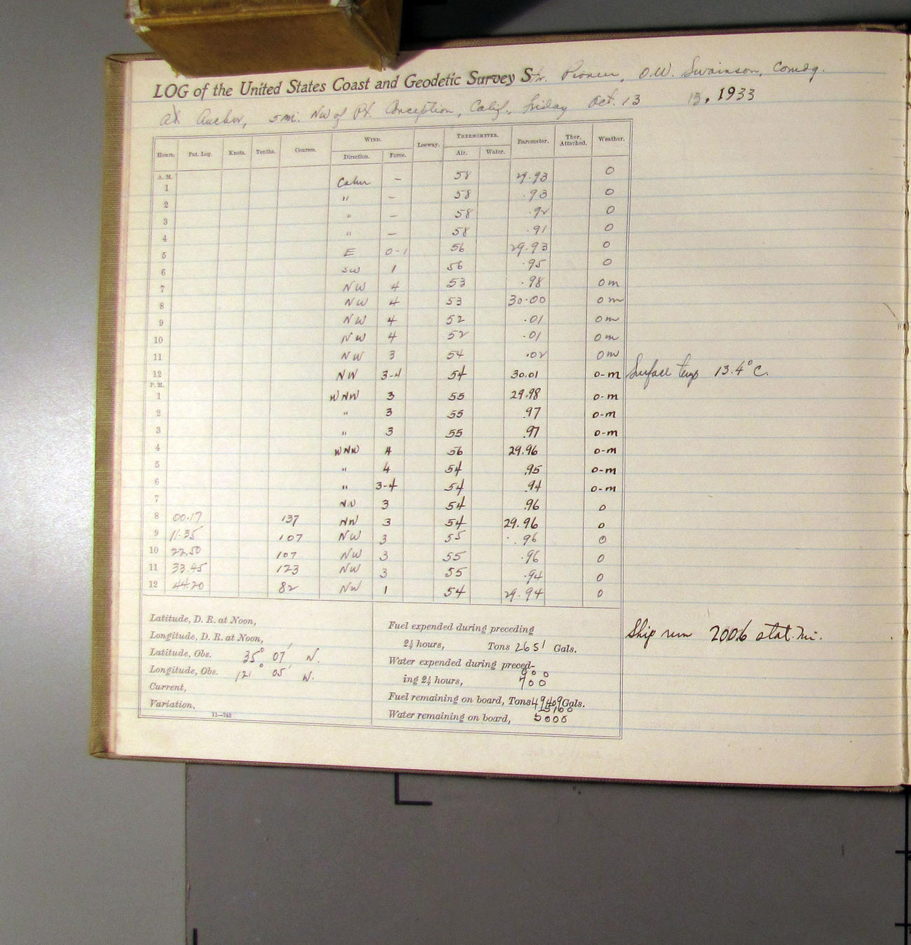 50874e6009d40907550148d9: (http://oldweather.s3.amazonaws.com/ow3/final/USCS Pioneer/Book 47 - October-December, 1933/IMG_0445_1.jpg)