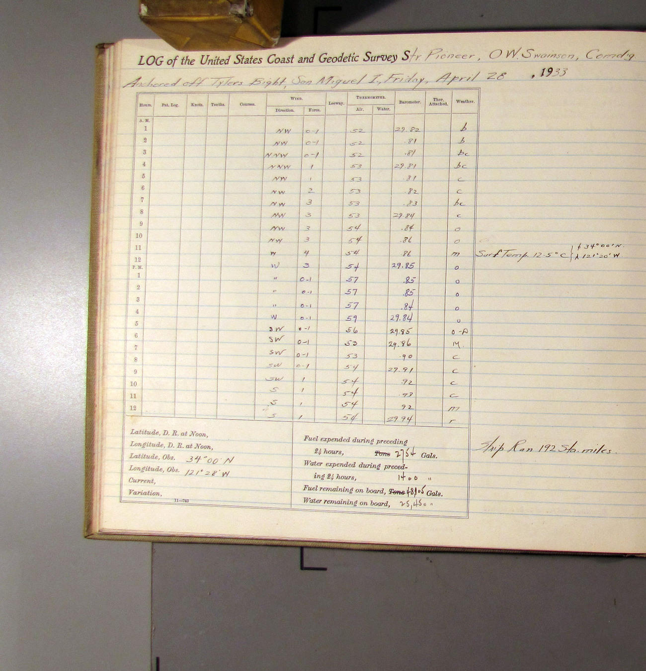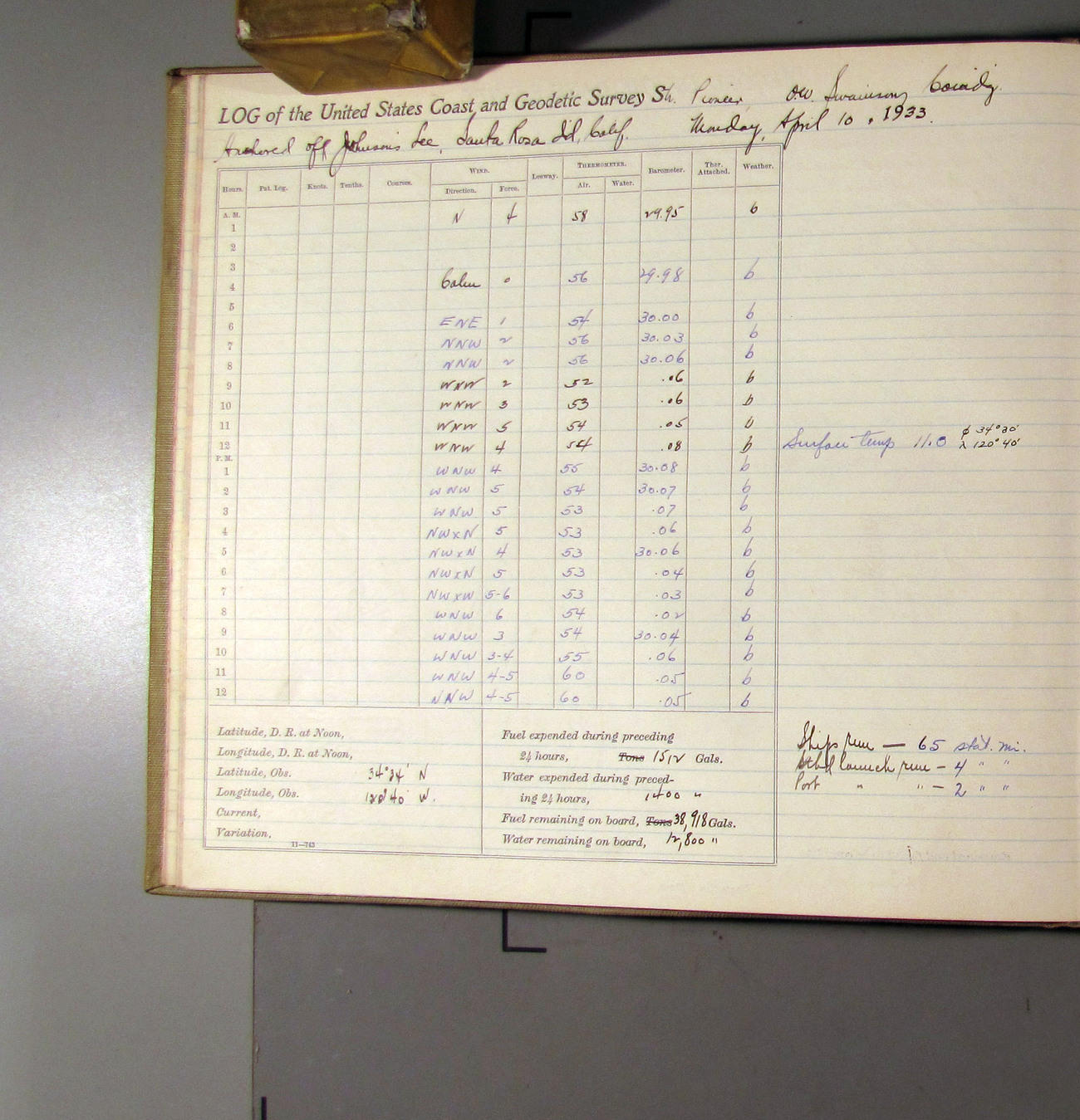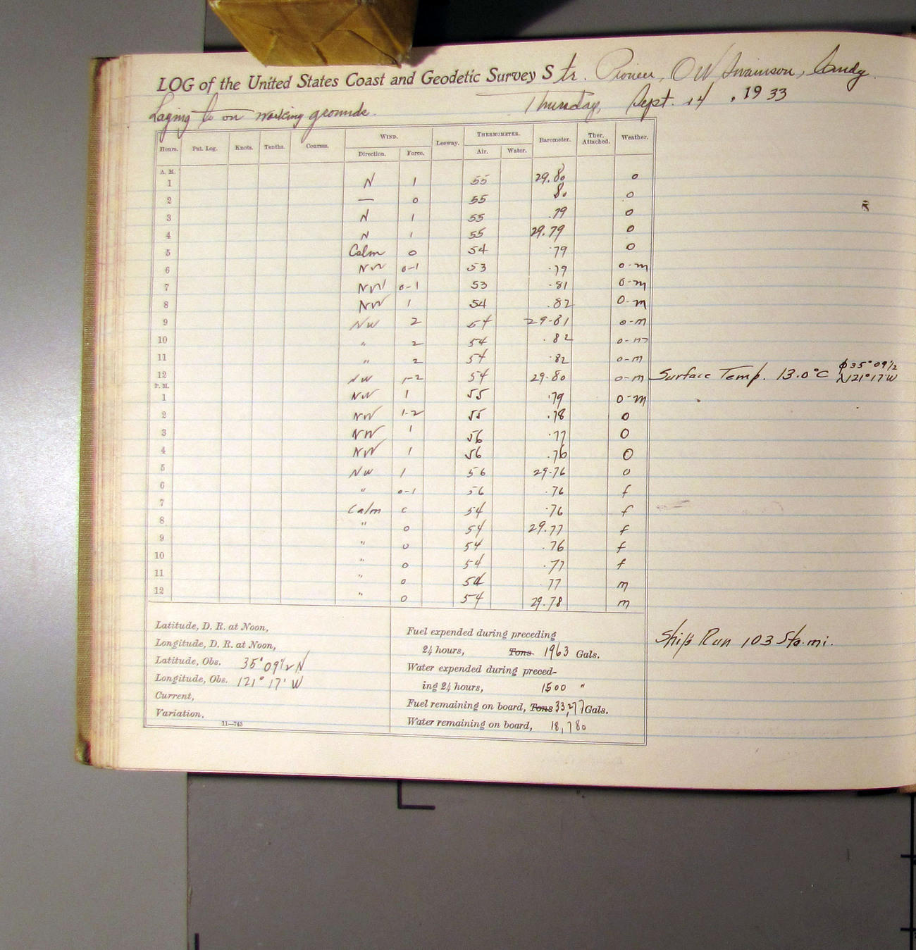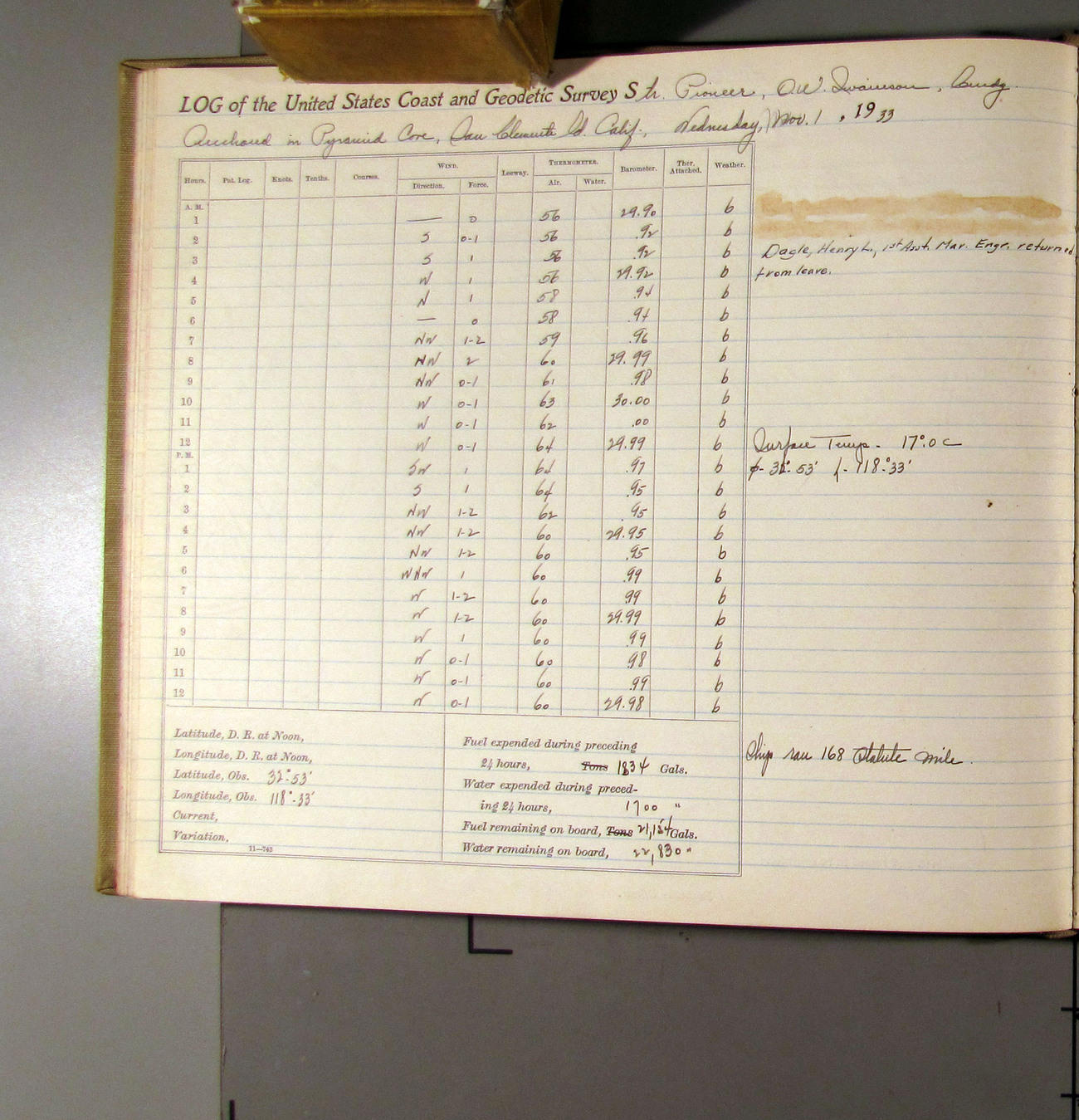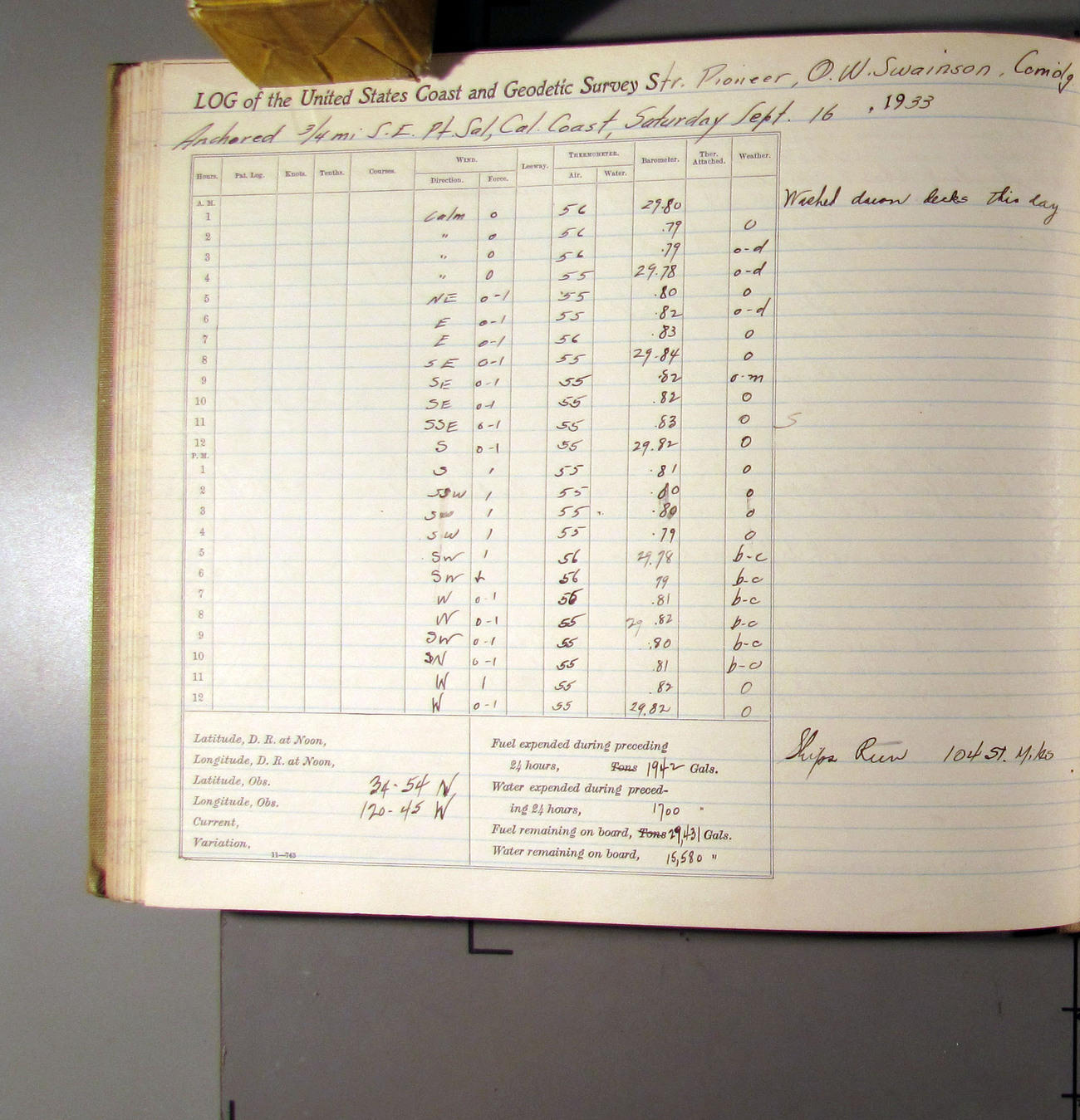 50874e6009d40907550148d9: (http://oldweather.s3.amazonaws.com/ow3/final/USCS Pioneer/Book 47 - October-December, 1933/IMG_0445_1.jpg)