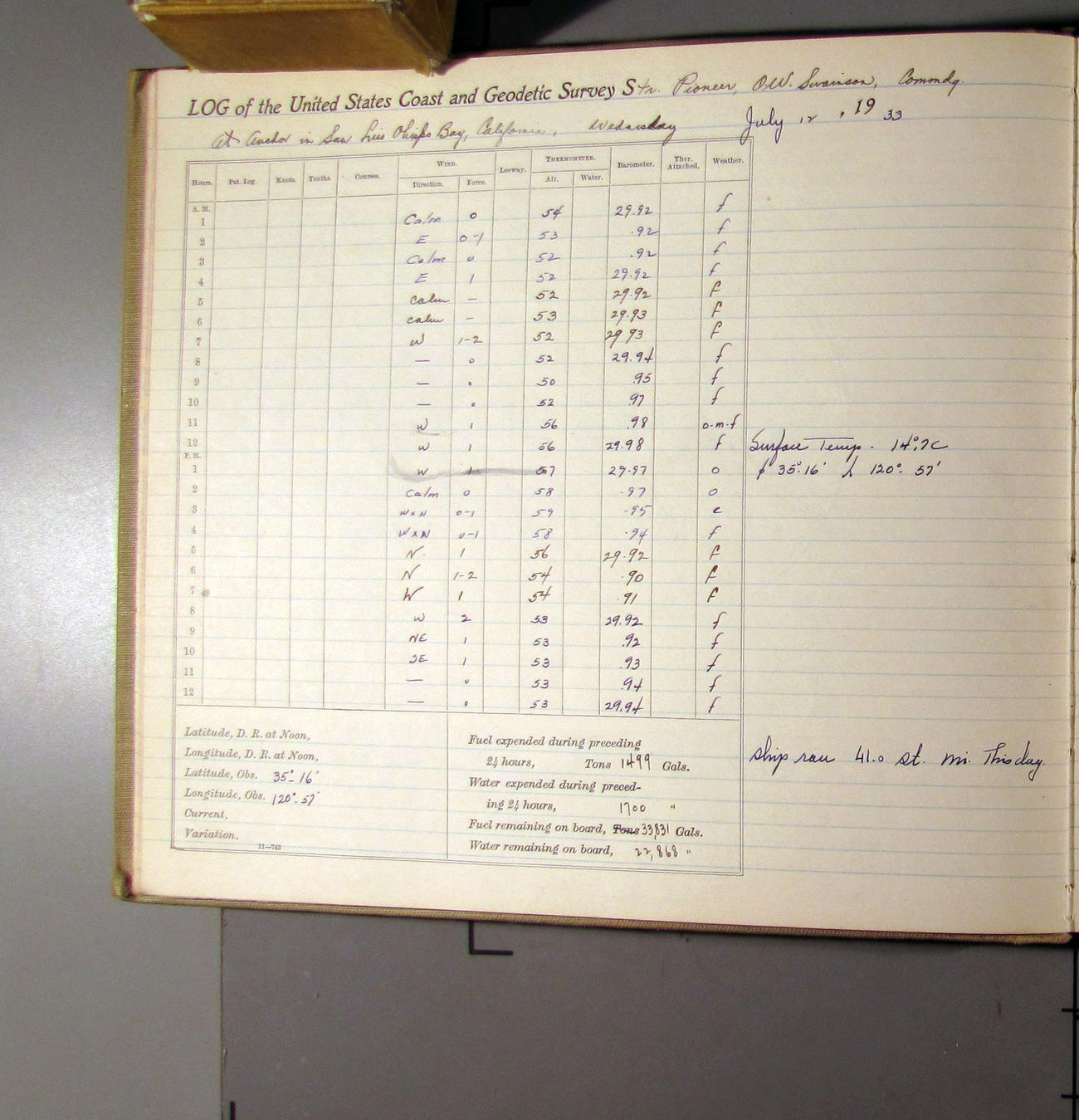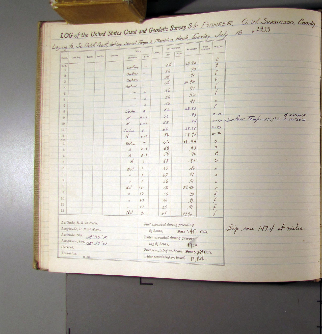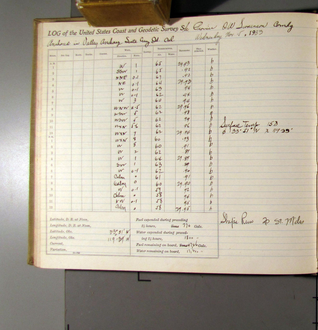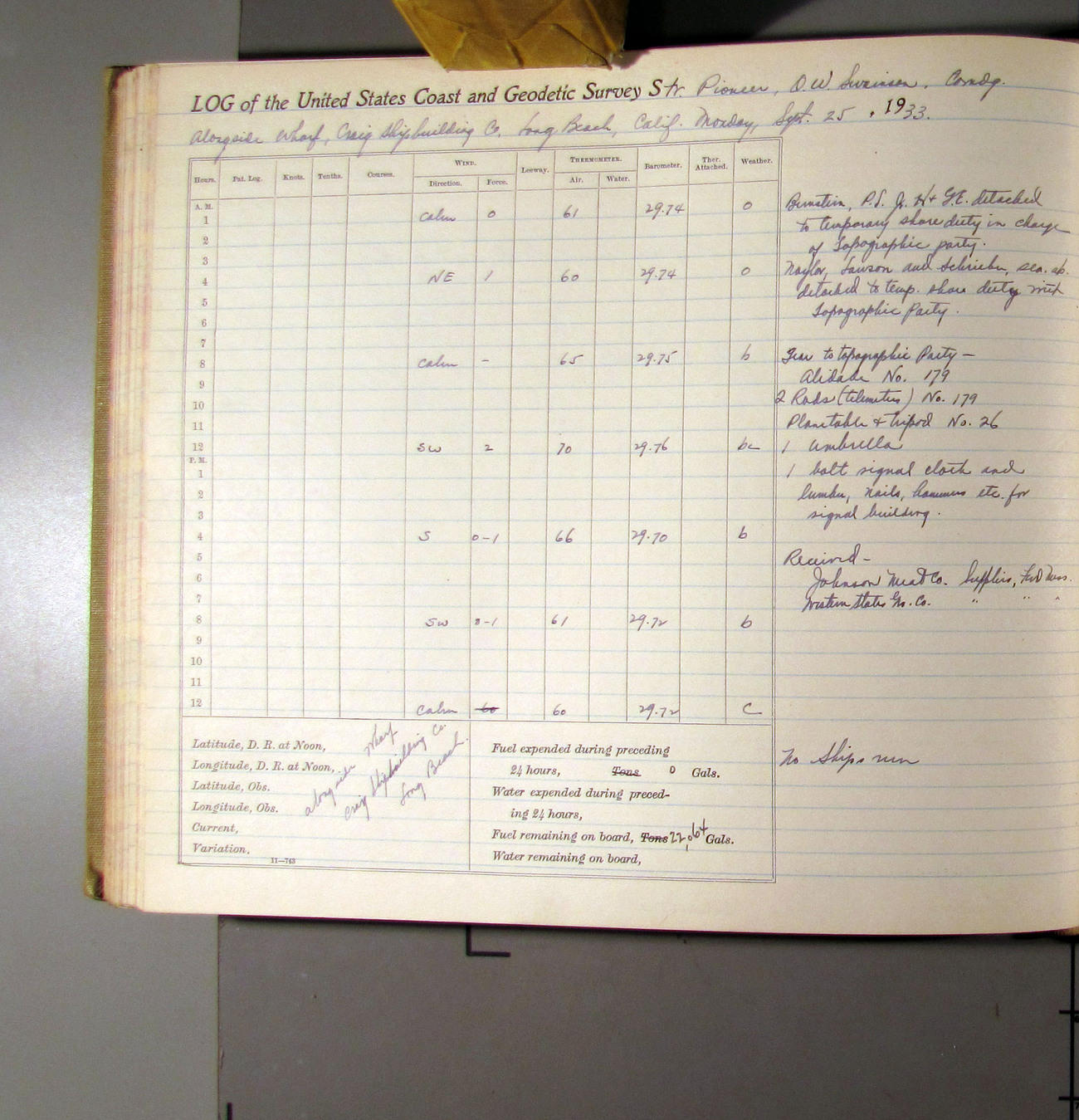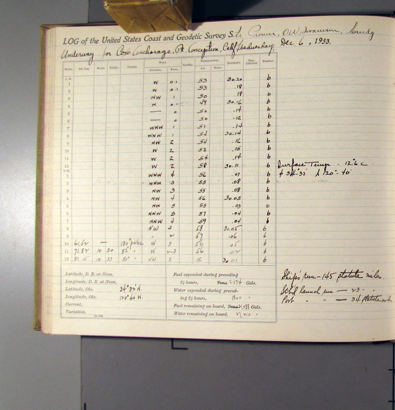 50874e6009d40907550148d9: (http://oldweather.s3.amazonaws.com/ow3/final/USCS Pioneer/Book 47 - October-December, 1933/IMG_0445_1.jpg)