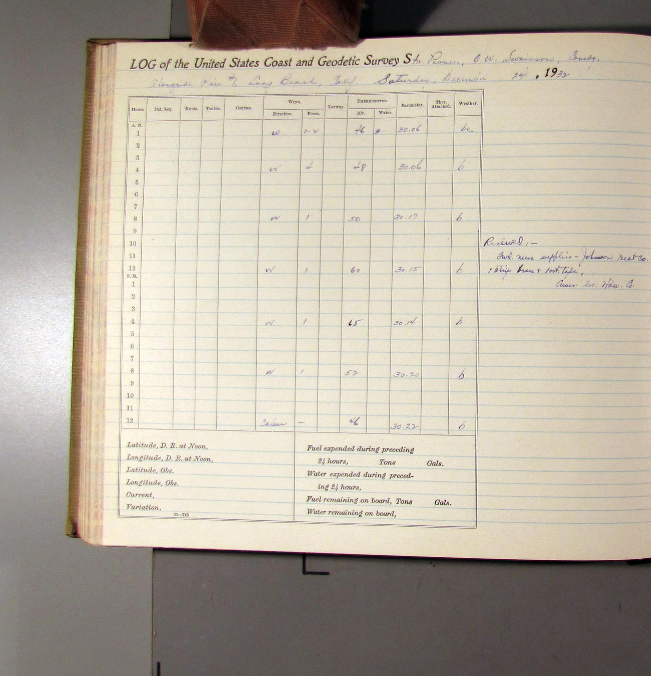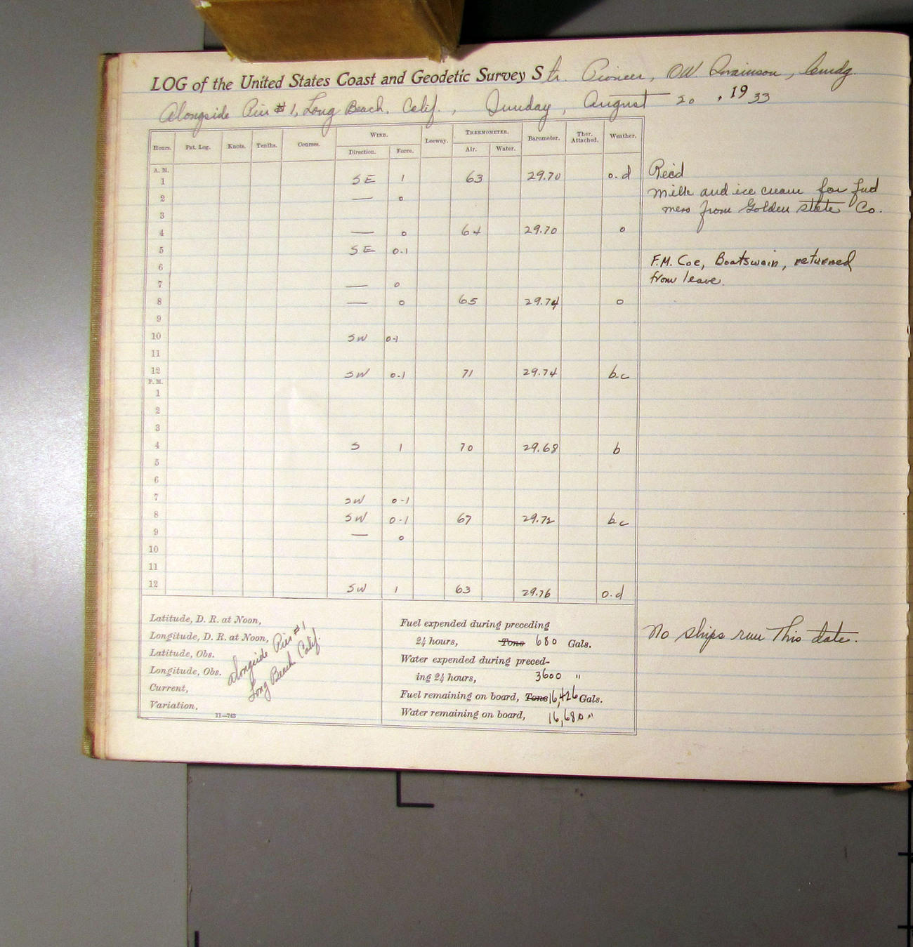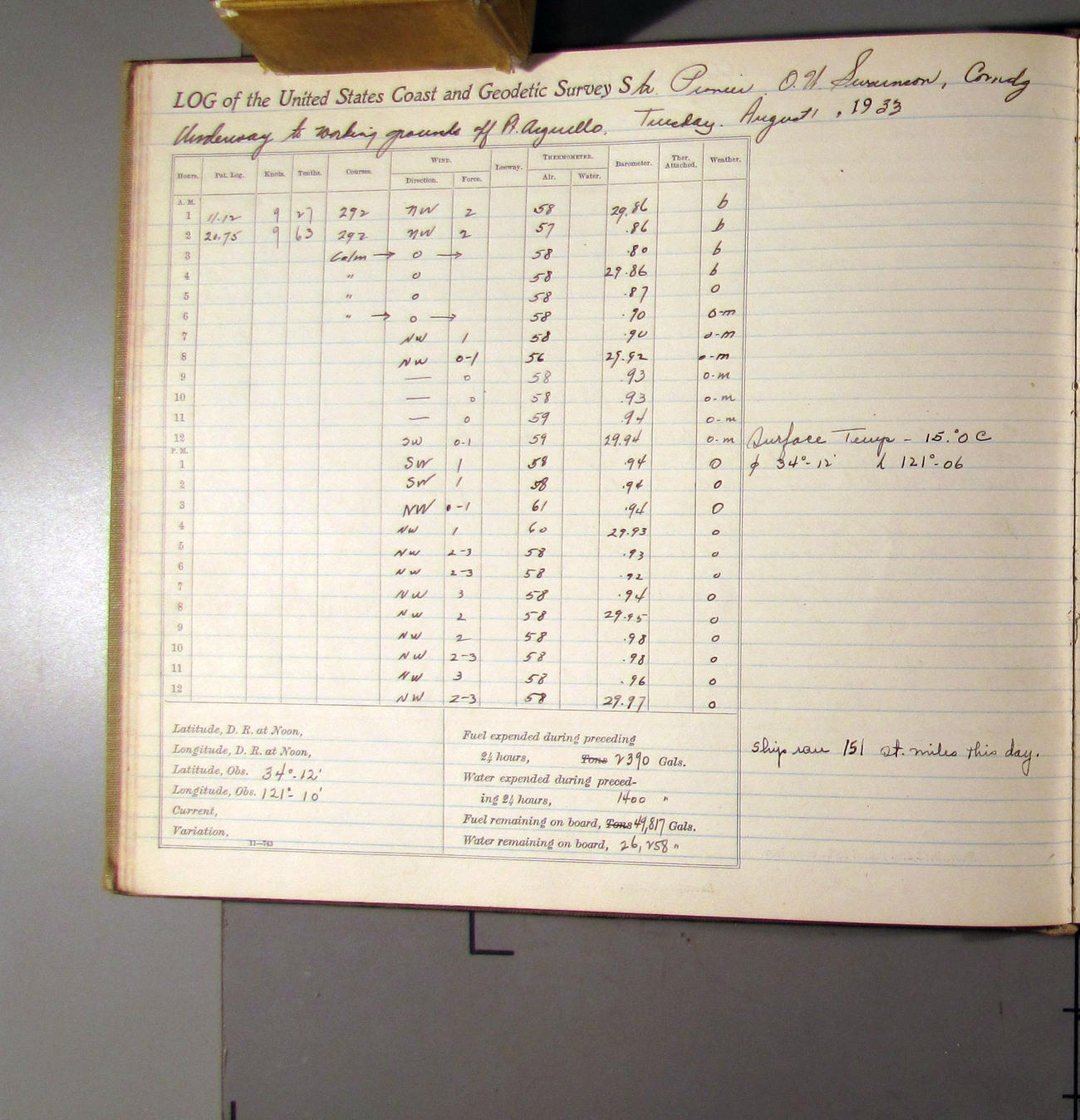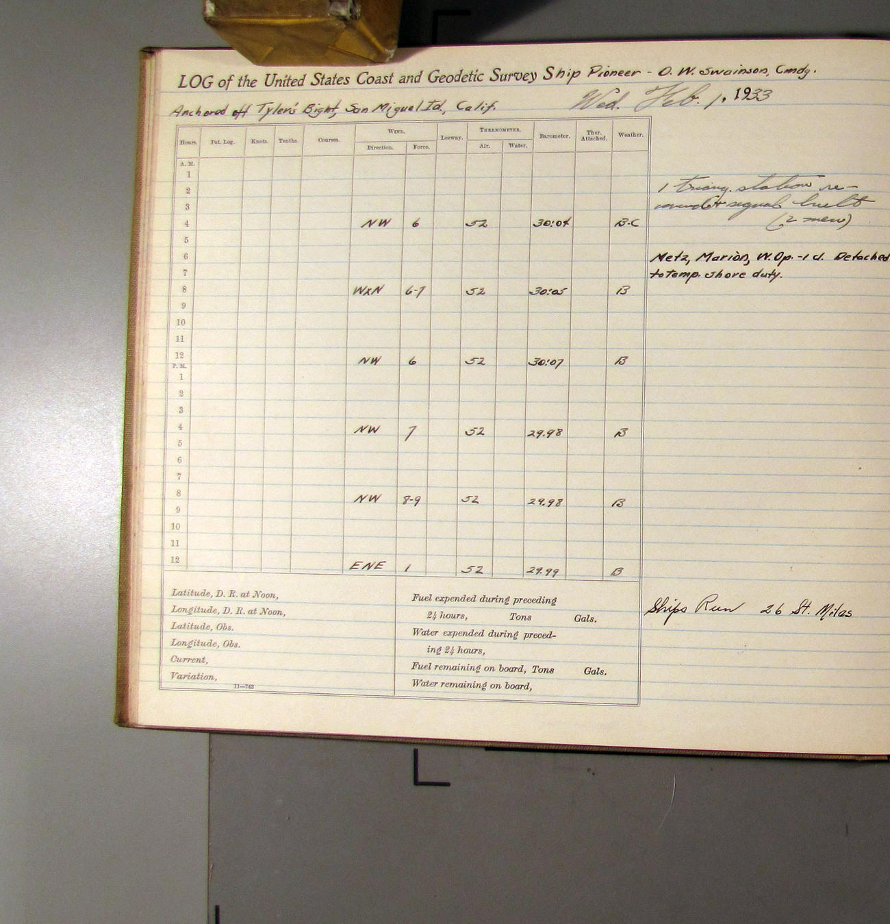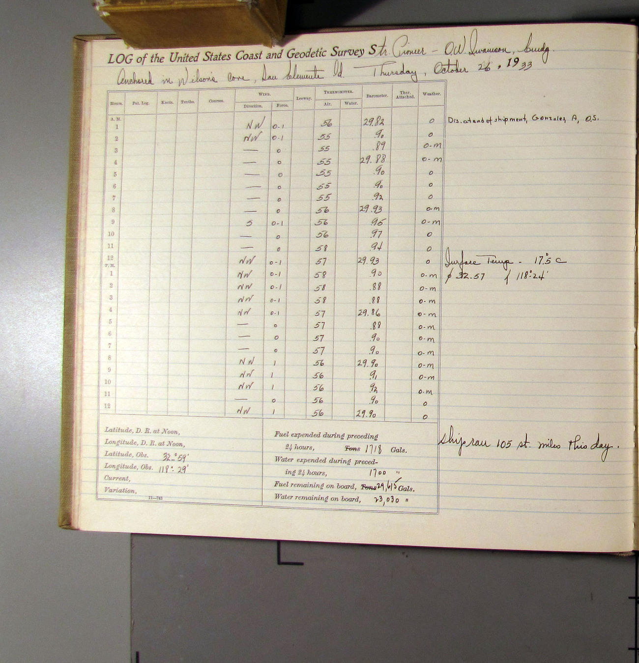 50874e6009d40907550148d9: (http://oldweather.s3.amazonaws.com/ow3/final/USCS Pioneer/Book 47 - October-December, 1933/IMG_0445_1.jpg)