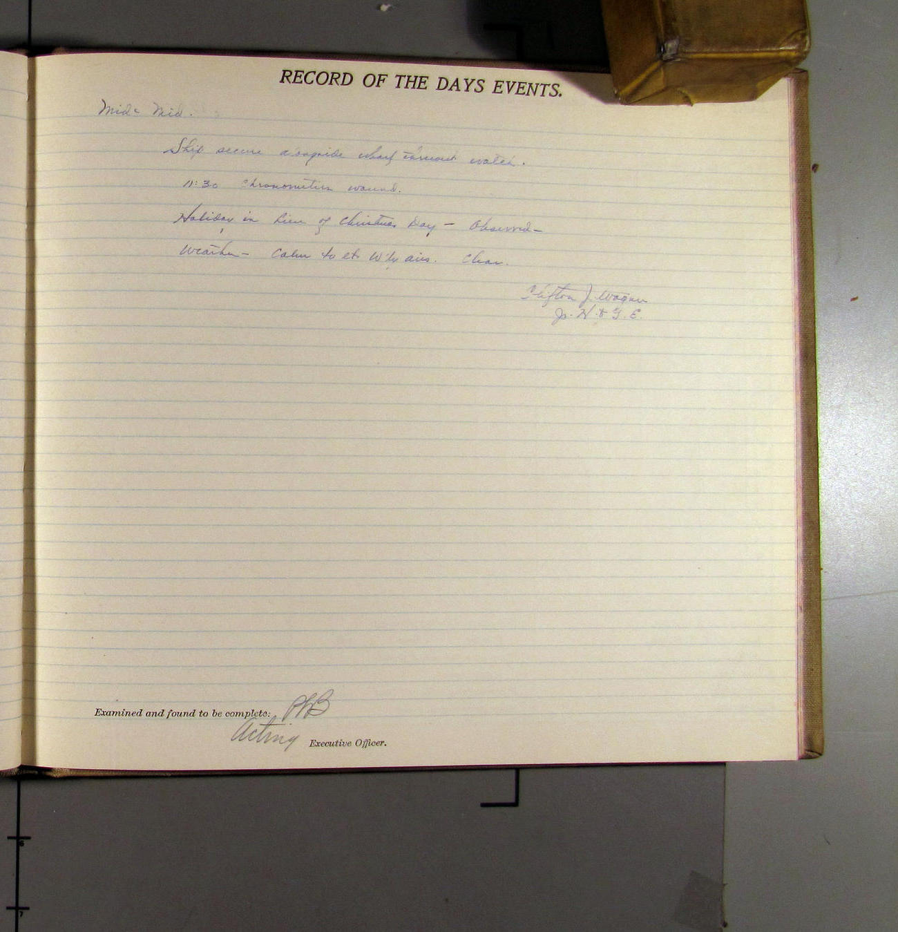 Rcd telegram from Inspectors, San Francisco, via Coast Guard Radio Station, San Pedro, instructing that crew be granted full holidays on Dec 23rd and 30, by order of the Director.