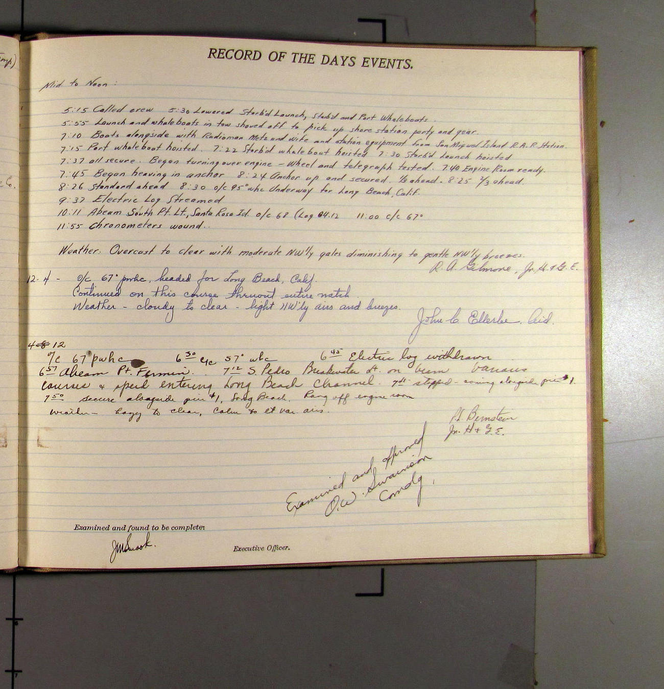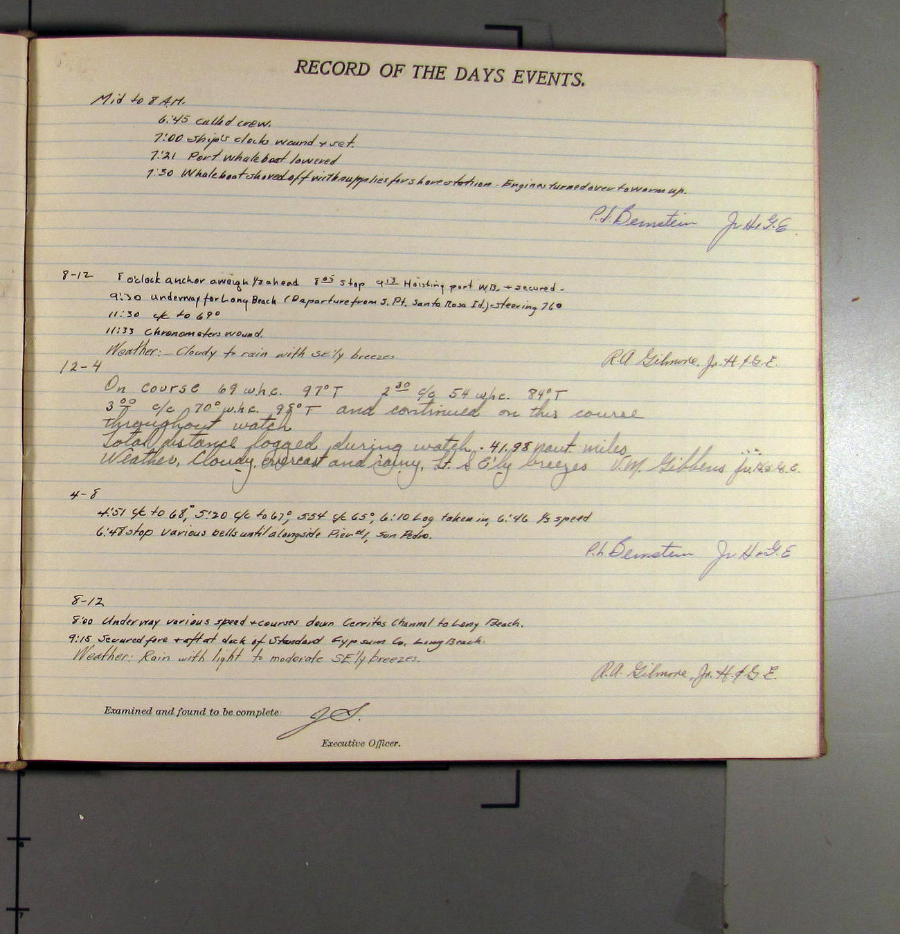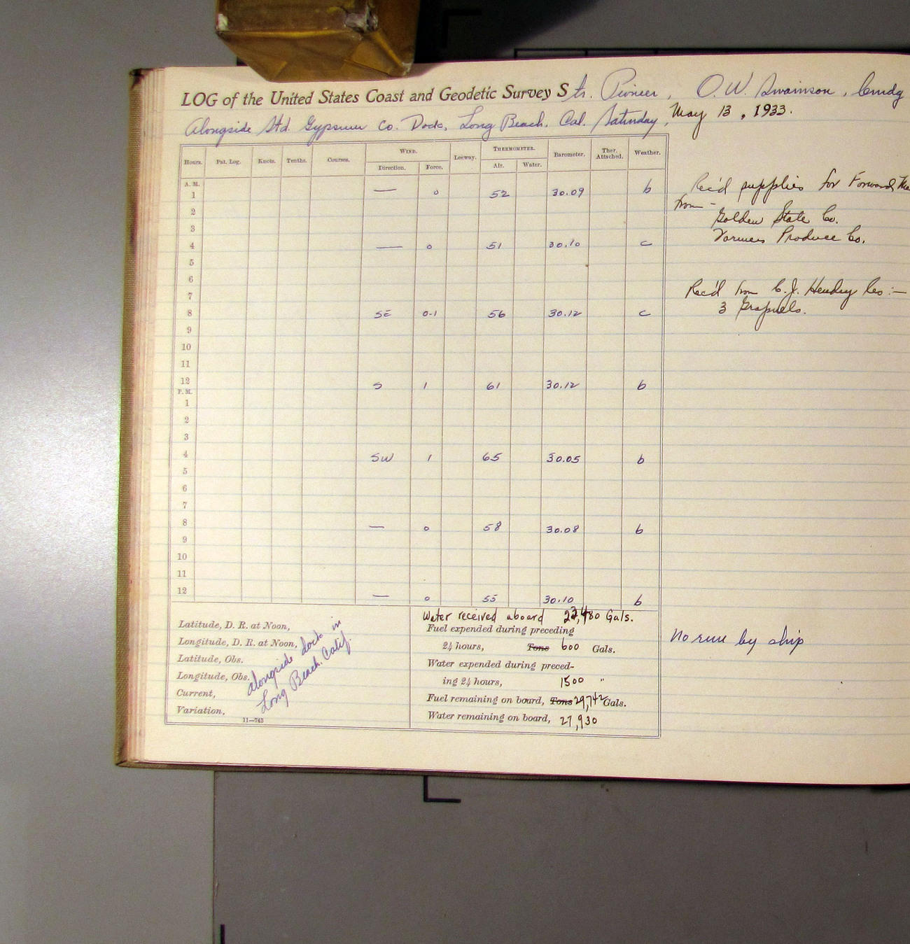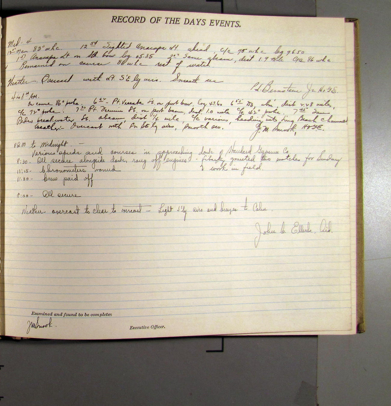 7:55 [AM] Secure alongside Standard Gypsum Co. Wharf, Long Beach, California.