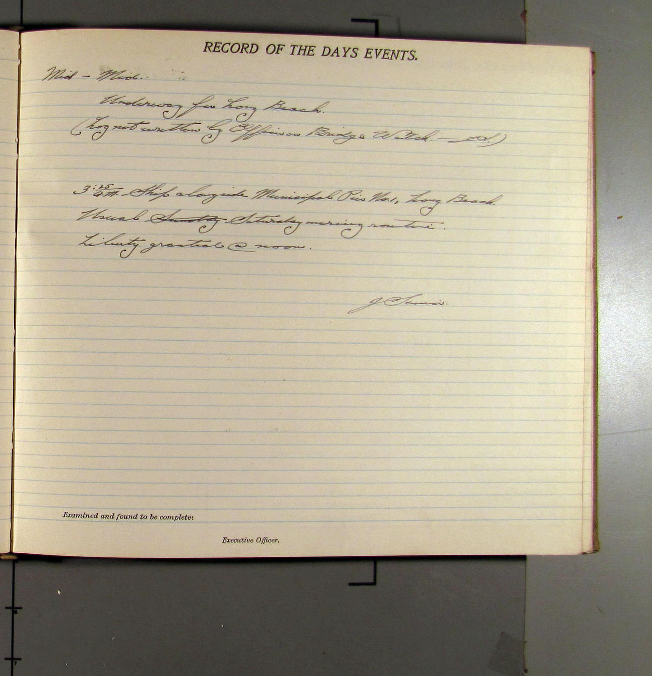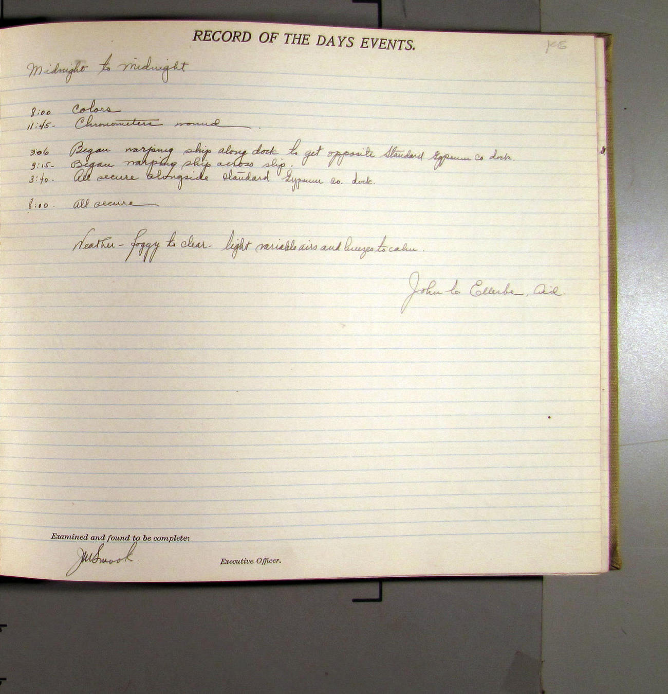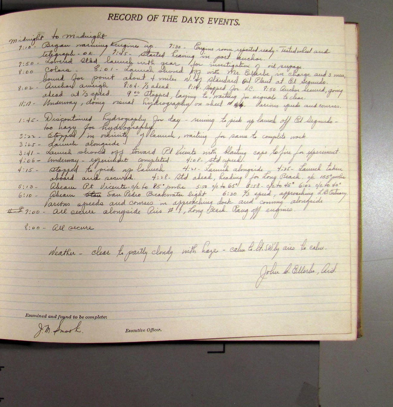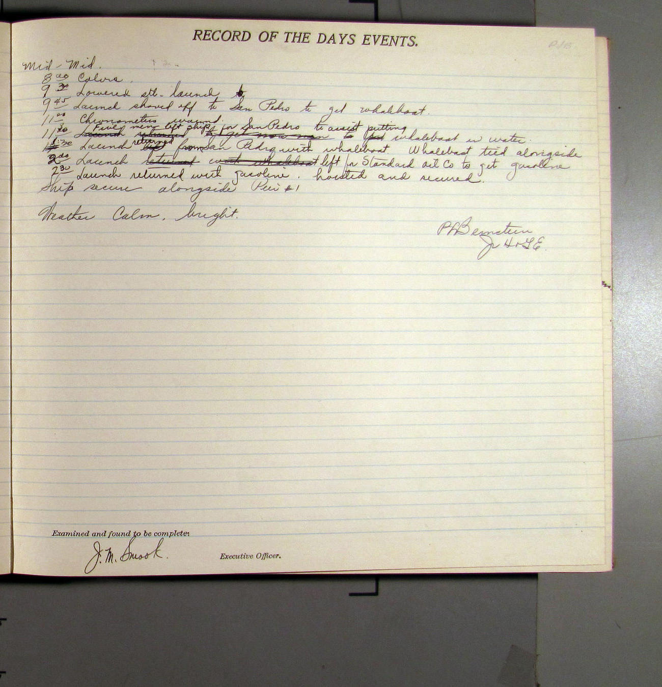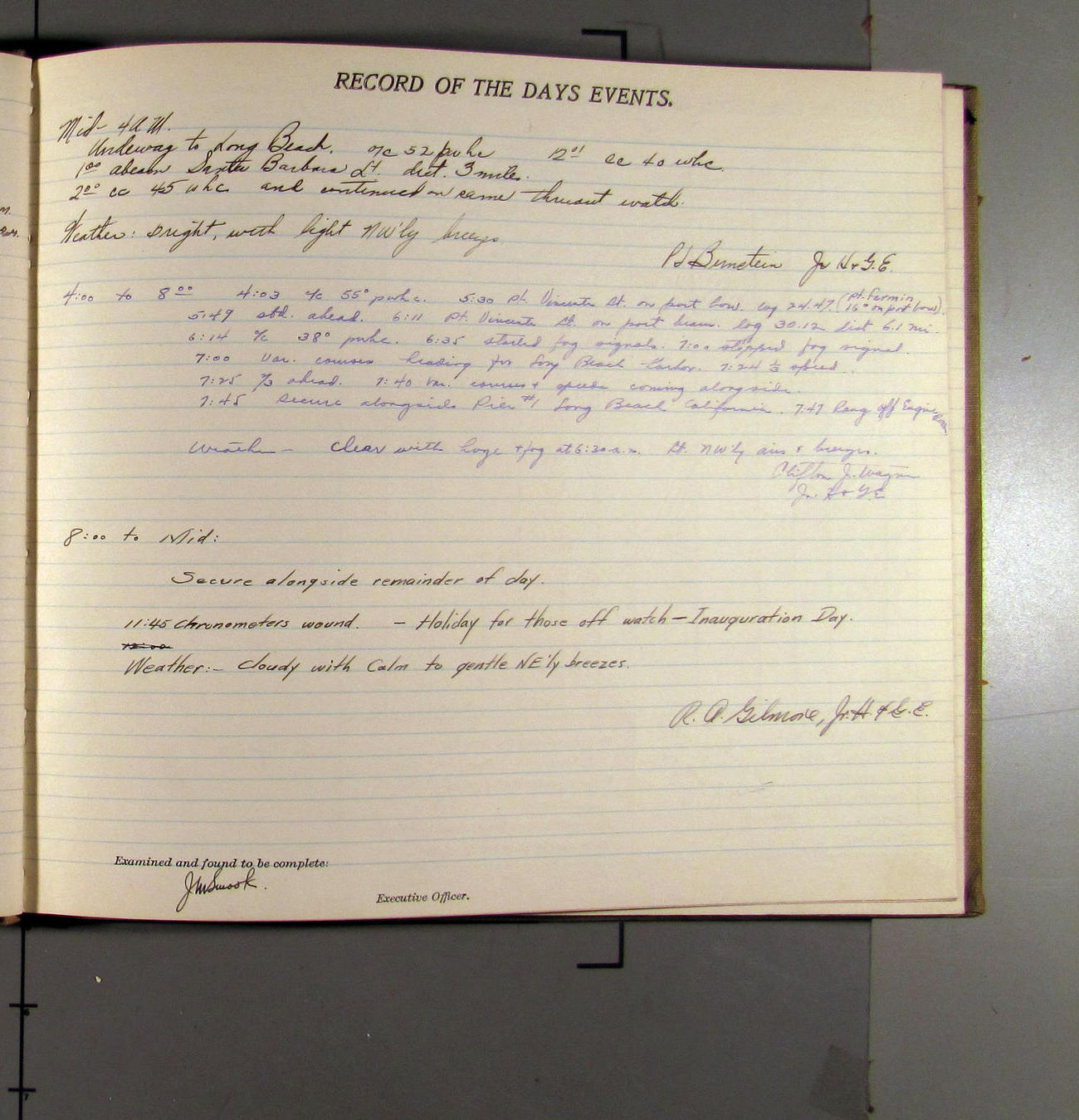 7:55 [AM] Secure alongside Standard Gypsum Co. Wharf, Long Beach, California.