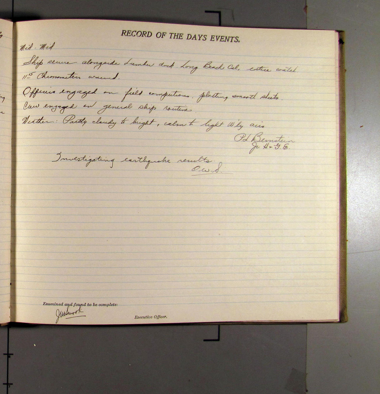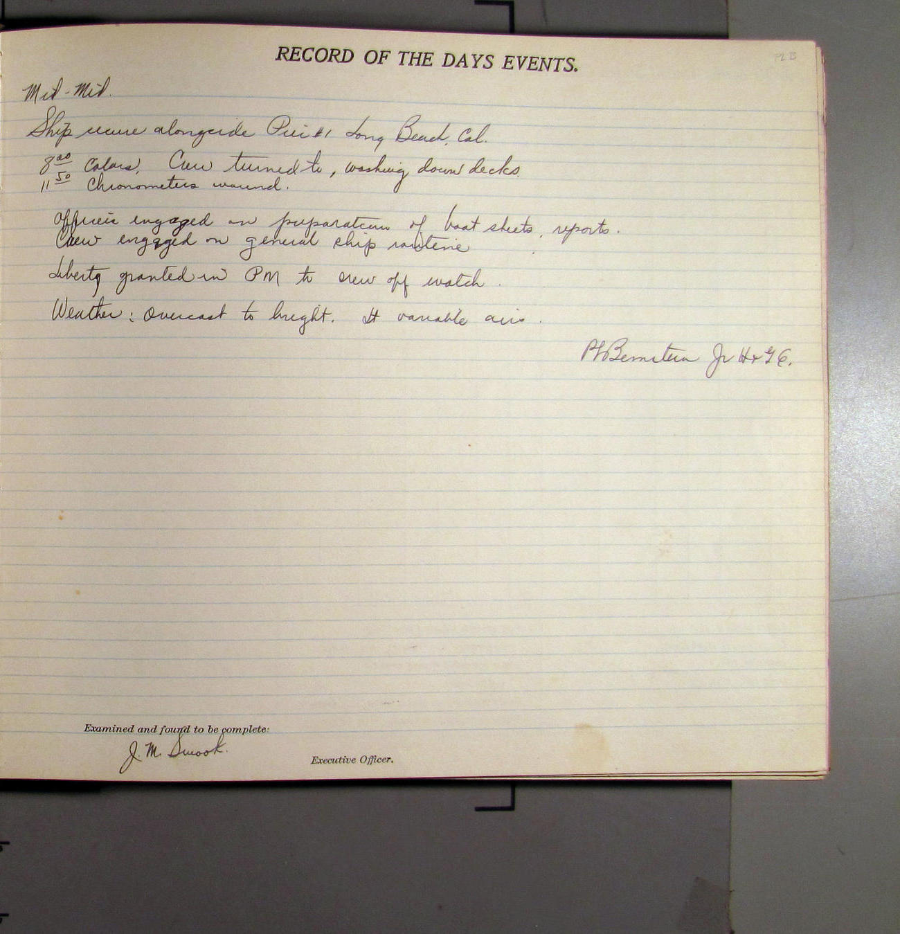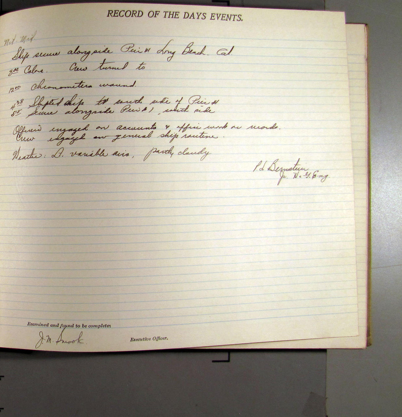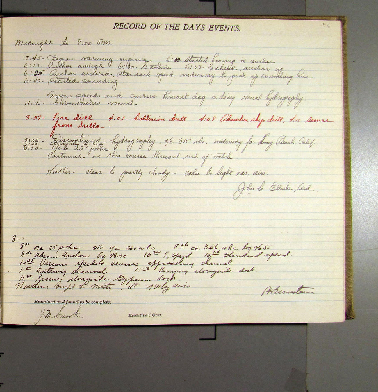 7:55 [AM] Secure alongside Standard Gypsum Co. Wharf, Long Beach, California.
